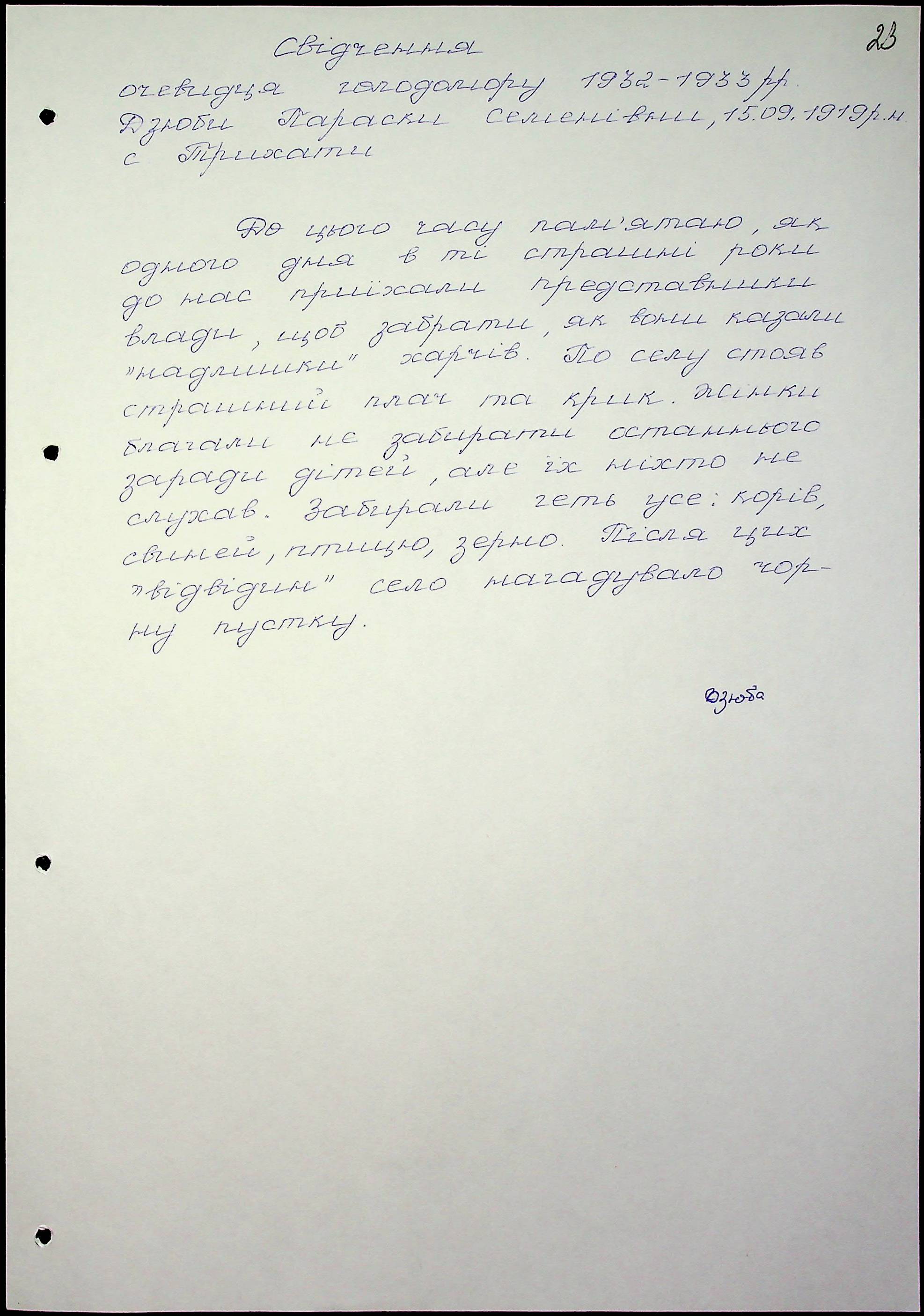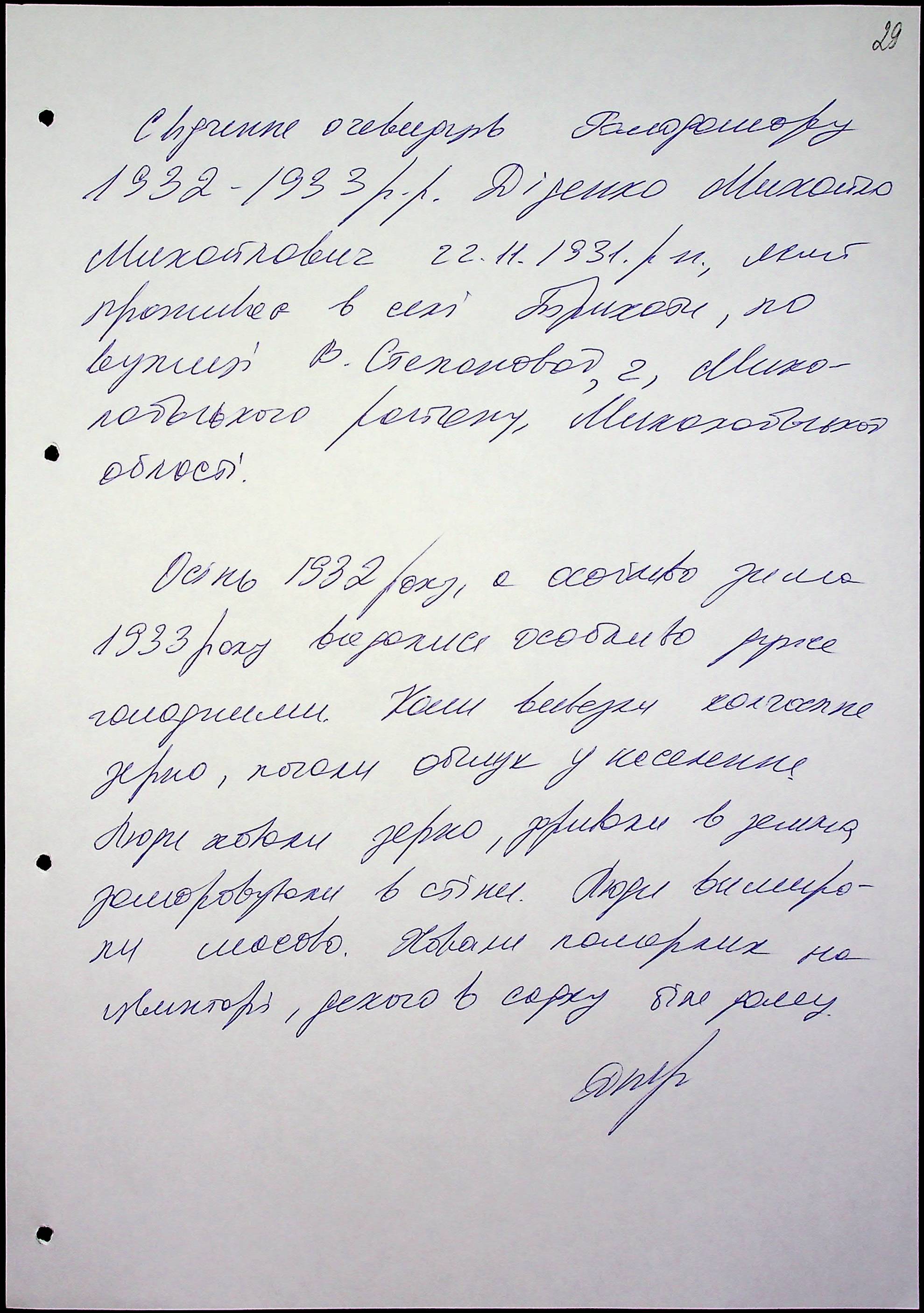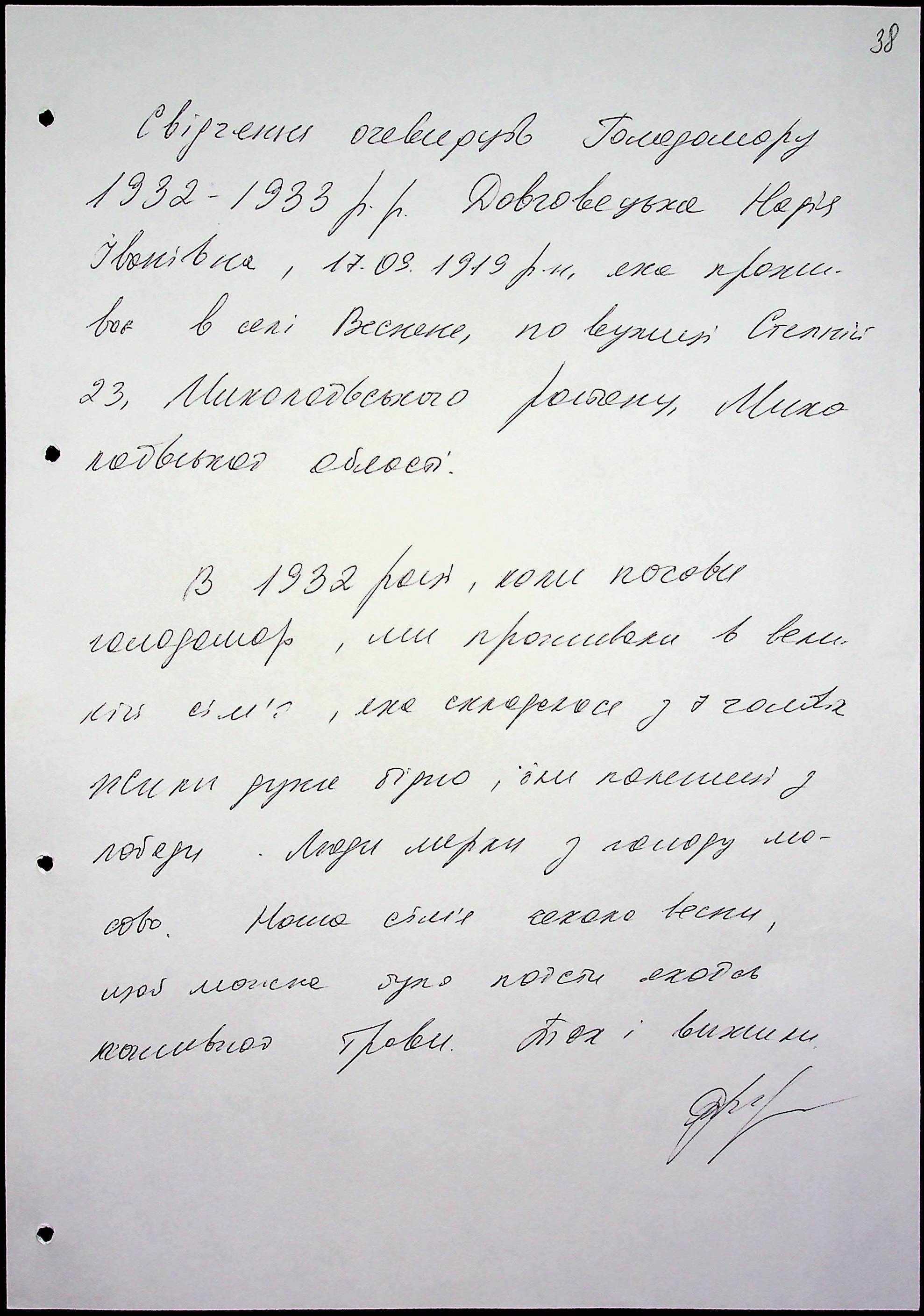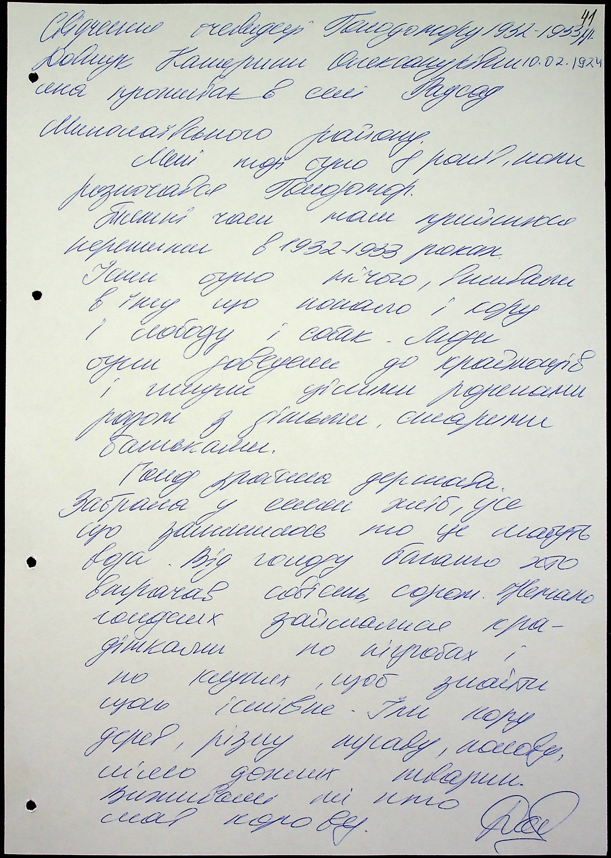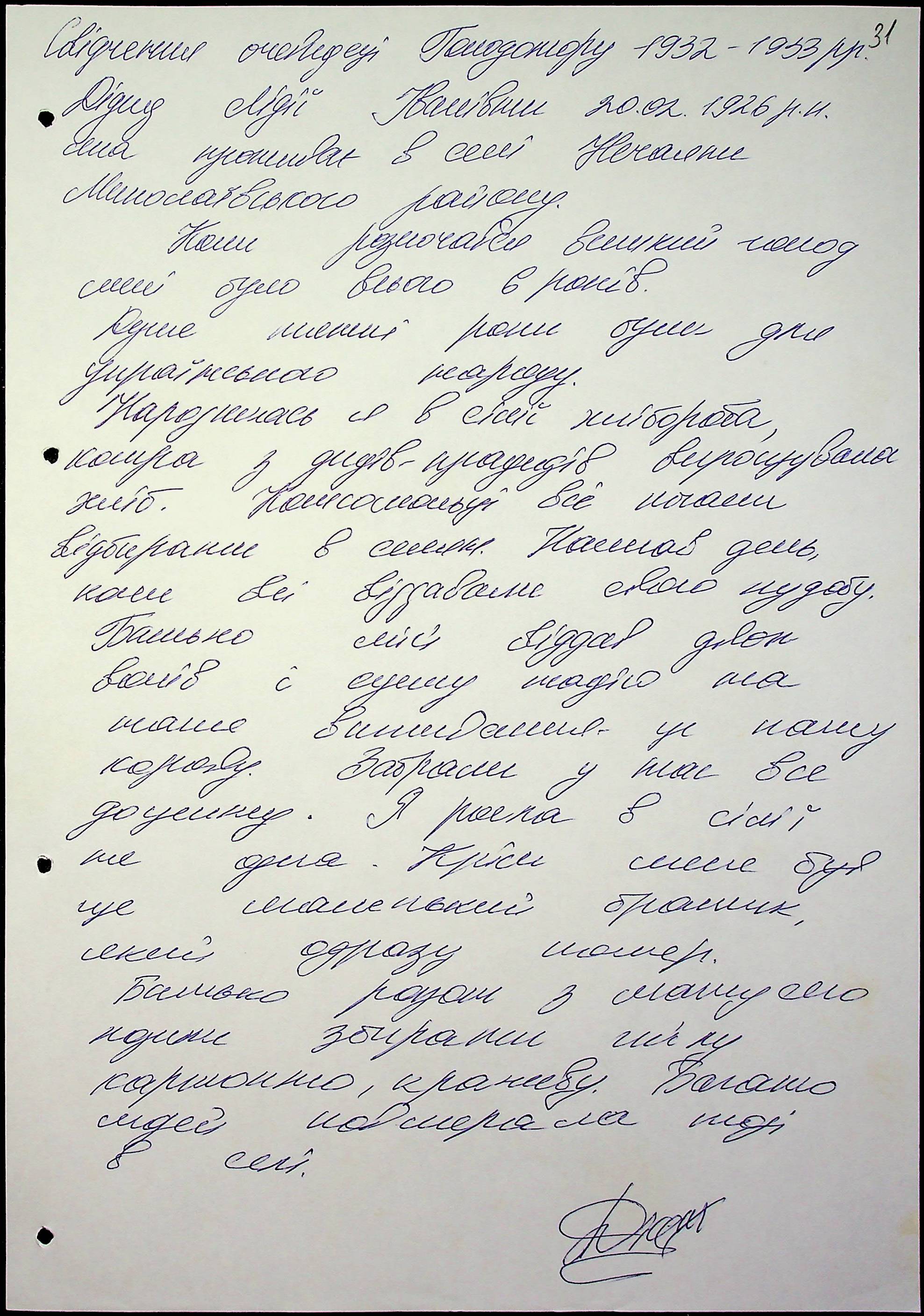 • • • • Справа № 47 “Свідчення очевидців Голодомору 1932-1933 років, які проживають у Миколаївському районі, з прізвищами на літери Д–І”