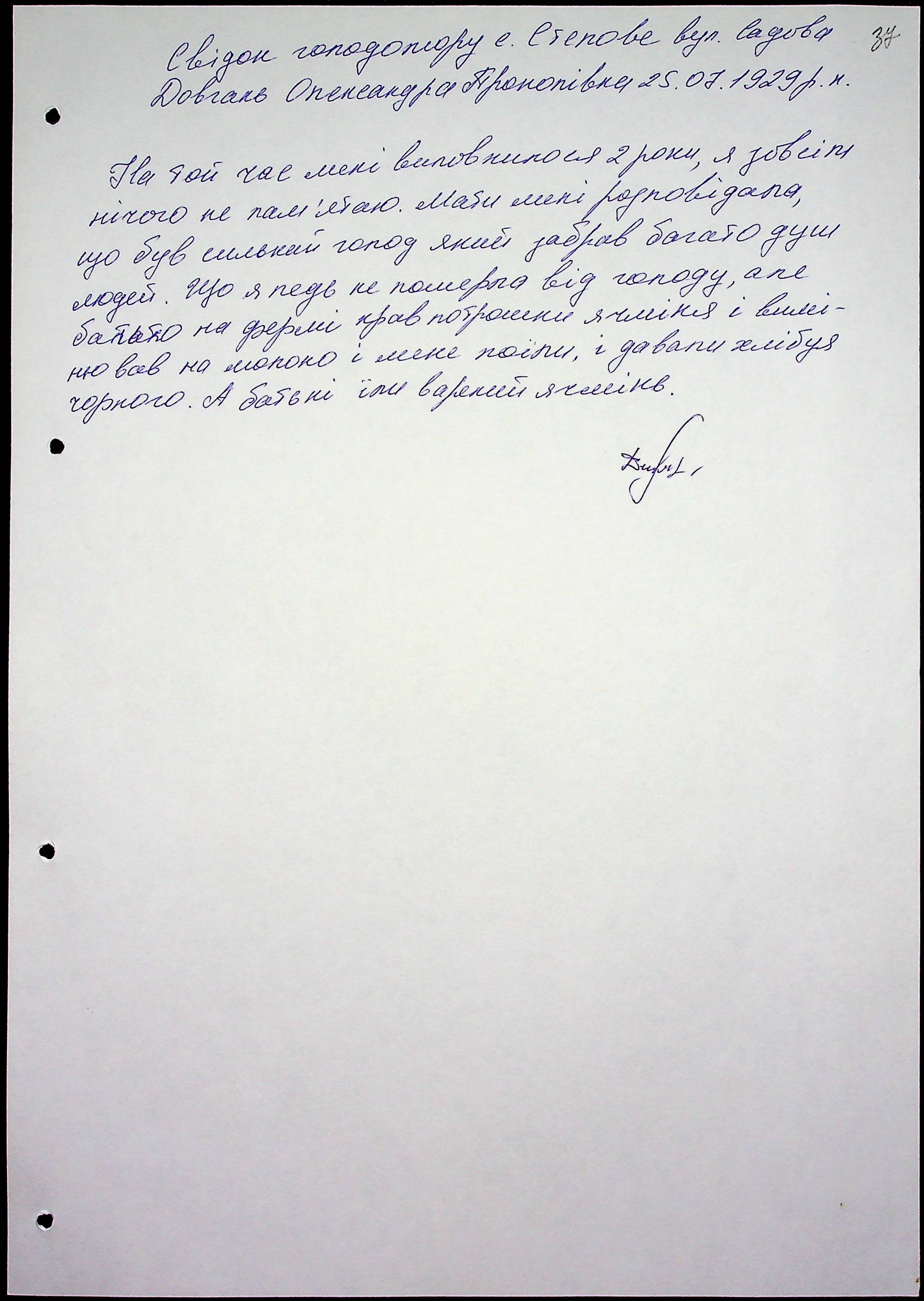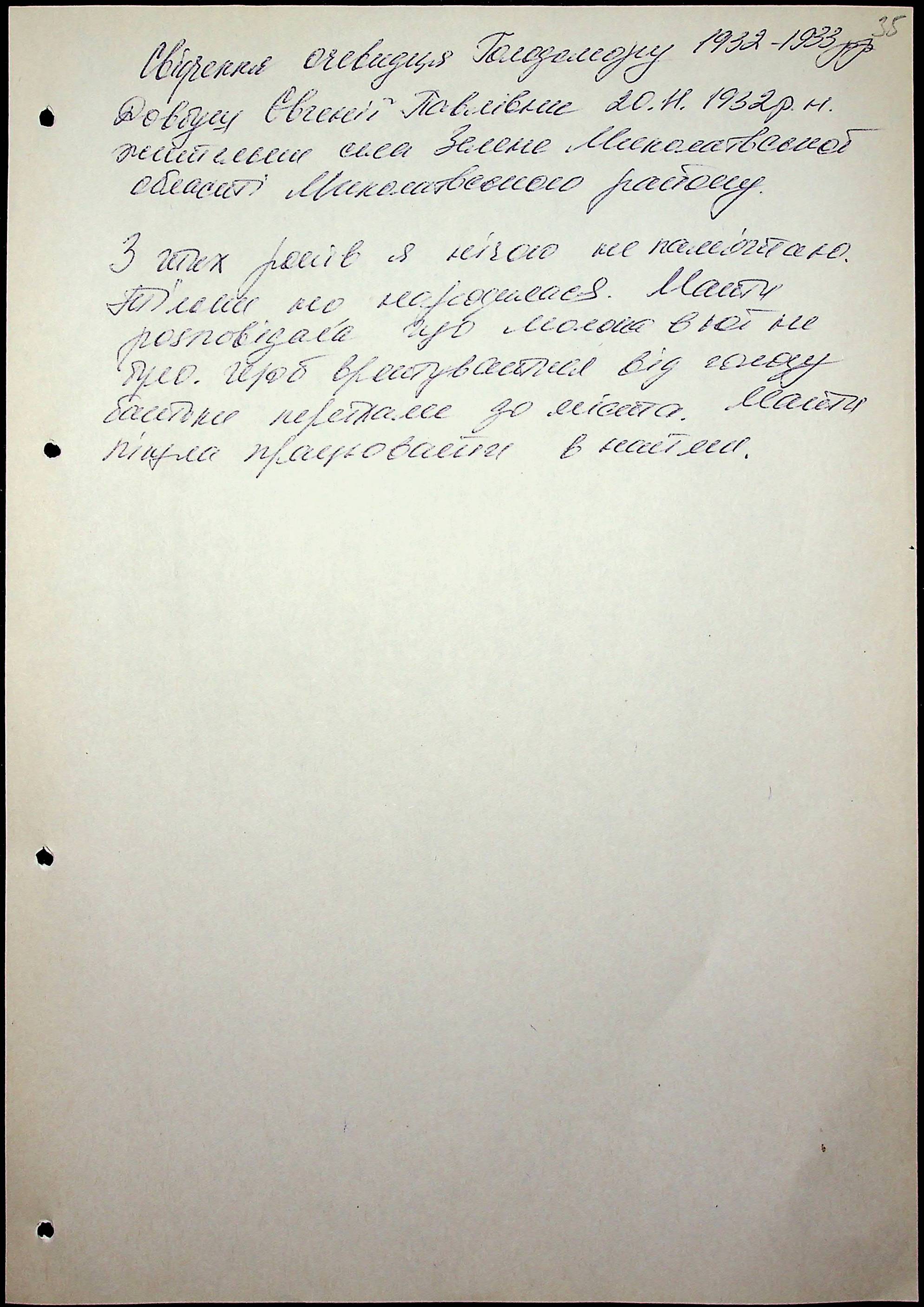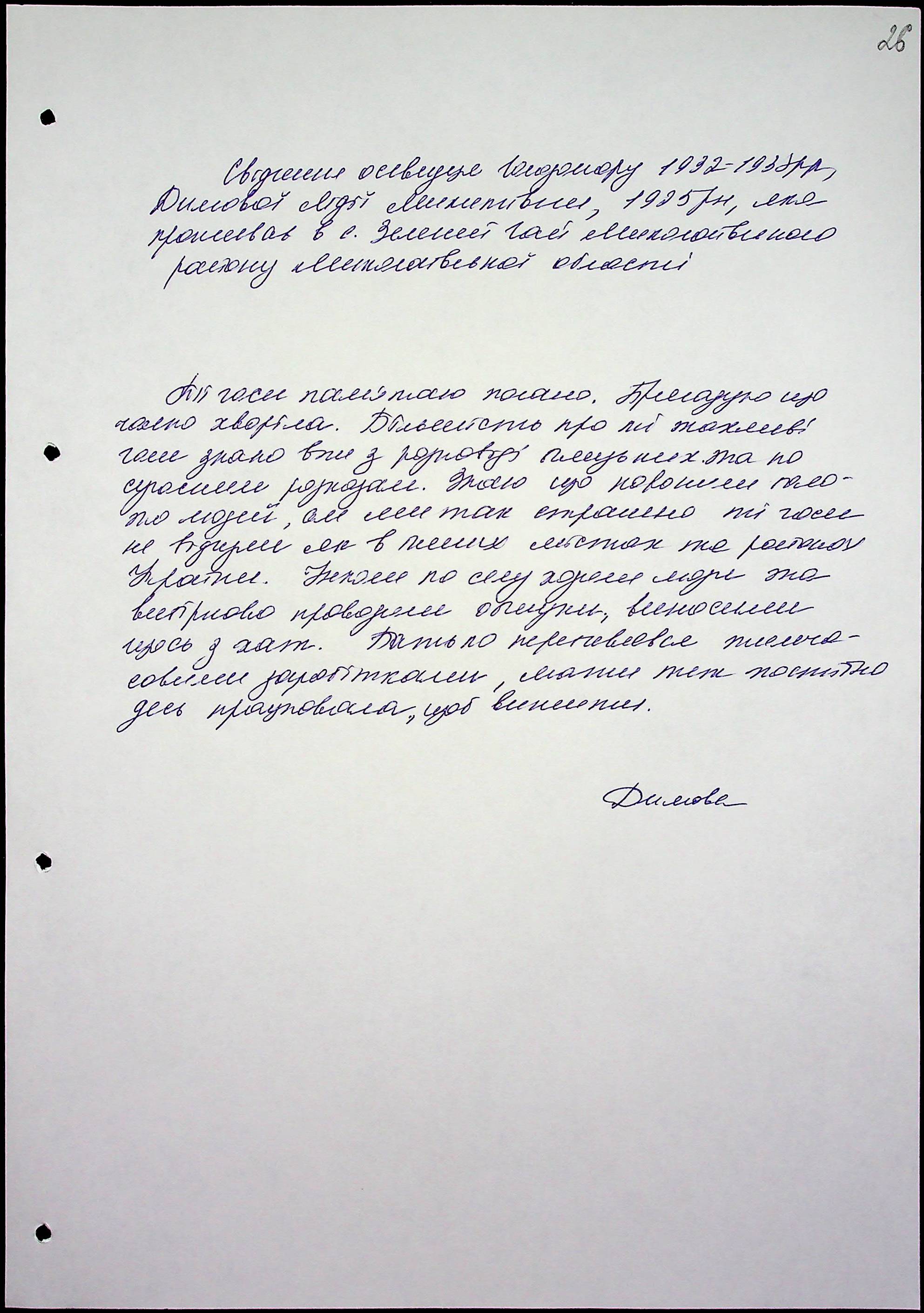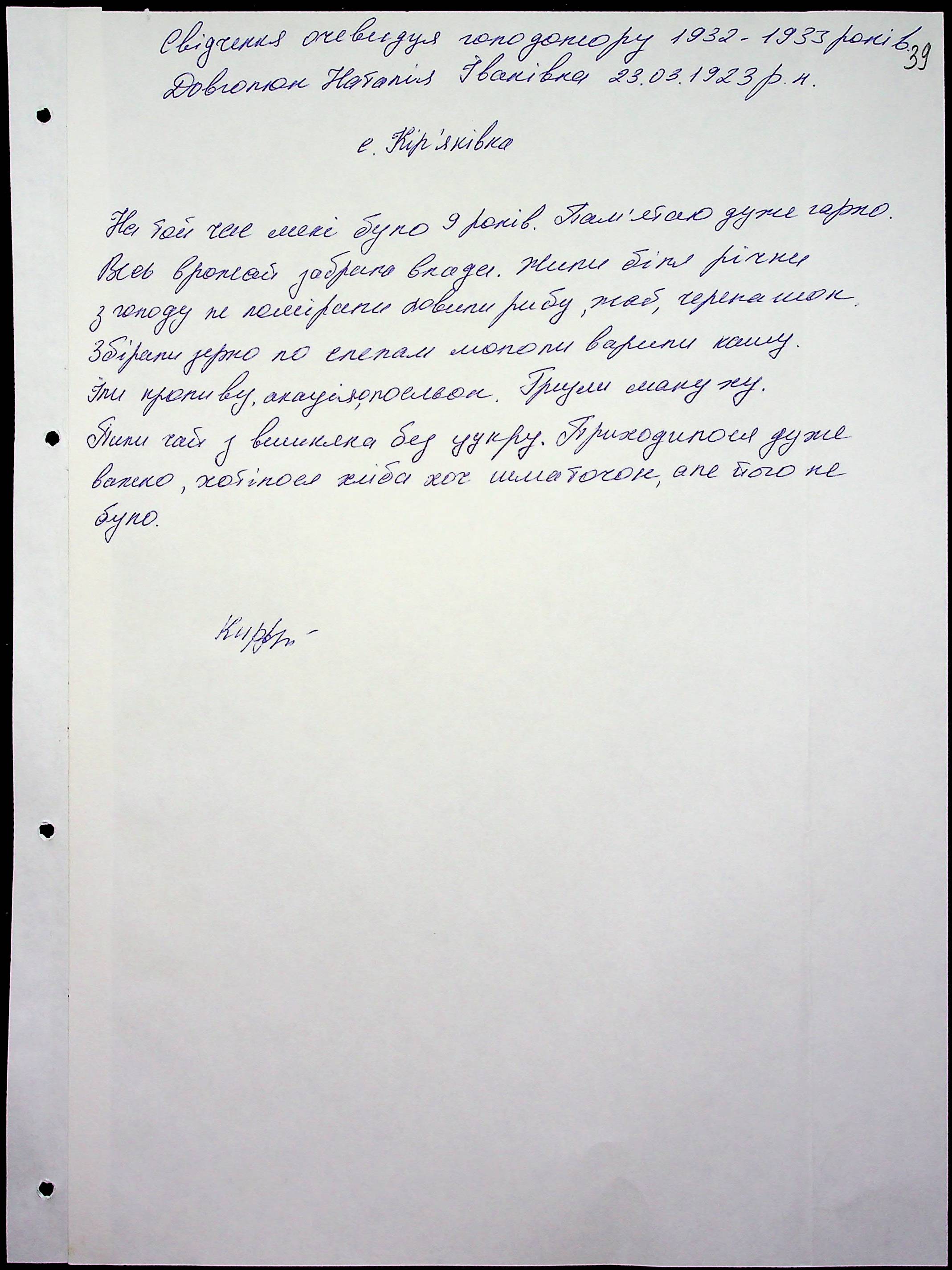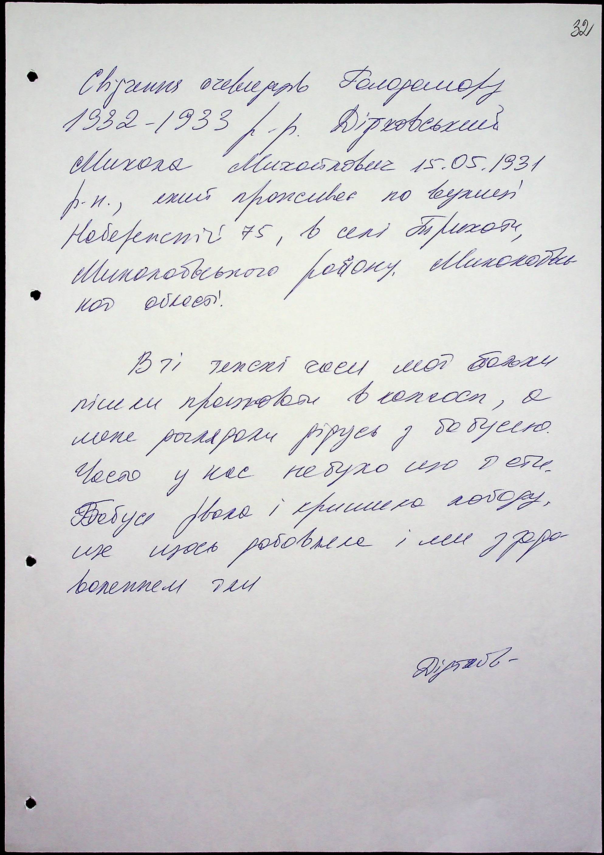 • • • • Справа № 47 “Свідчення очевидців Голодомору 1932-1933 років, які проживають у Миколаївському районі, з прізвищами на літери Д–І”