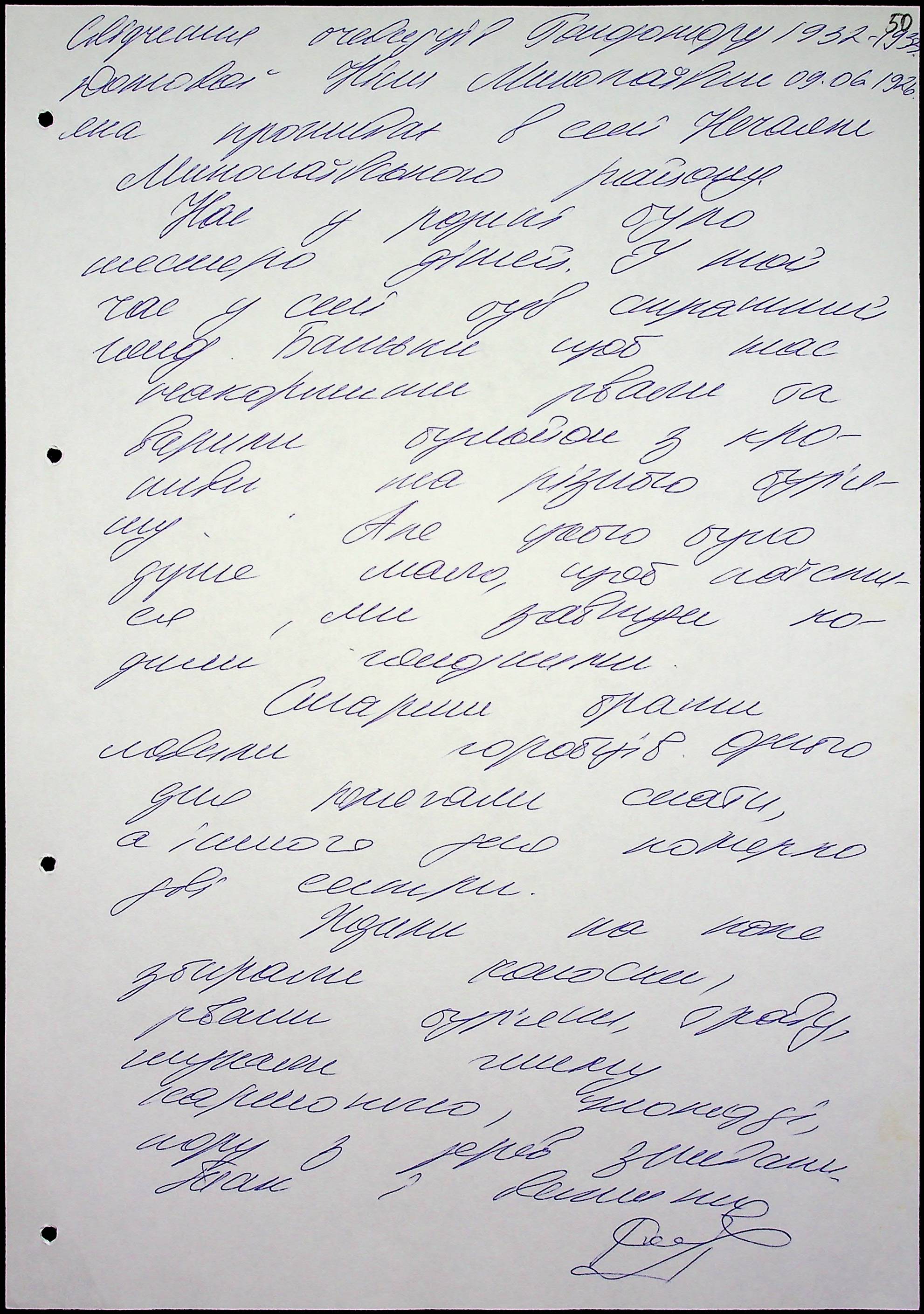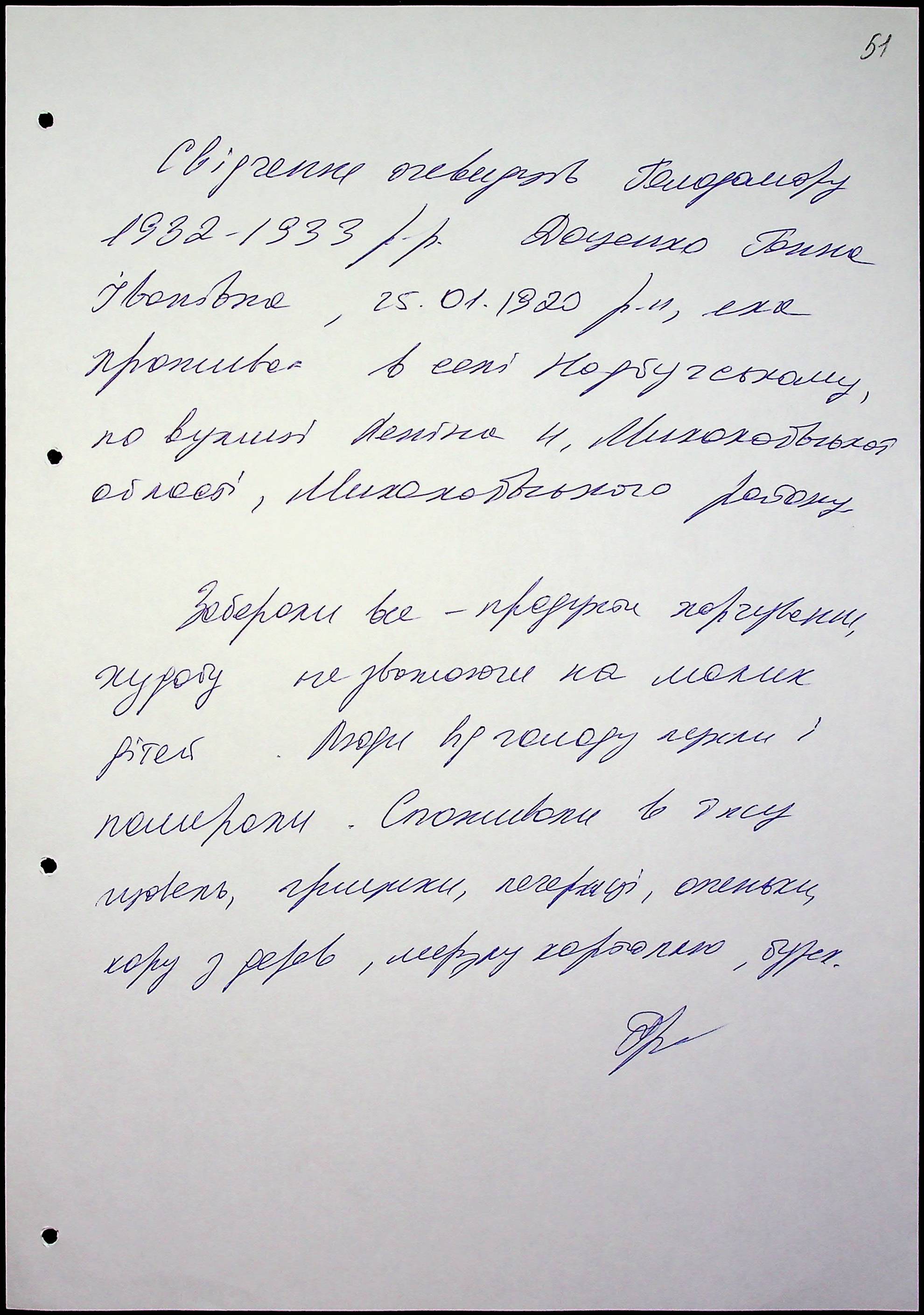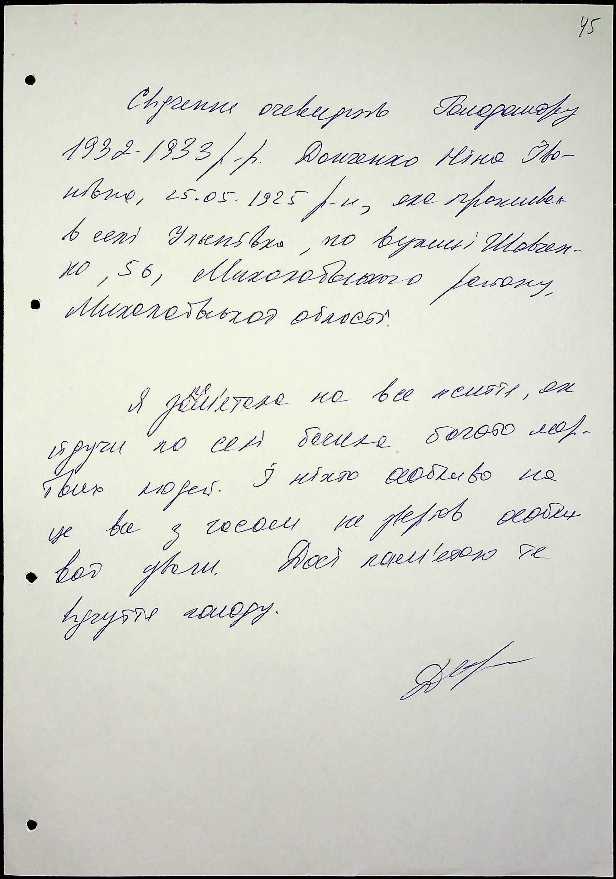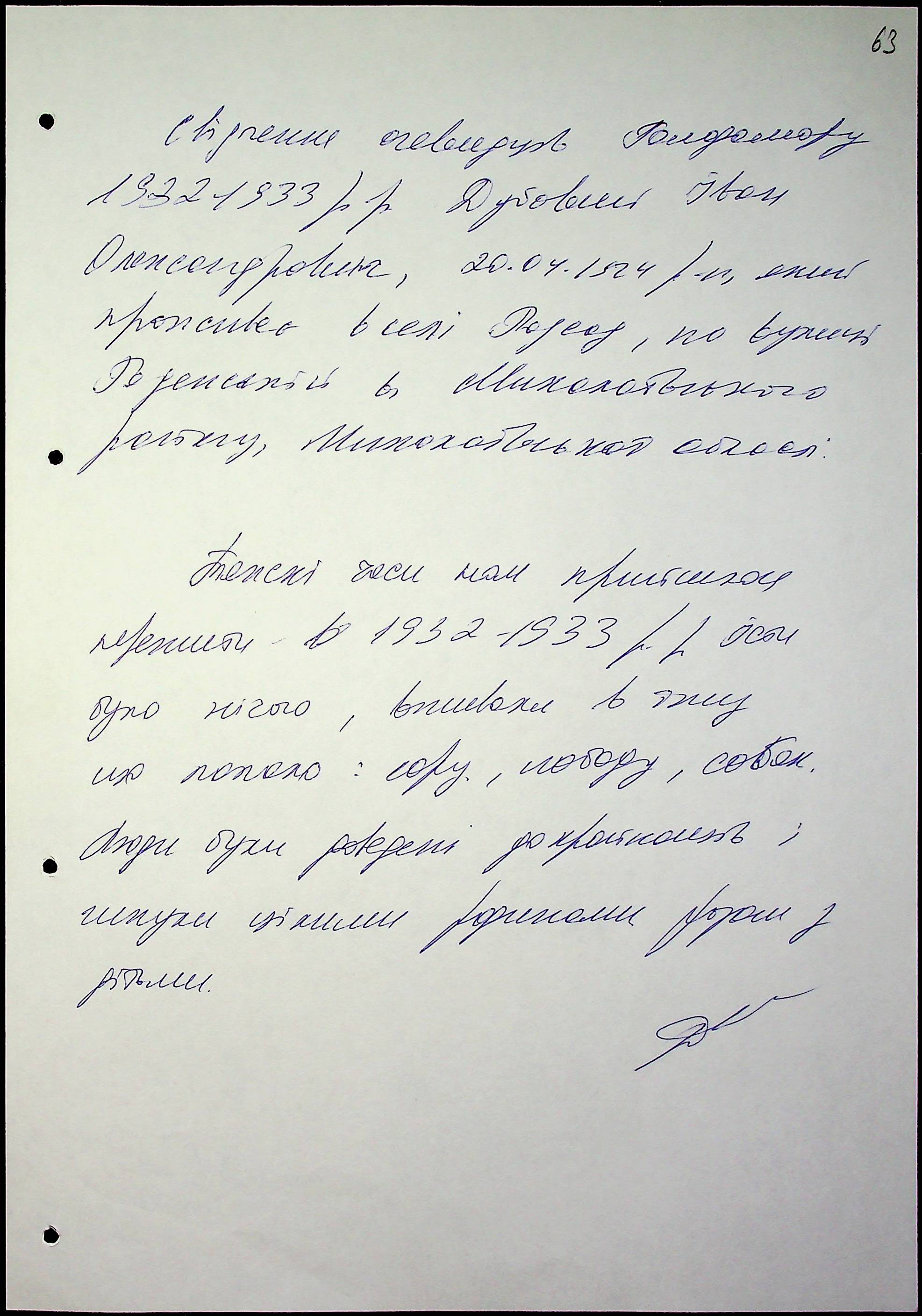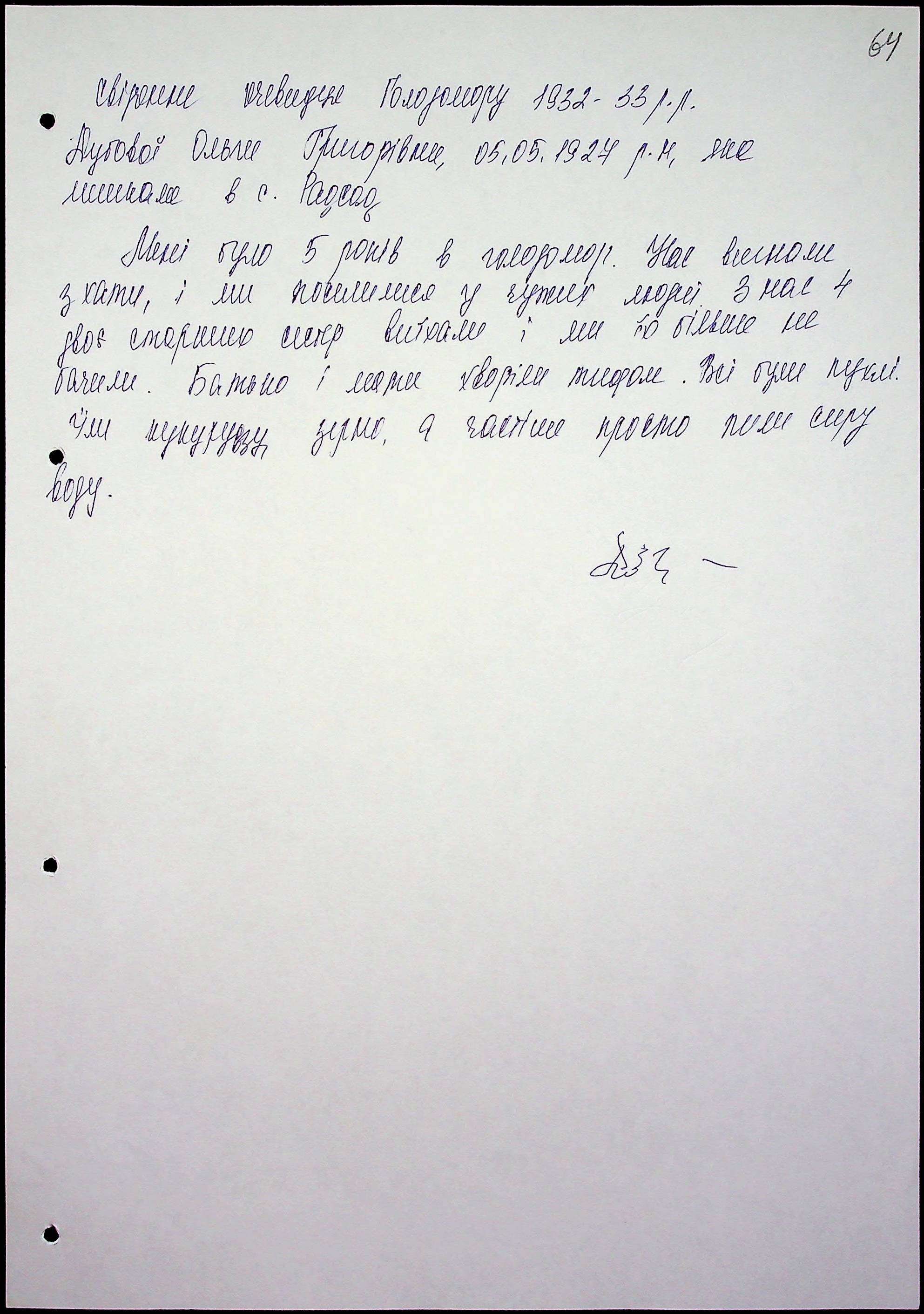 • • • • Справа № 47 “Свідчення очевидців Голодомору 1932-1933 років, які проживають у Миколаївському районі, з прізвищами на літери Д–І”