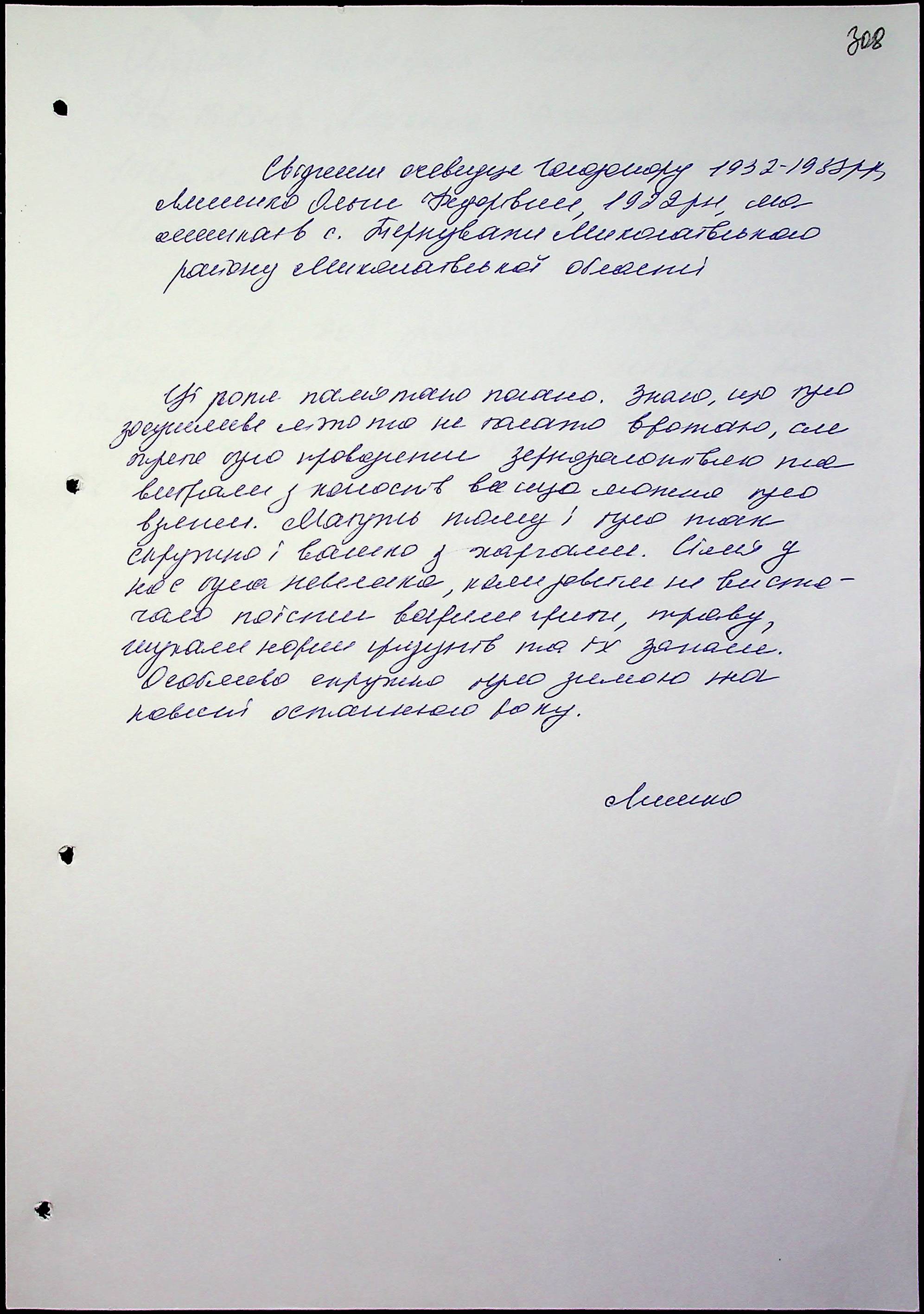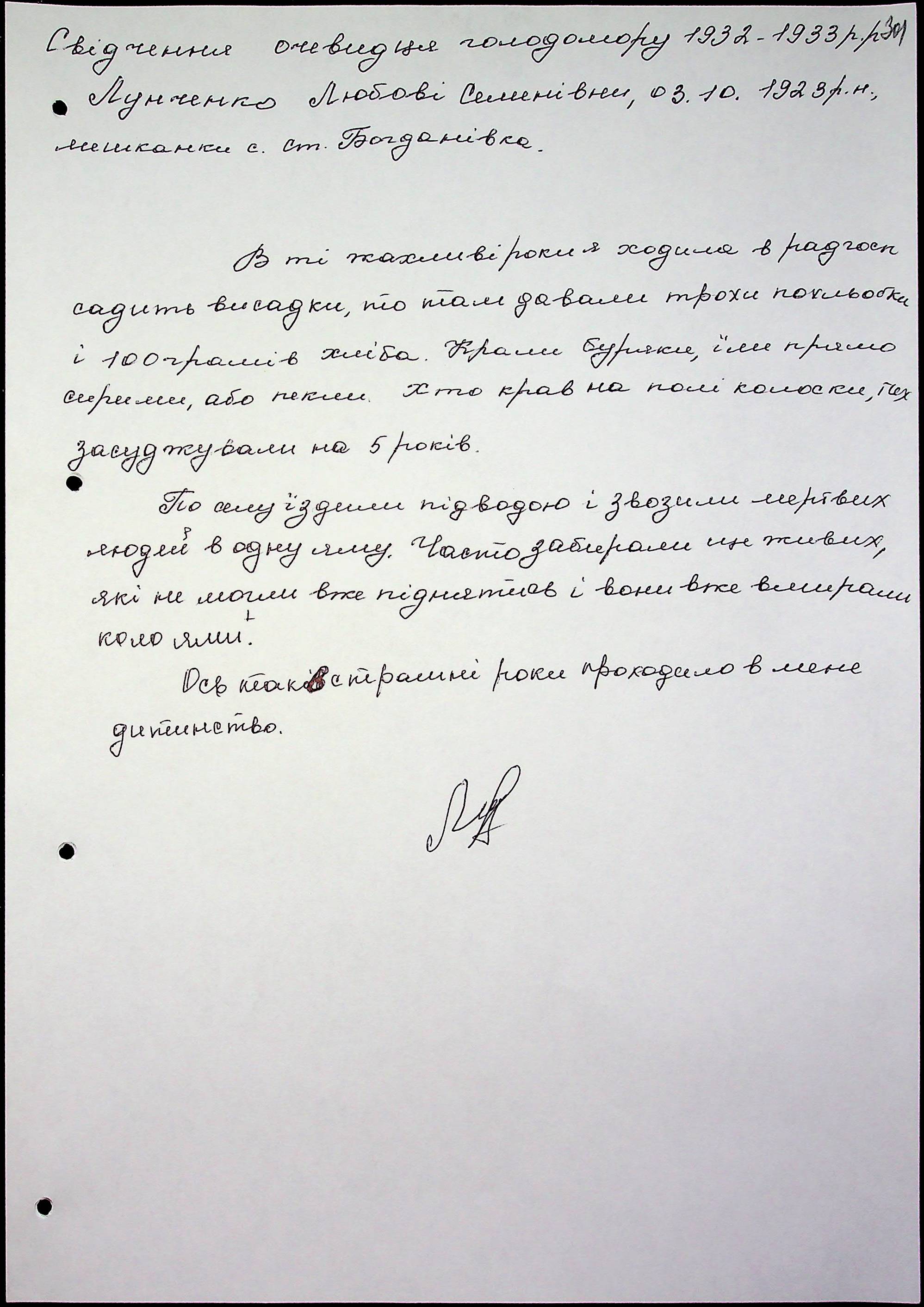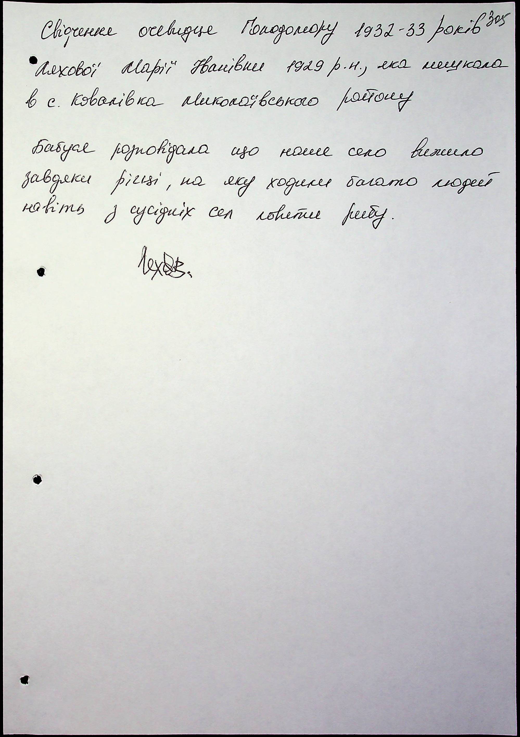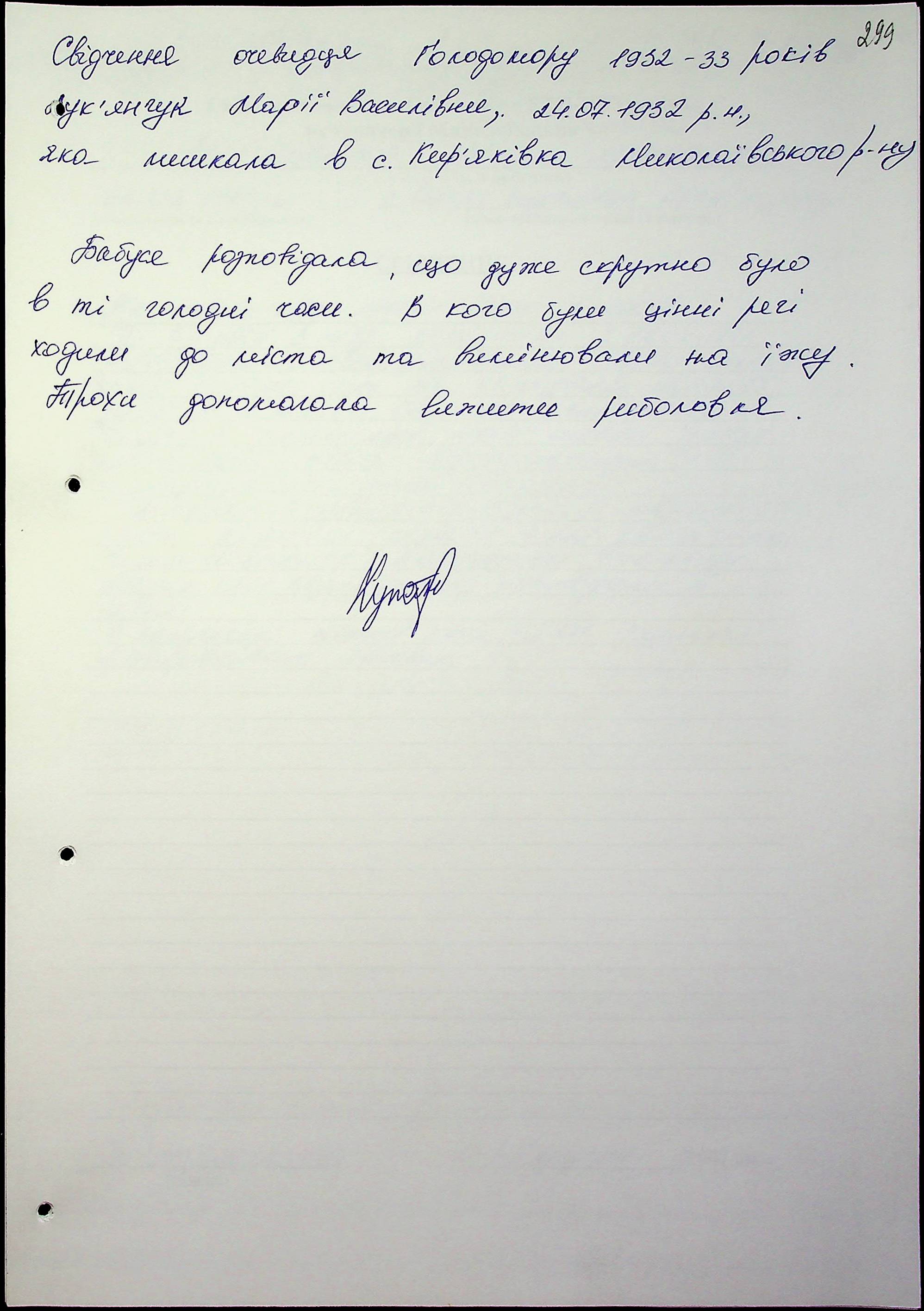 • • • • Справа № 48 “Свідчення очевидців Голодомору 1932-1933 років, які проживають у Миколаївському районі, з прізвищами на літери К–Л”