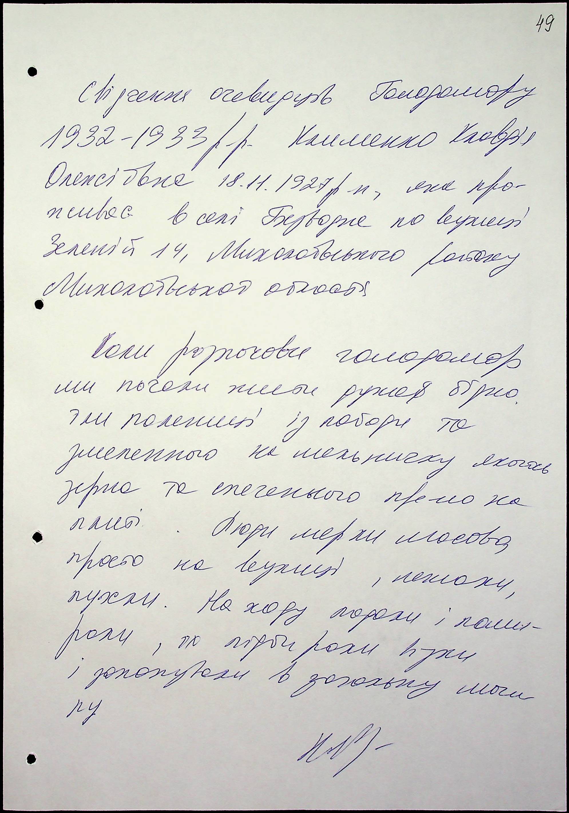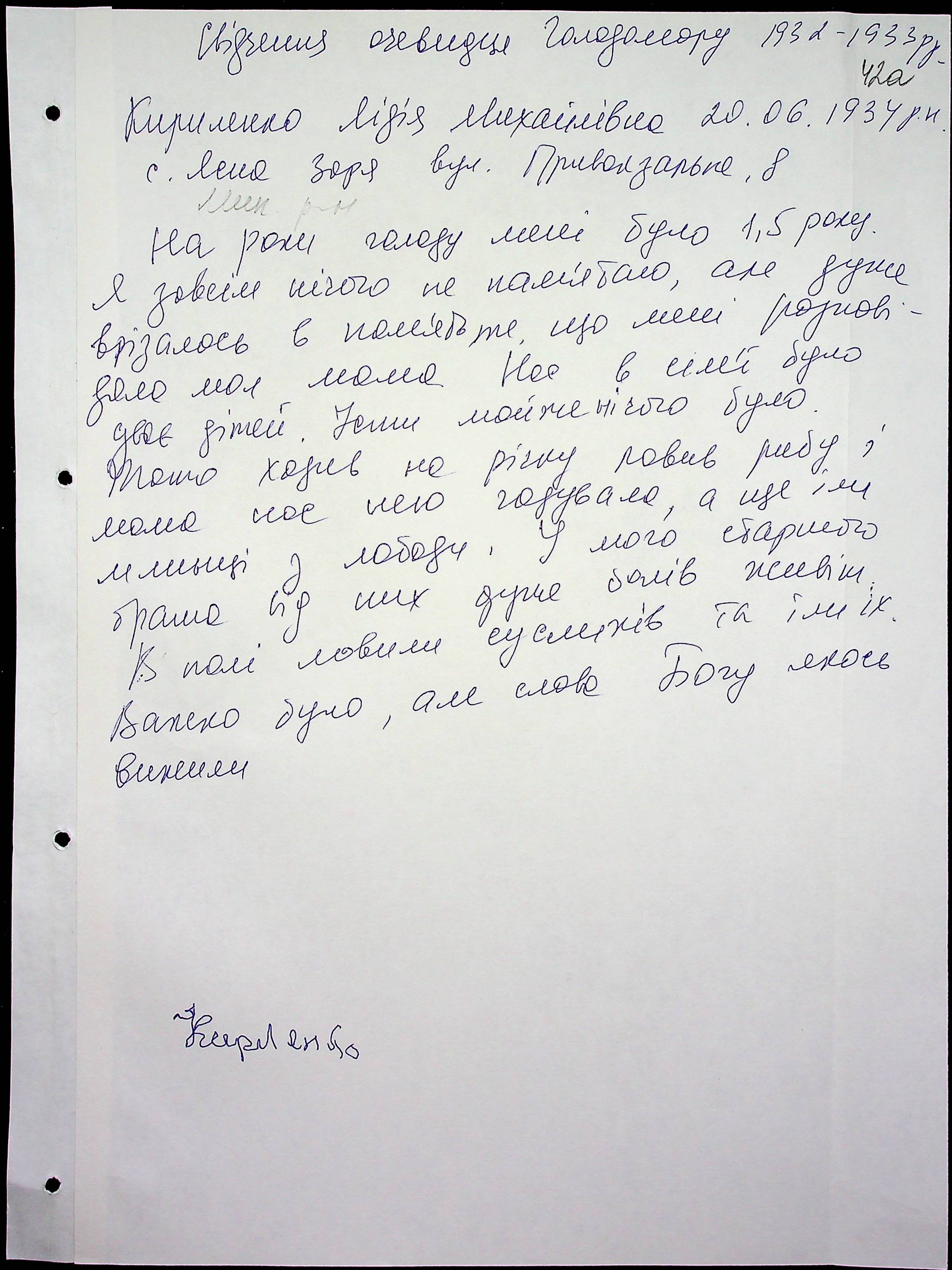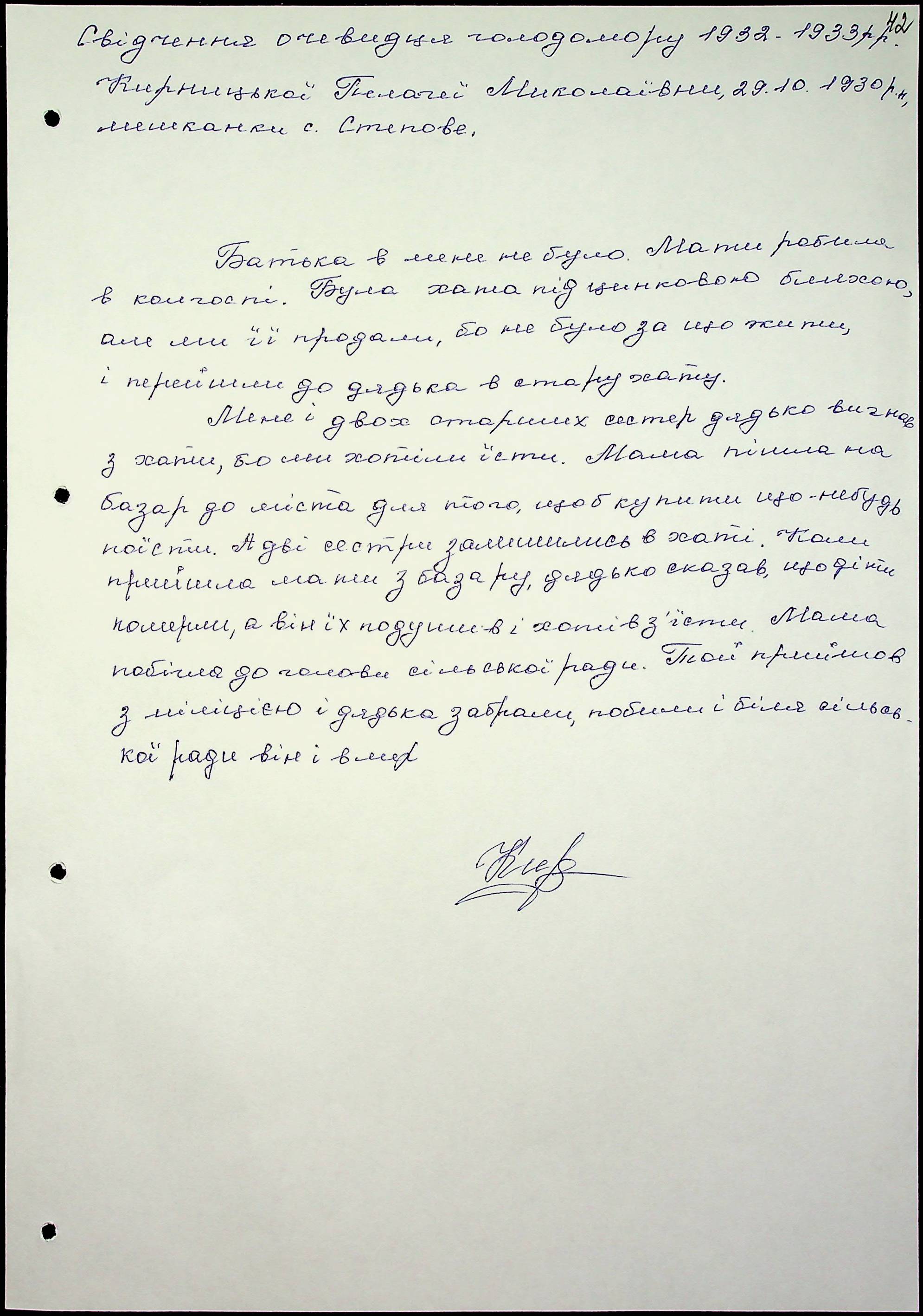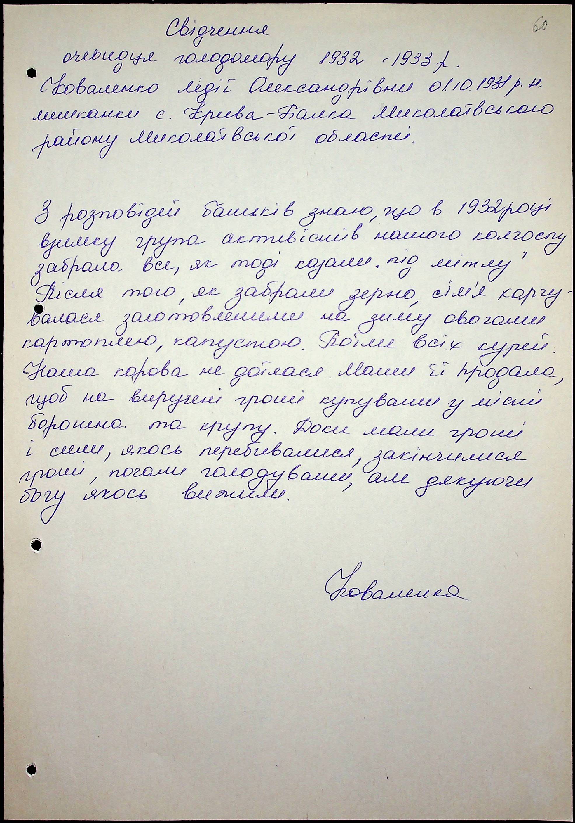 • • • • Справа № 48 “Свідчення очевидців Голодомору 1932-1933 років, які проживають у Миколаївському районі, з прізвищами на літери К–Л”