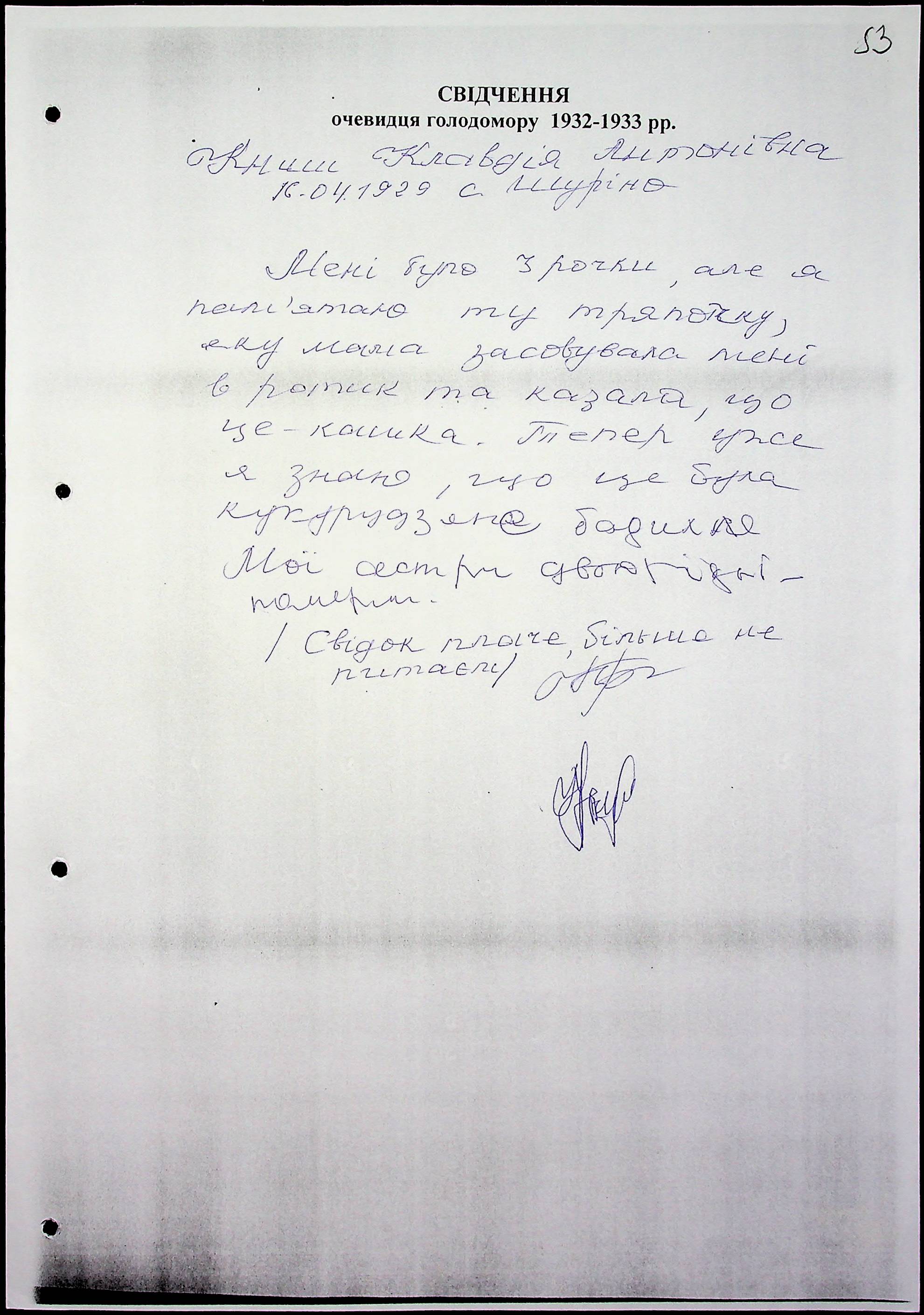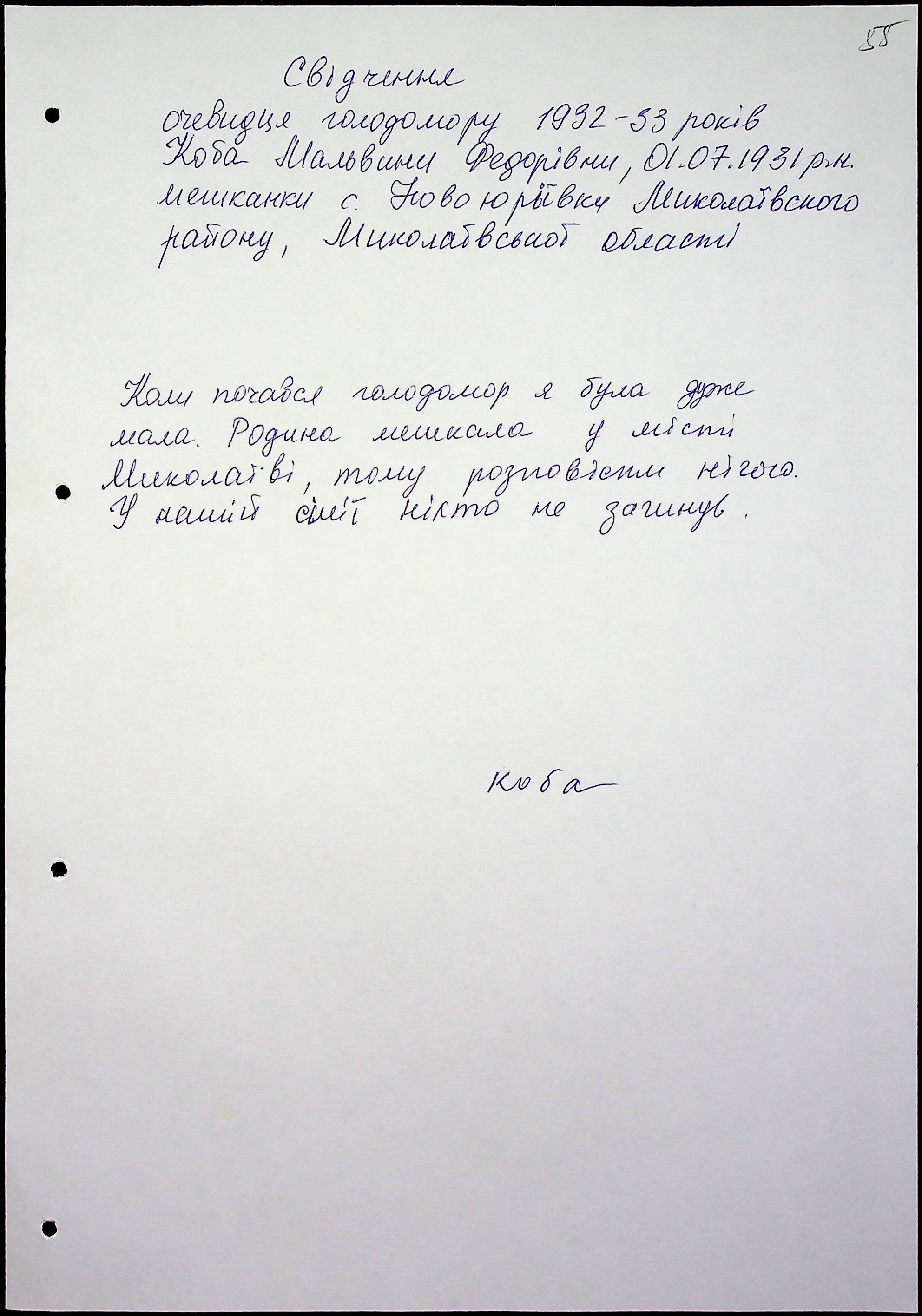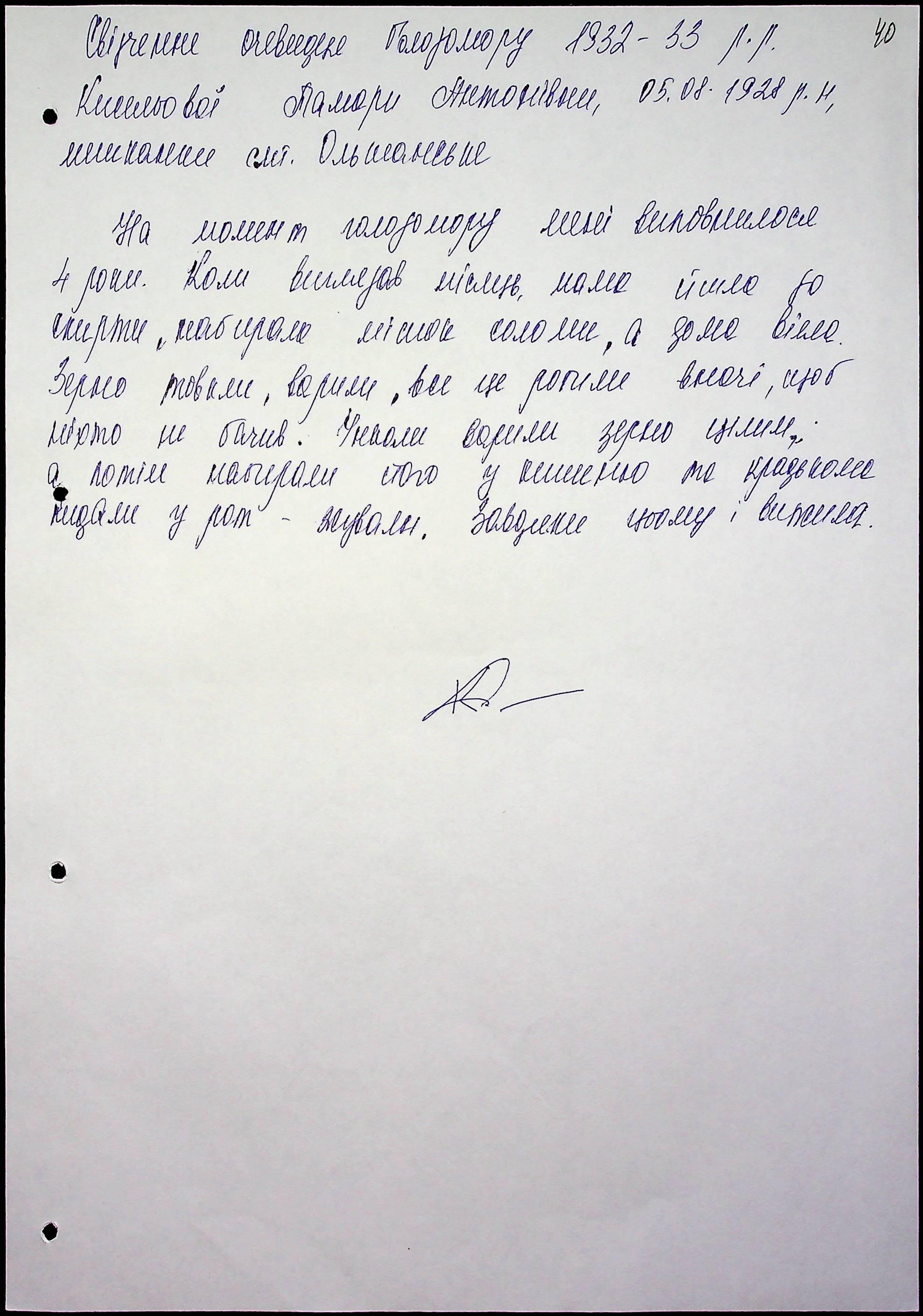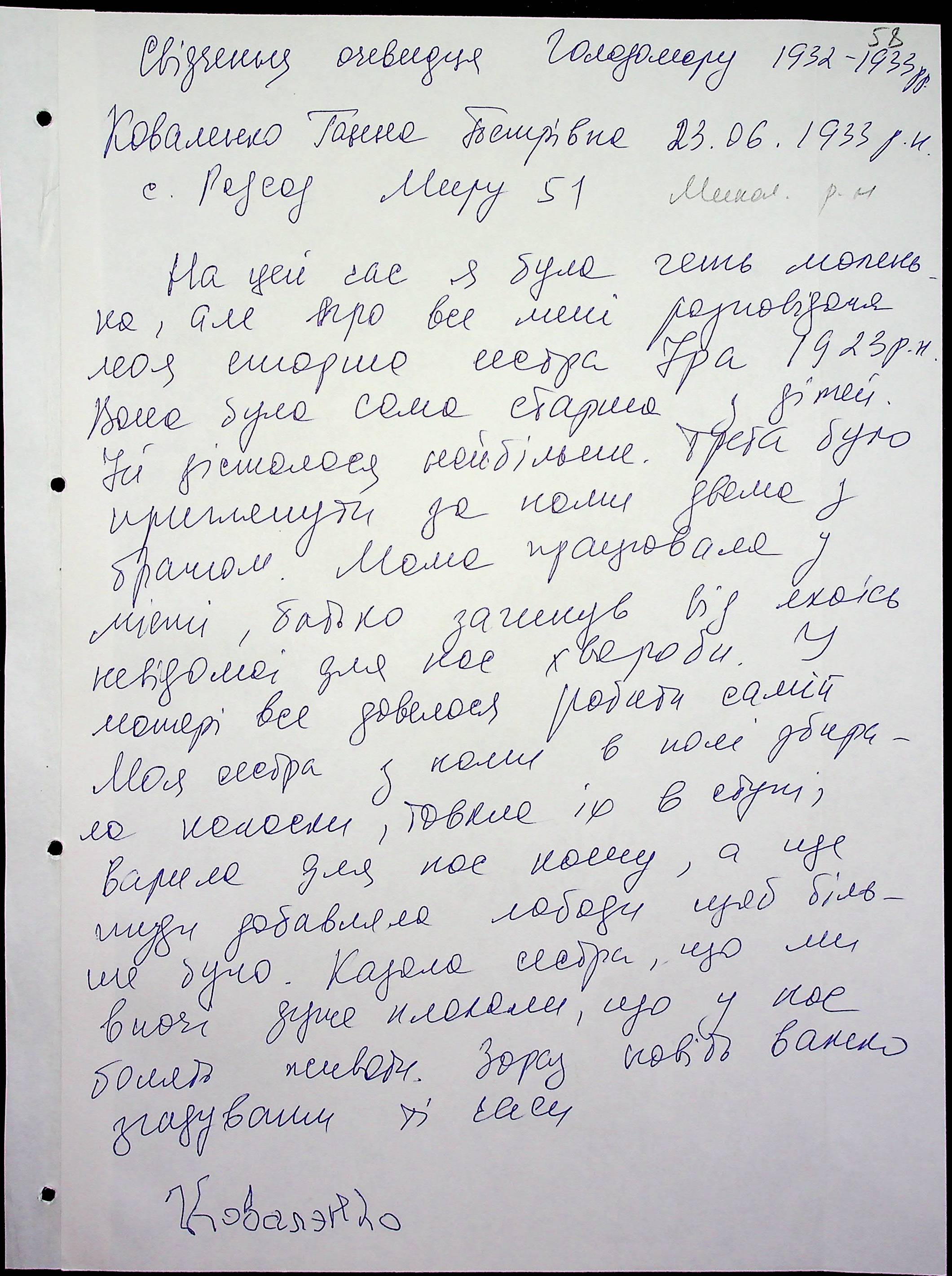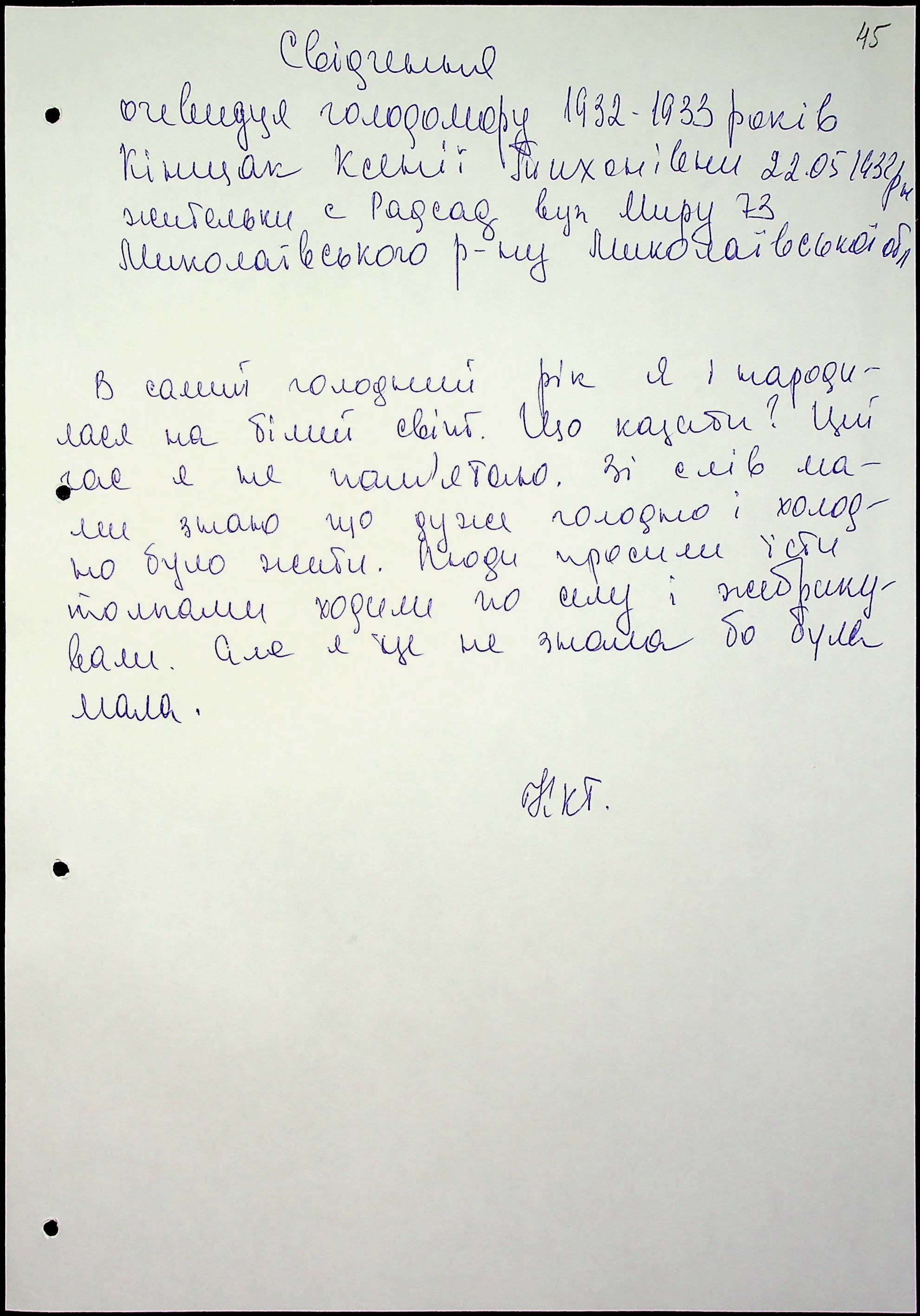 • • • • Справа № 48 “Свідчення очевидців Голодомору 1932-1933 років, які проживають у Миколаївському районі, з прізвищами на літери К–Л”