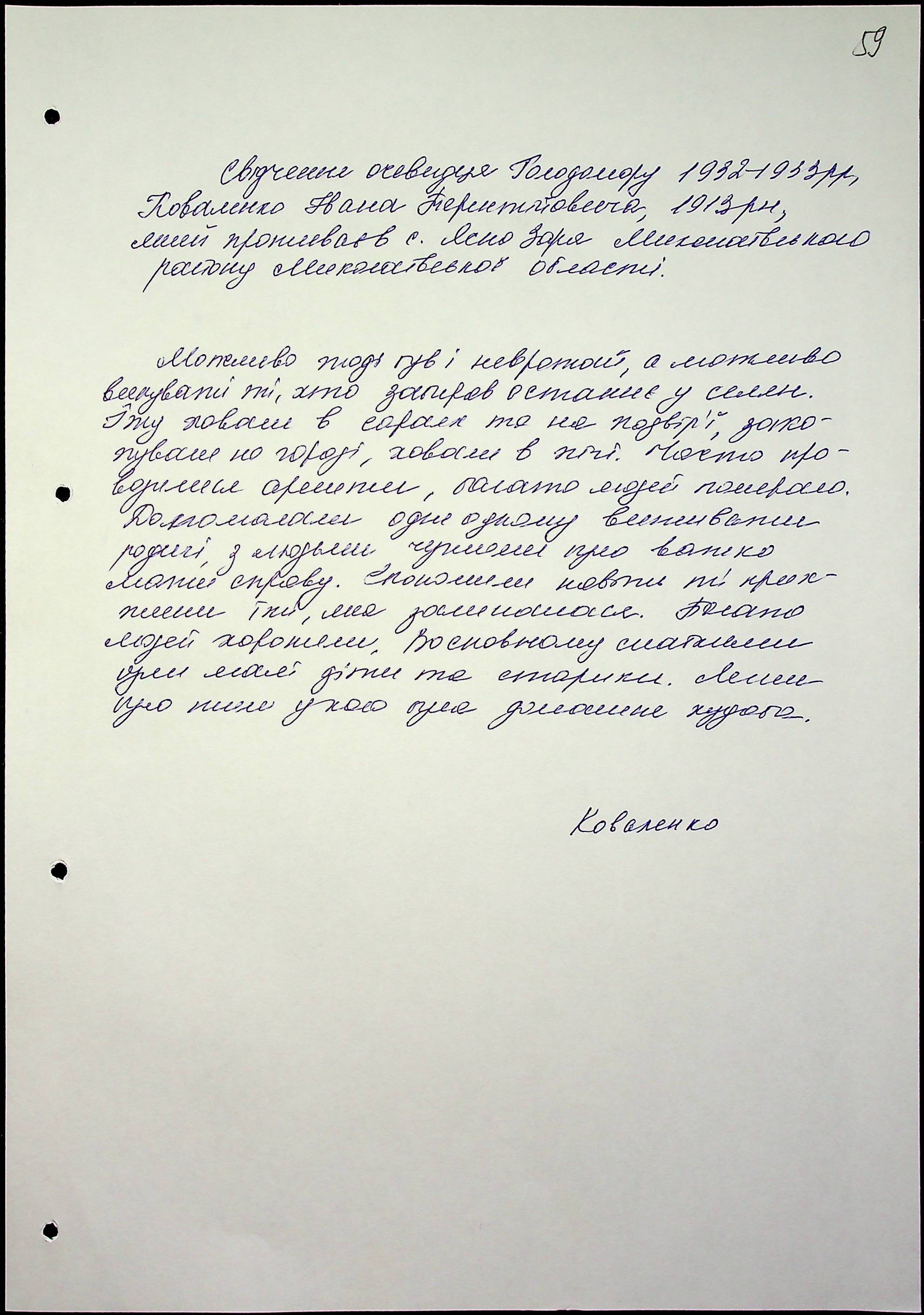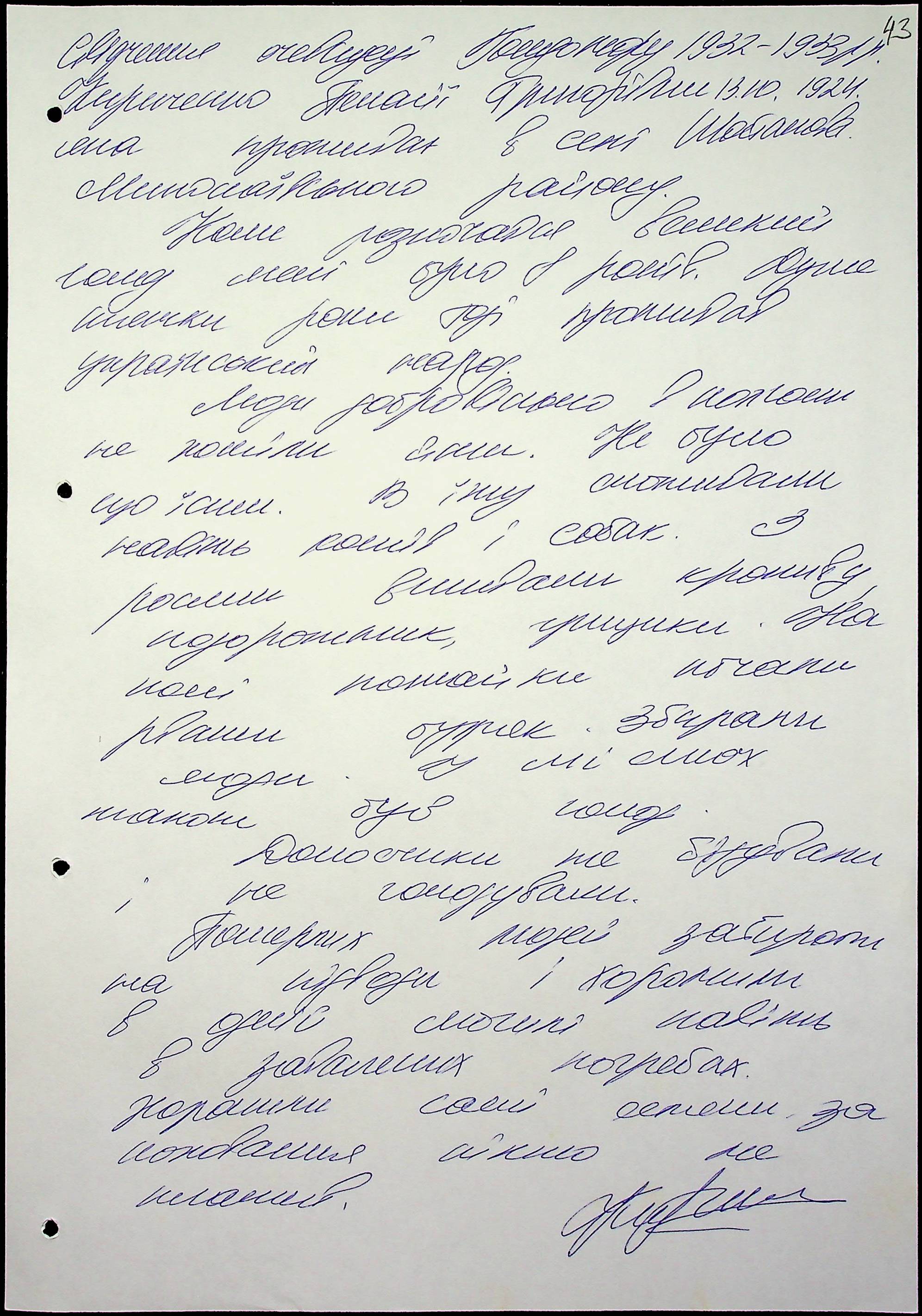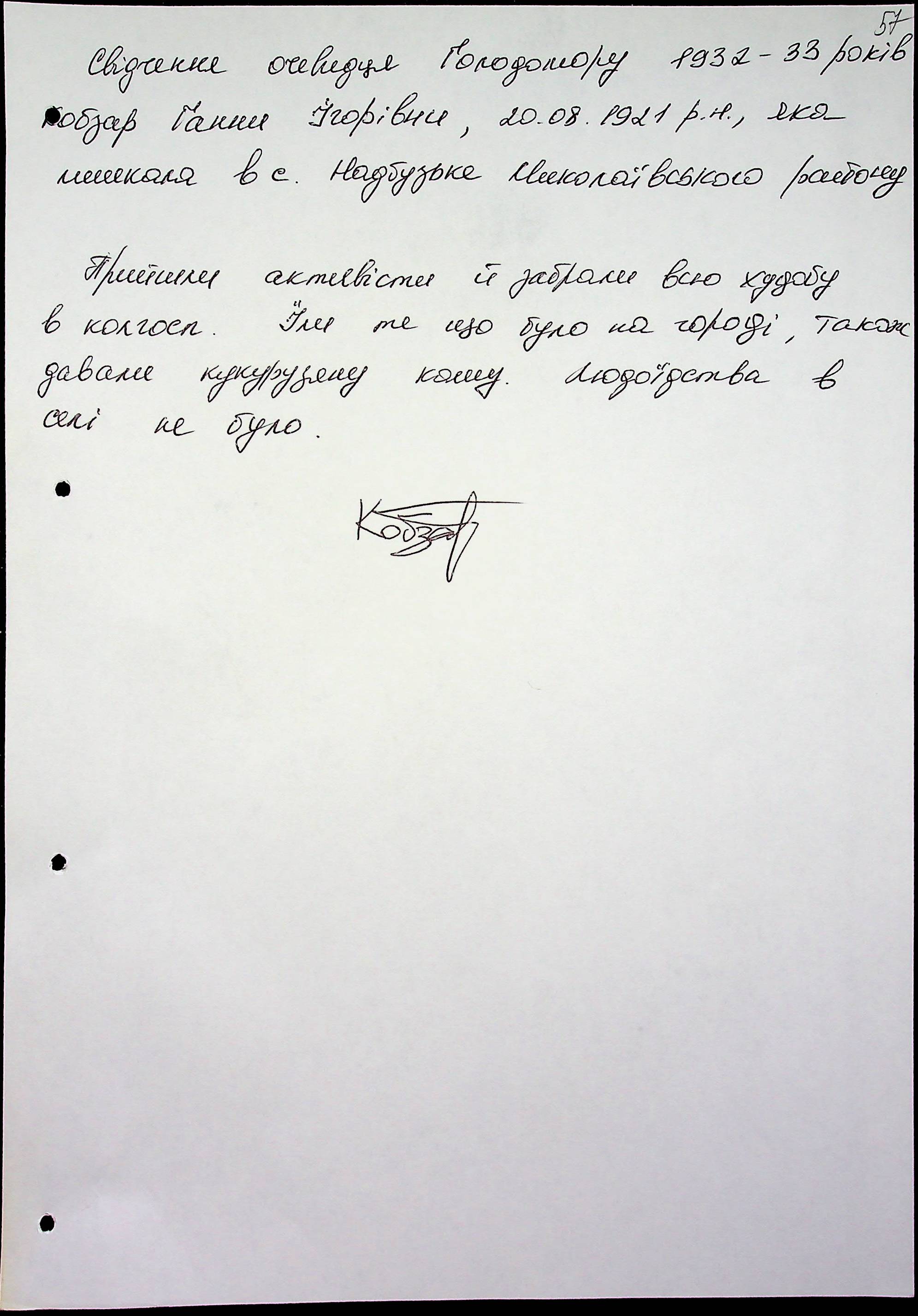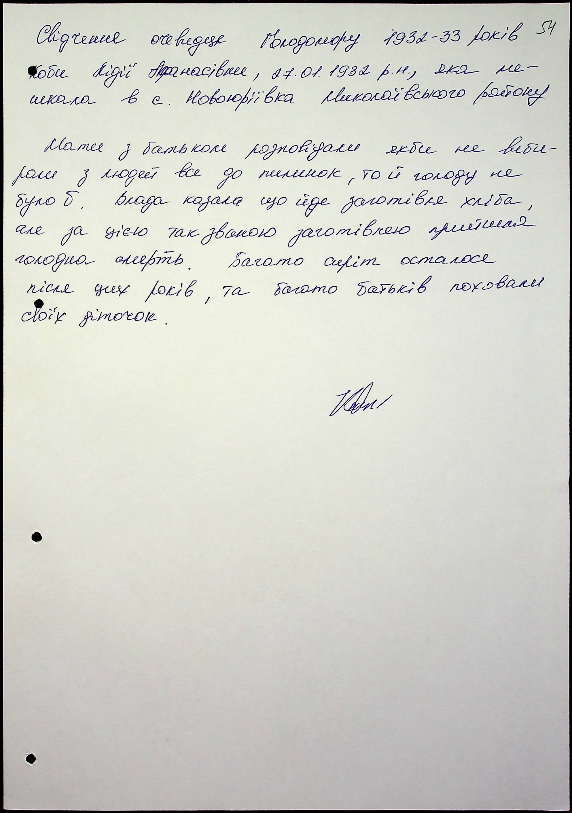 • • • • Справа № 48 “Свідчення очевидців Голодомору 1932-1933 років, які проживають у Миколаївському районі, з прізвищами на літери К–Л”