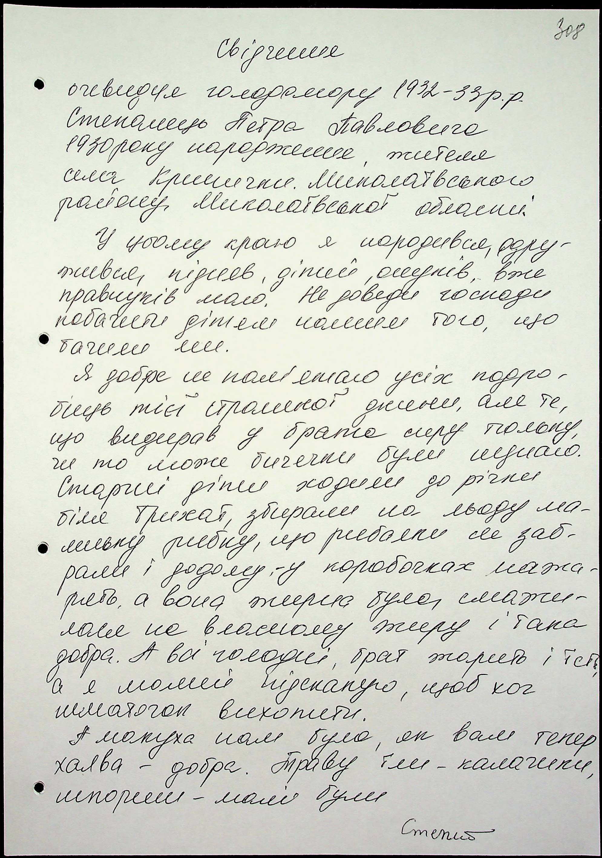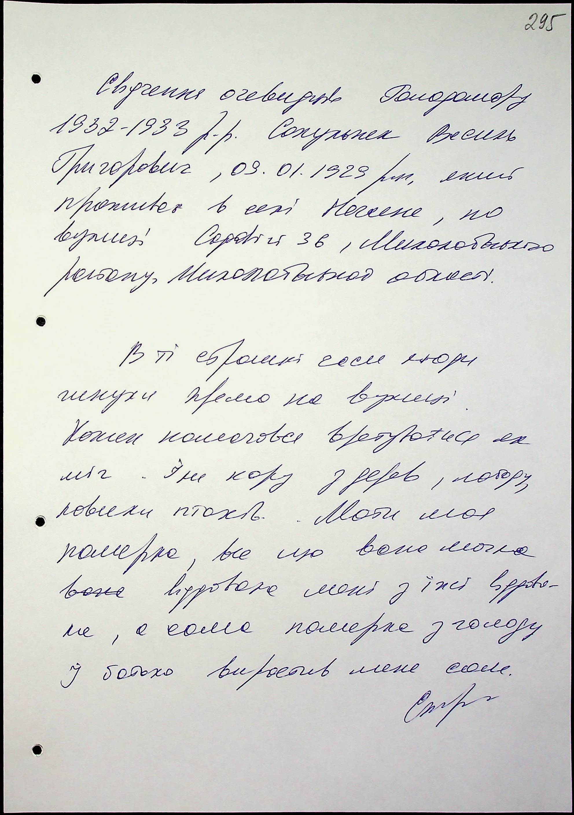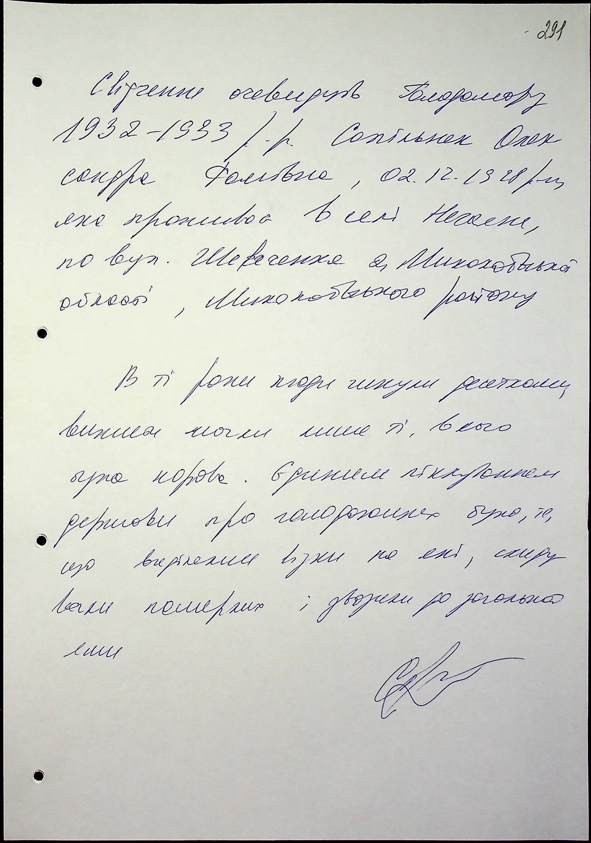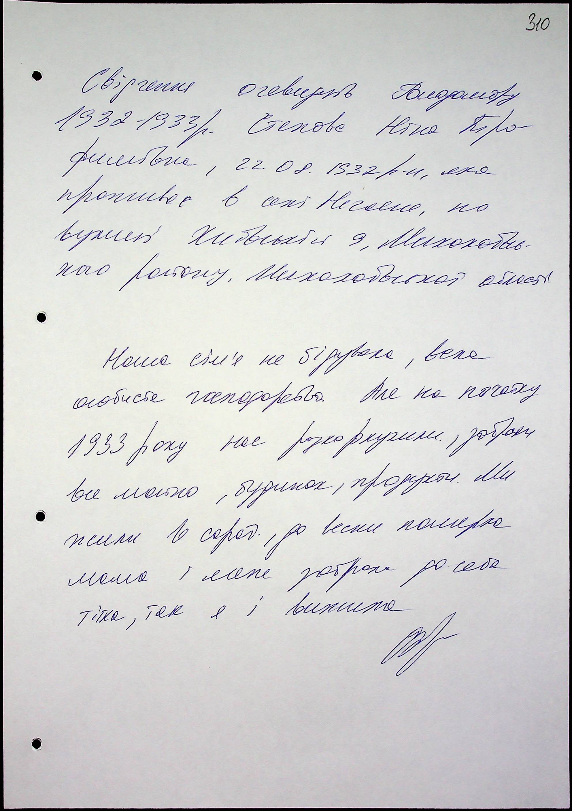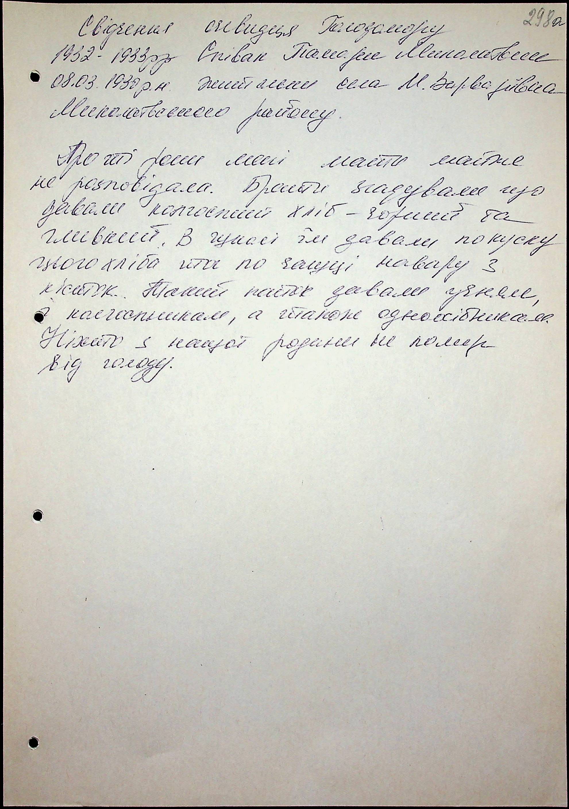 • • • • Справа № 50 “Свідчення очевидців Голодомору 1932-1933 років, які проживають у Миколаївському районі, з прізвищами на літери П–С”