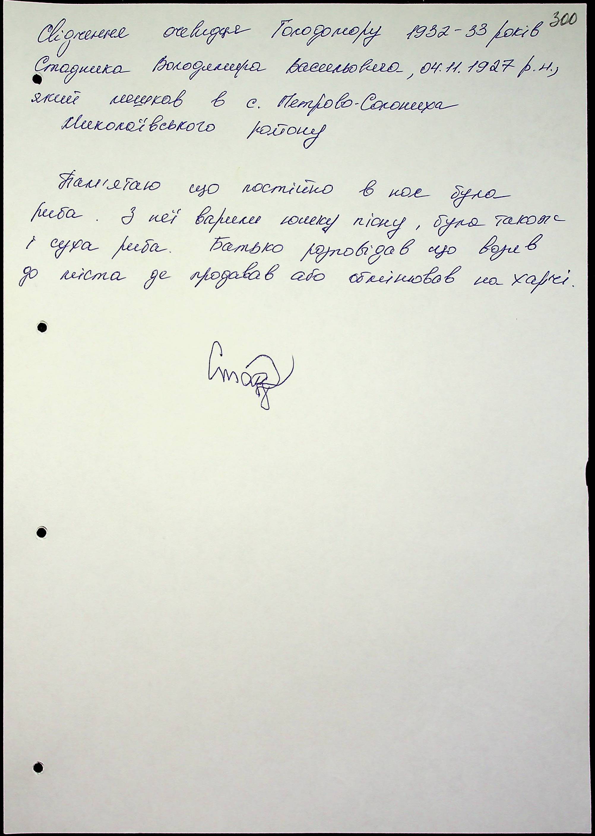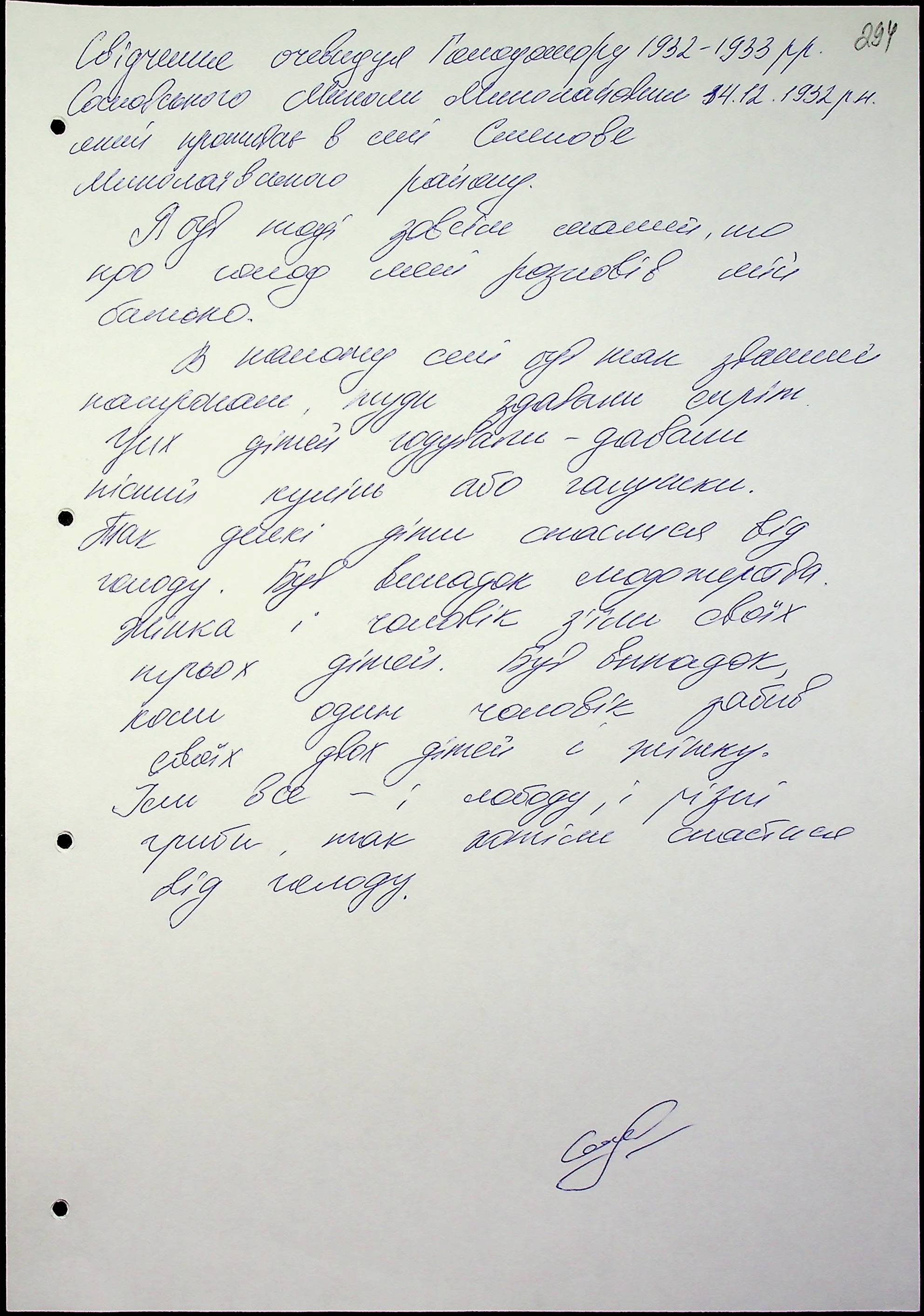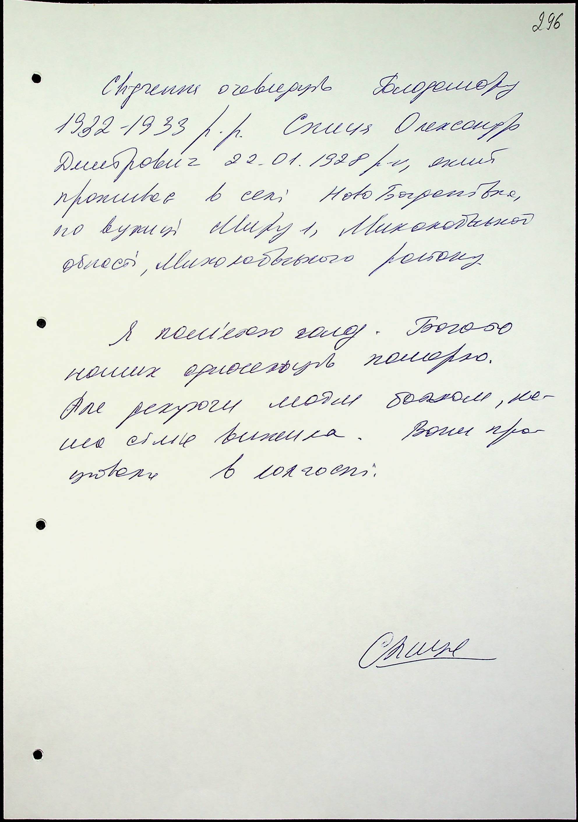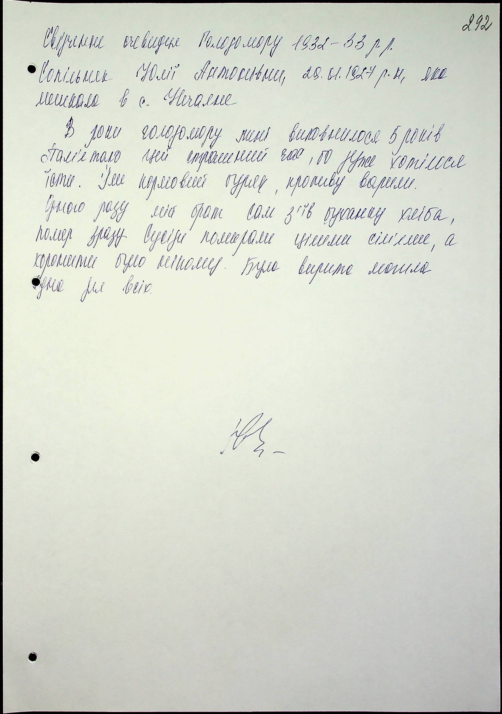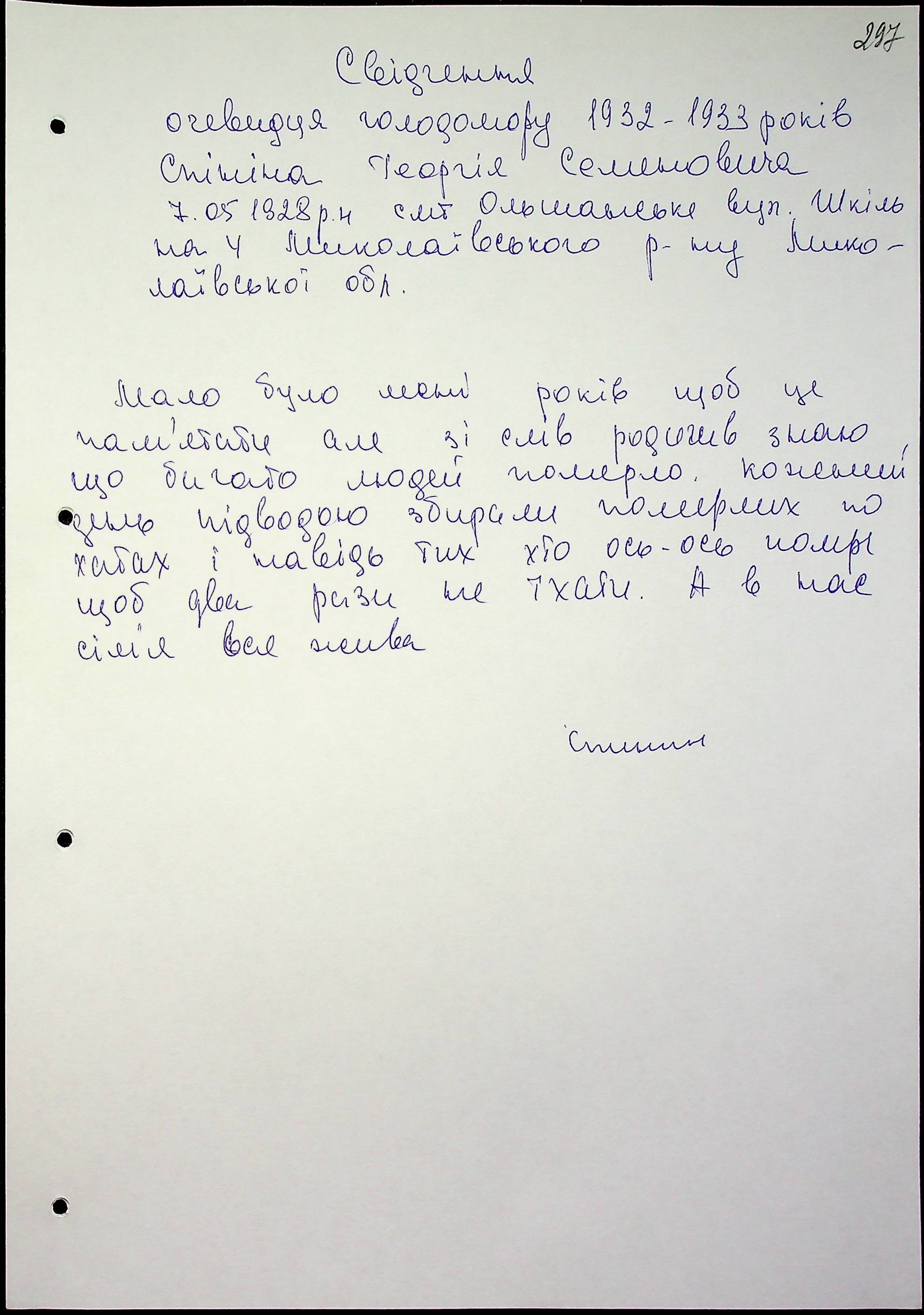 • • • • Справа № 50 “Свідчення очевидців Голодомору 1932-1933 років, які проживають у Миколаївському районі, з прізвищами на літери П–С”