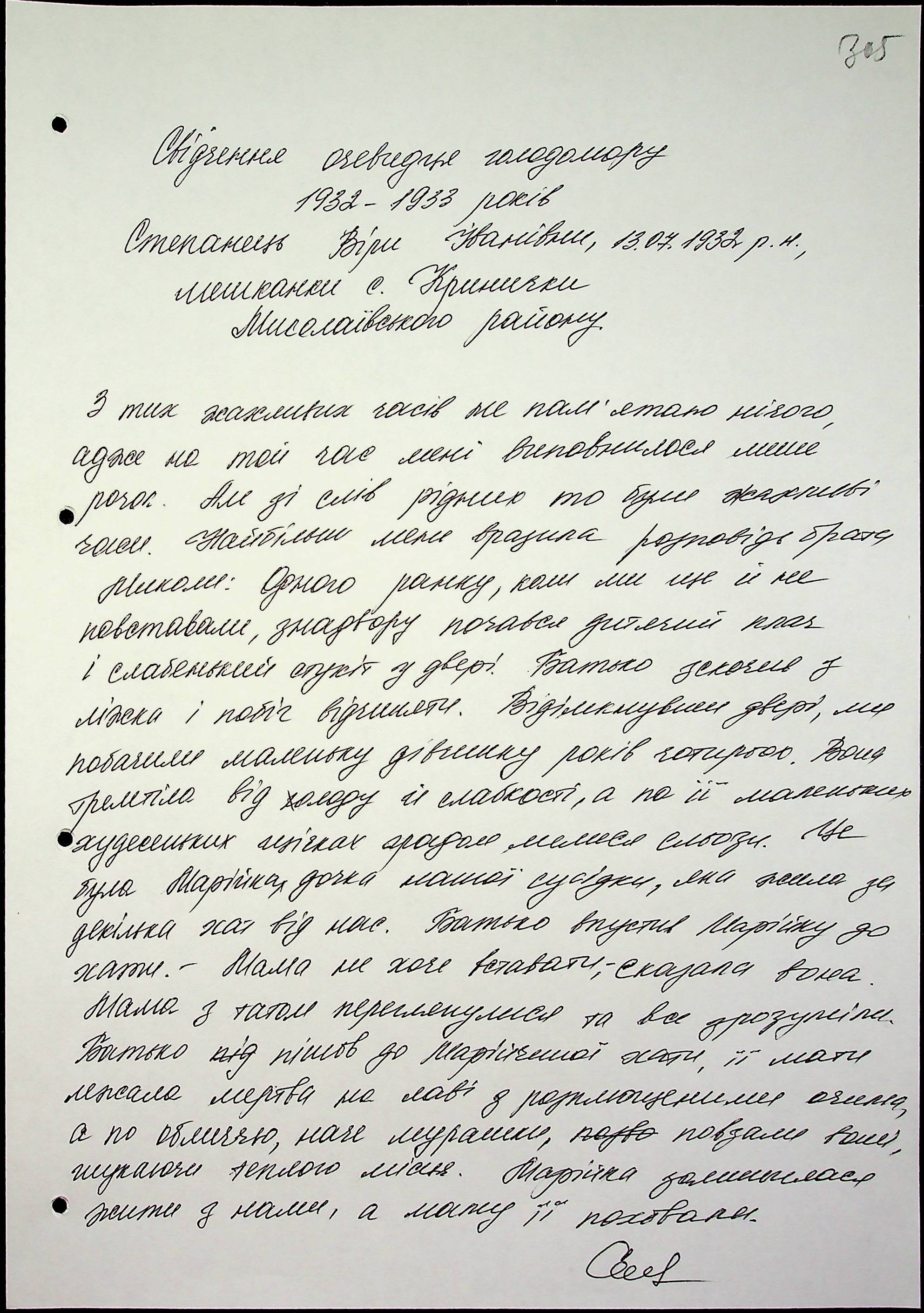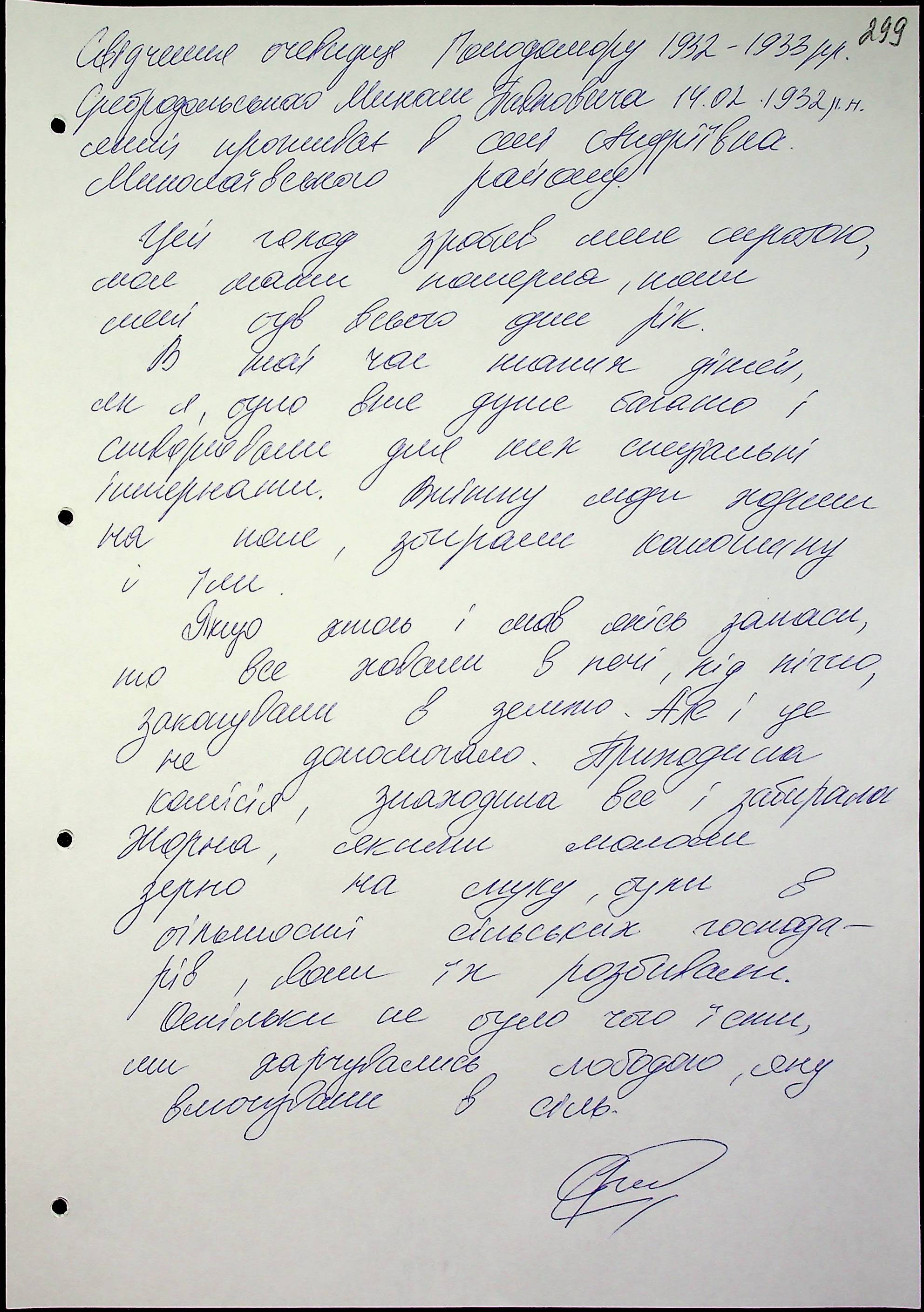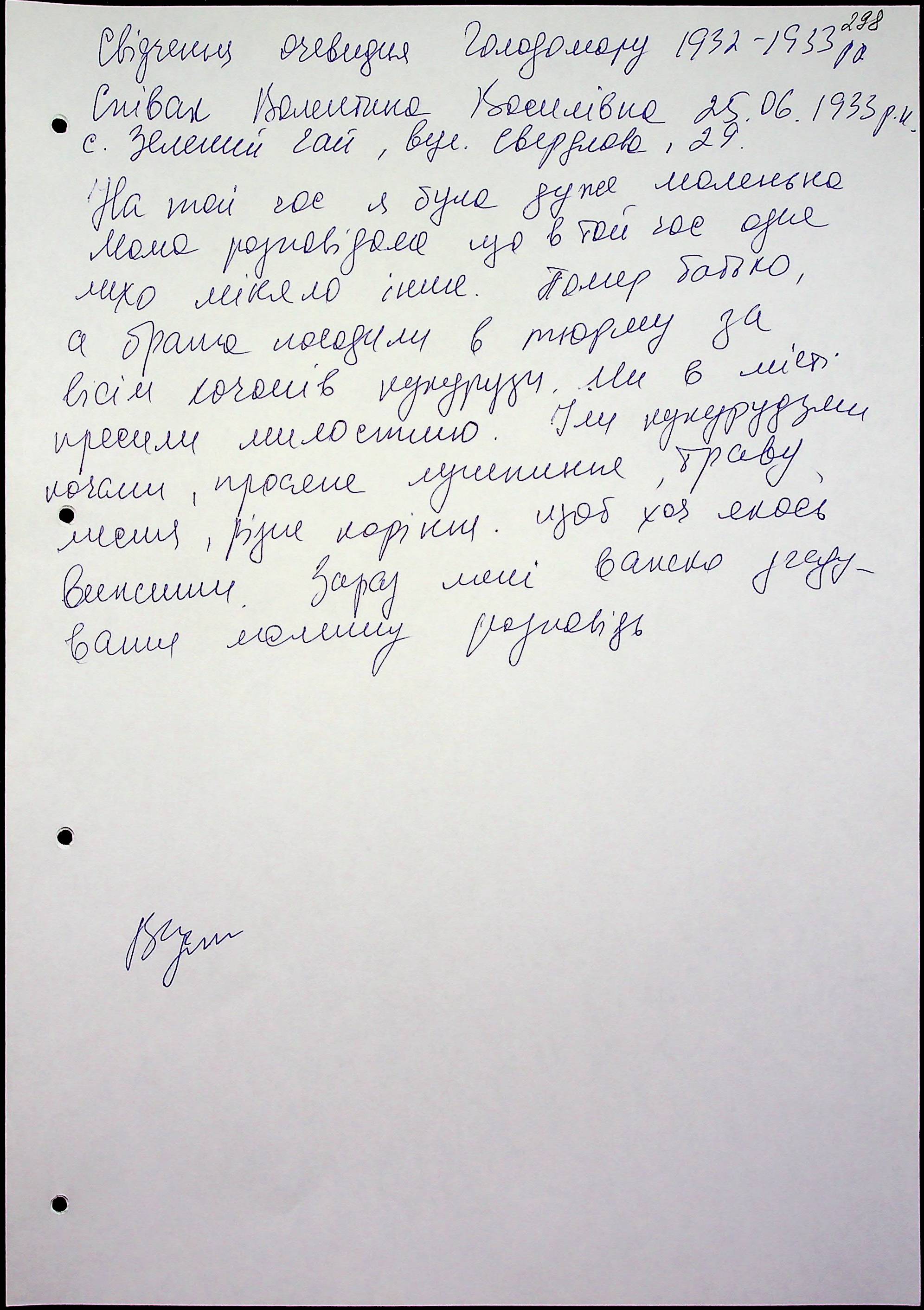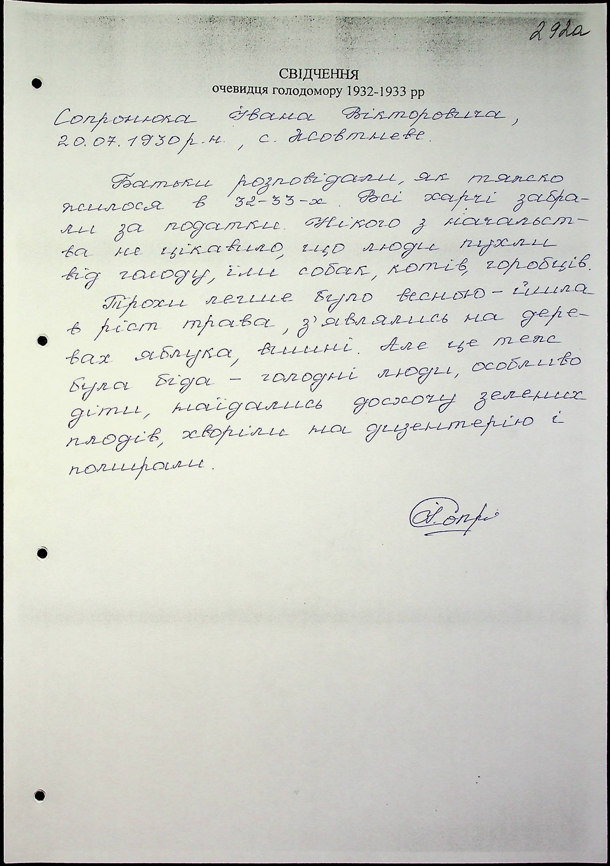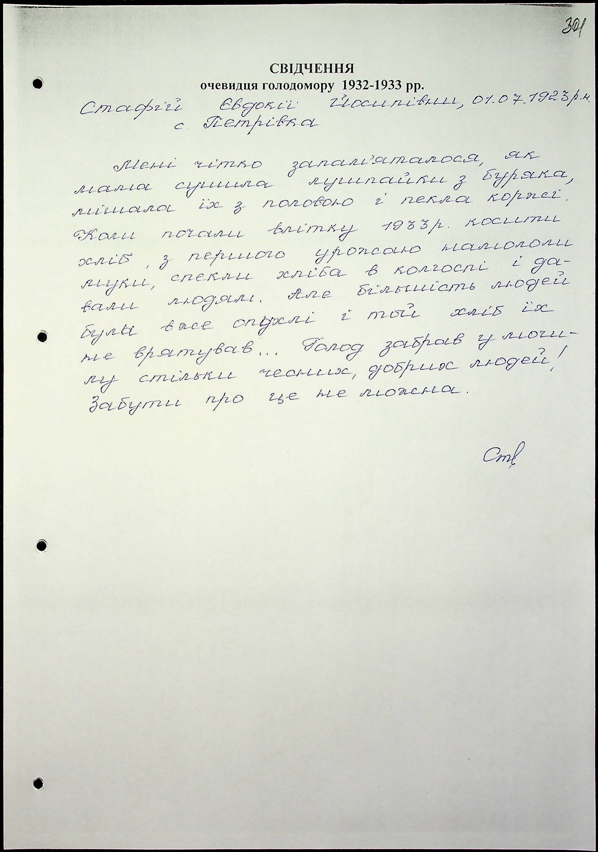 • • • • Справа № 50 “Свідчення очевидців Голодомору 1932-1933 років, які проживають у Миколаївському районі, з прізвищами на літери П–С”