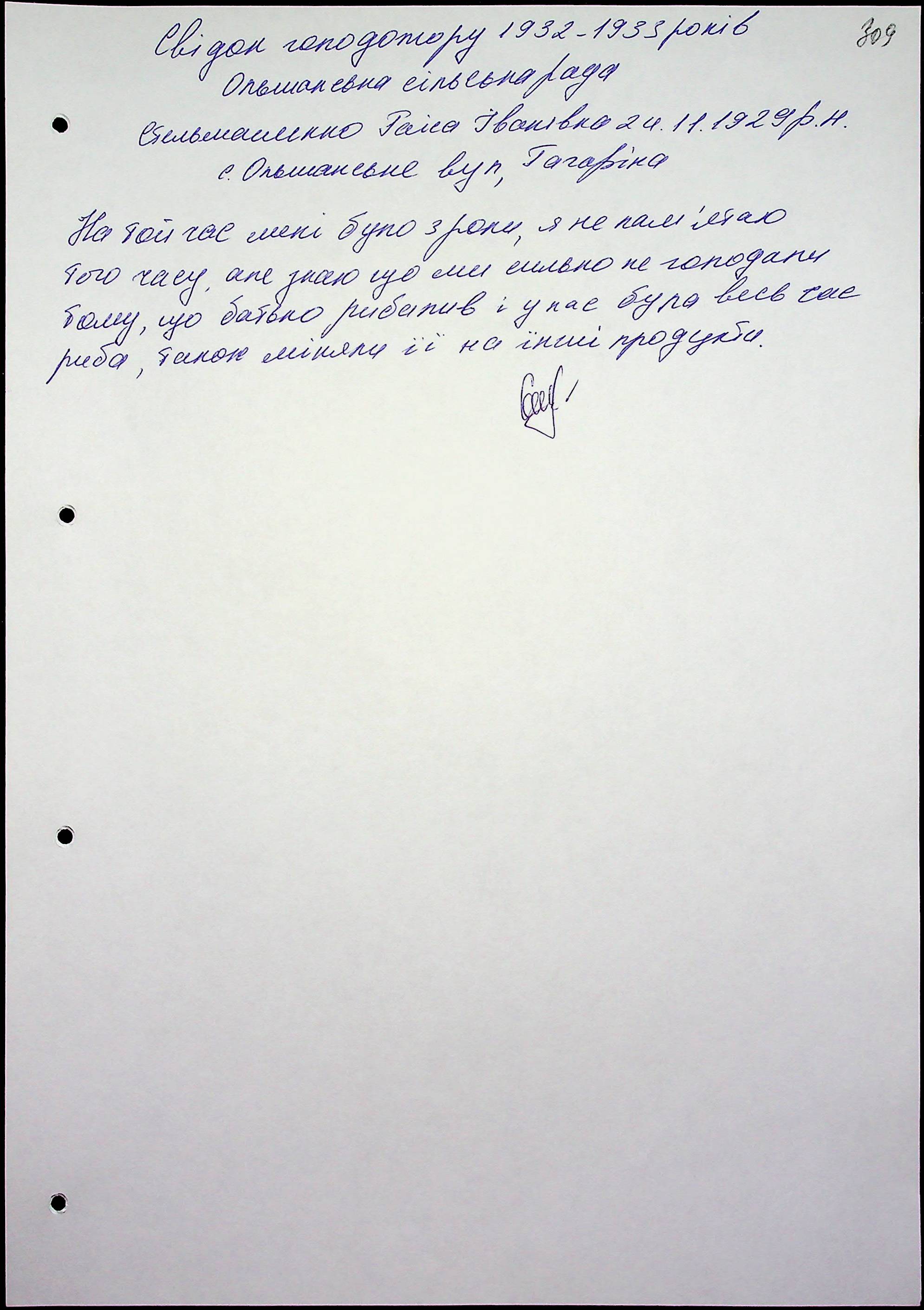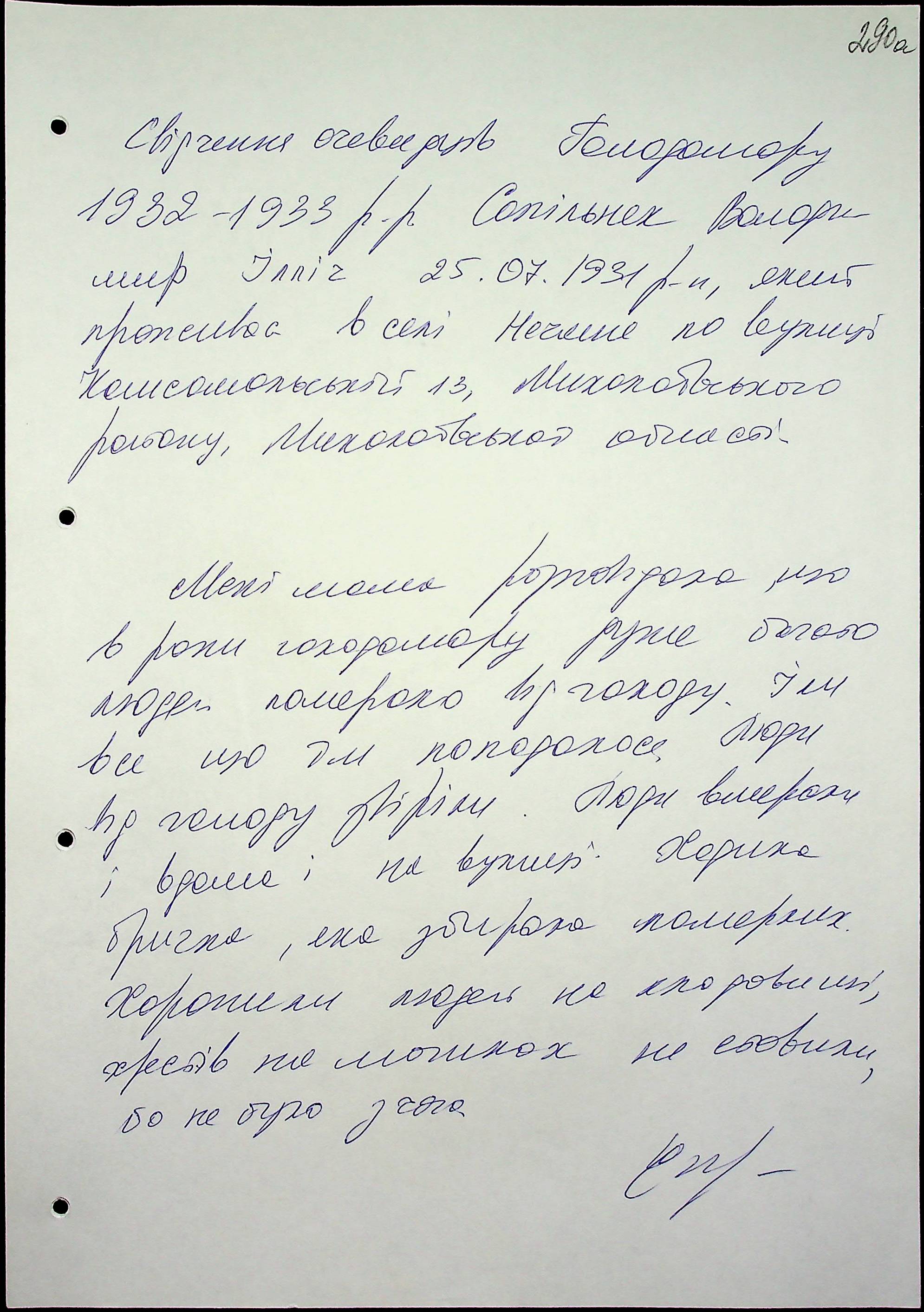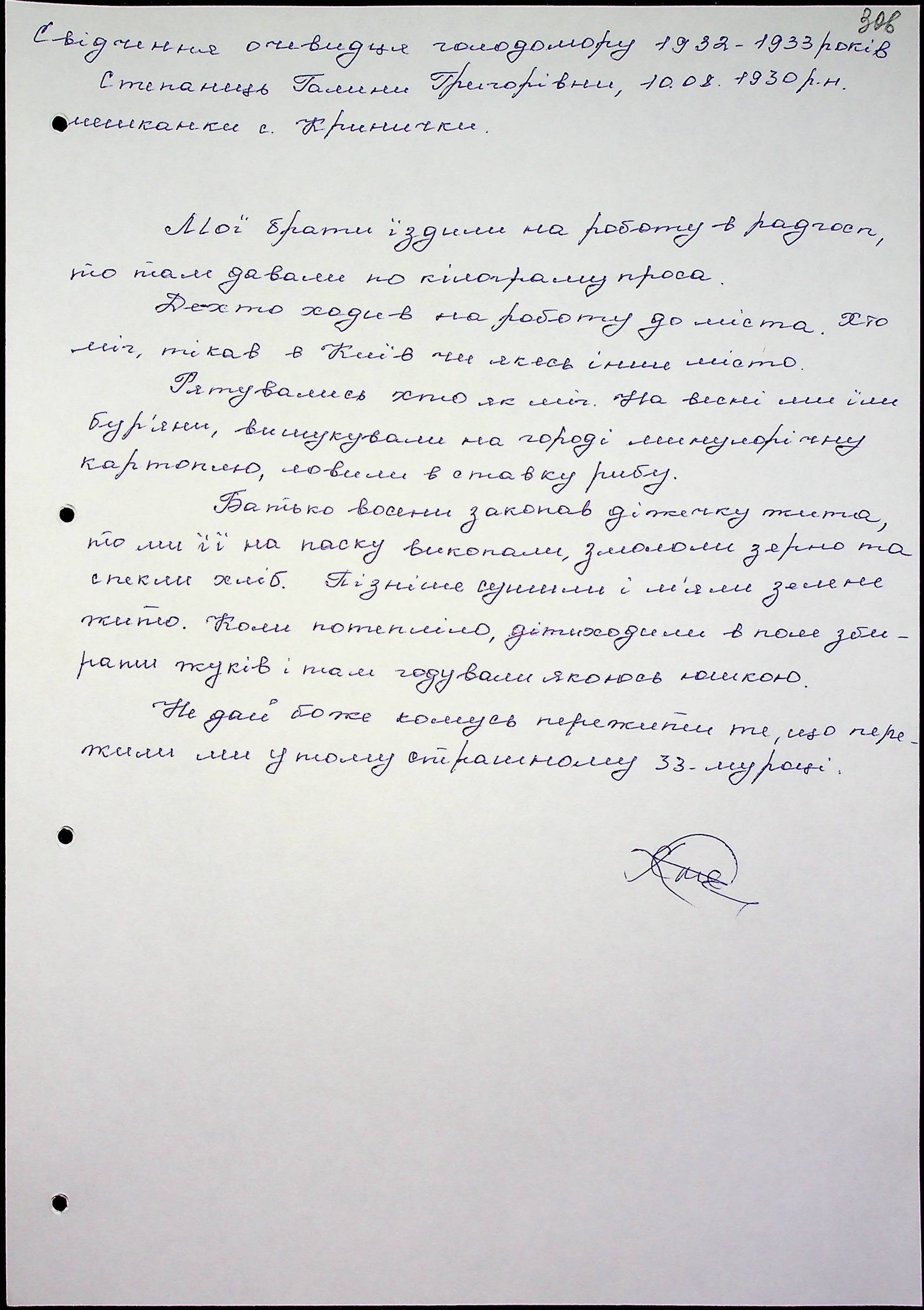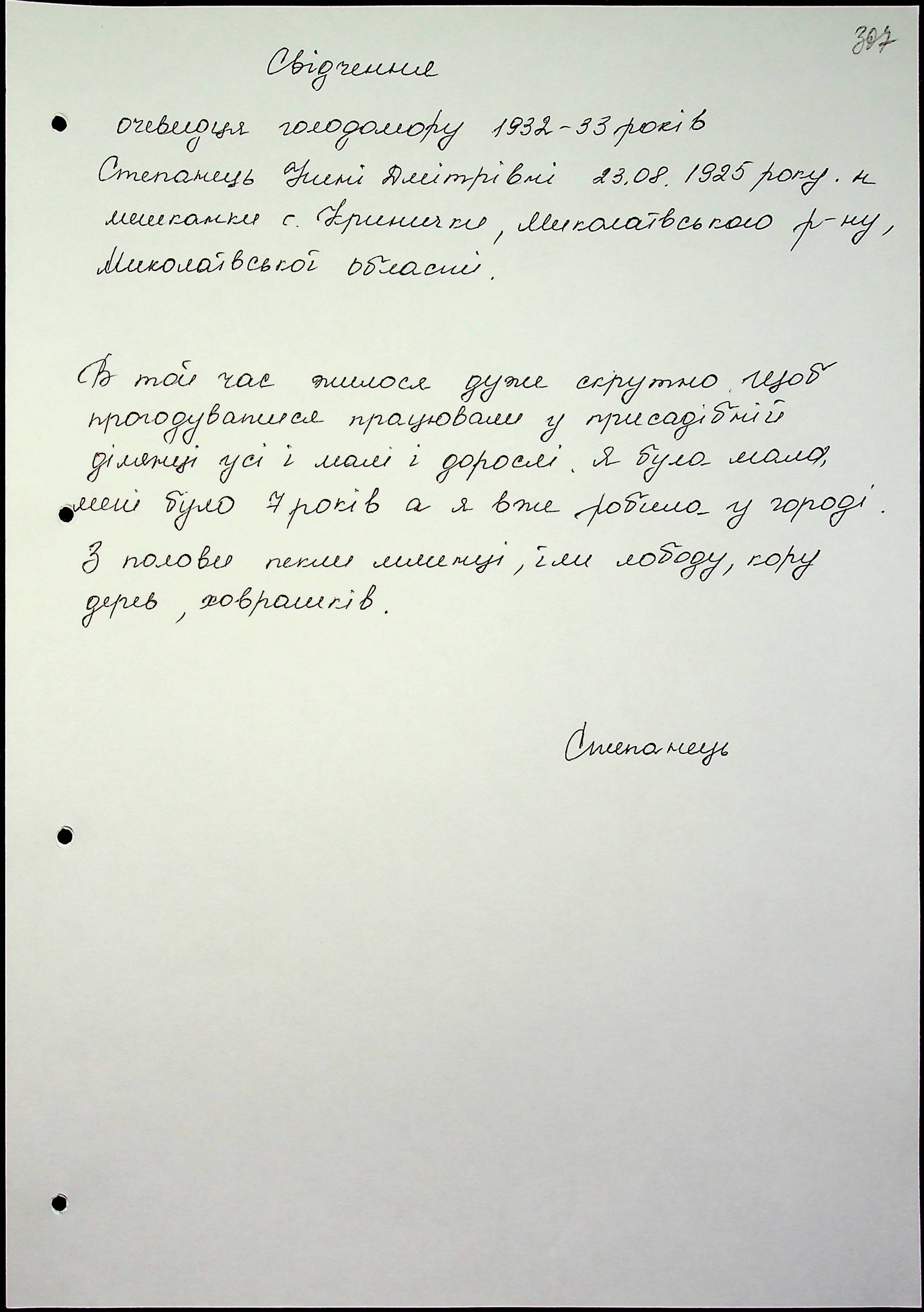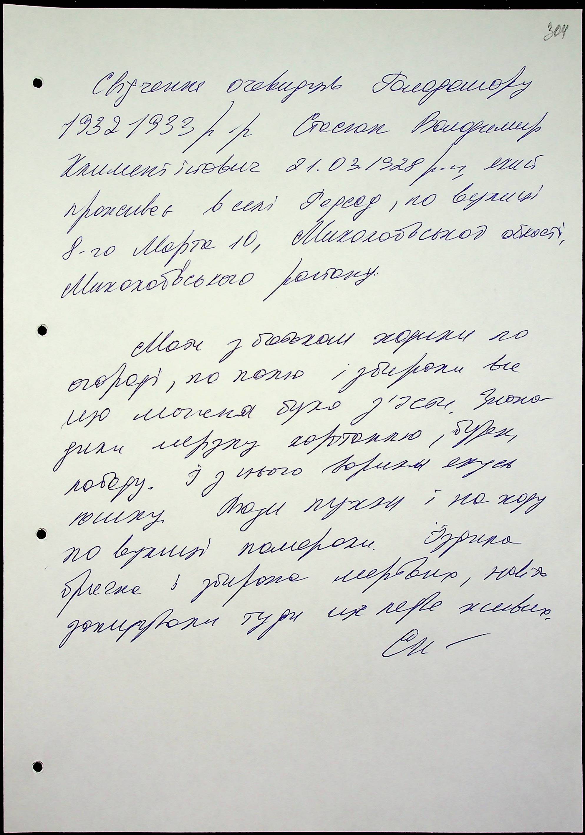 • • • • Справа № 50 “Свідчення очевидців Голодомору 1932-1933 років, які проживають у Миколаївському районі, з прізвищами на літери П–С”