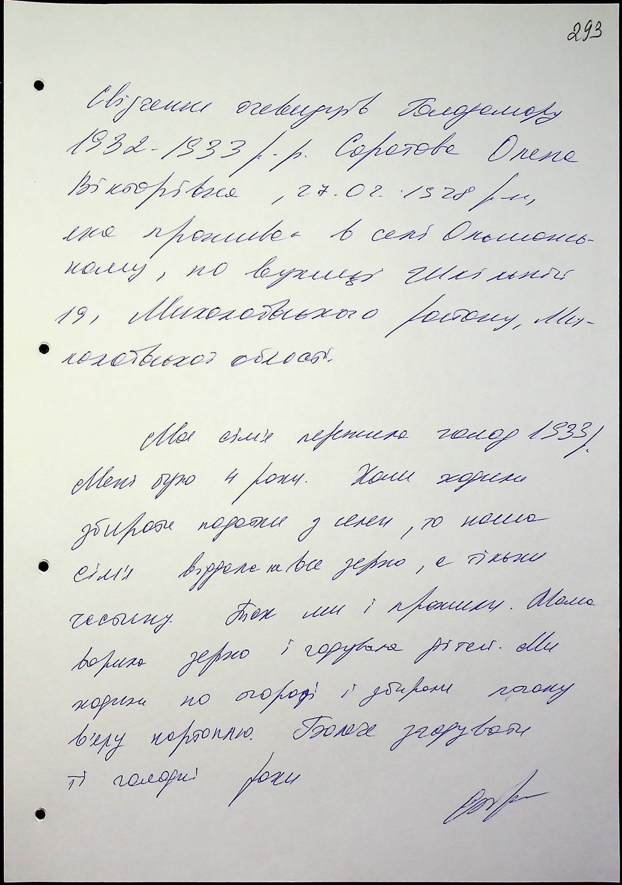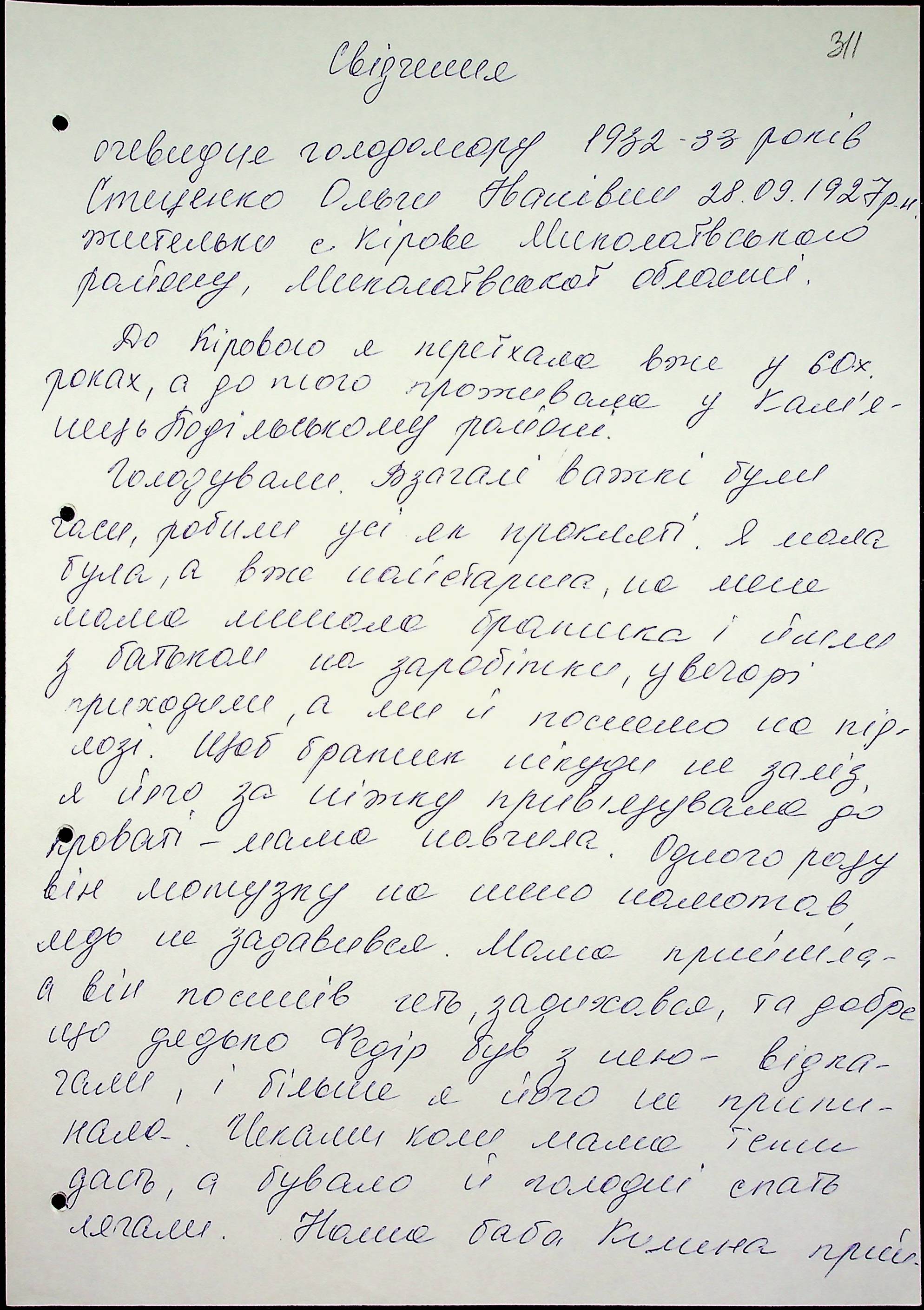 ◦ ◦ Фонд № 6146 “Колекція свідчень очевидців Голодомору 1932-1933 рр., нині проживаючих у Миколаївській області”