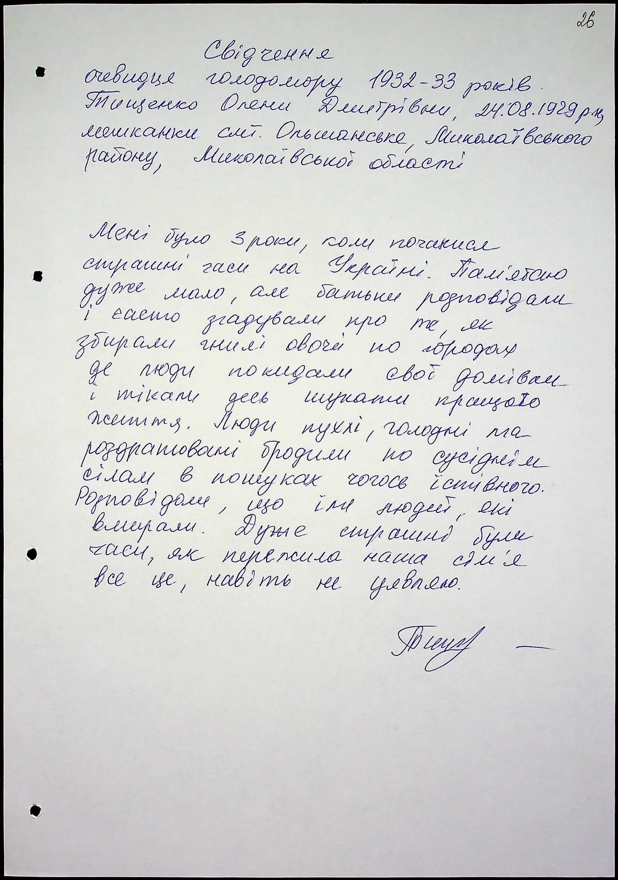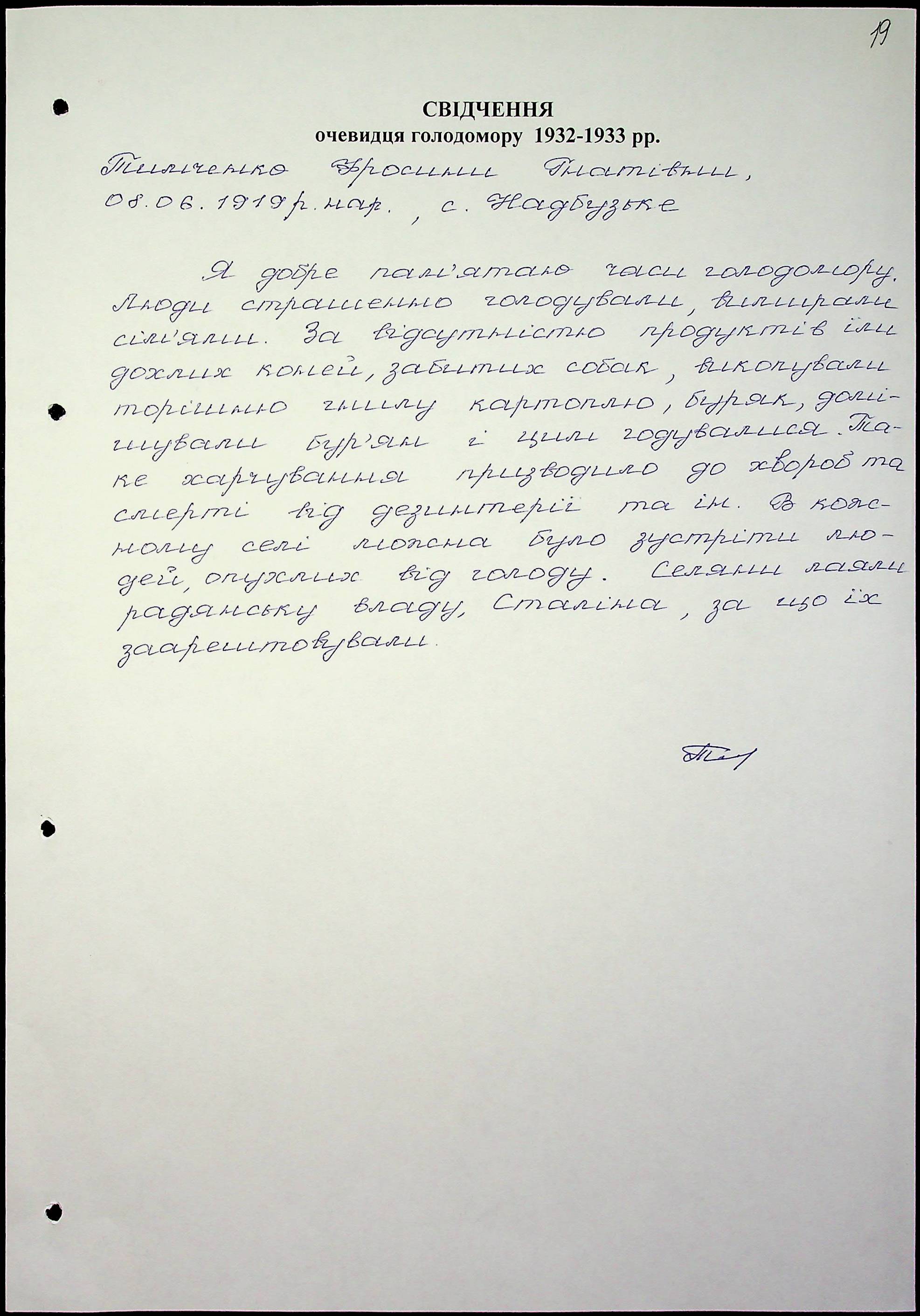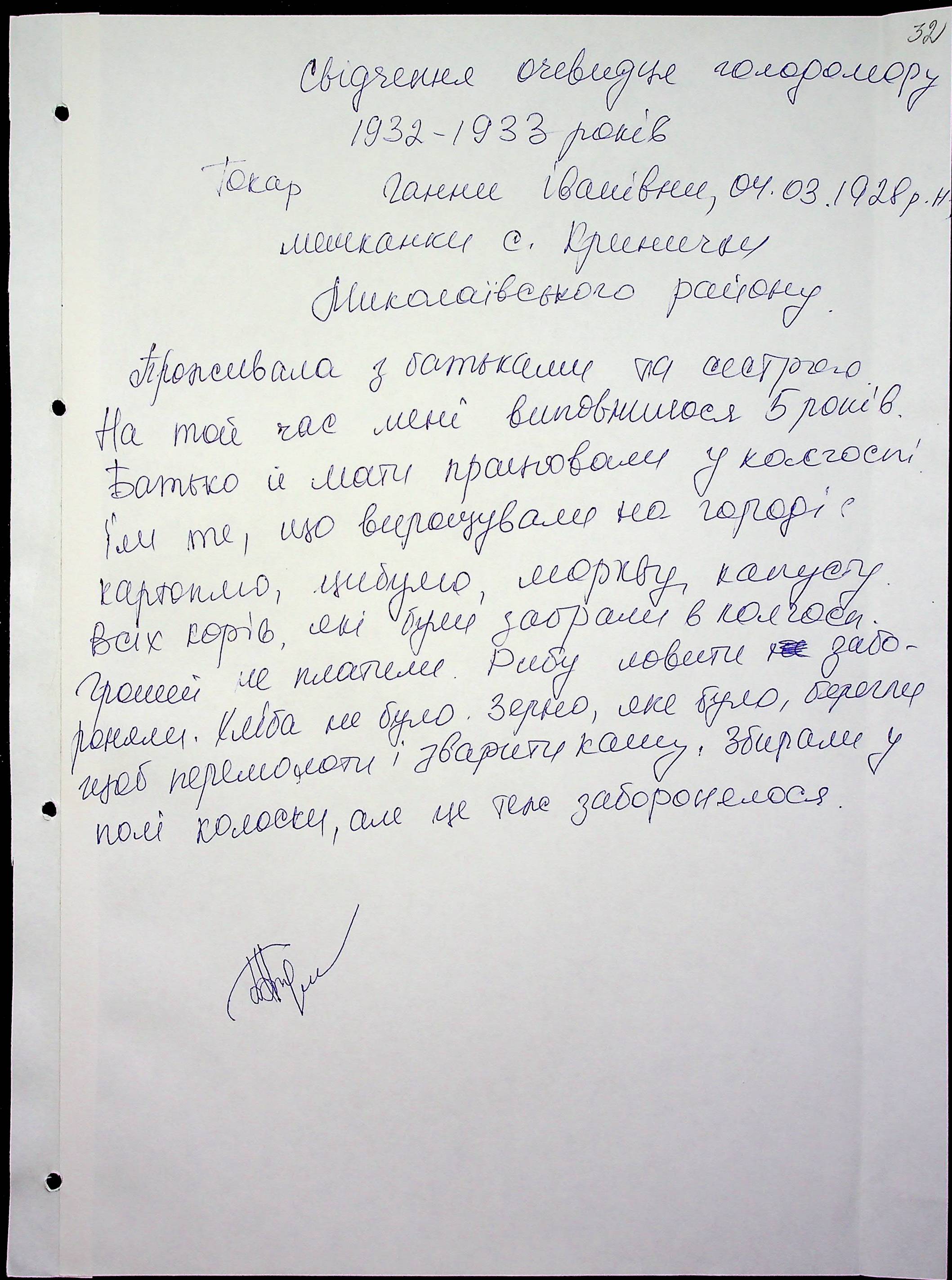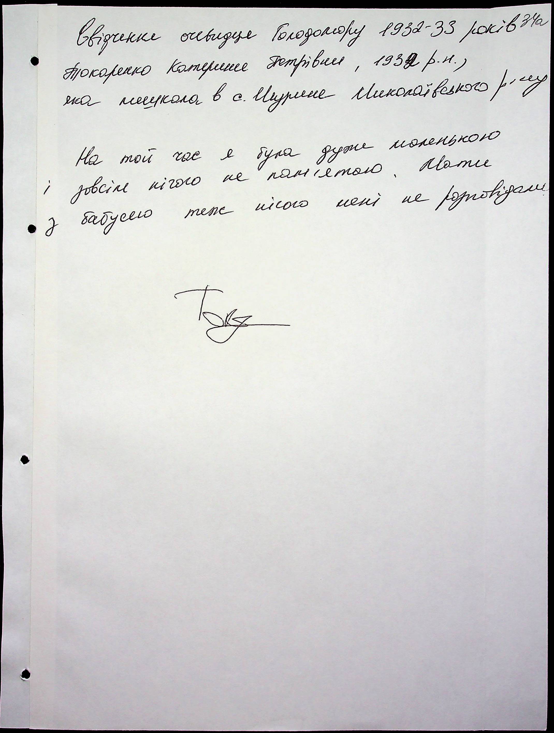 • • • • Справа № 51 “Свідчення очевидців Голодомору 1932-1933 років, які проживають у Миколаївському районі, з прізвищами на літери Т–Я”