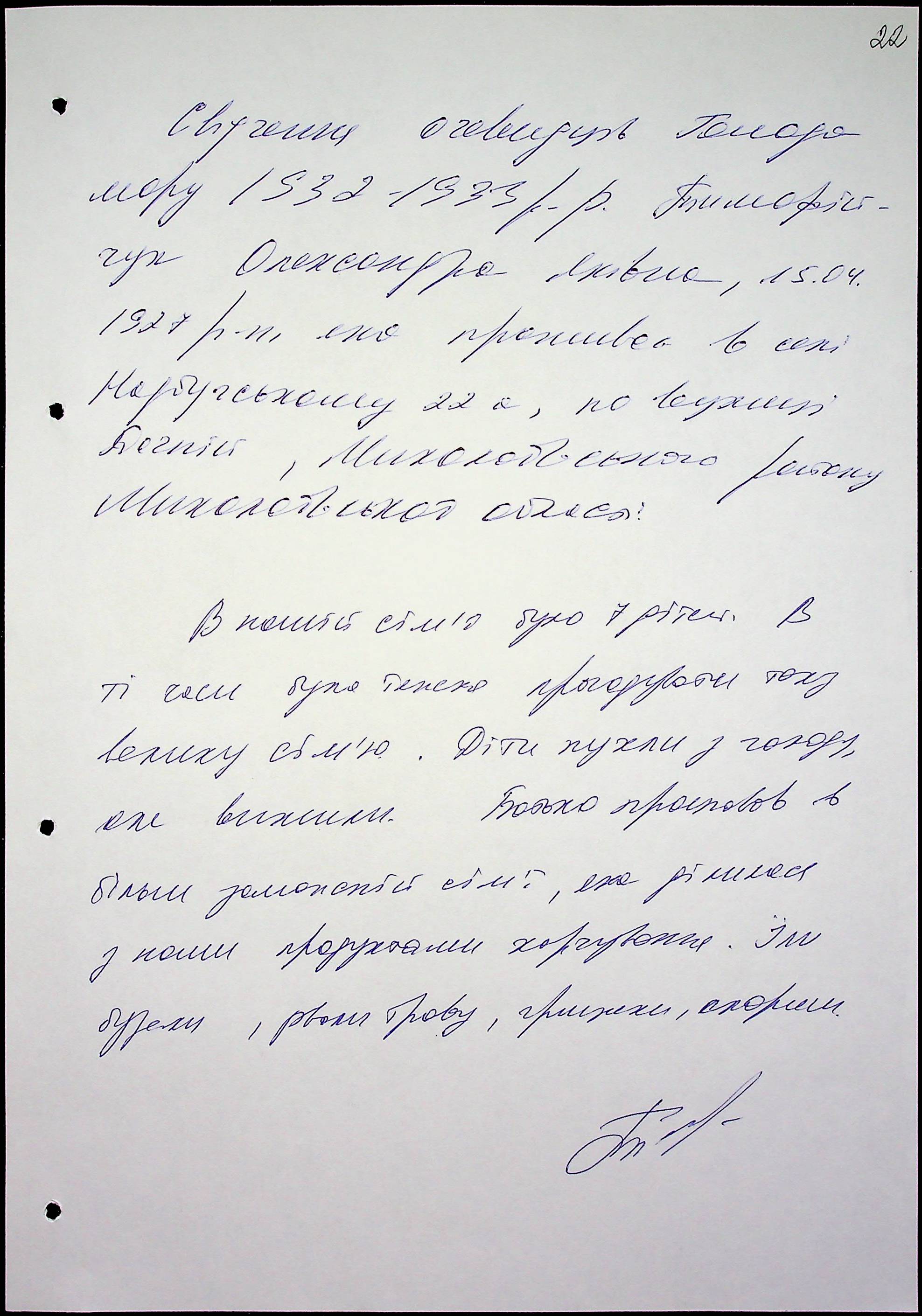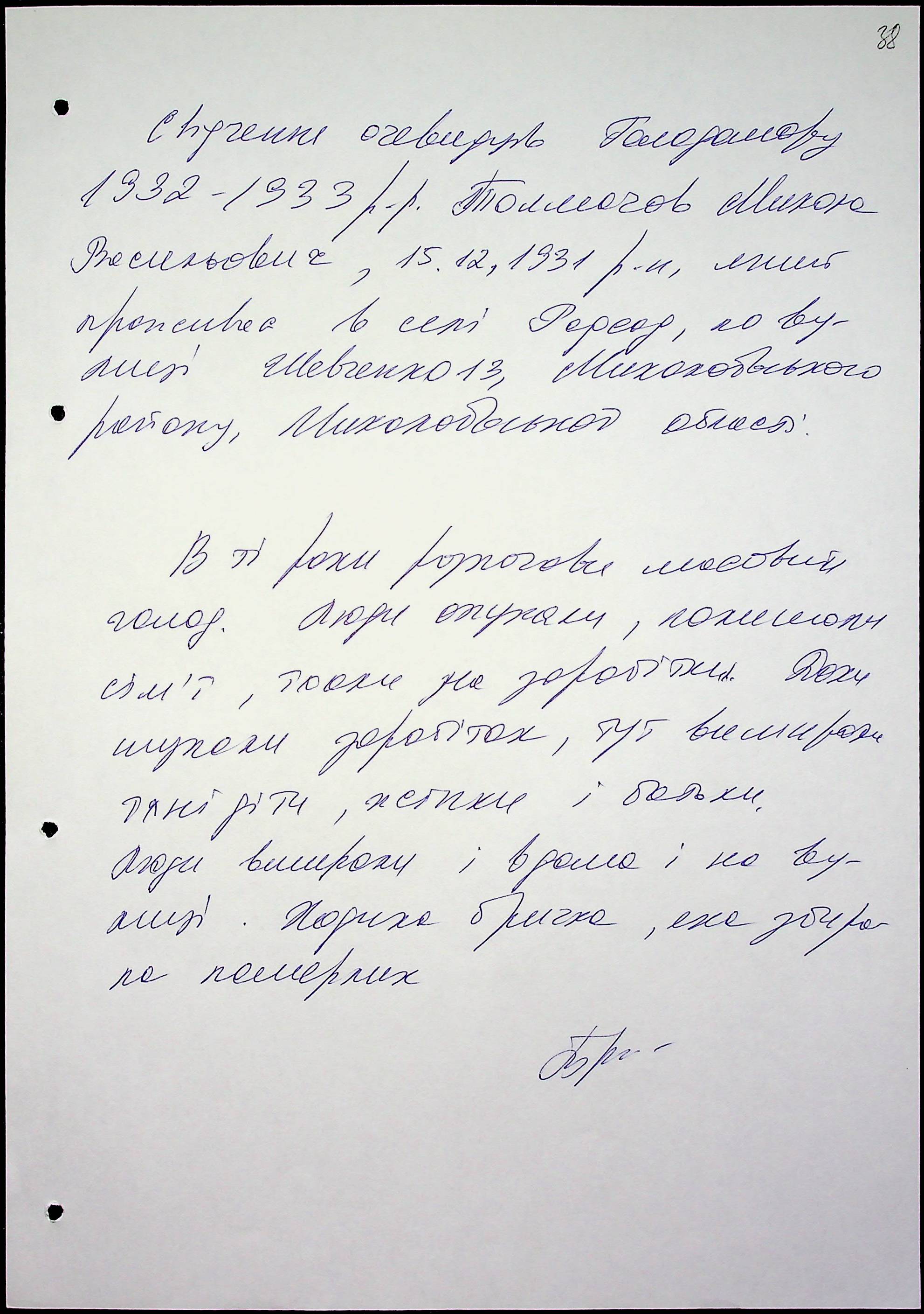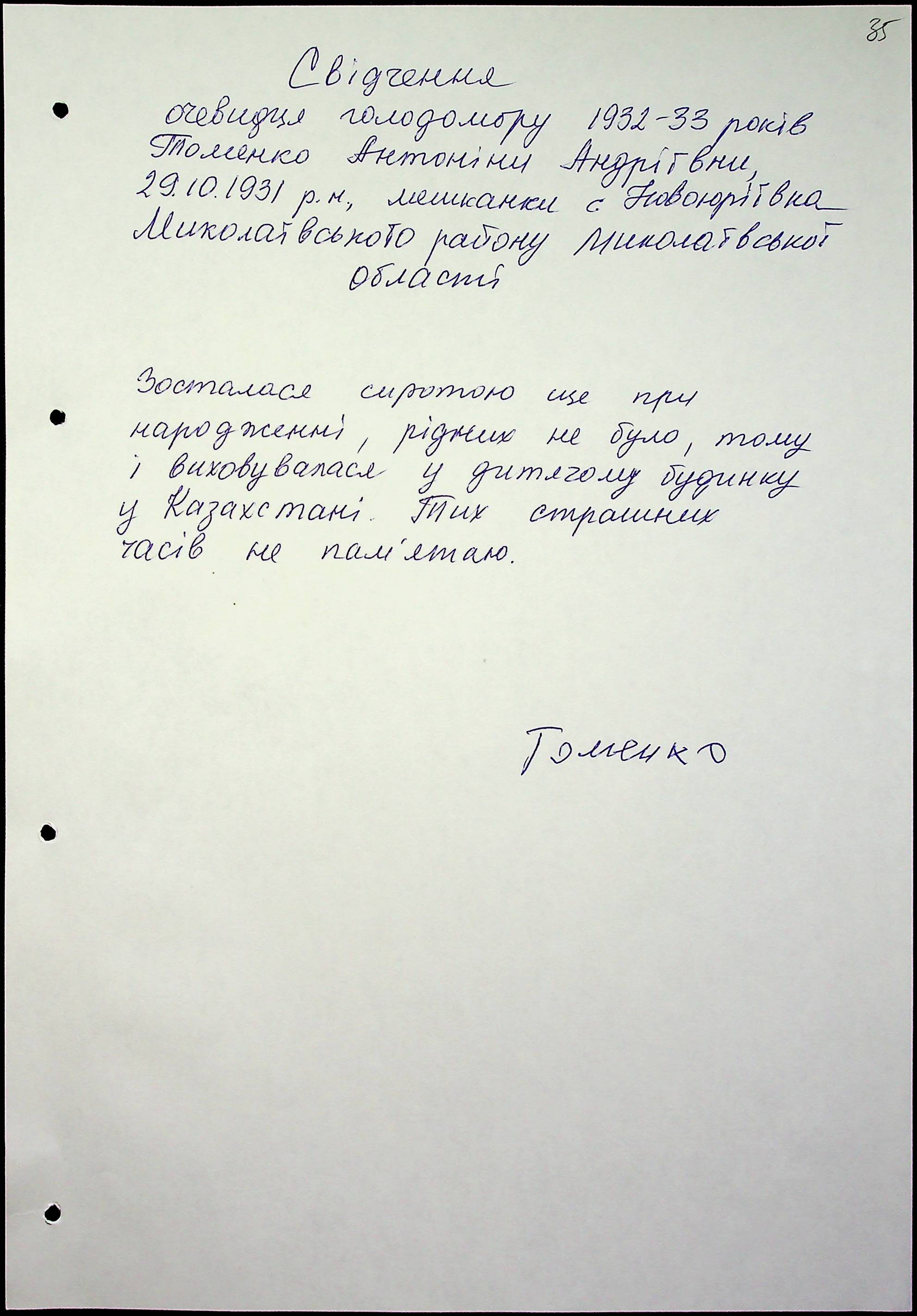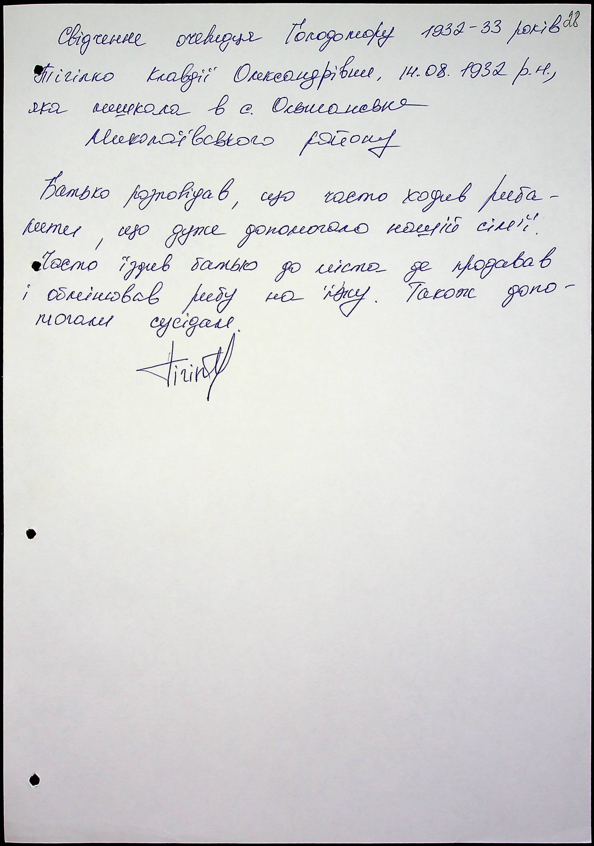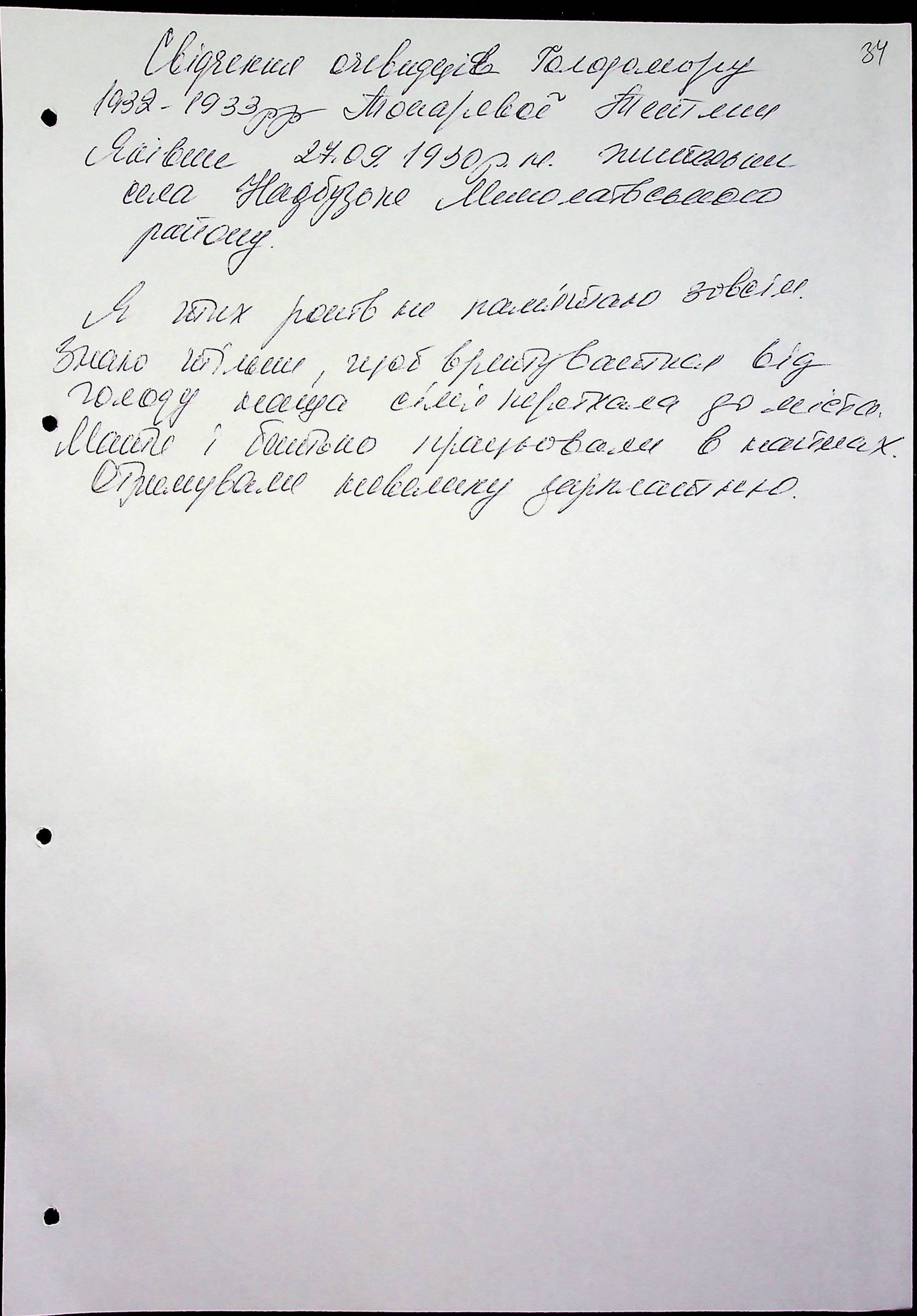 • • • • Справа № 51 “Свідчення очевидців Голодомору 1932-1933 років, які проживають у Миколаївському районі, з прізвищами на літери Т–Я”