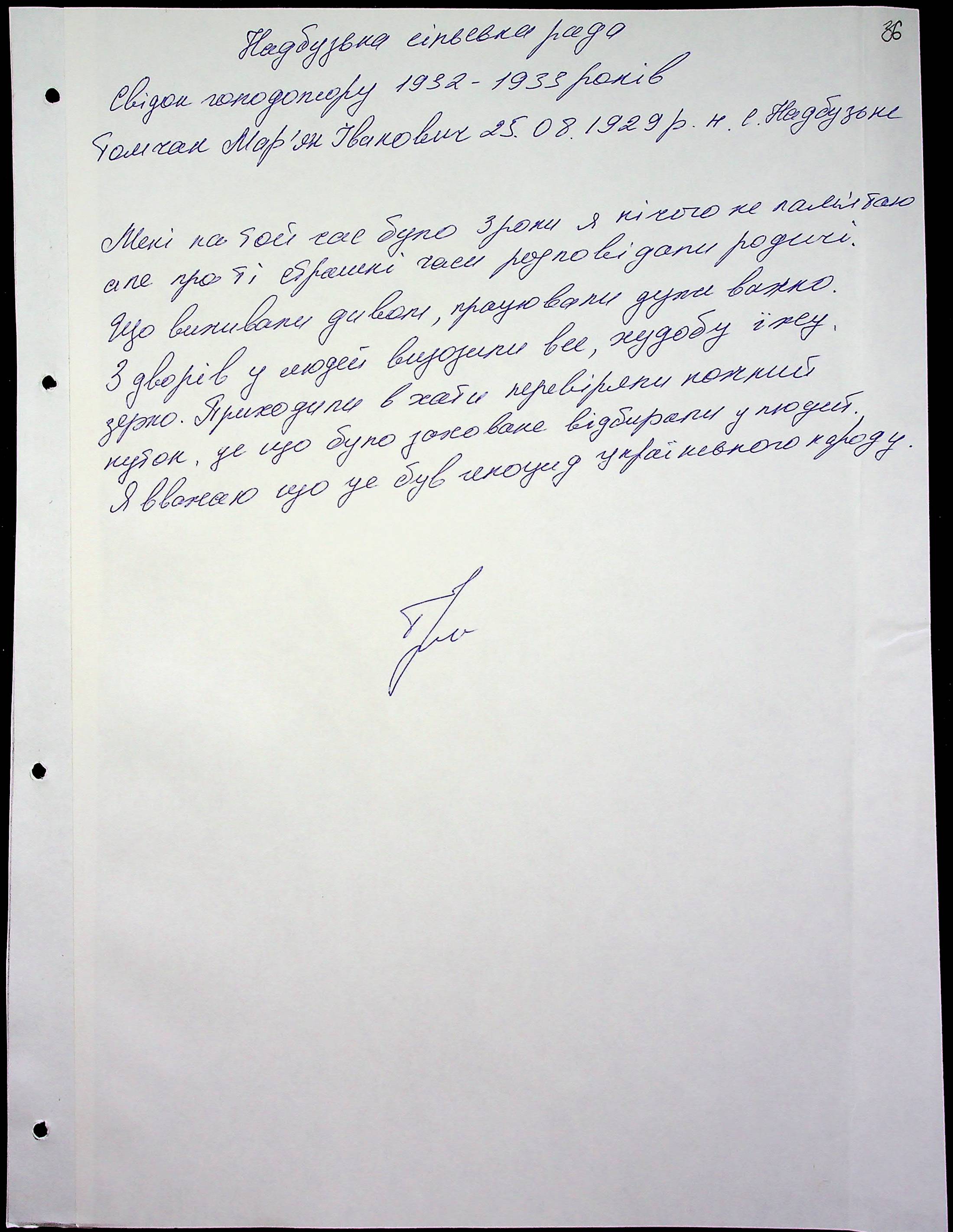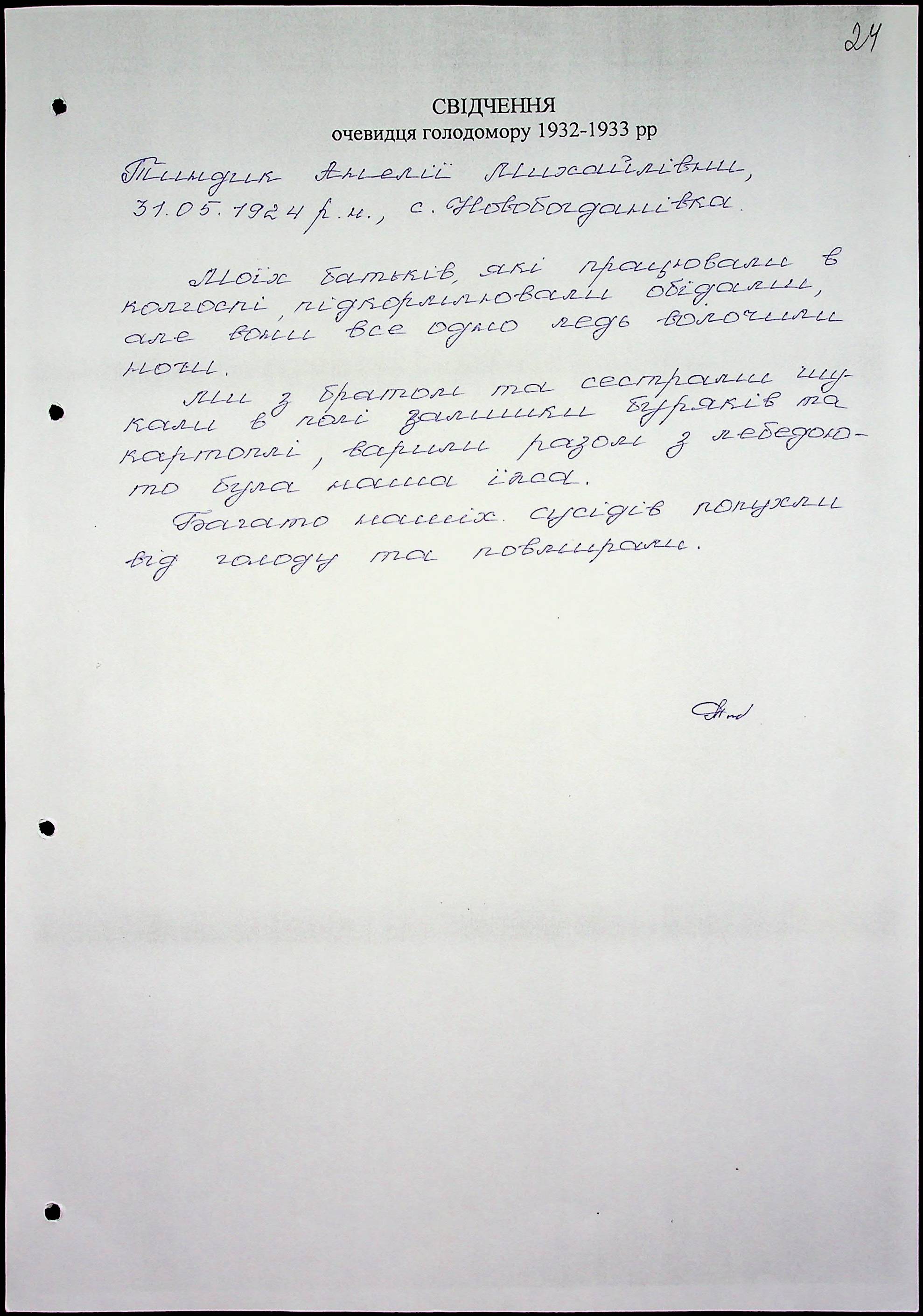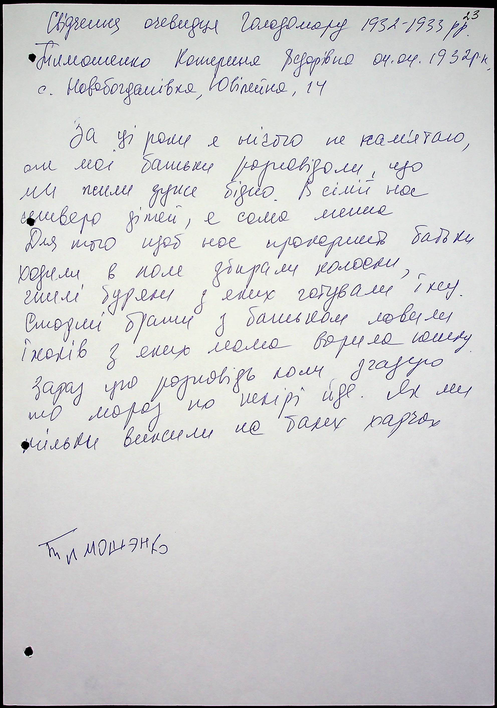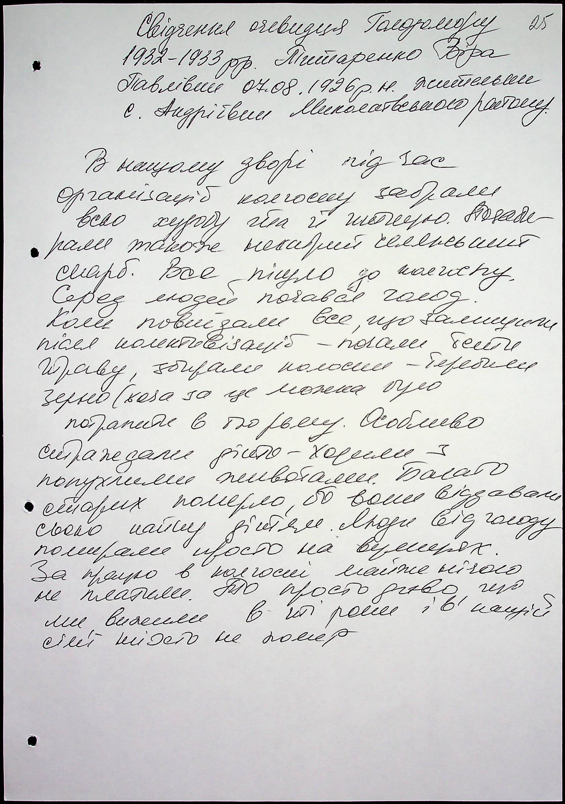 • • • • Справа № 51 “Свідчення очевидців Голодомору 1932-1933 років, які проживають у Миколаївському районі, з прізвищами на літери Т–Я”