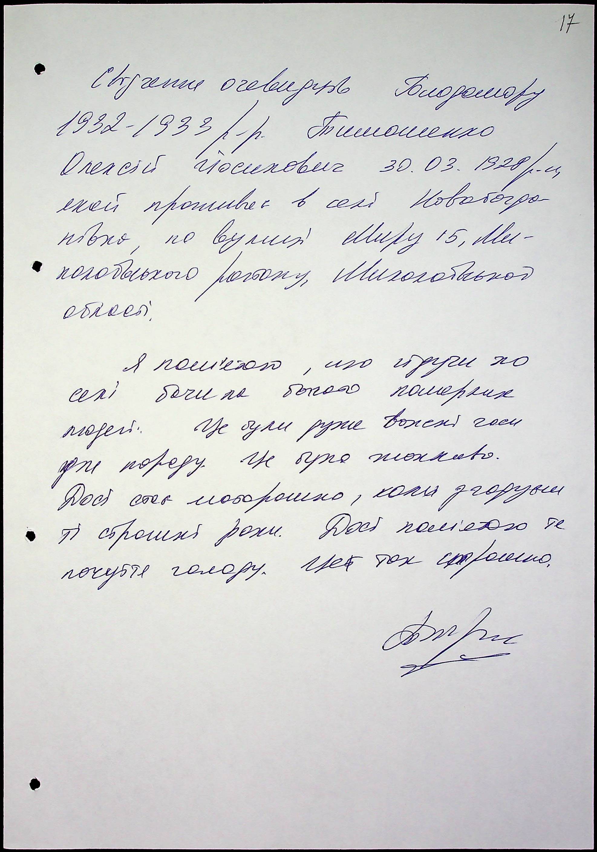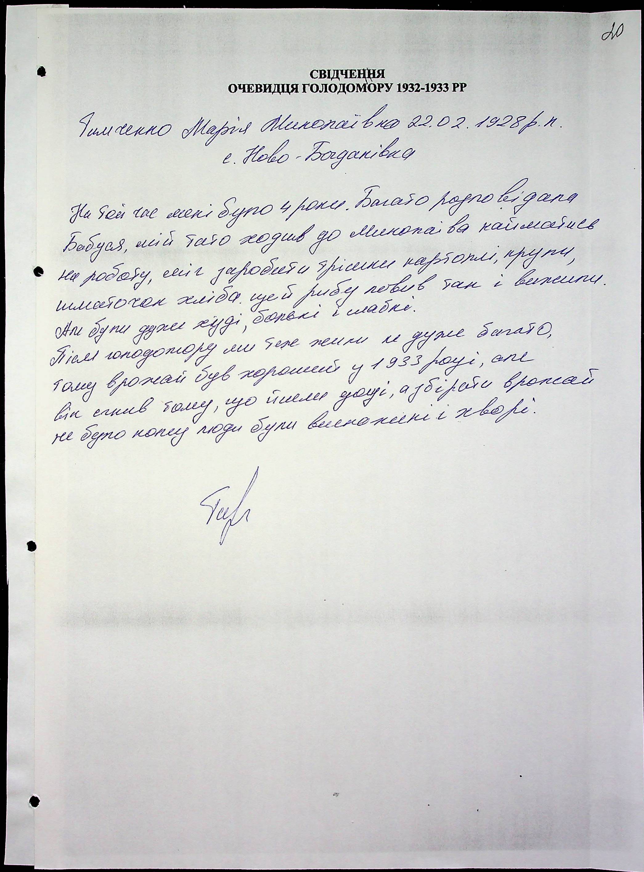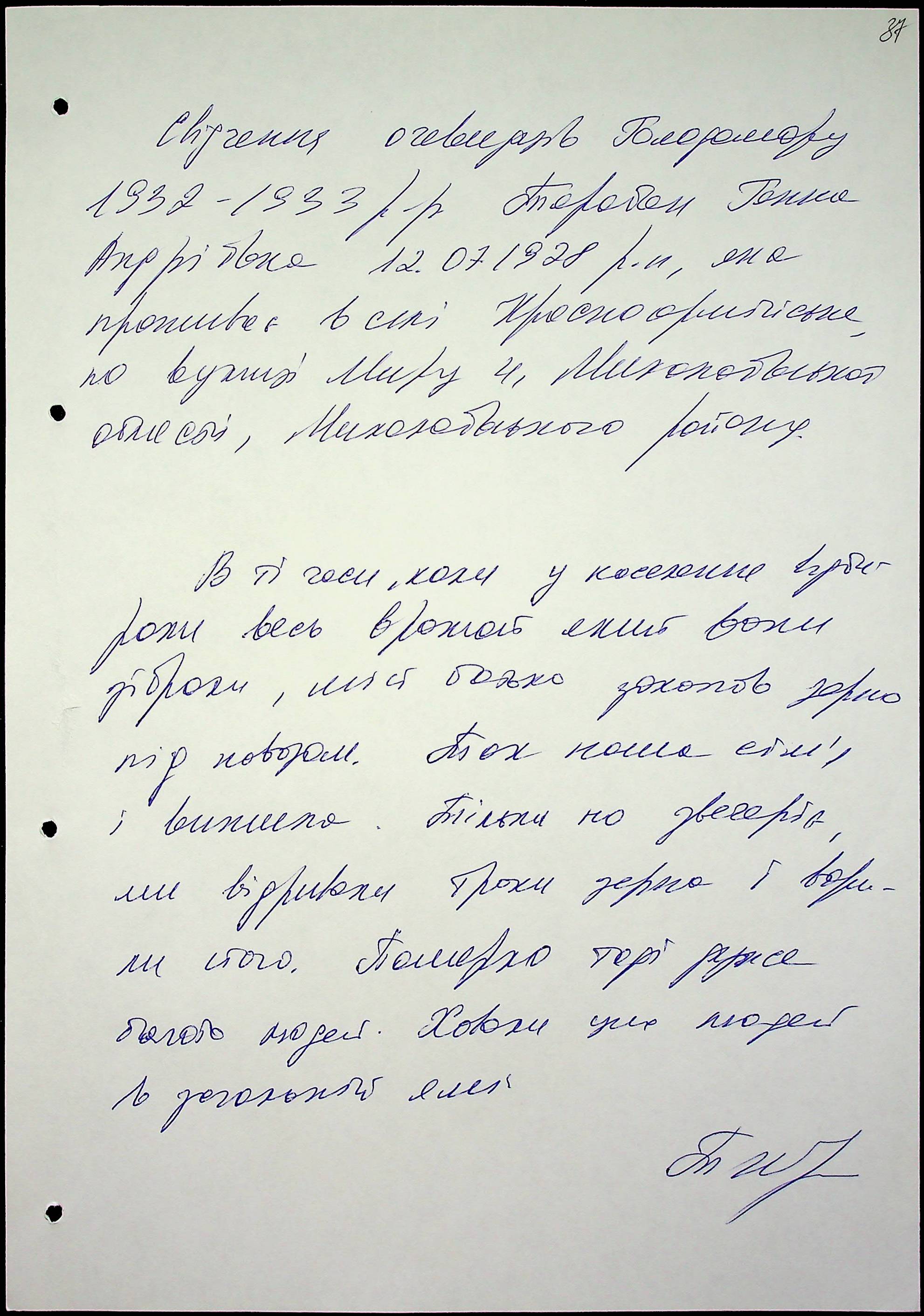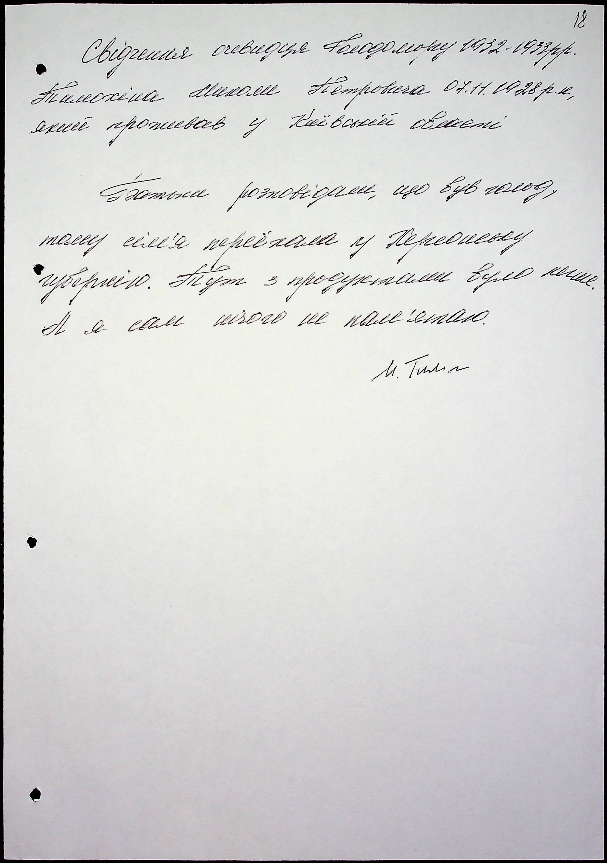 • • • • Справа № 51 “Свідчення очевидців Голодомору 1932-1933 років, які проживають у Миколаївському районі, з прізвищами на літери Т–Я”