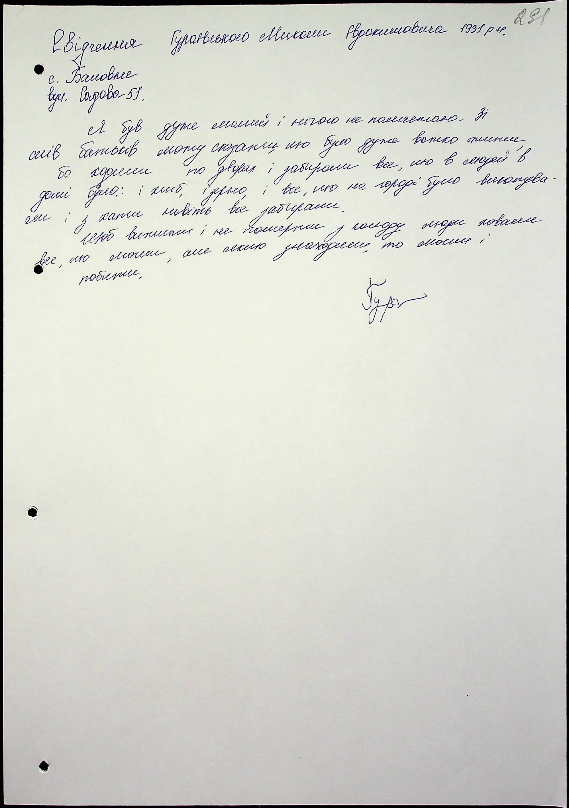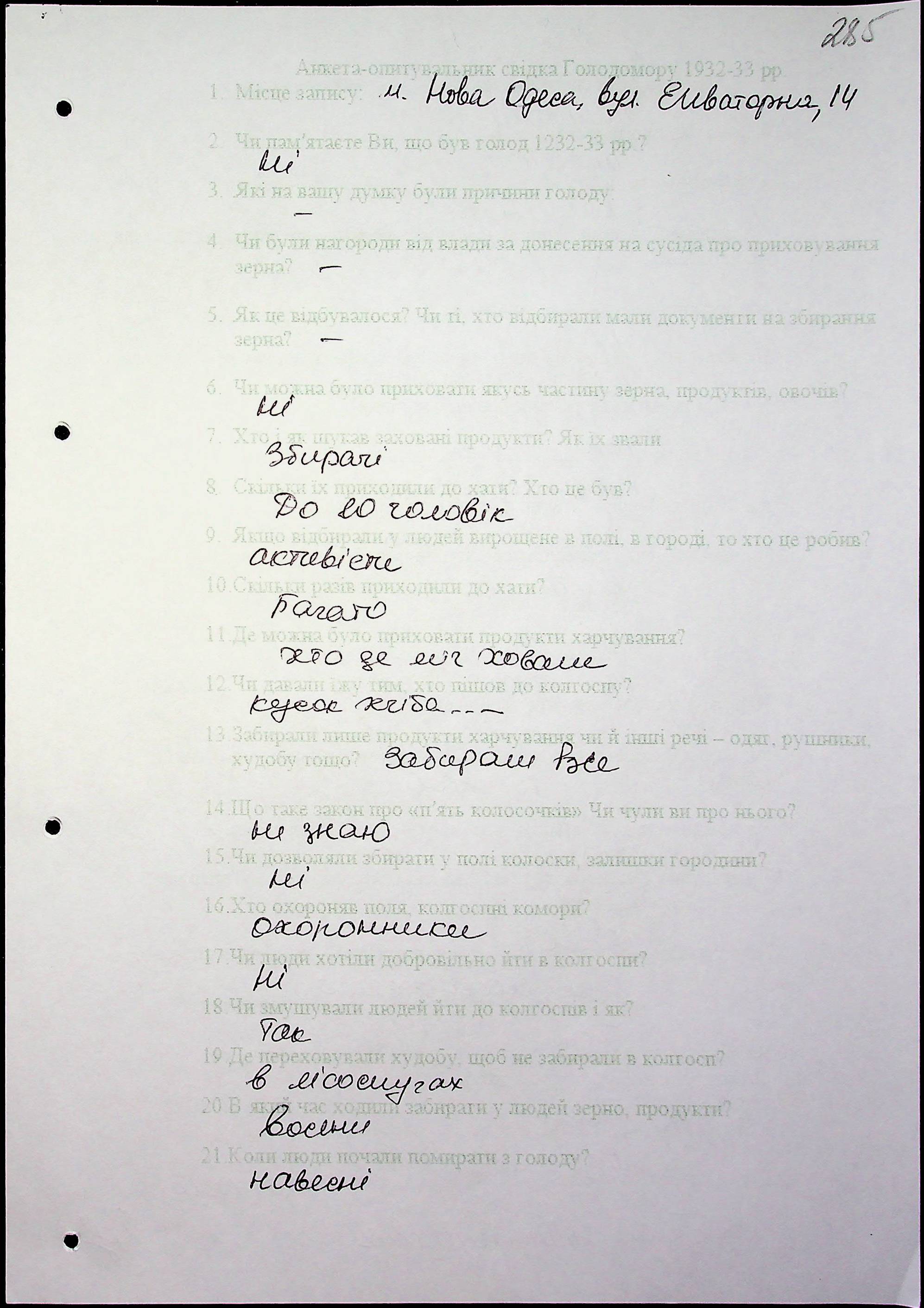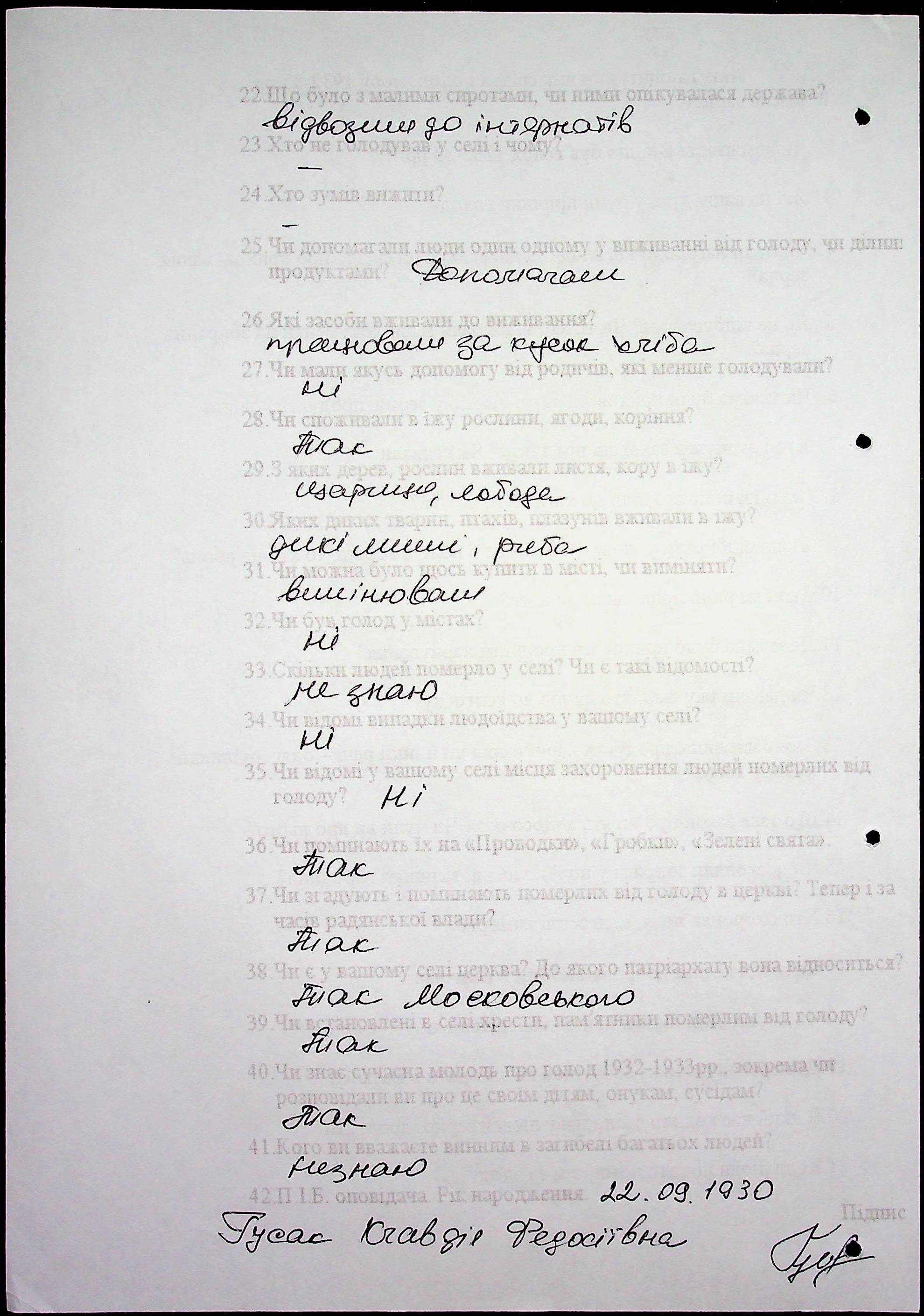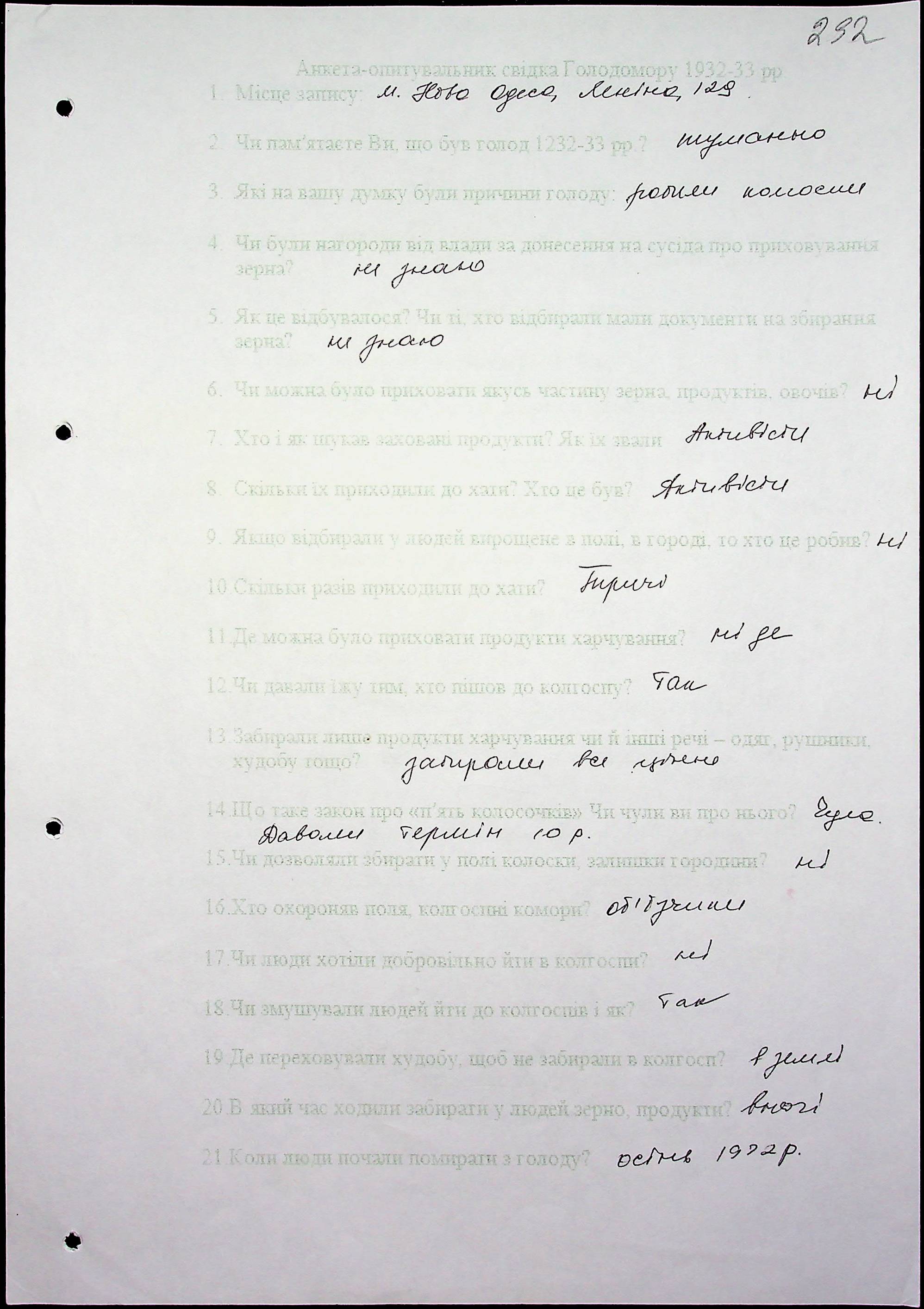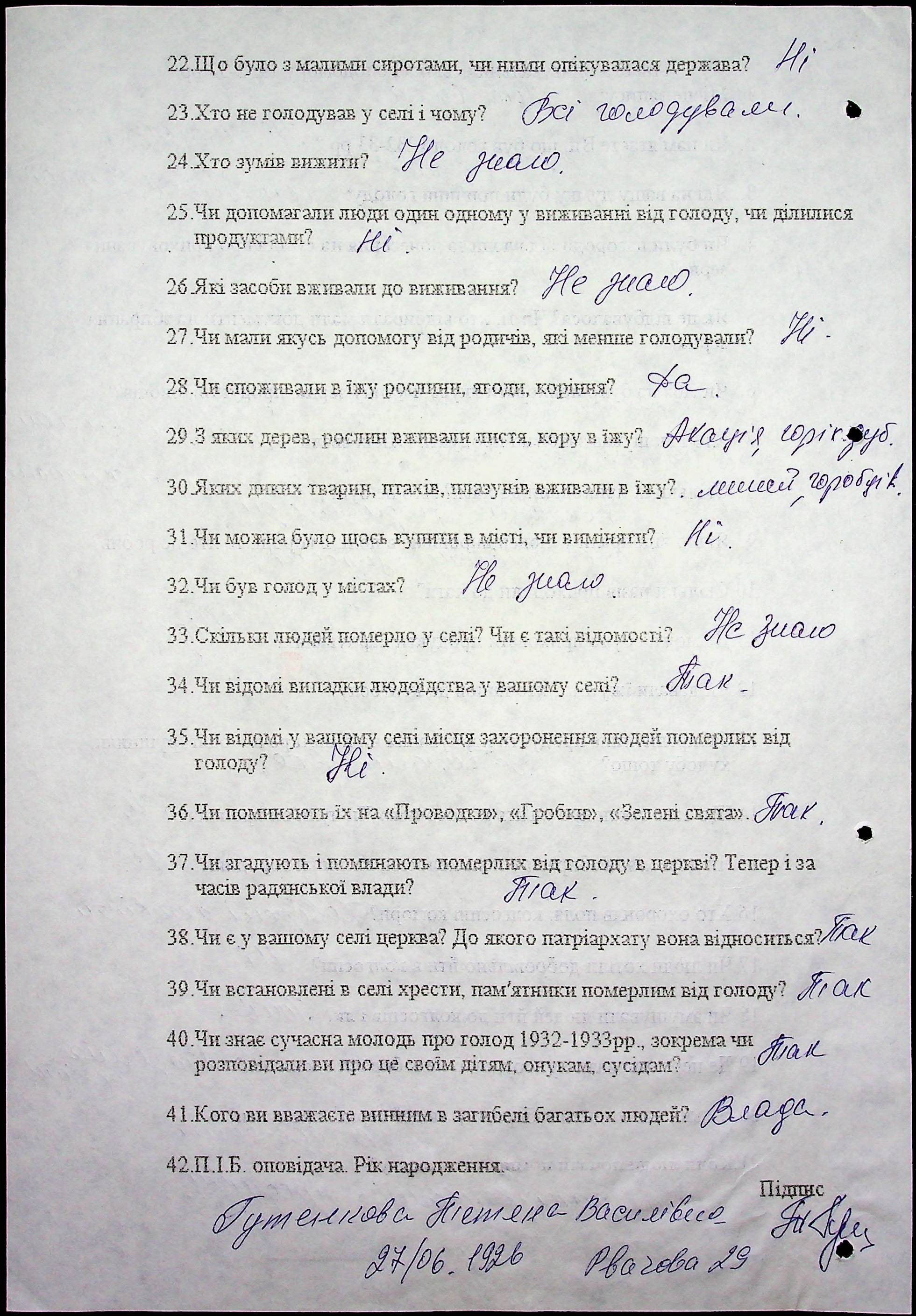 • • • • Справа № 53 “Свідчення очевидців Голодомору 1932-1933 років, які проживають у Новоодеському районі, з прізвищами на літери А–Г”