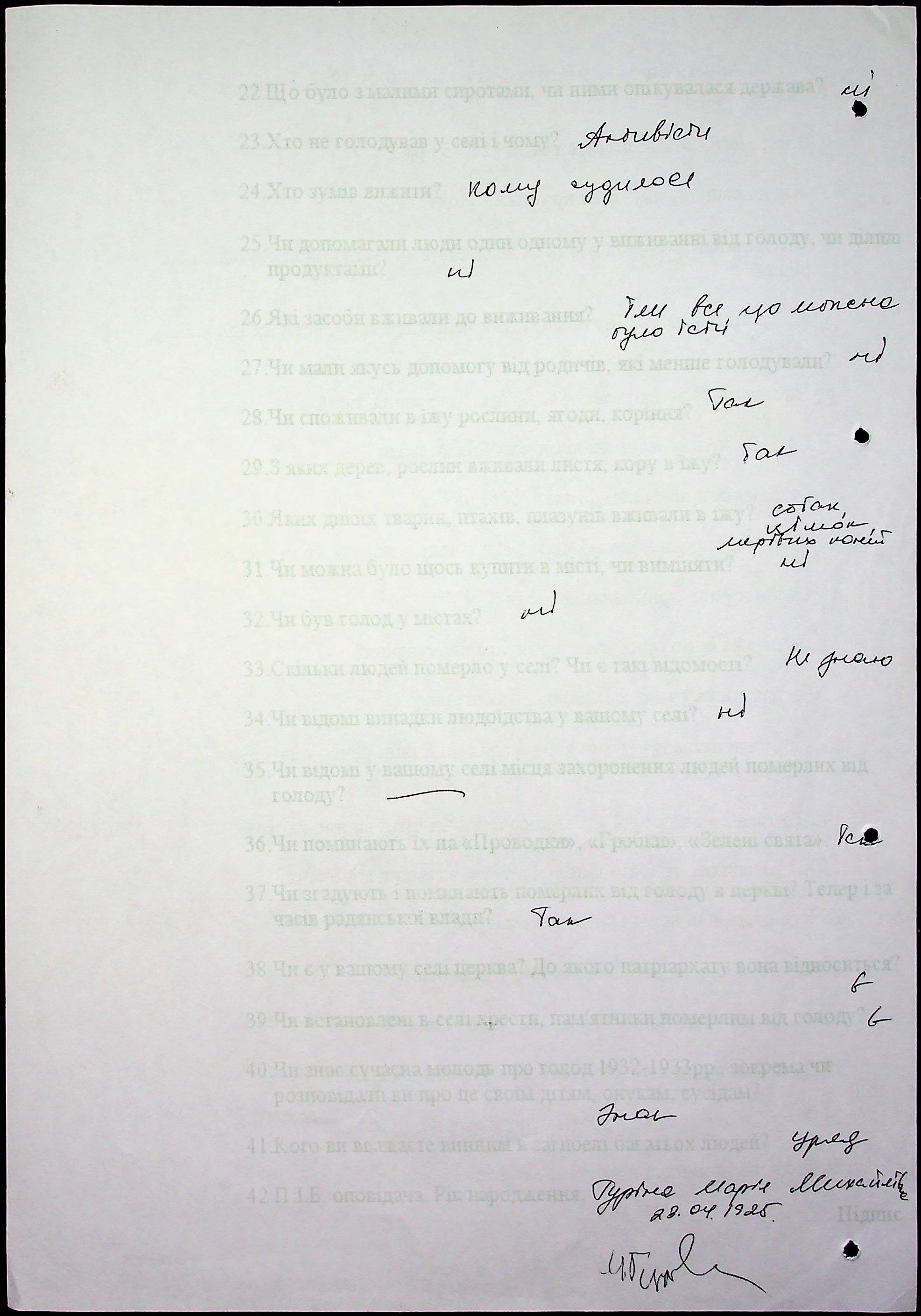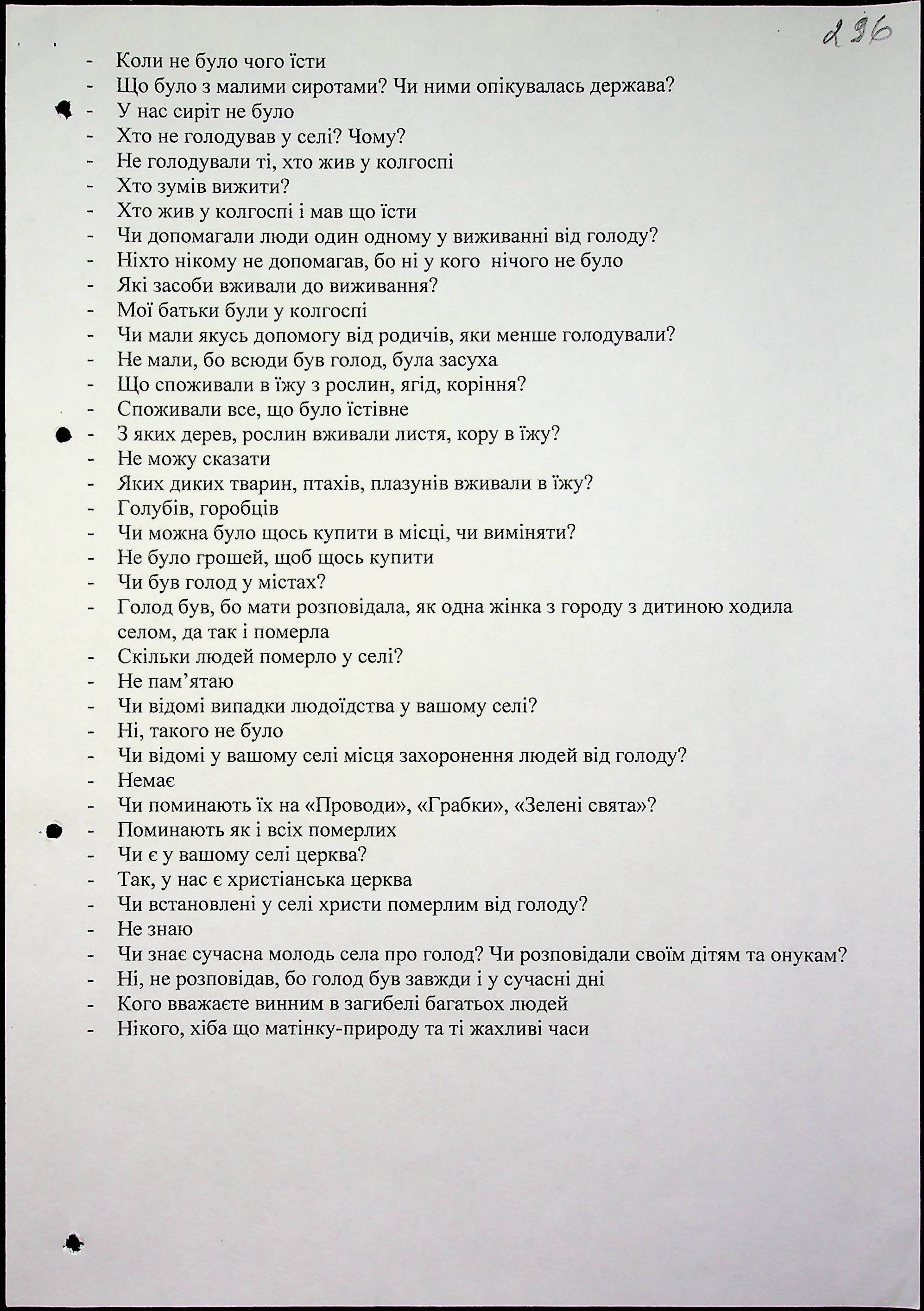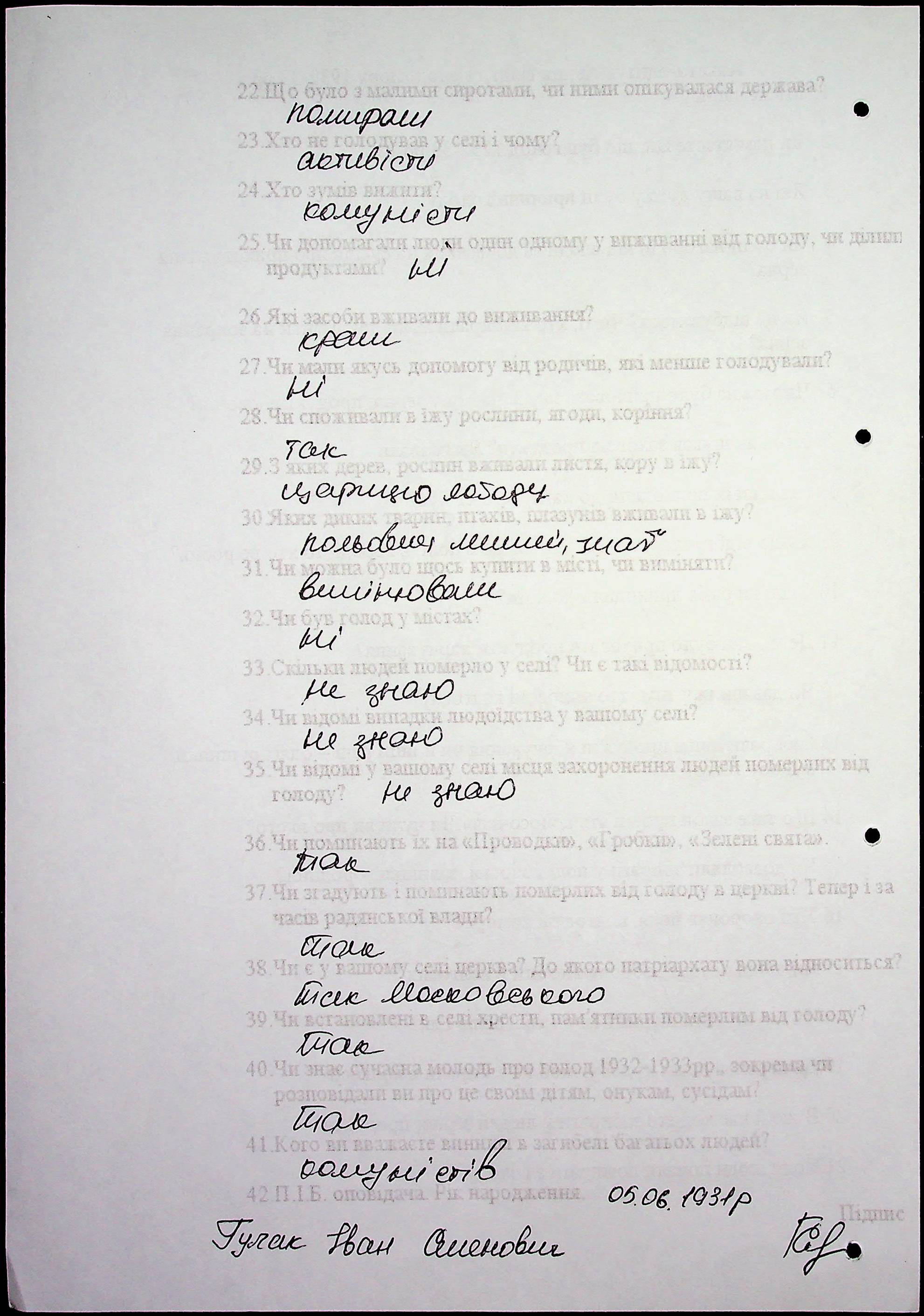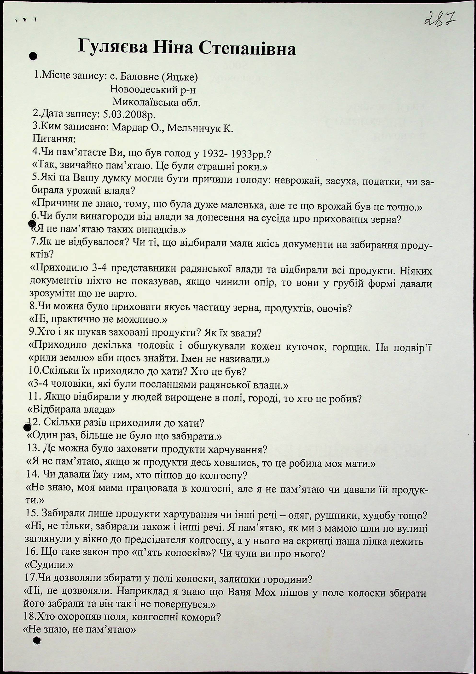 ◦ ◦ Фонд № 6146 “Колекція свідчень очевидців Голодомору 1932-1933 рр., нині проживаючих у Миколаївській області”