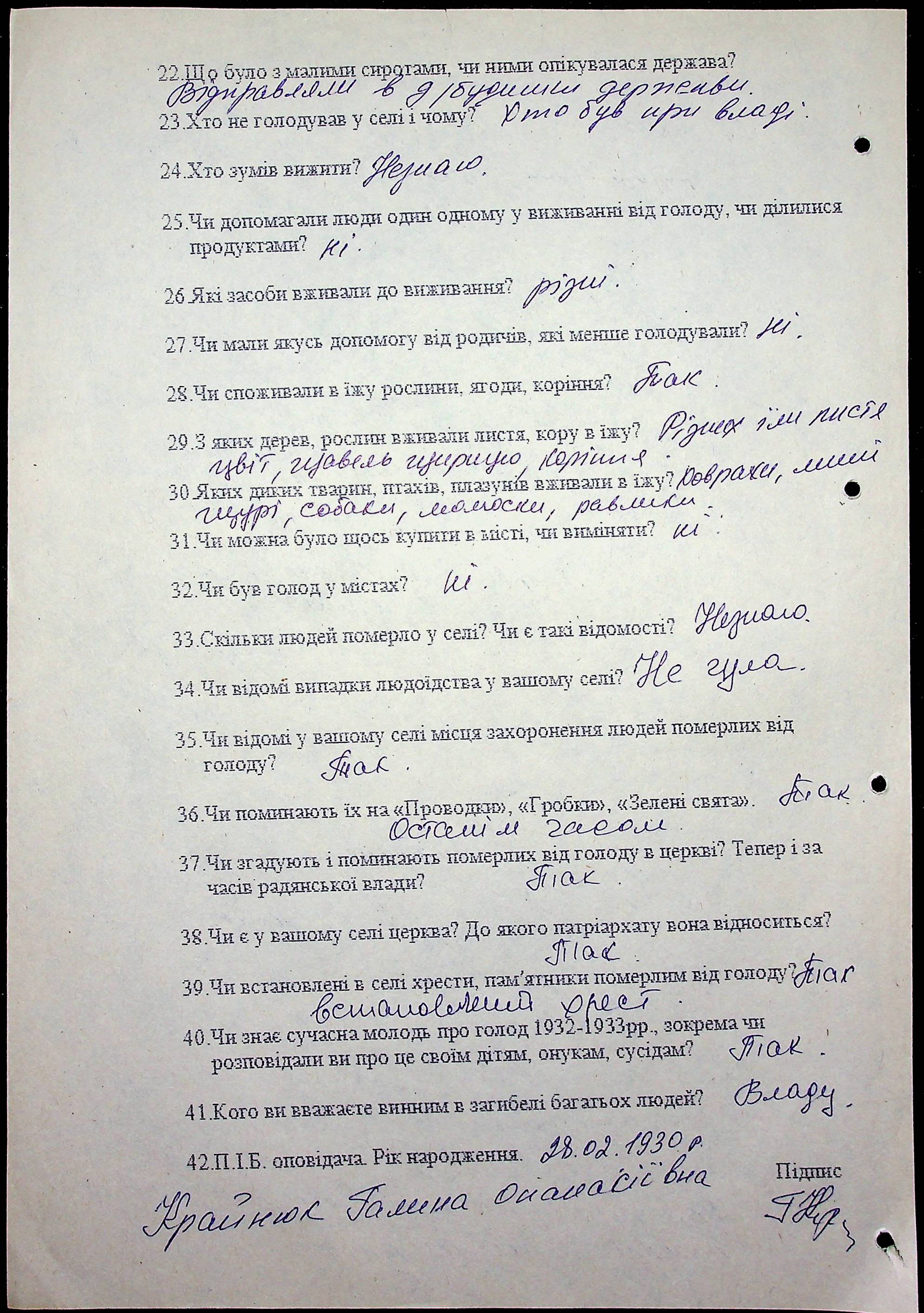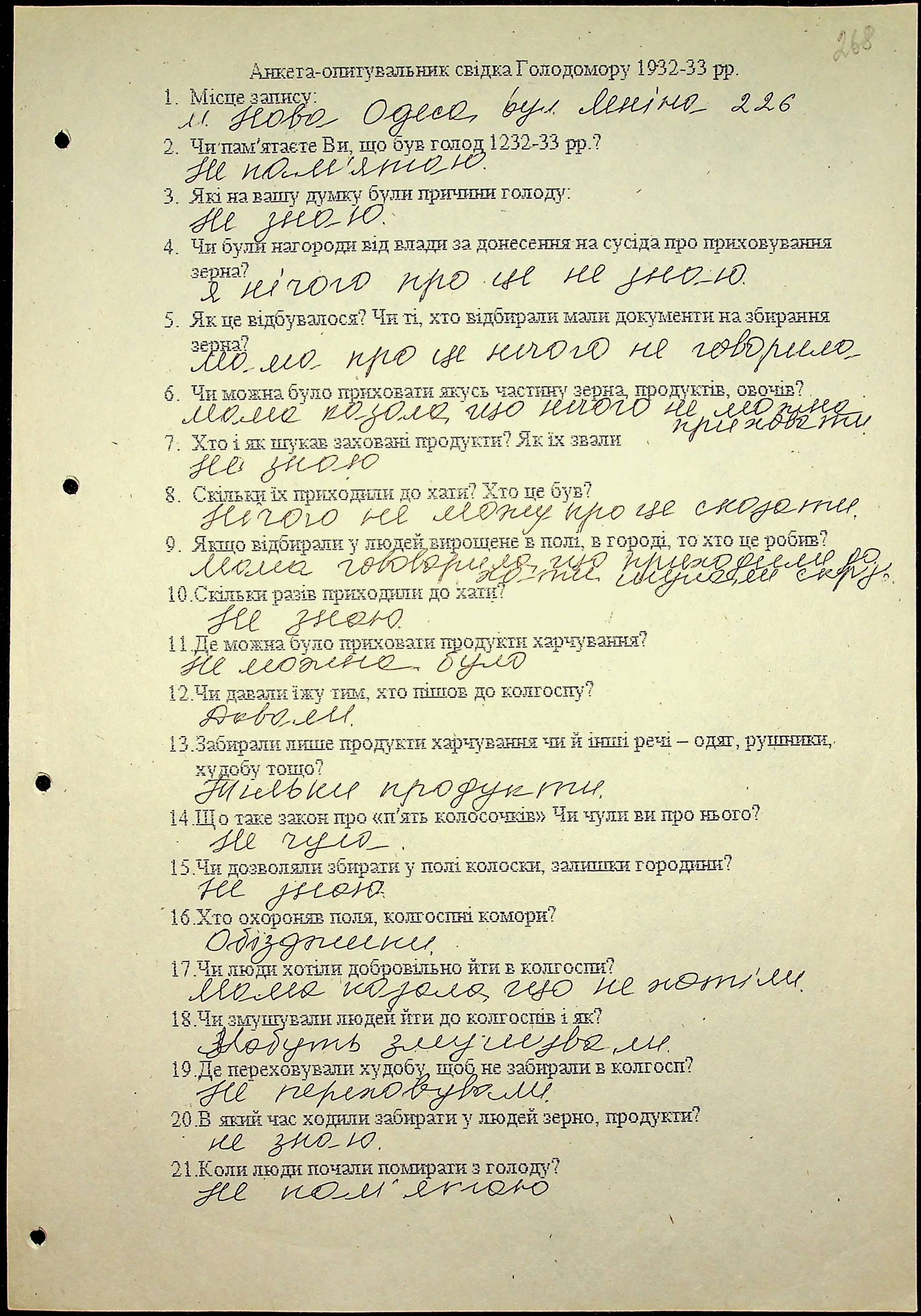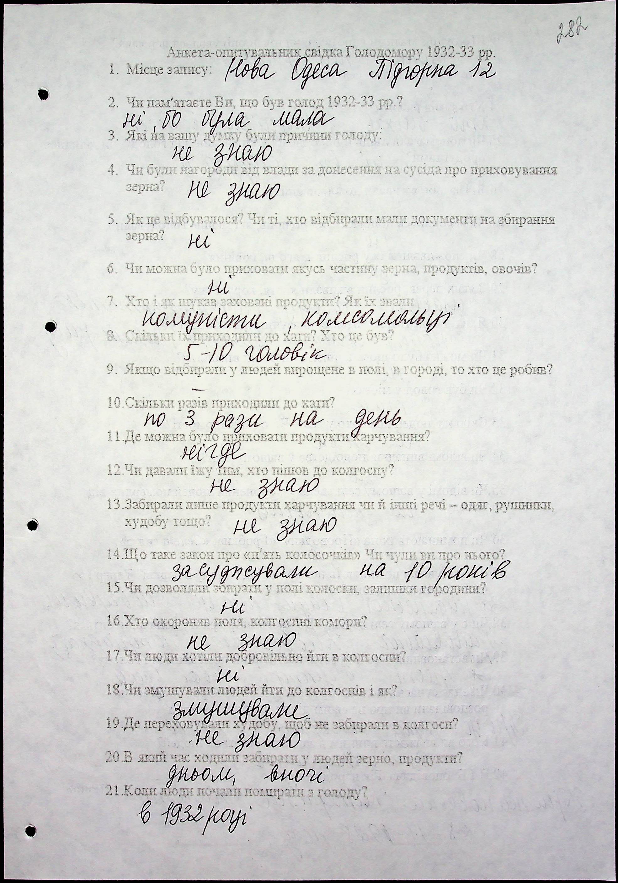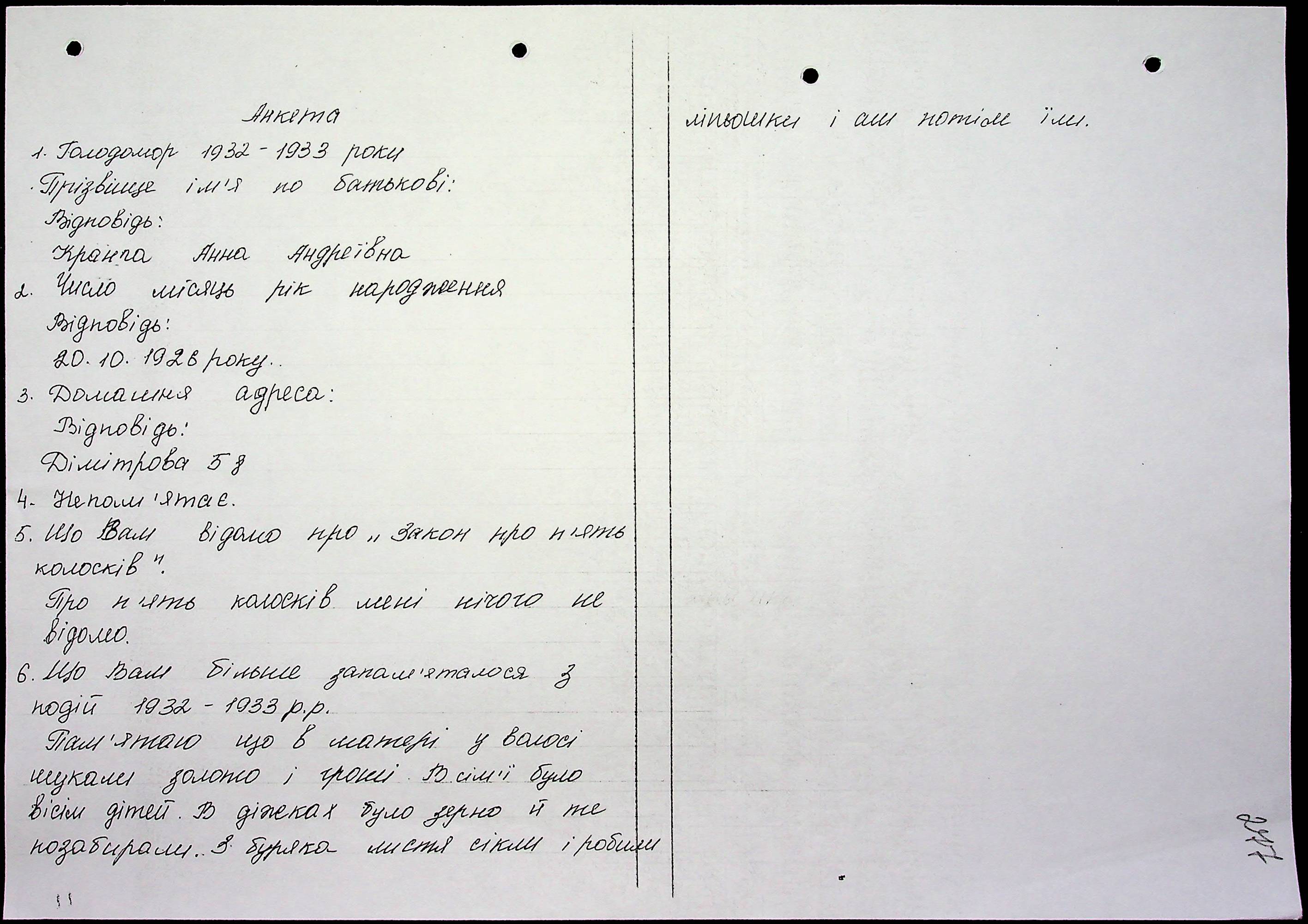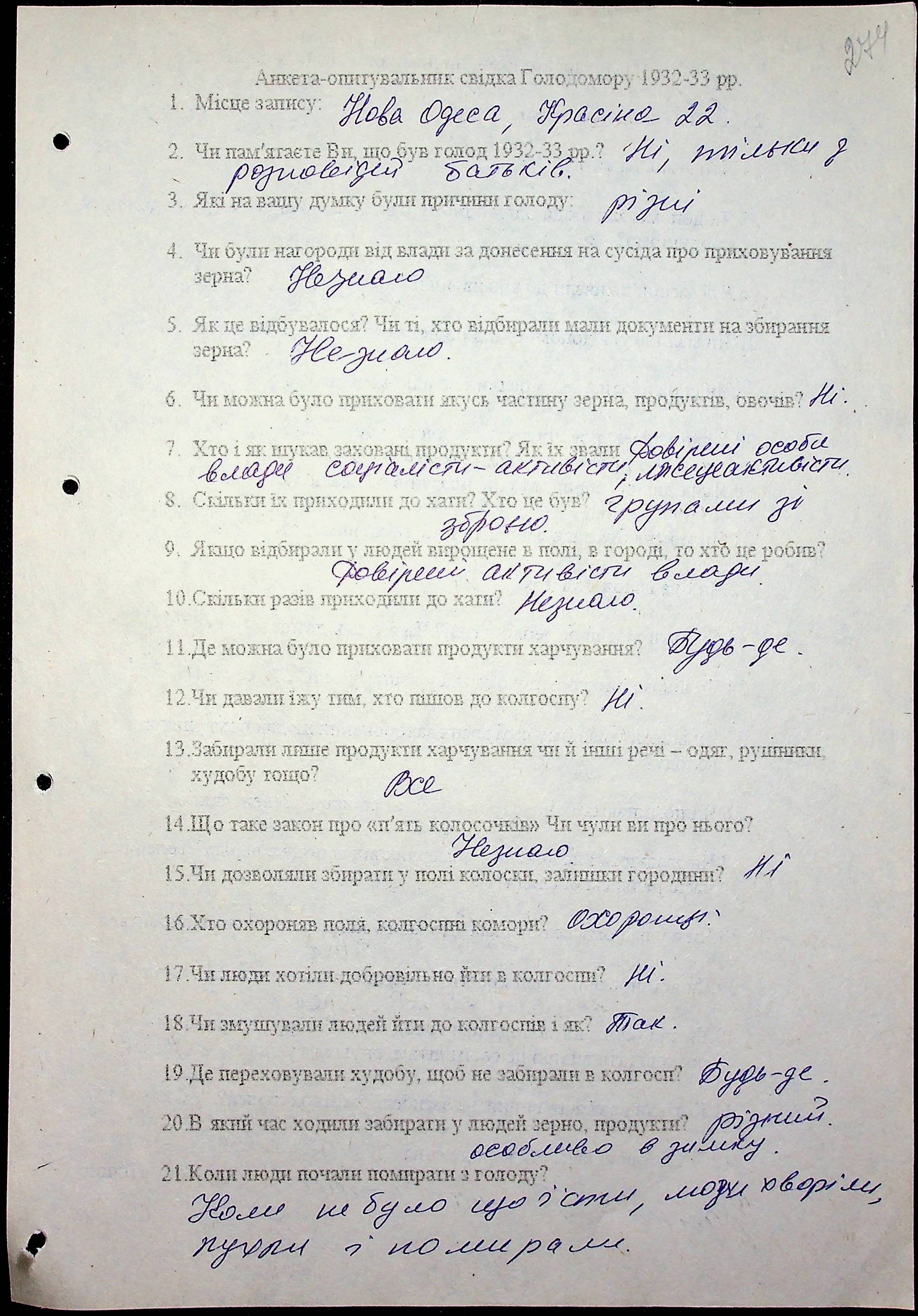 ◦ ◦ Фонд № 6146 “Колекція свідчень очевидців Голодомору 1932-1933 рр., нині проживаючих у Миколаївській області”