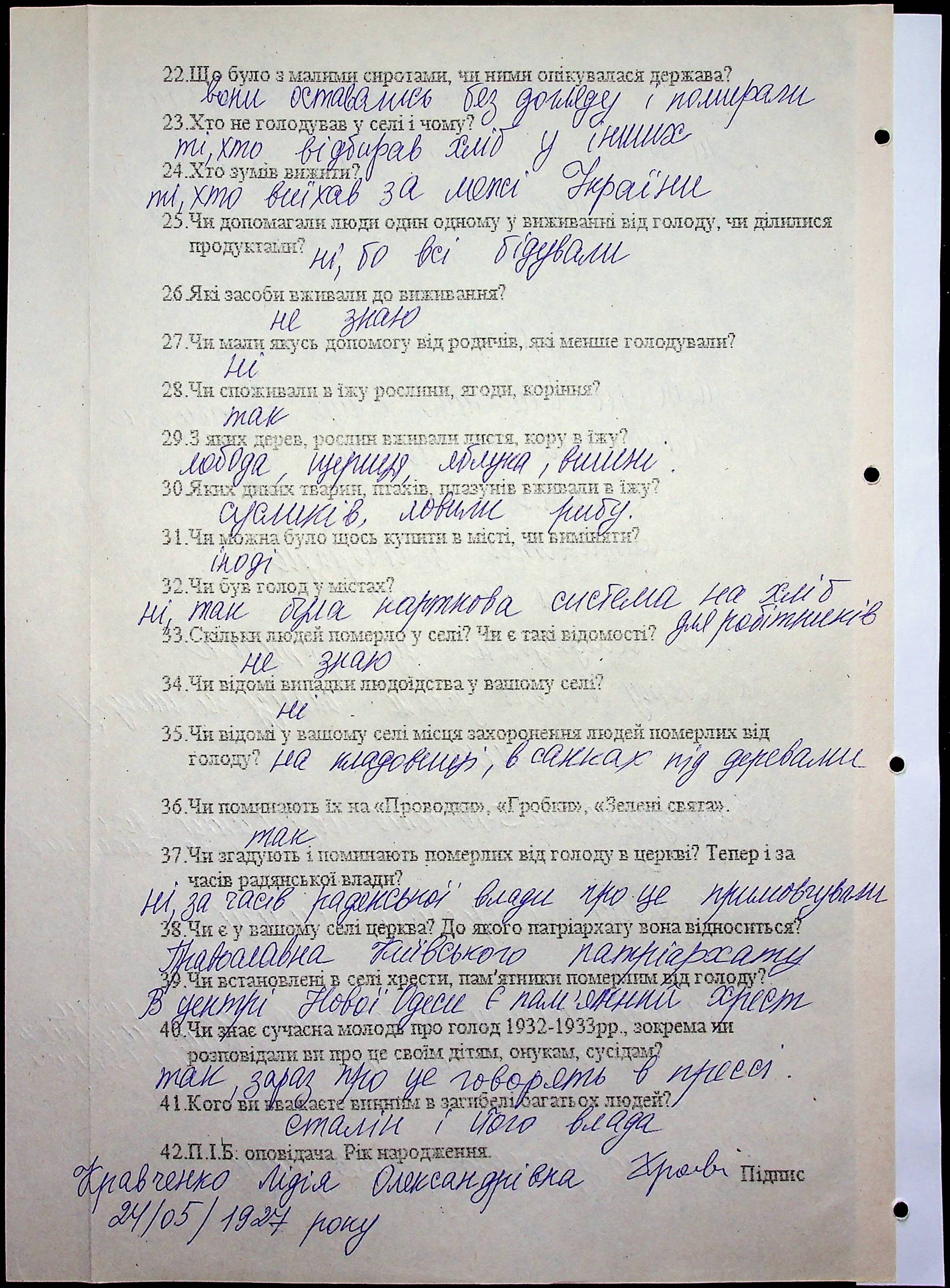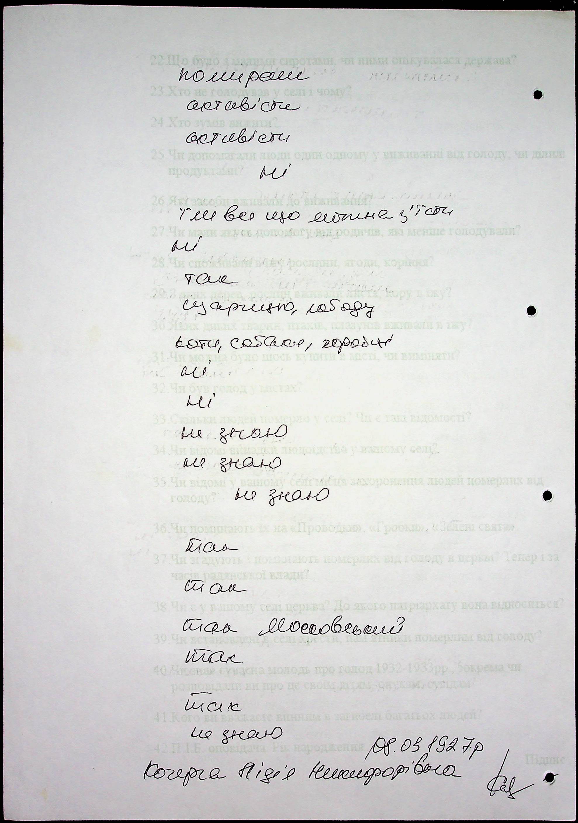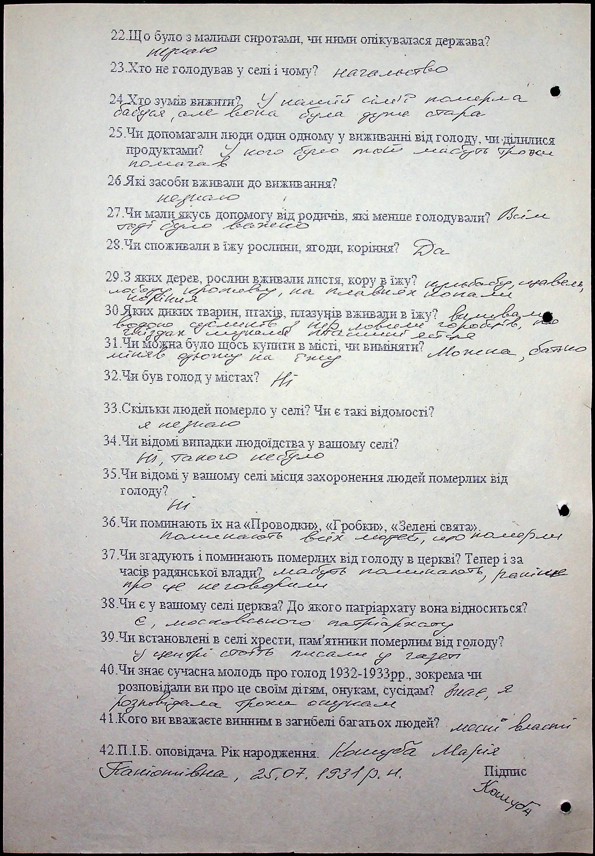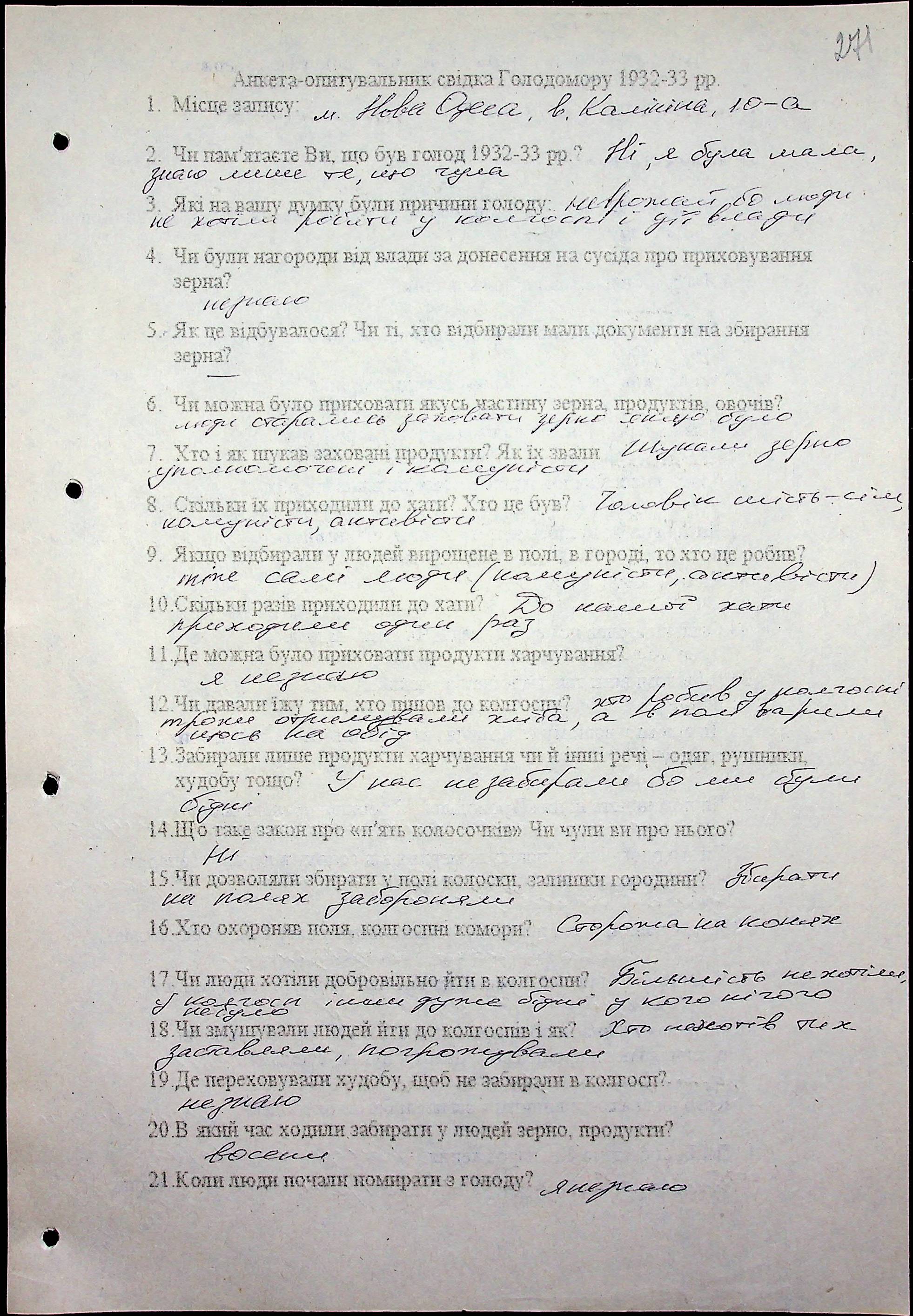 ◦ ◦ Фонд № 6146 “Колекція свідчень очевидців Голодомору 1932-1933 рр., нині проживаючих у Миколаївській області”