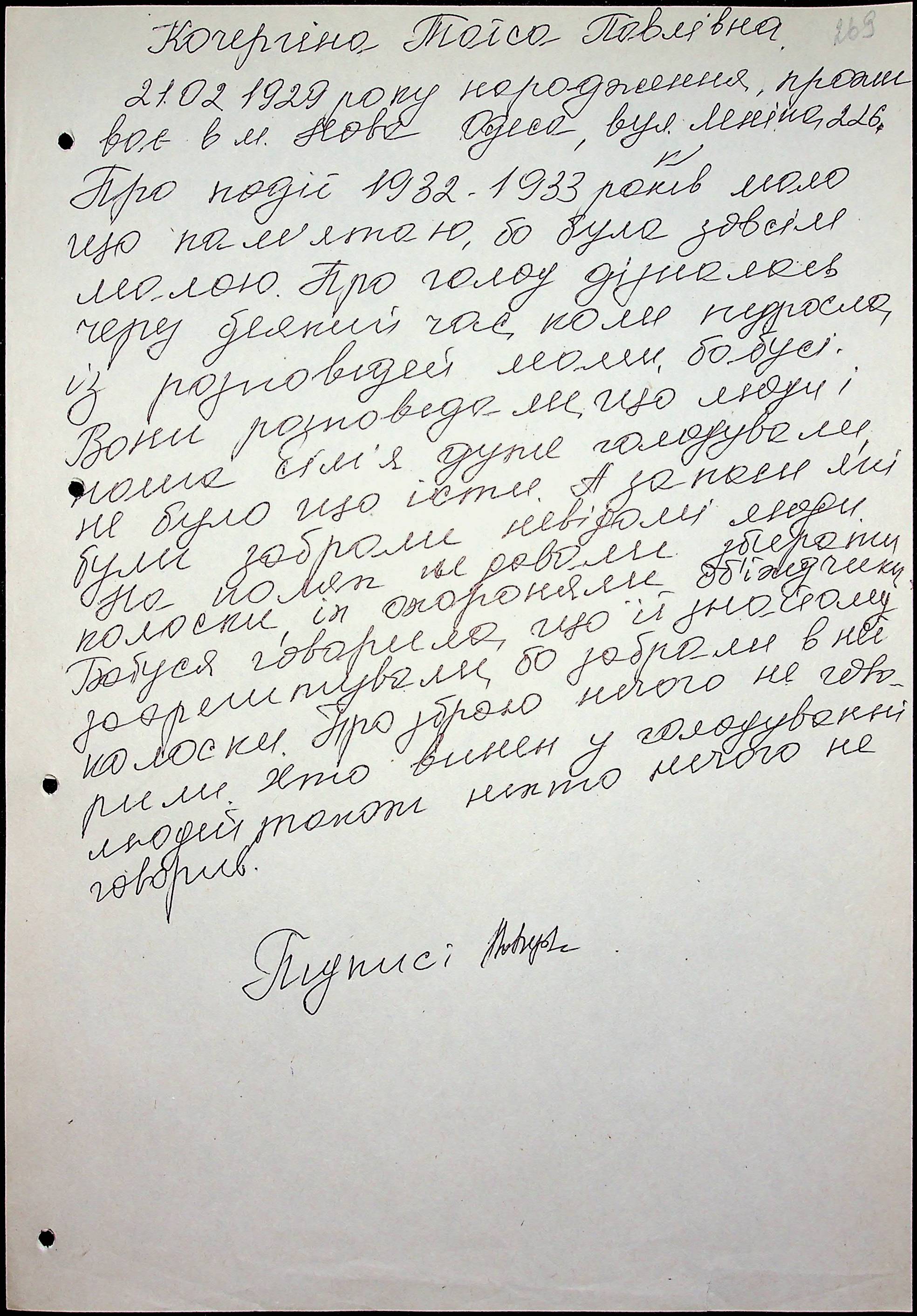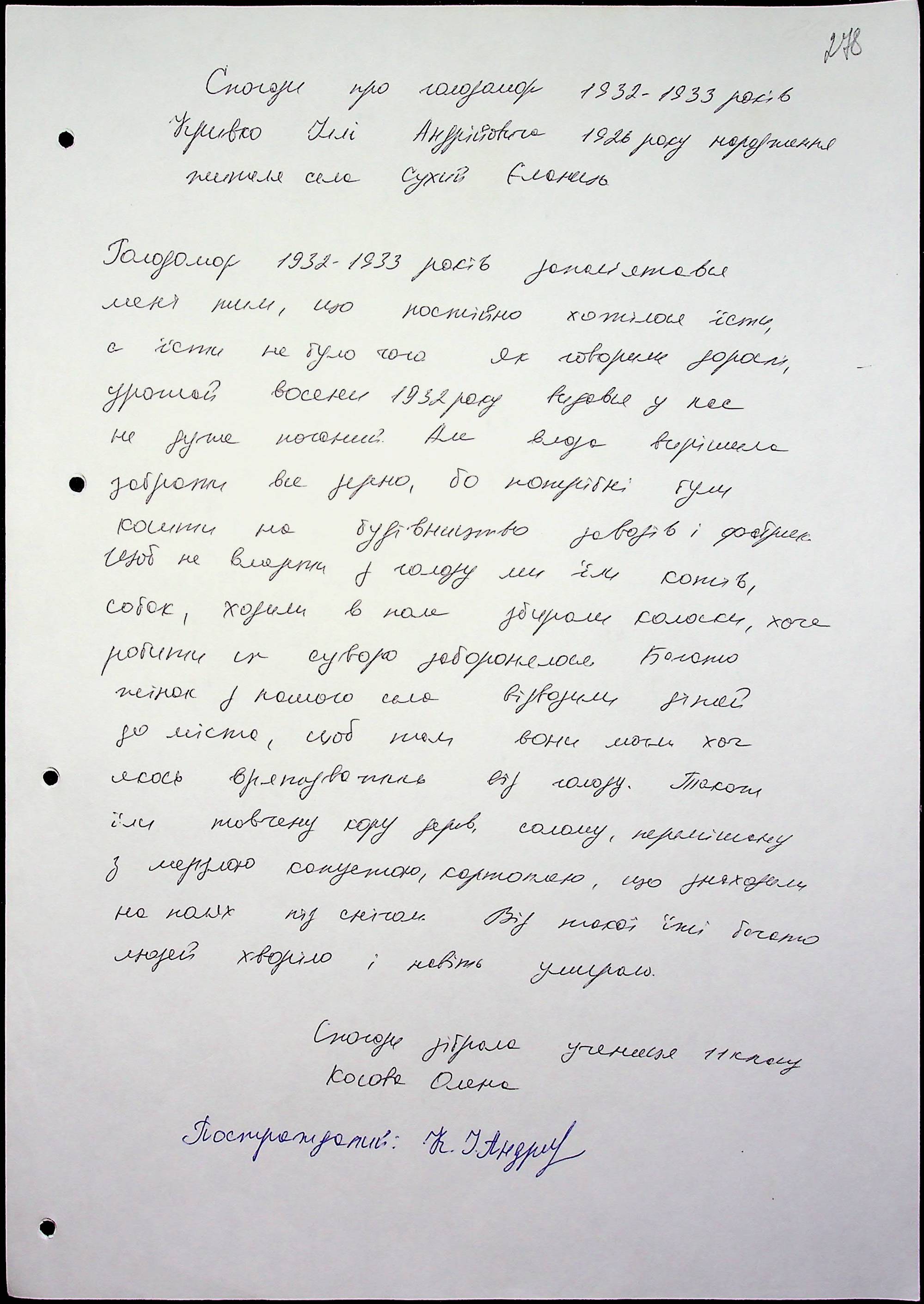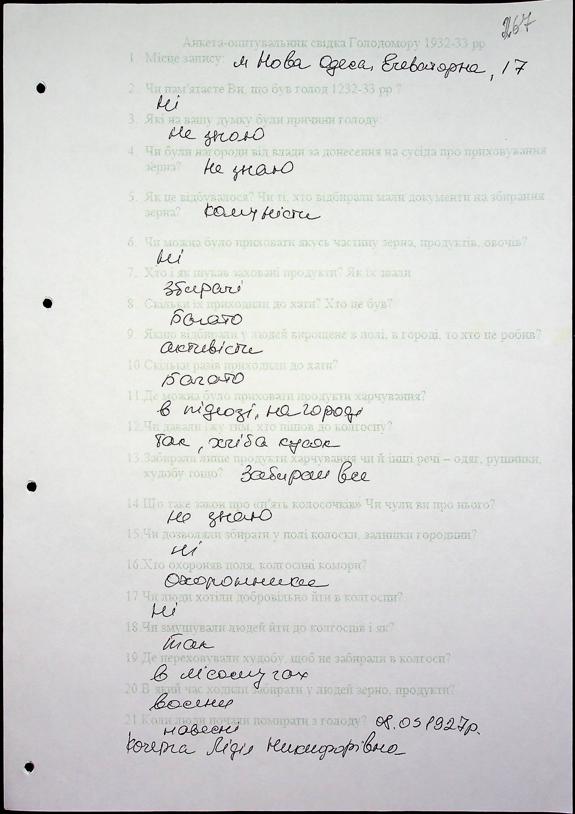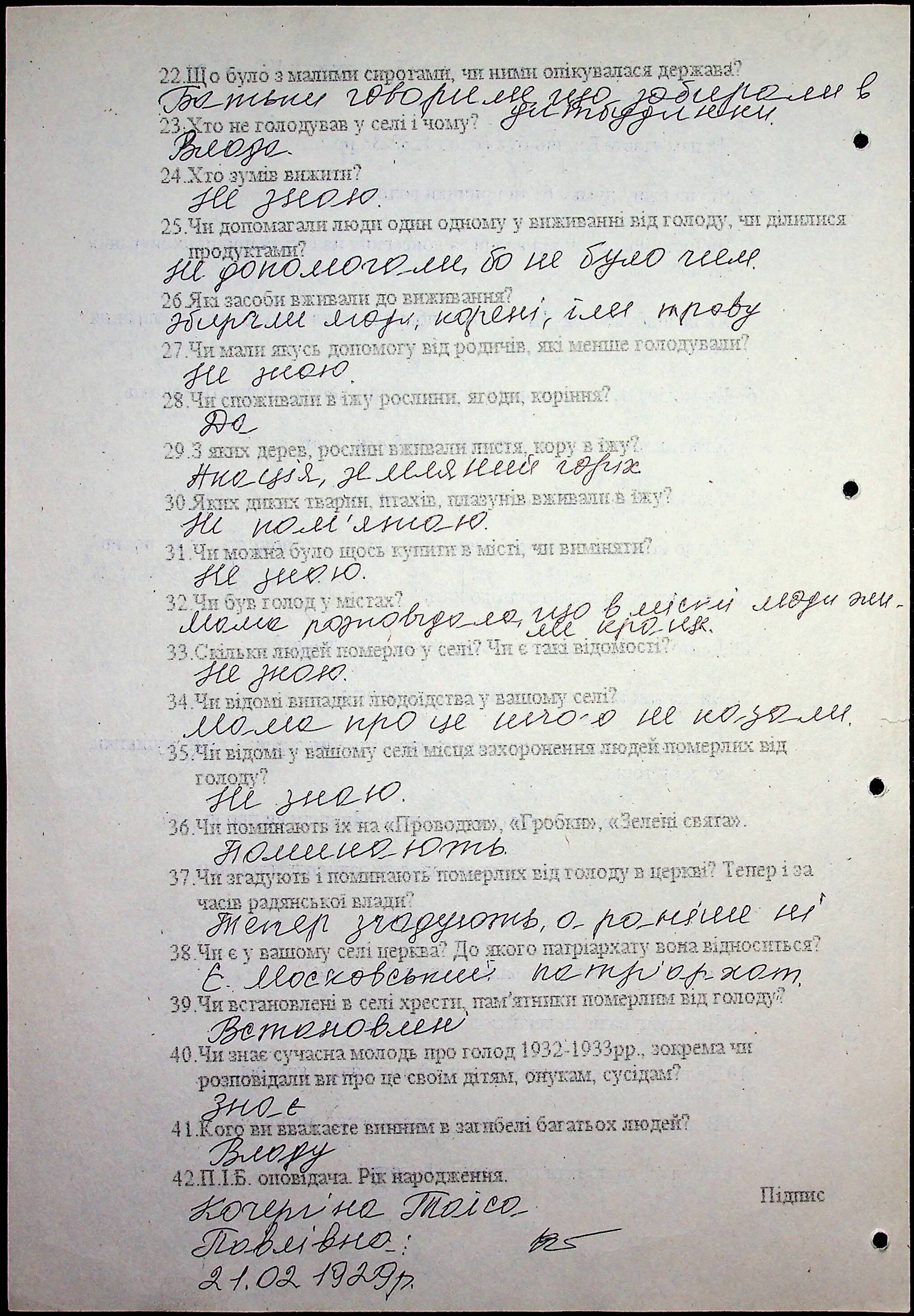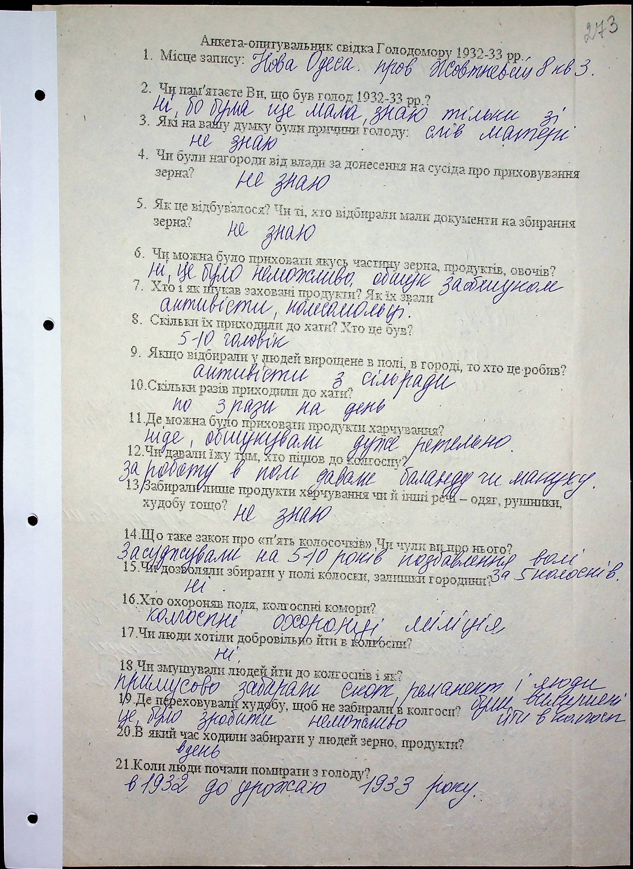 ◦ ◦ Фонд № 6146 “Колекція свідчень очевидців Голодомору 1932-1933 рр., нині проживаючих у Миколаївській області”