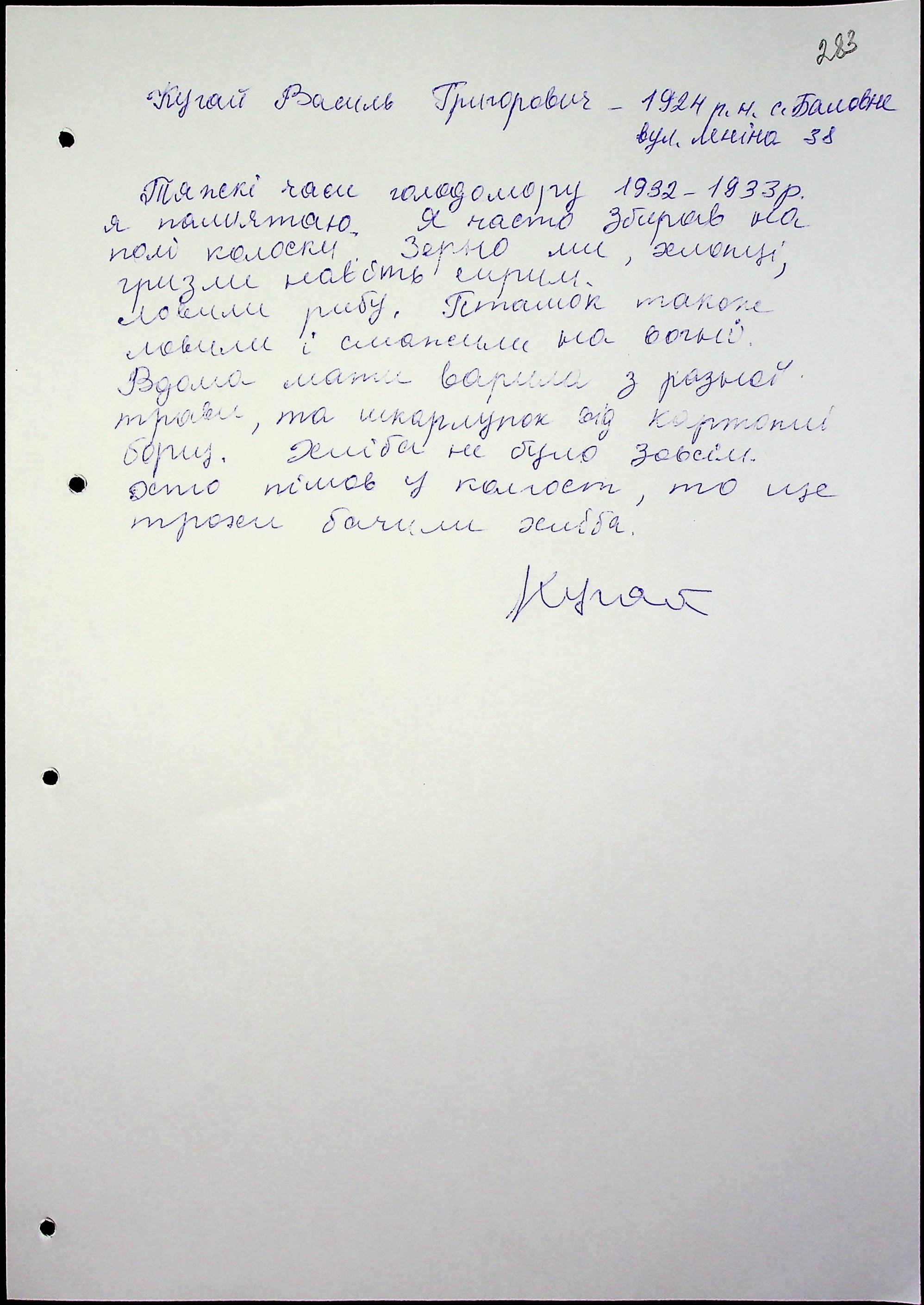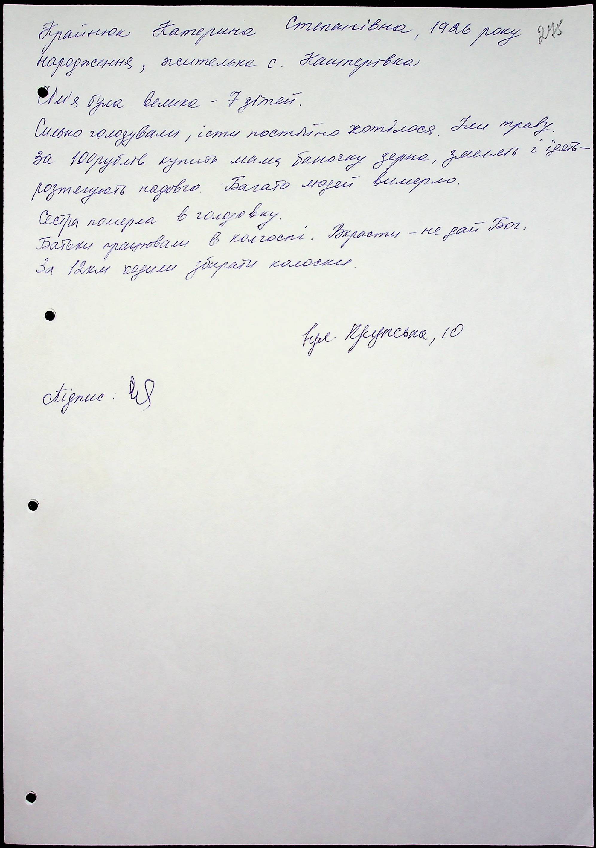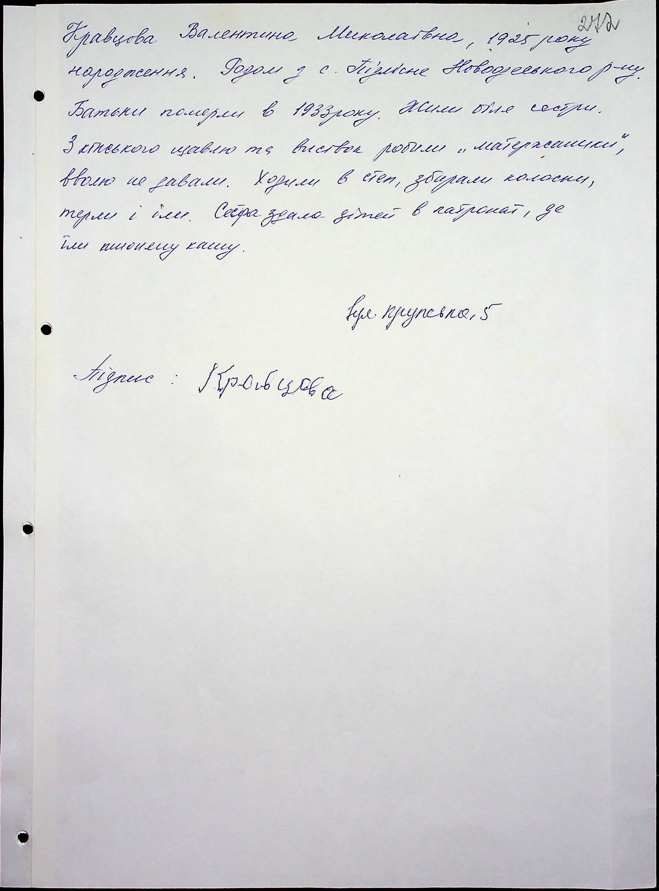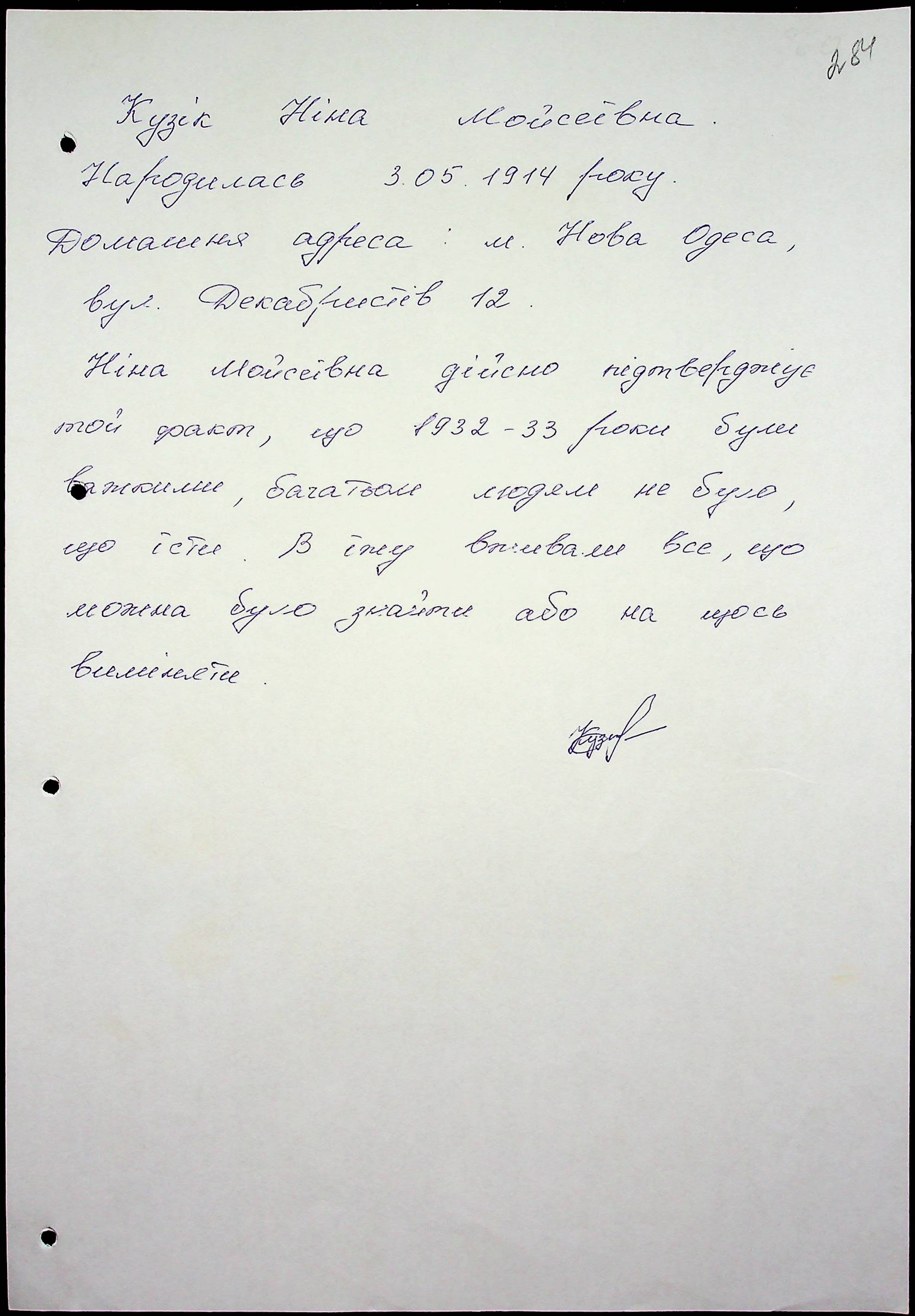 • • • • Справа № 54 “Свідчення очевидців Голодомору 1932-1933 років, які проживають у Новоодеському районі, з прізвищами на літери Д–К”