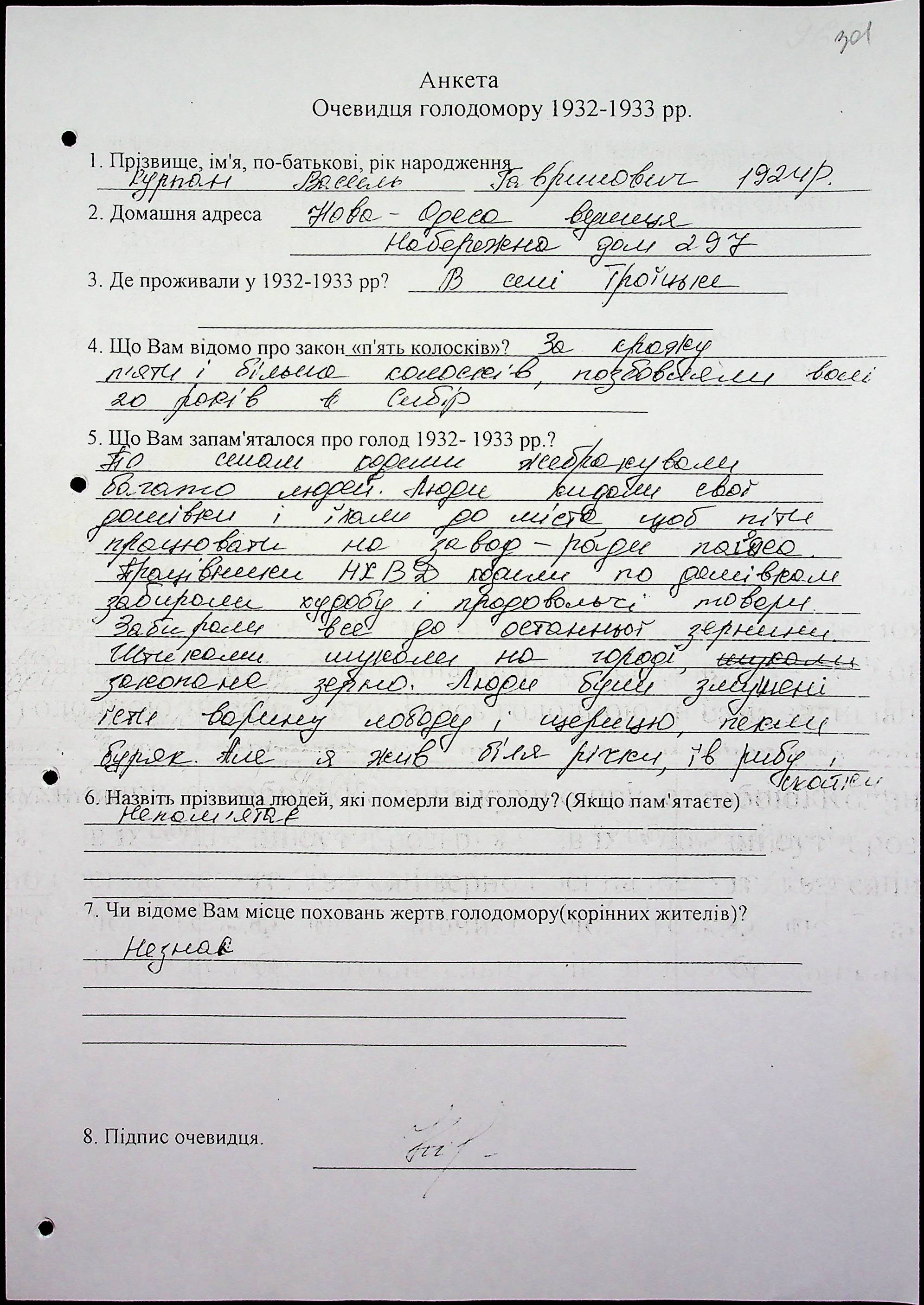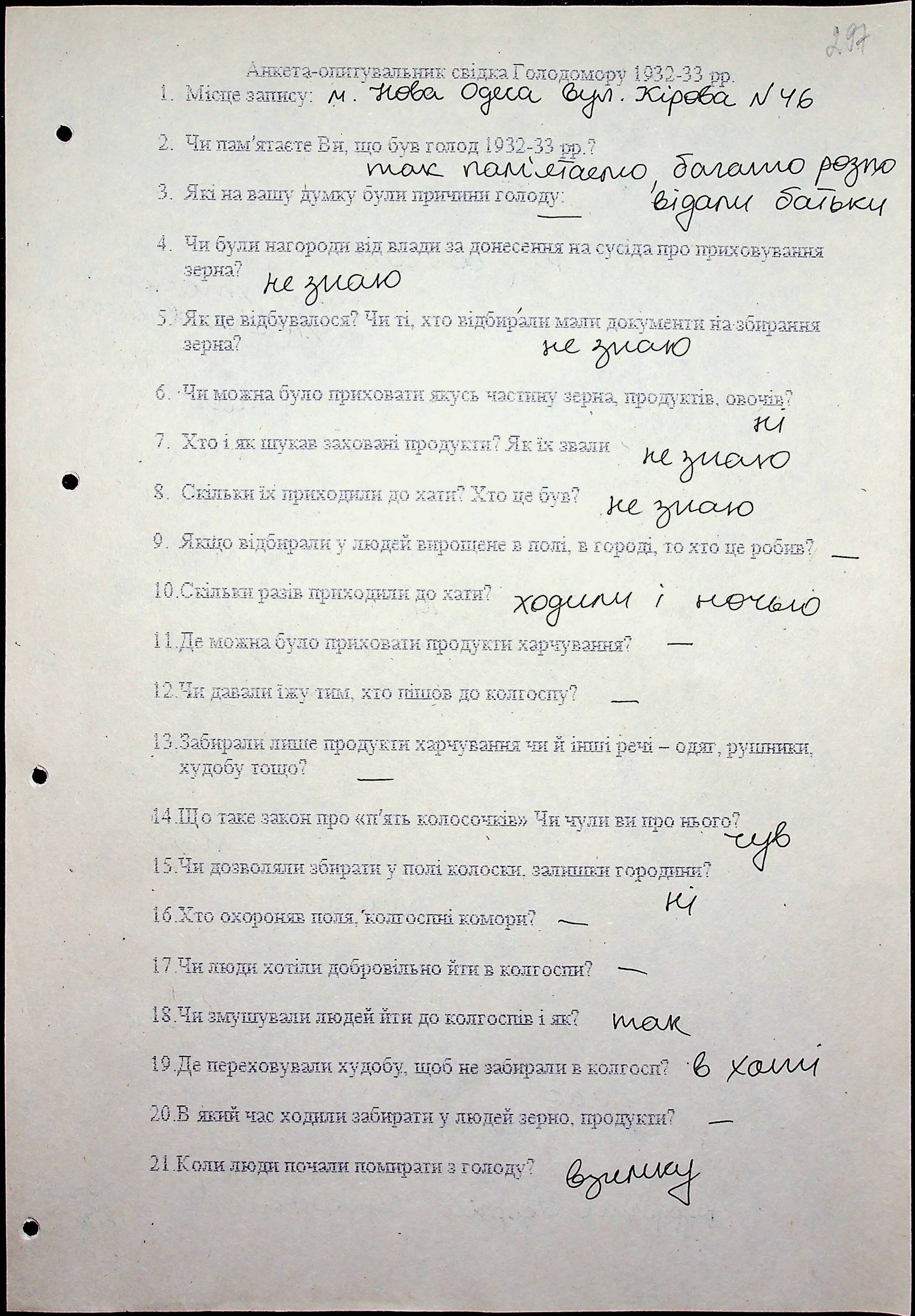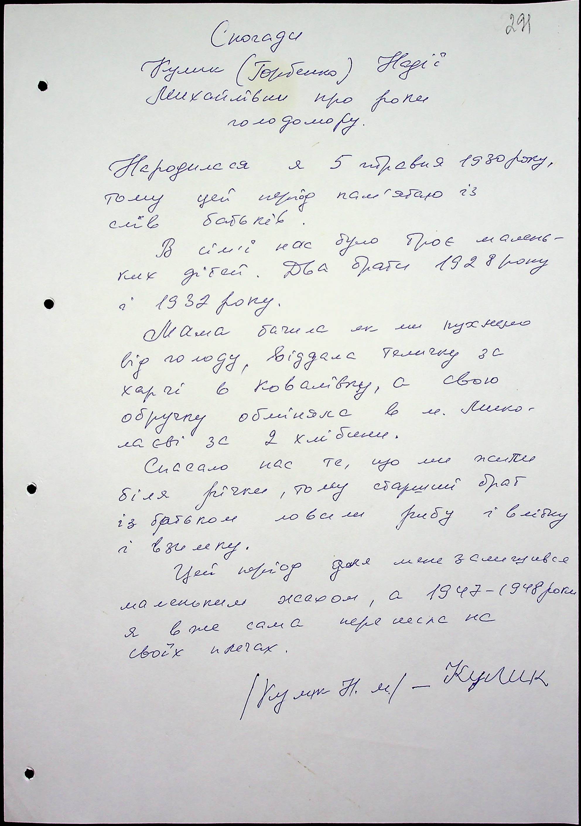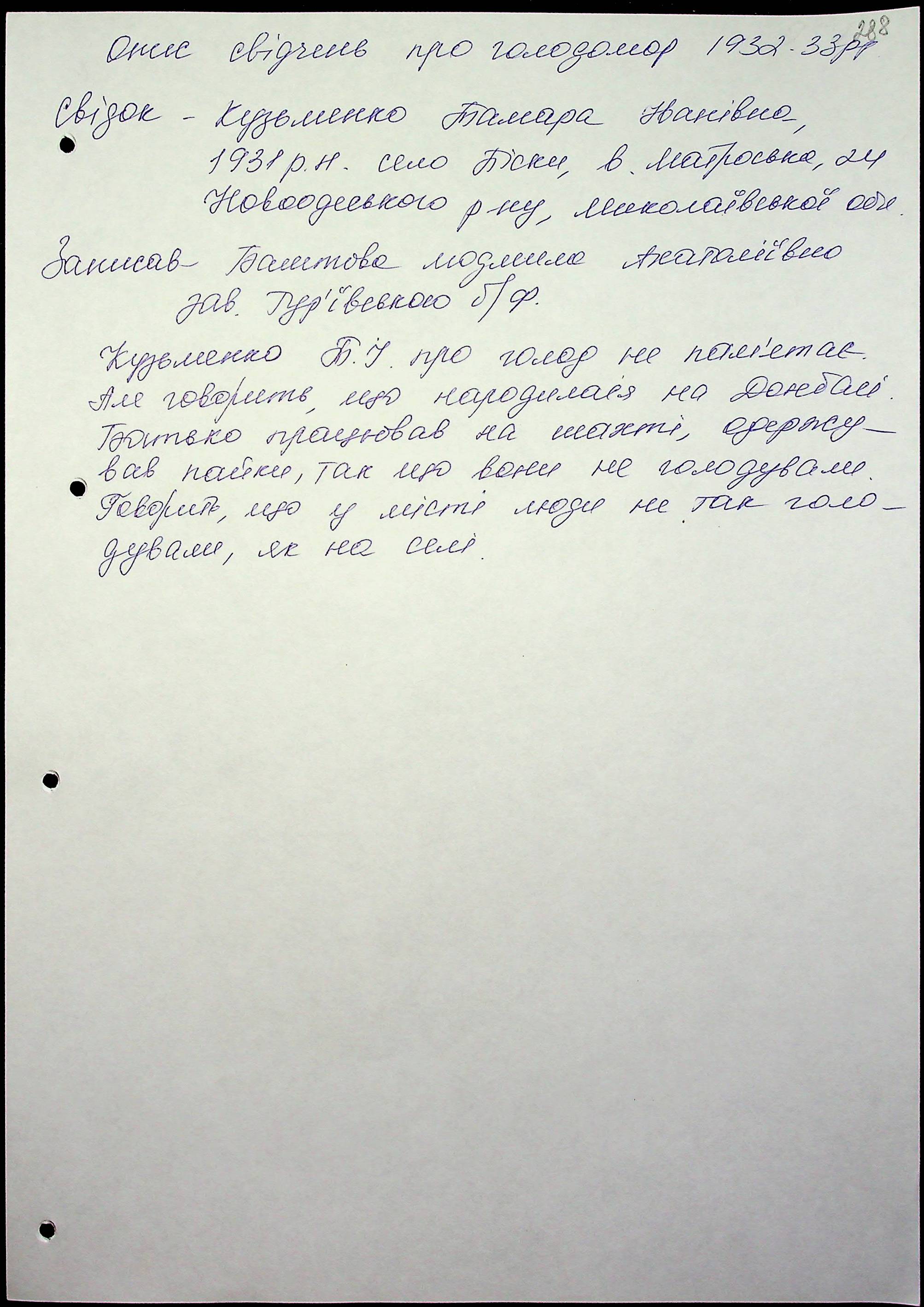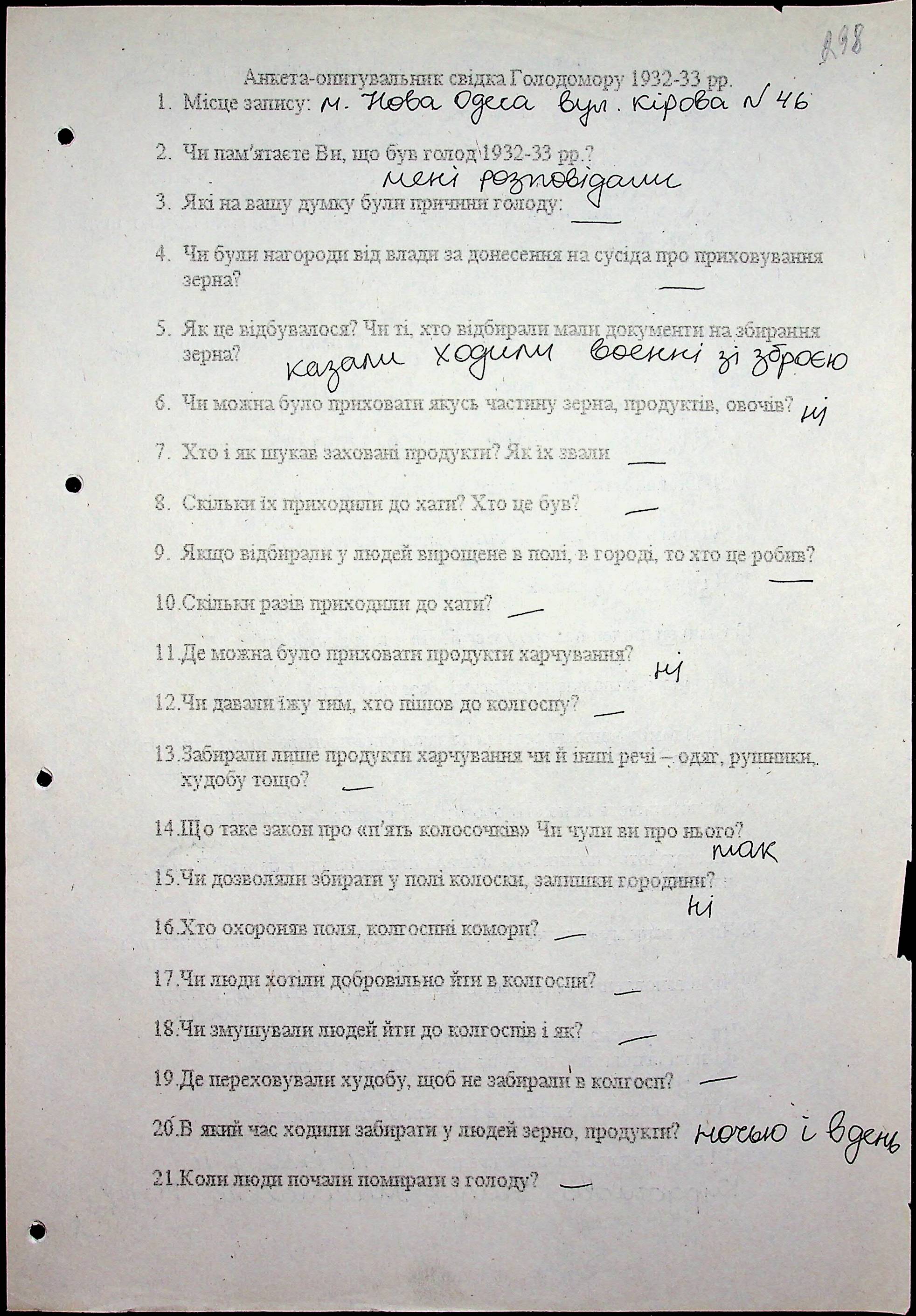 ◦ ◦ Фонд № 6146 “Колекція свідчень очевидців Голодомору 1932-1933 рр., нині проживаючих у Миколаївській області”