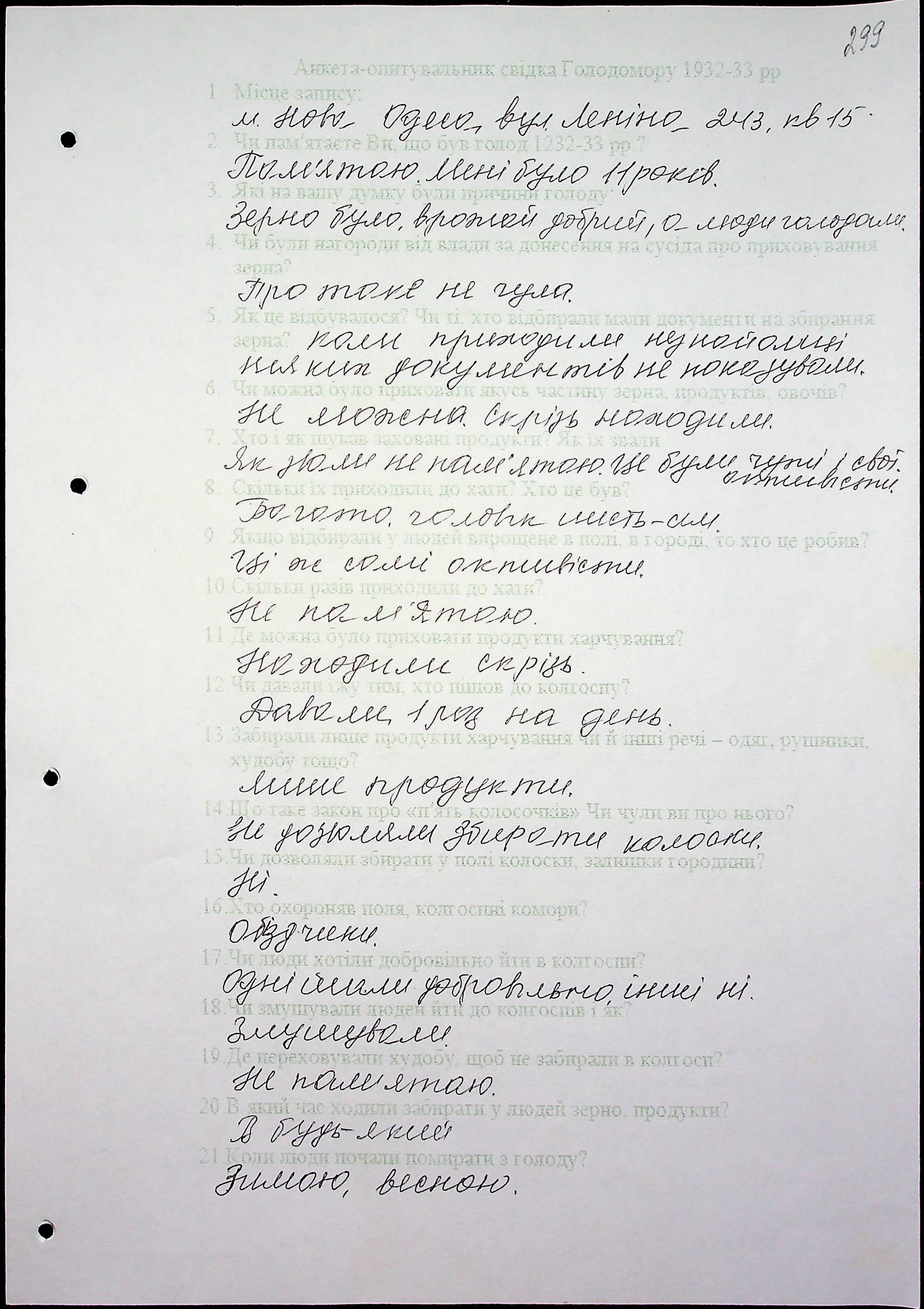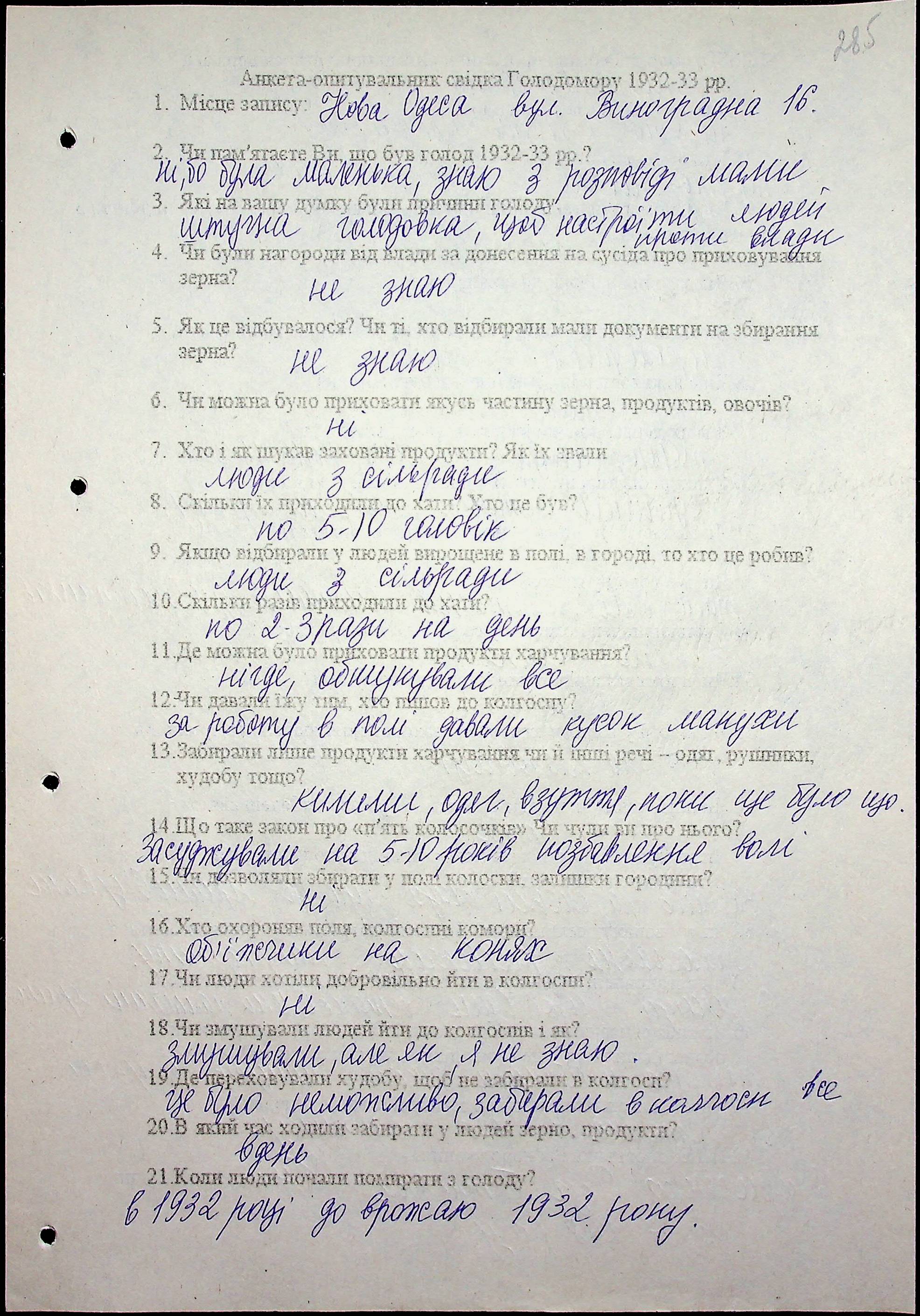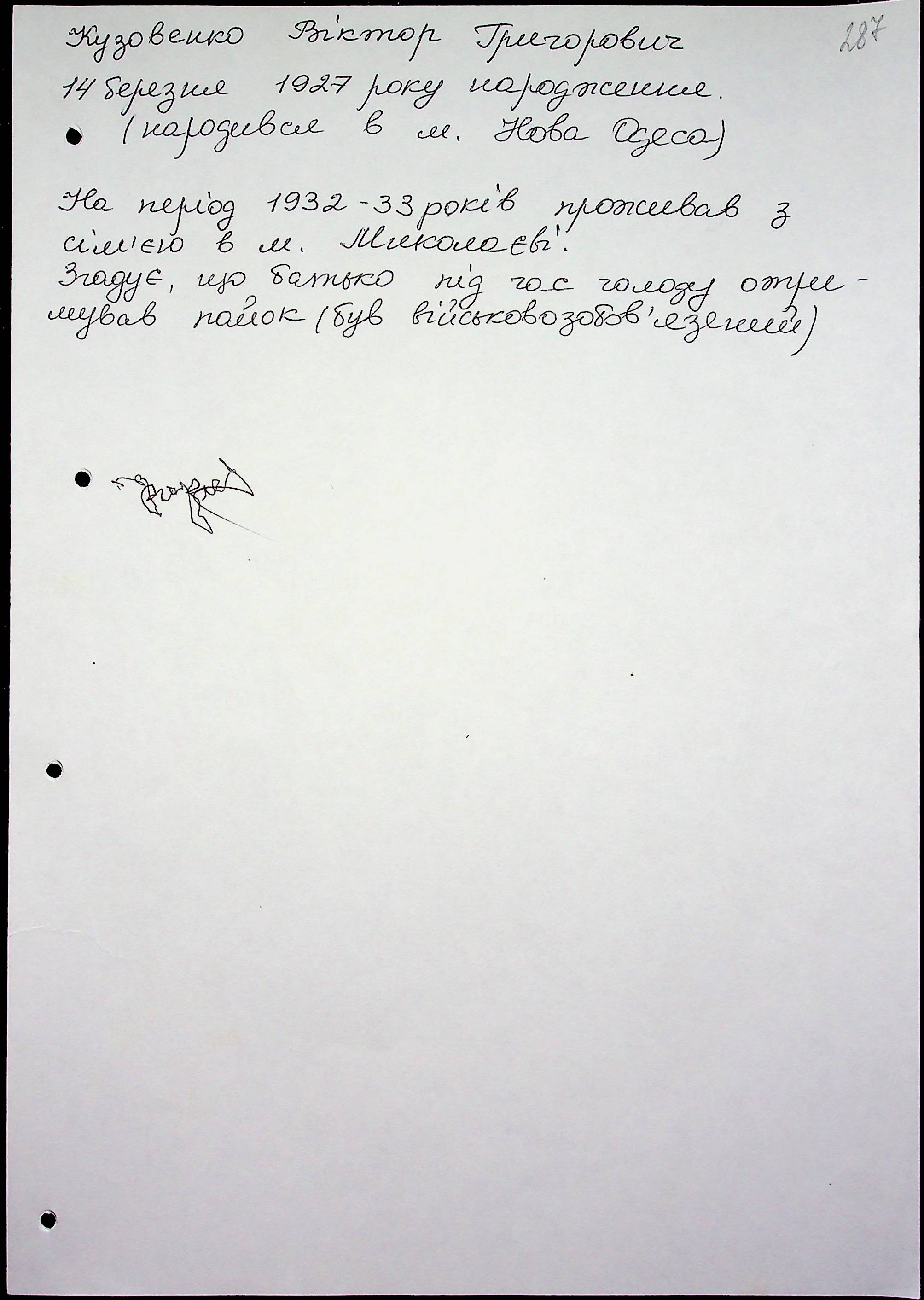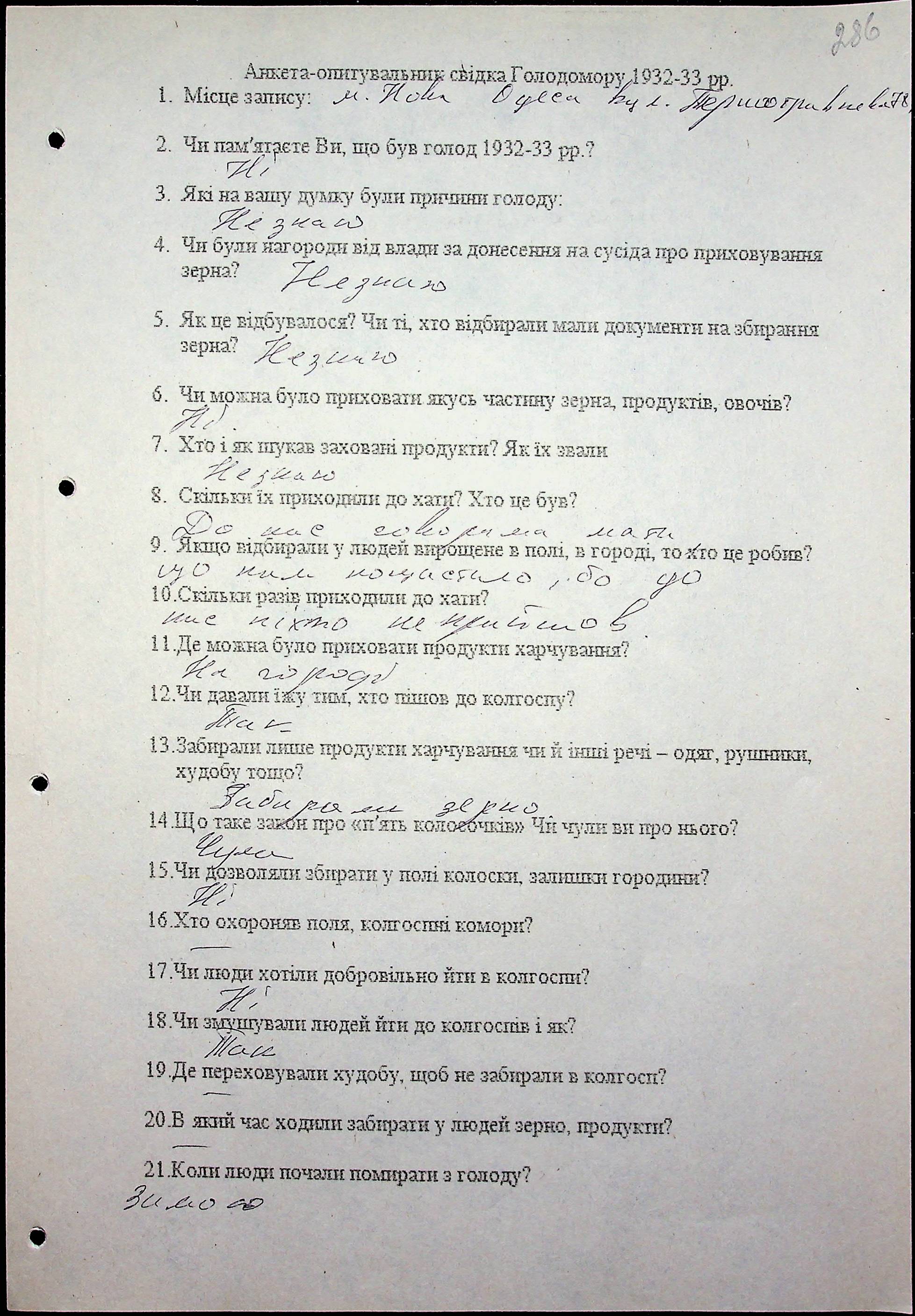 ◦ ◦ Фонд № 6146 “Колекція свідчень очевидців Голодомору 1932-1933 рр., нині проживаючих у Миколаївській області”