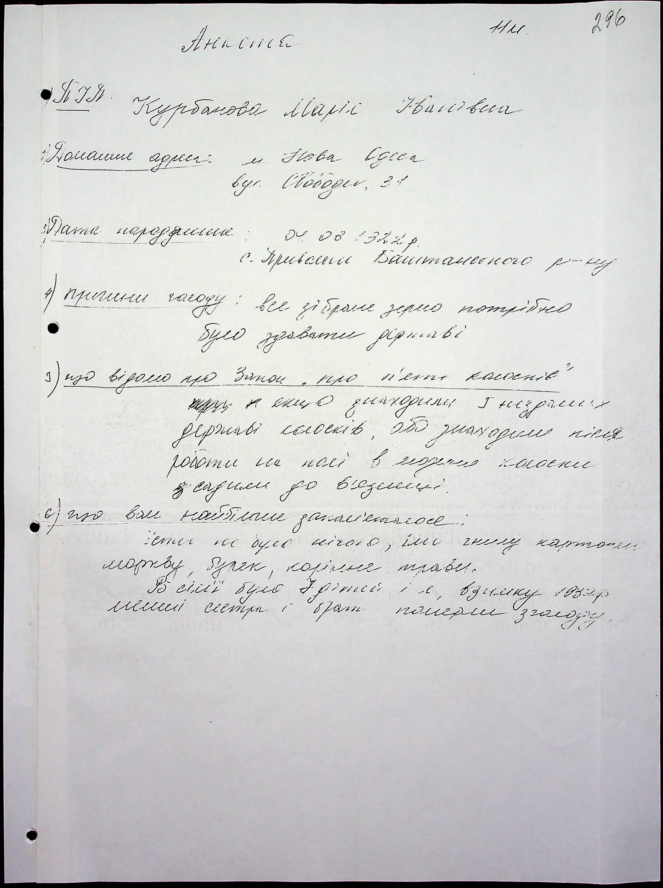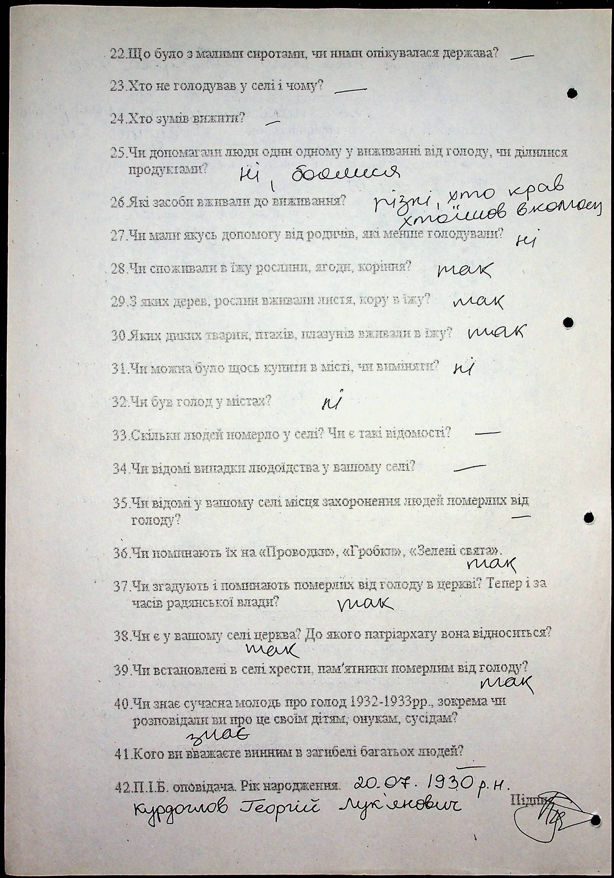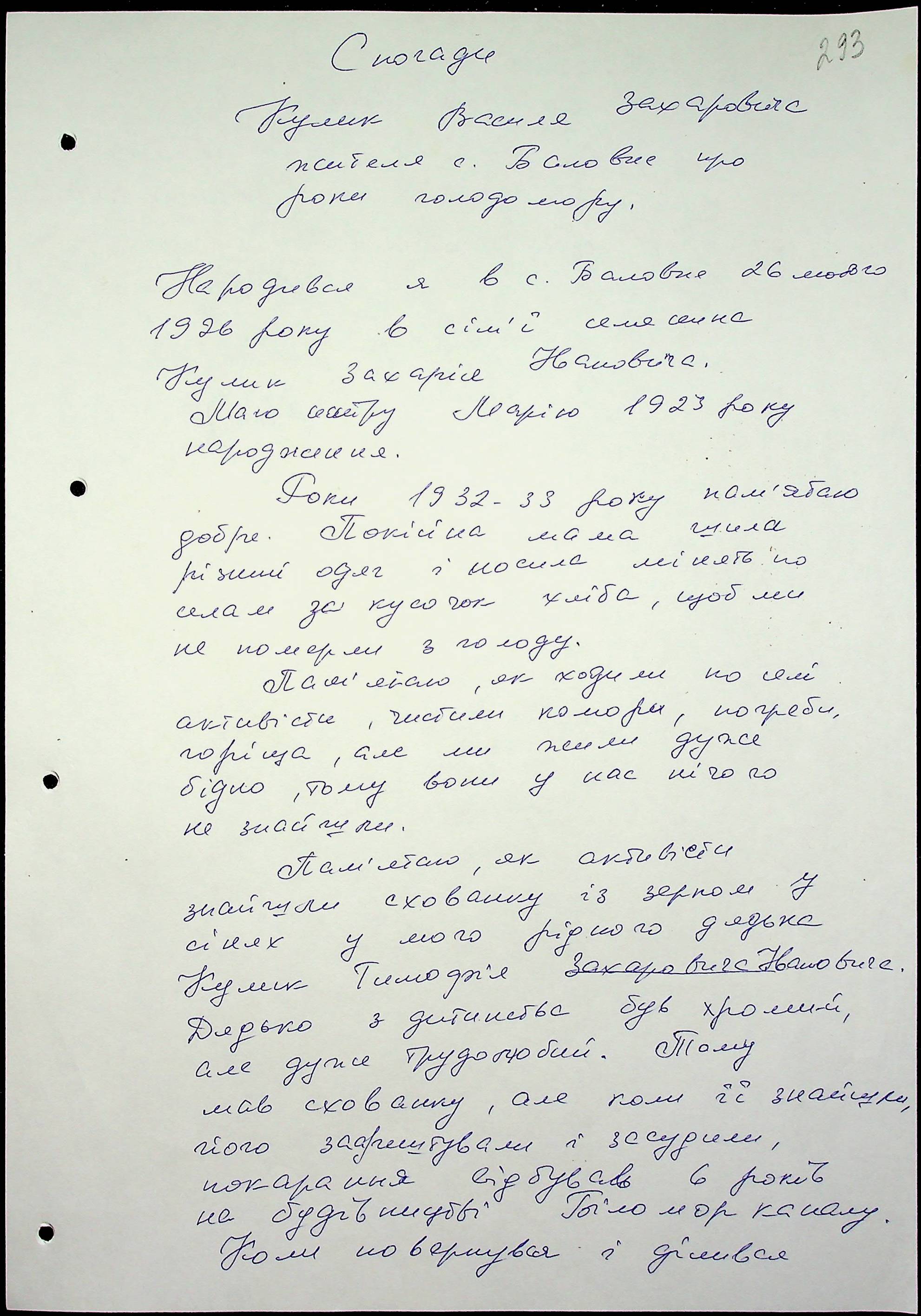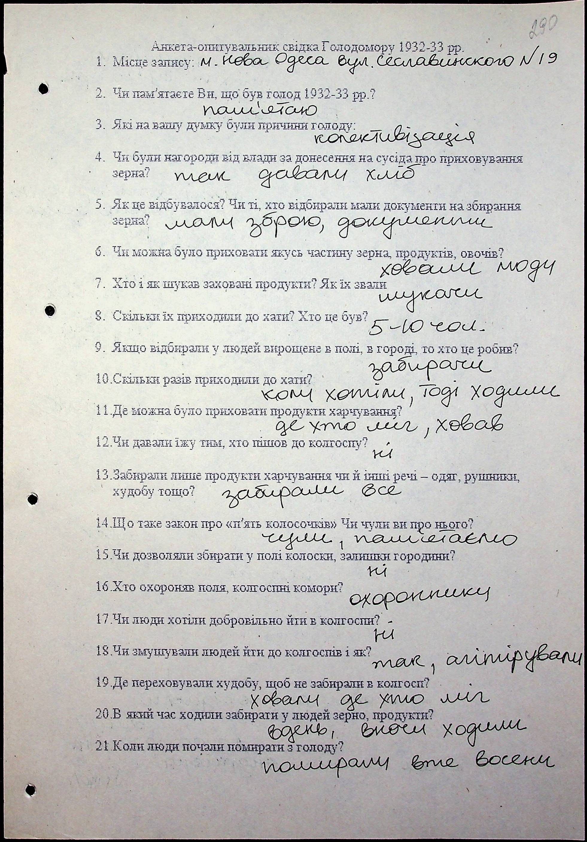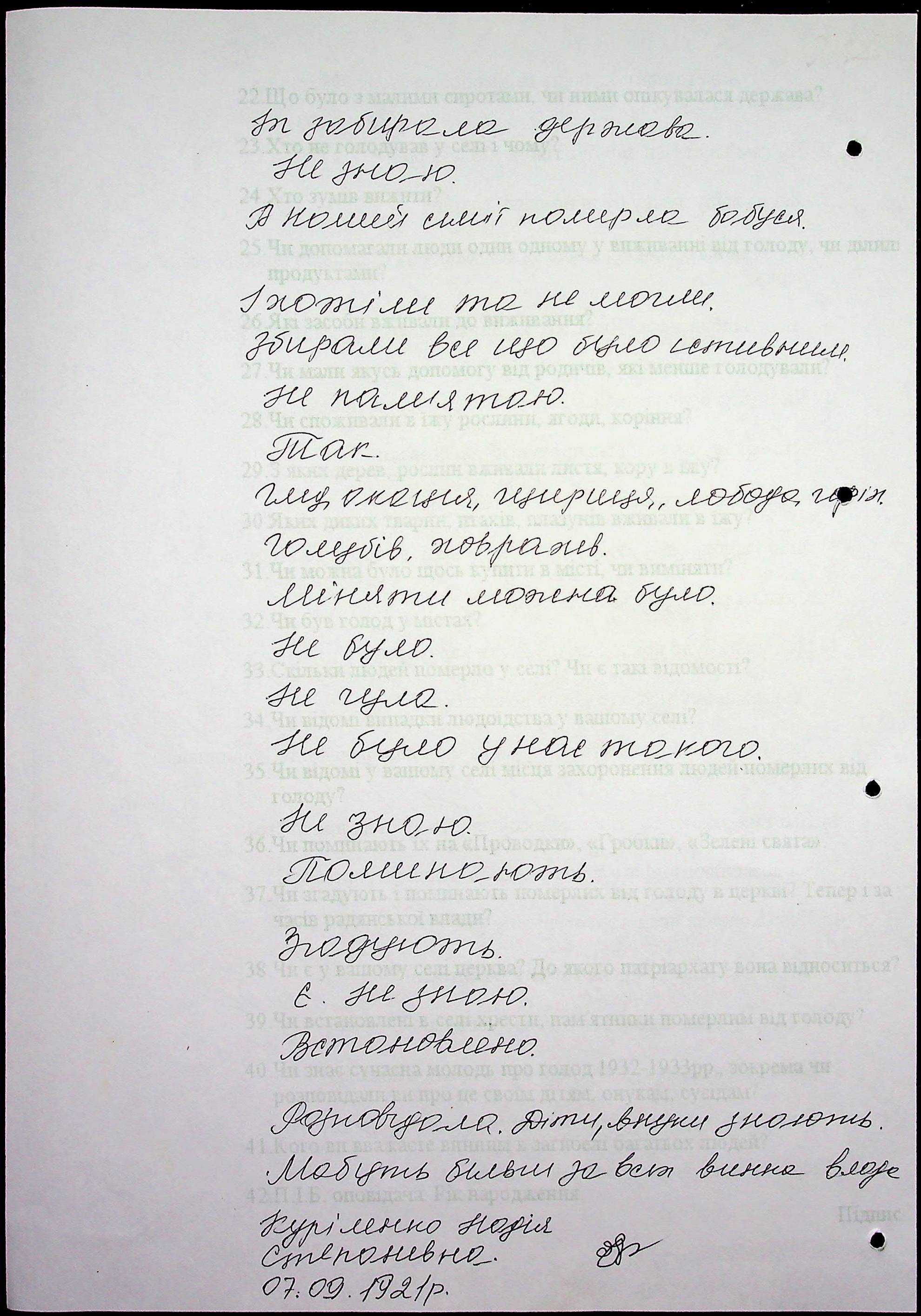 ◦ ◦ Фонд № 6146 “Колекція свідчень очевидців Голодомору 1932-1933 рр., нині проживаючих у Миколаївській області”