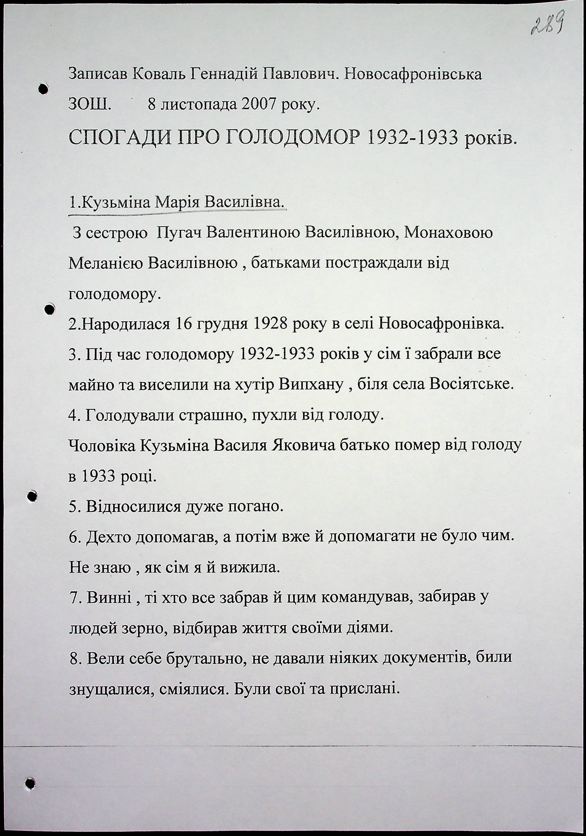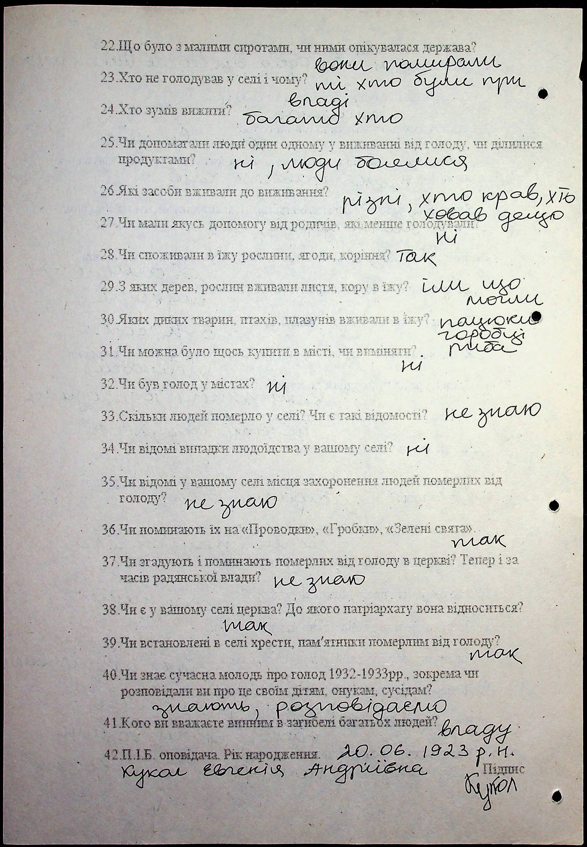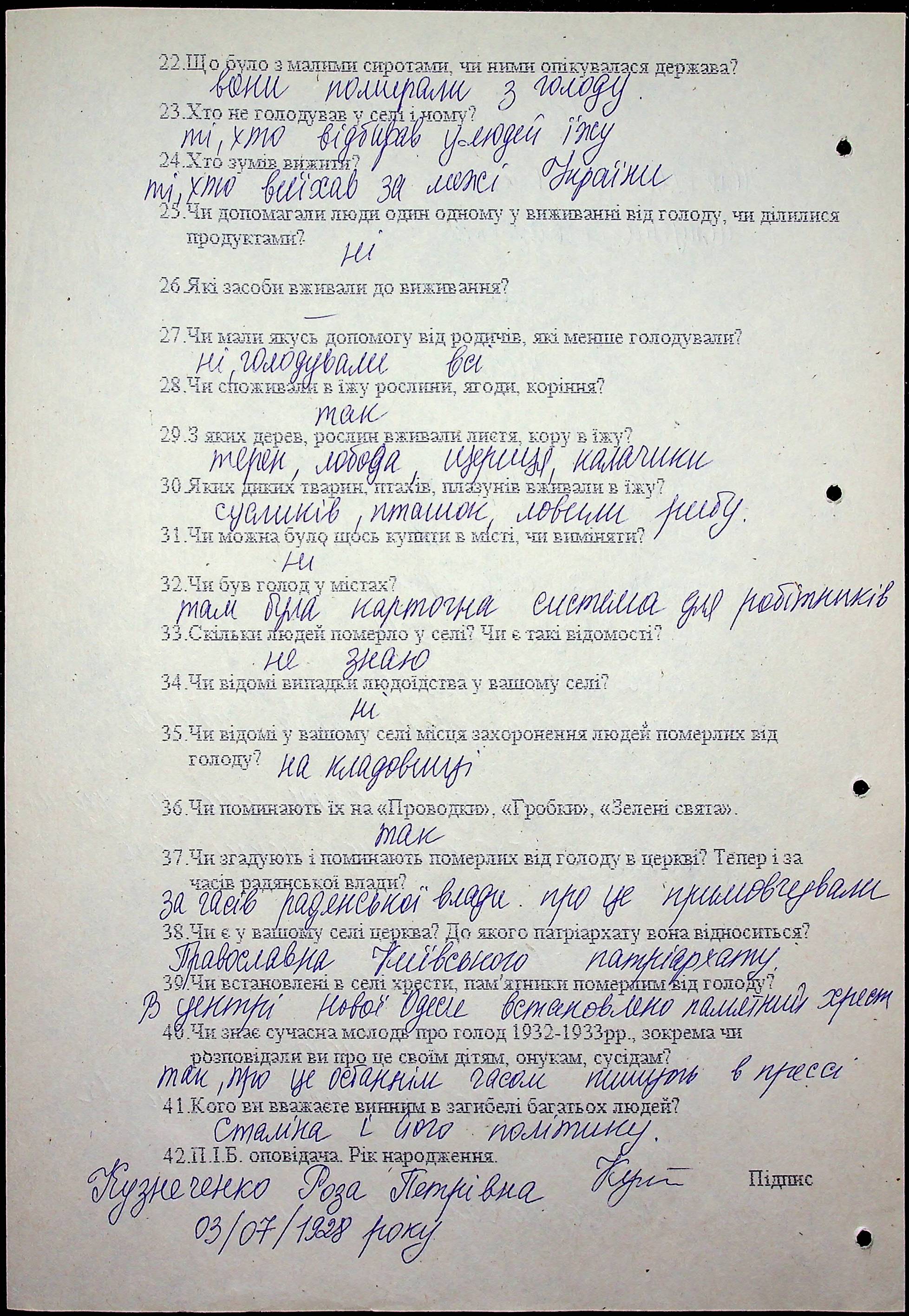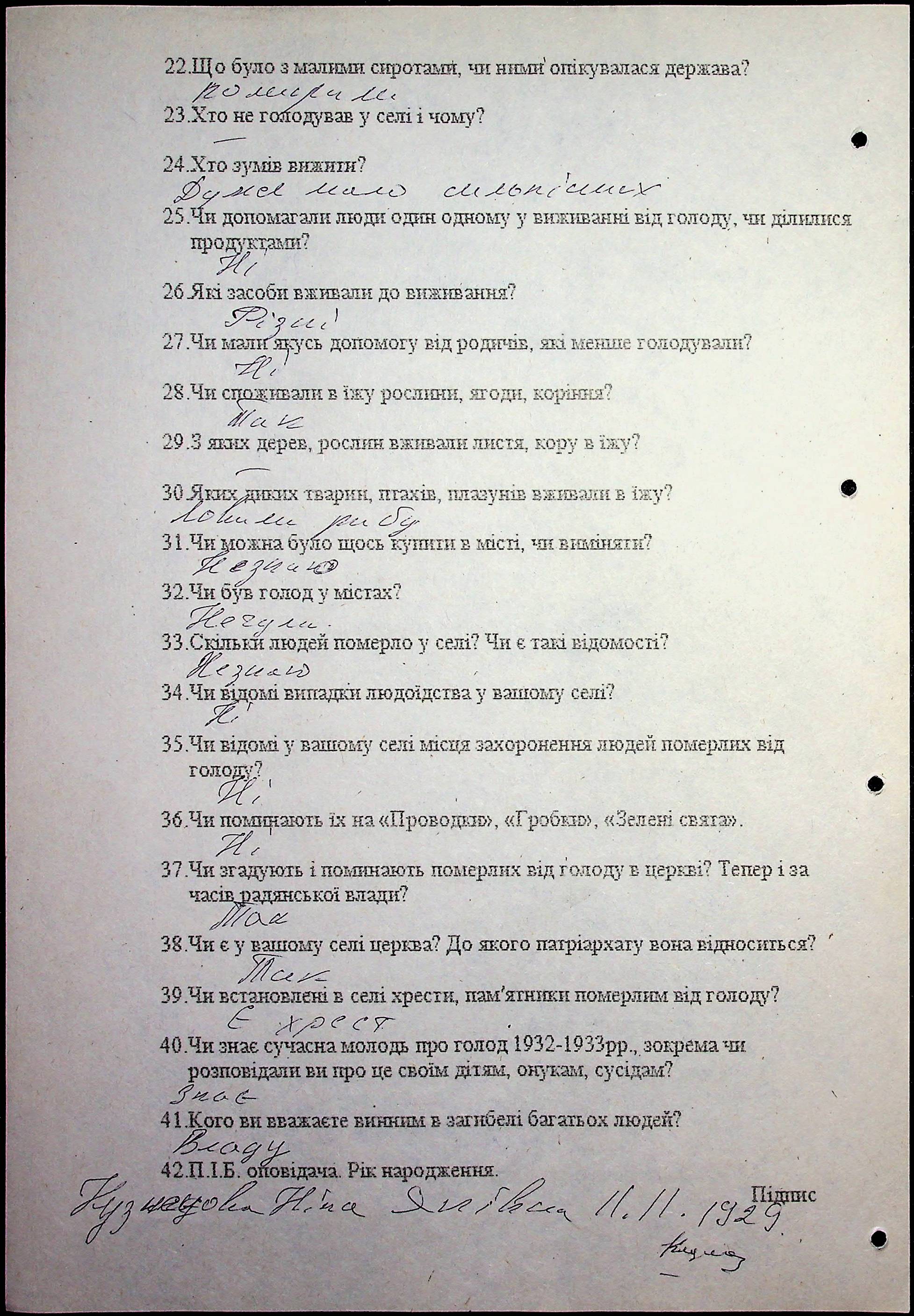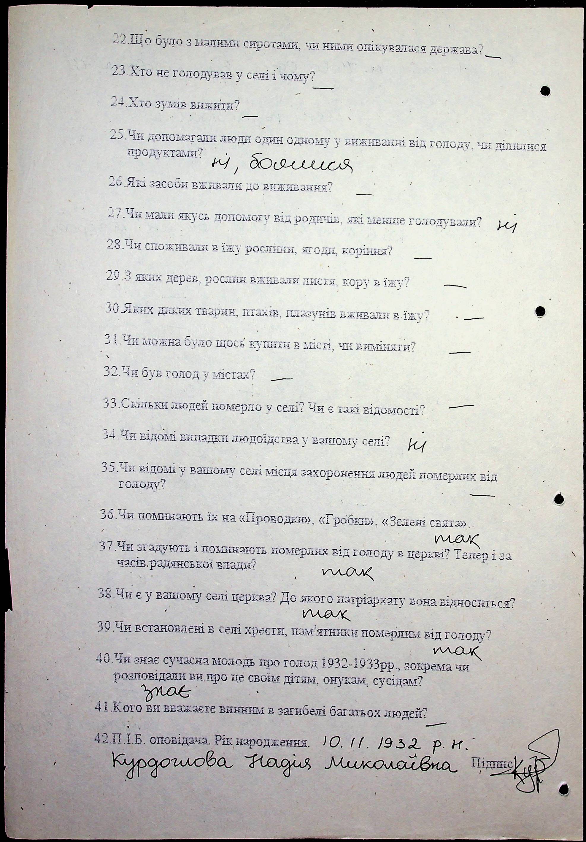 ◦ ◦ Фонд № 6146 “Колекція свідчень очевидців Голодомору 1932-1933 рр., нині проживаючих у Миколаївській області”