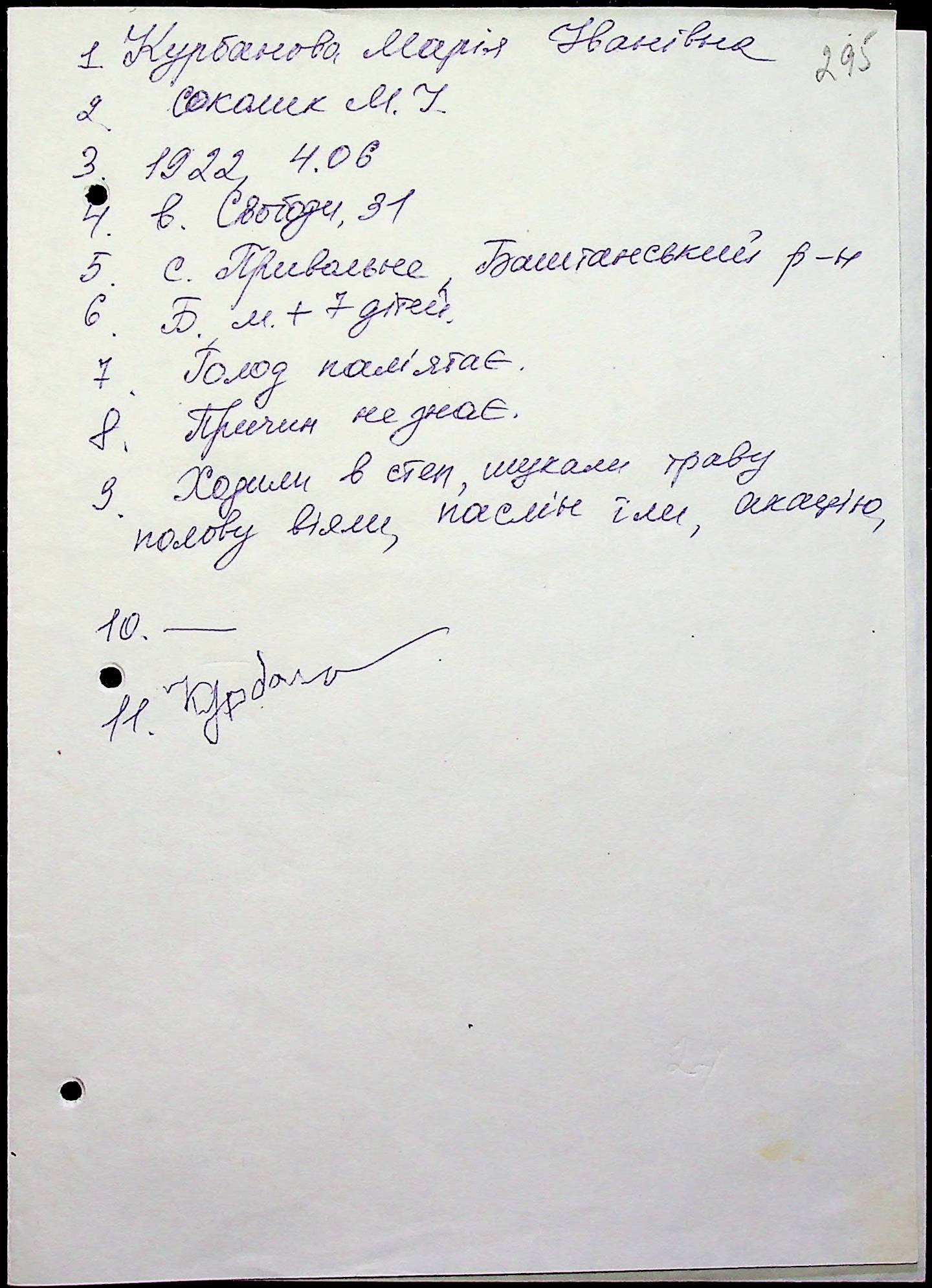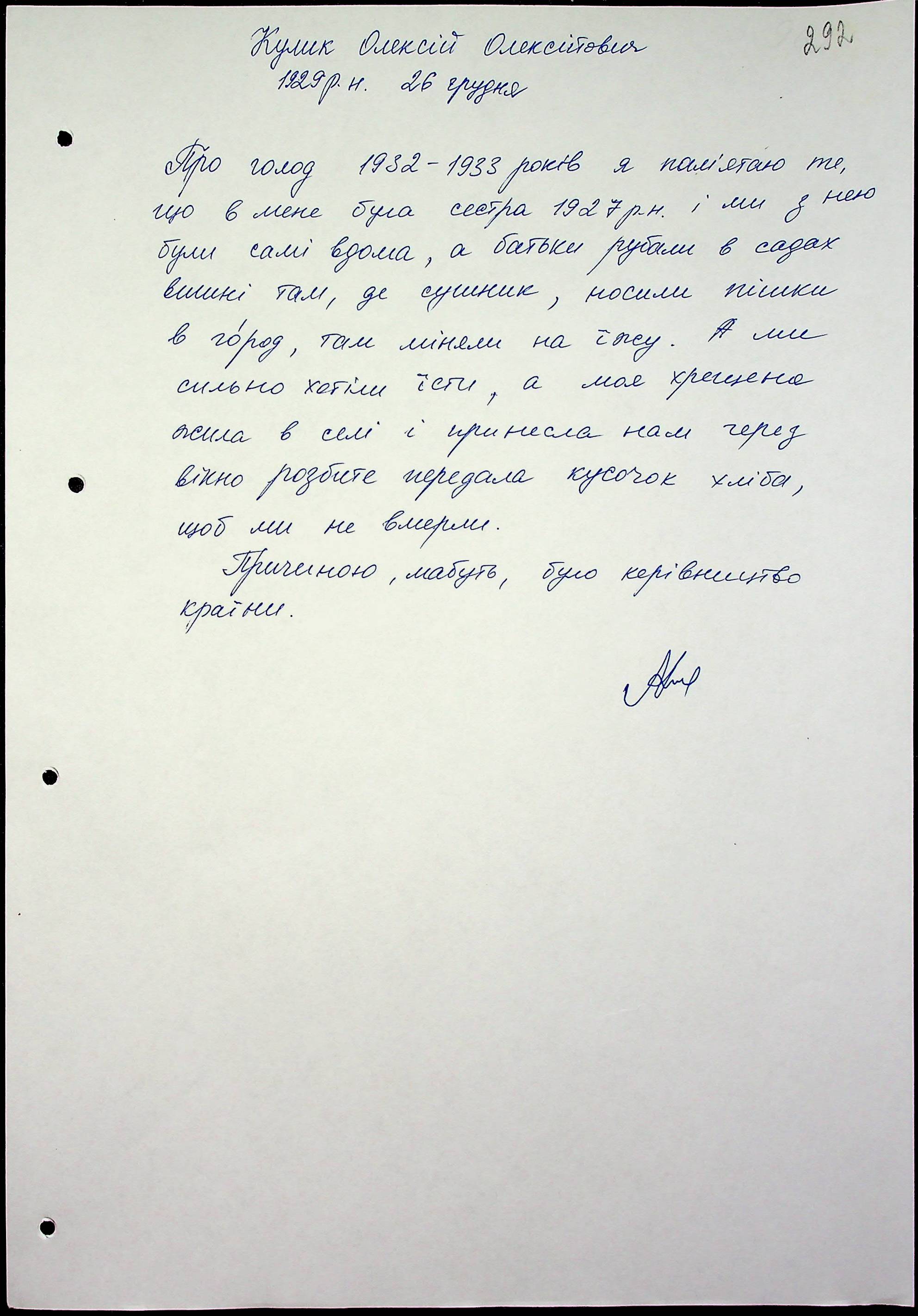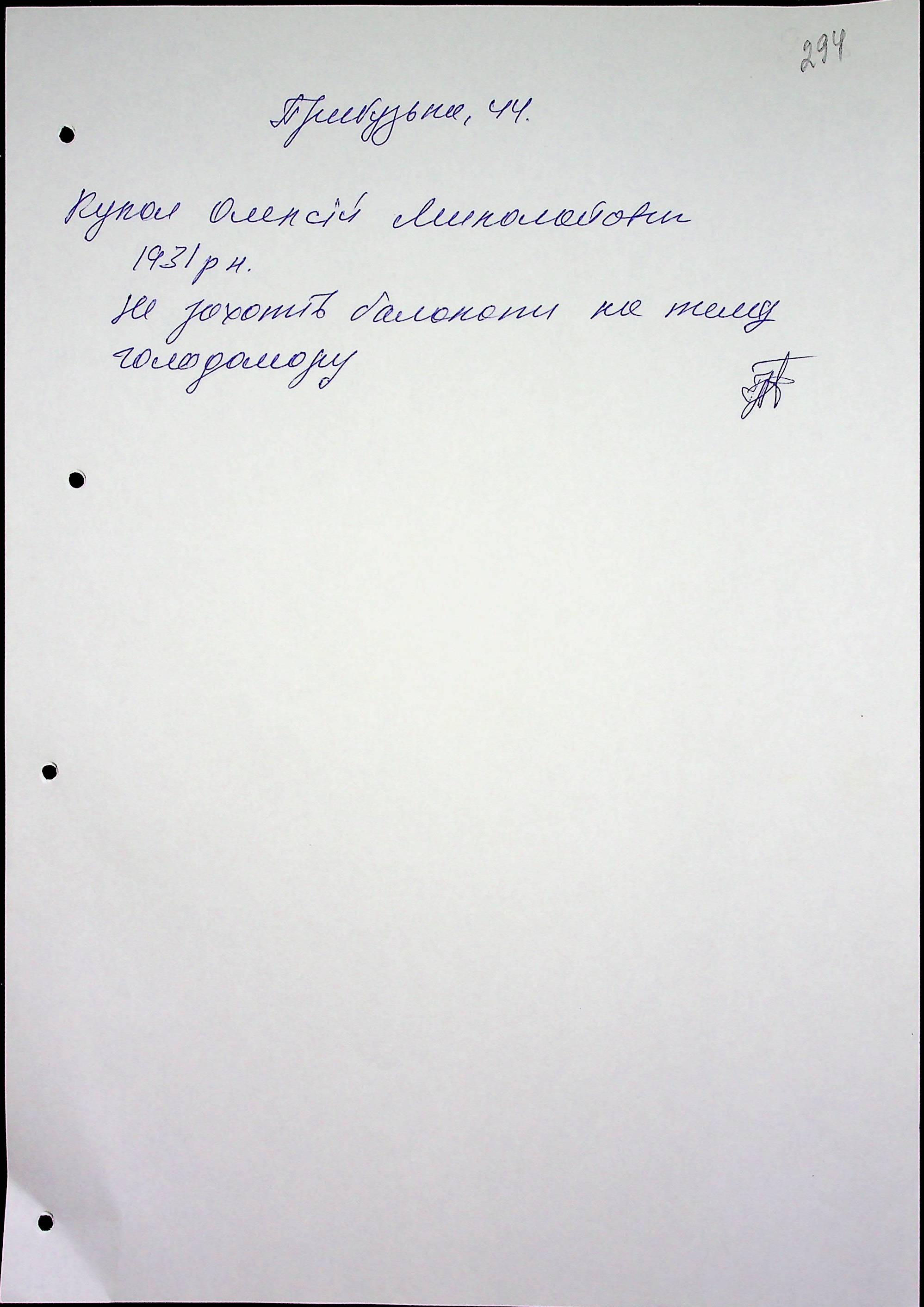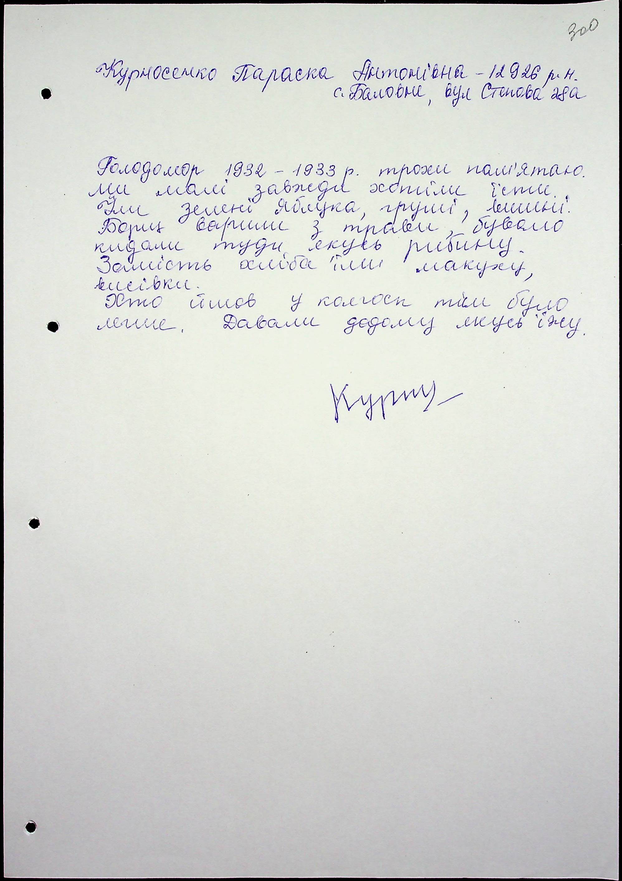 • • • • Справа № 54 “Свідчення очевидців Голодомору 1932-1933 років, які проживають у Новоодеському районі, з прізвищами на літери Д–К”