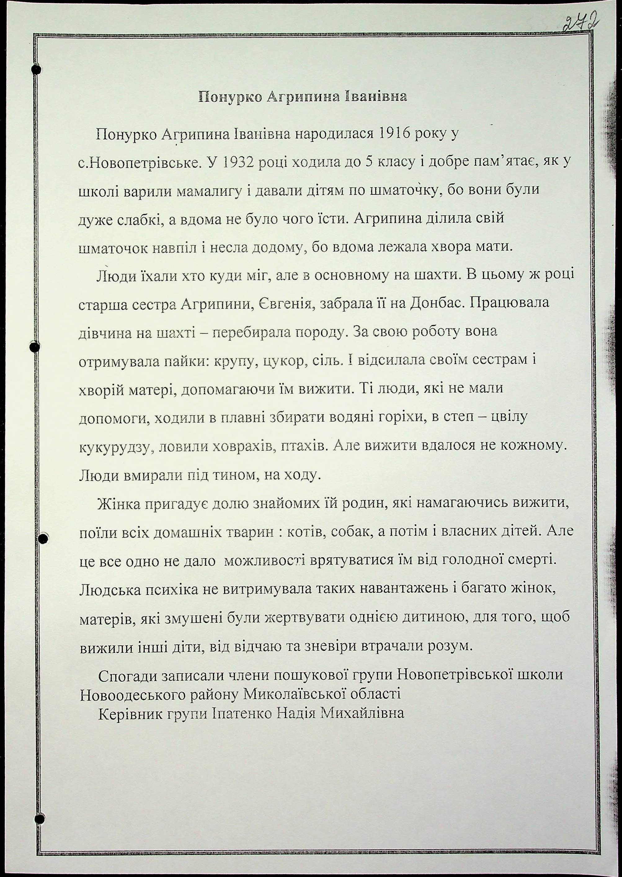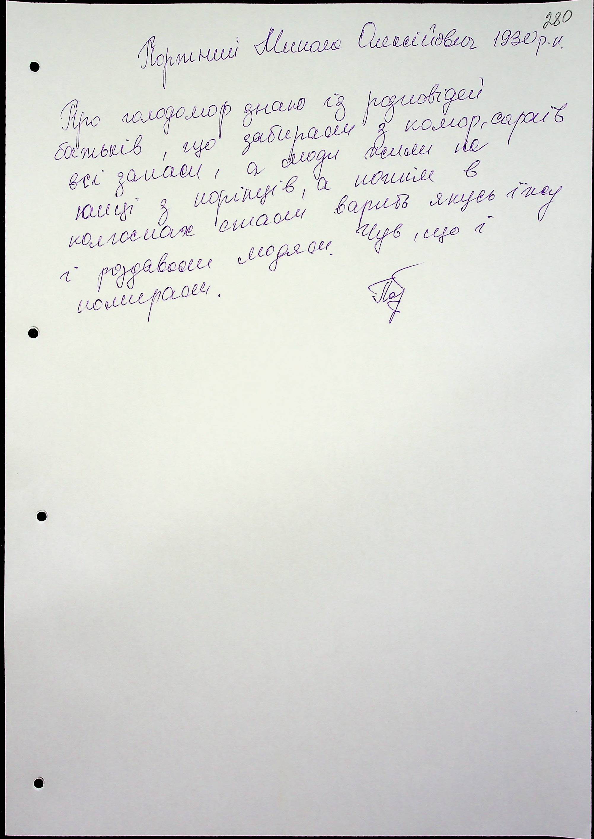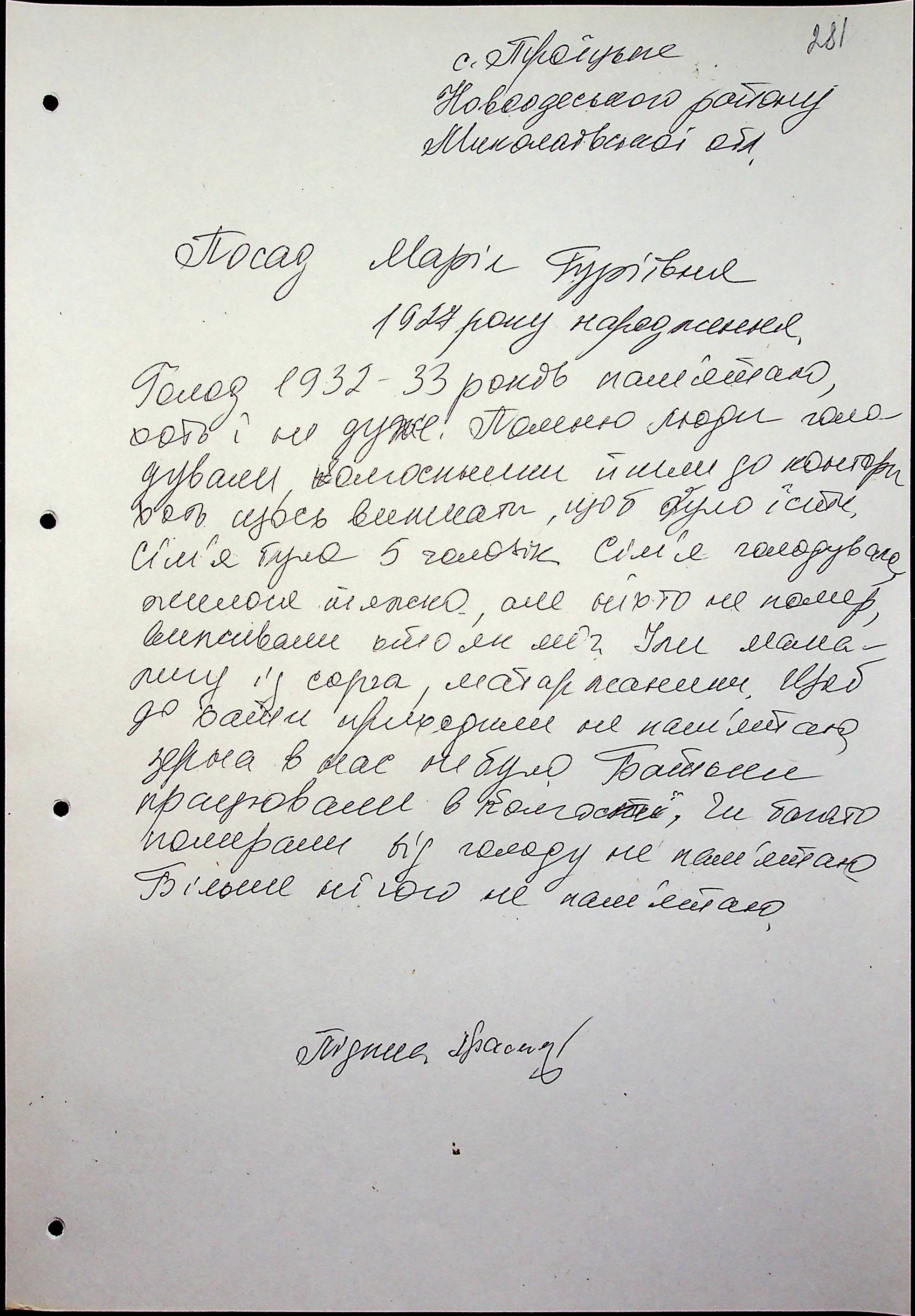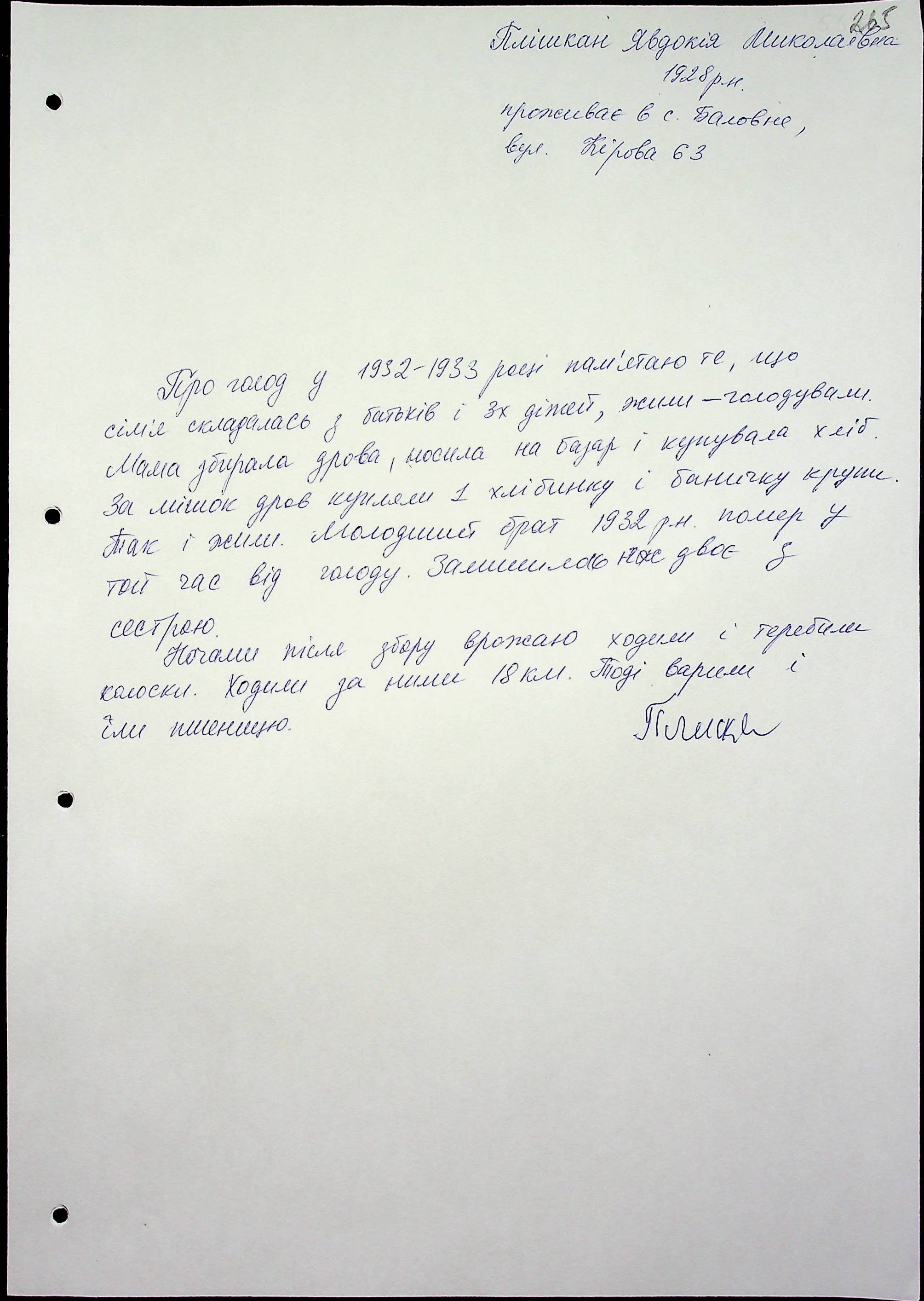 • • • • Справа № 55 “Свідчення очевидців Голодомору 1932-1933 років, які проживають у Новоодеському районі, з прізвищами на літери Л–П”