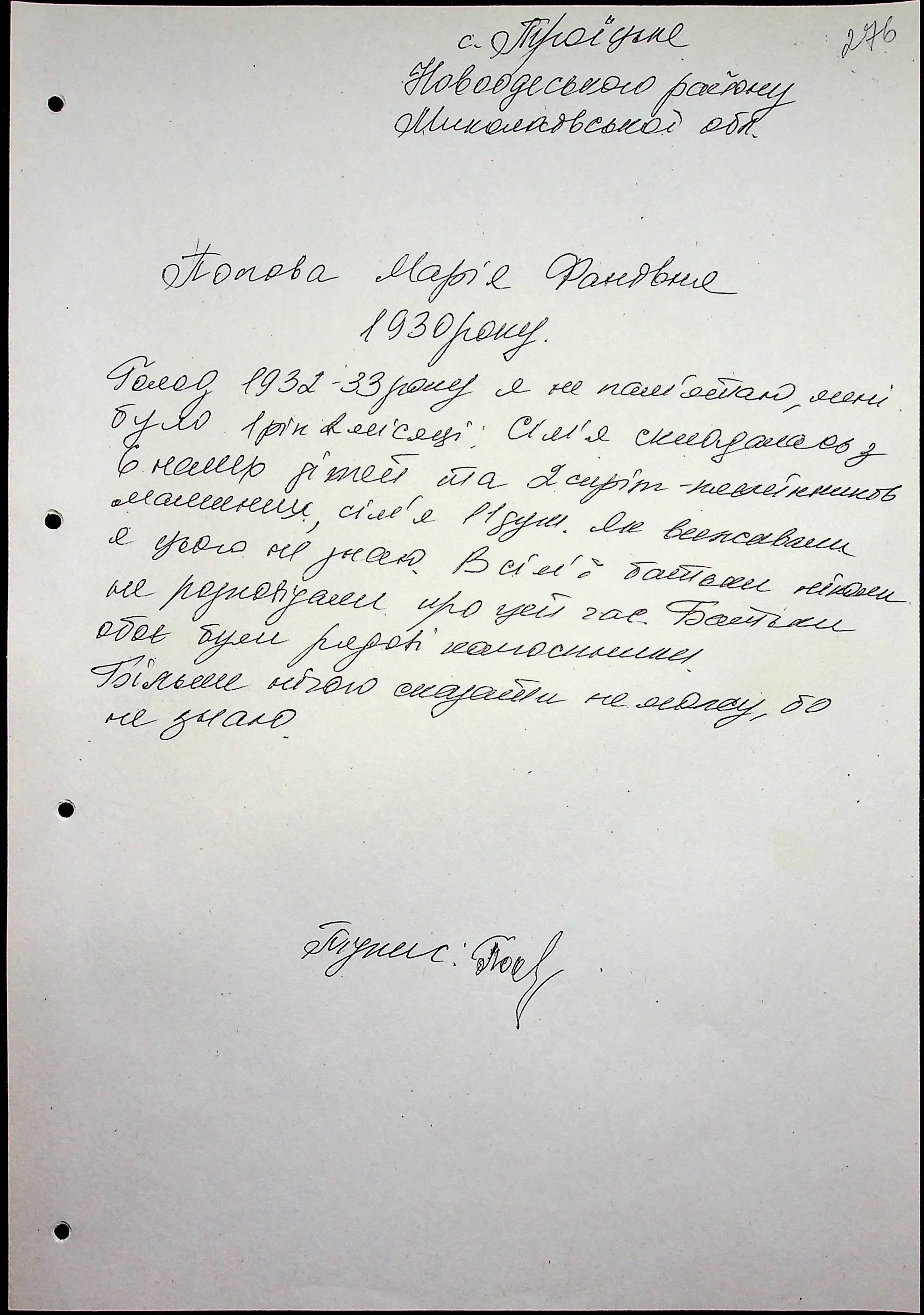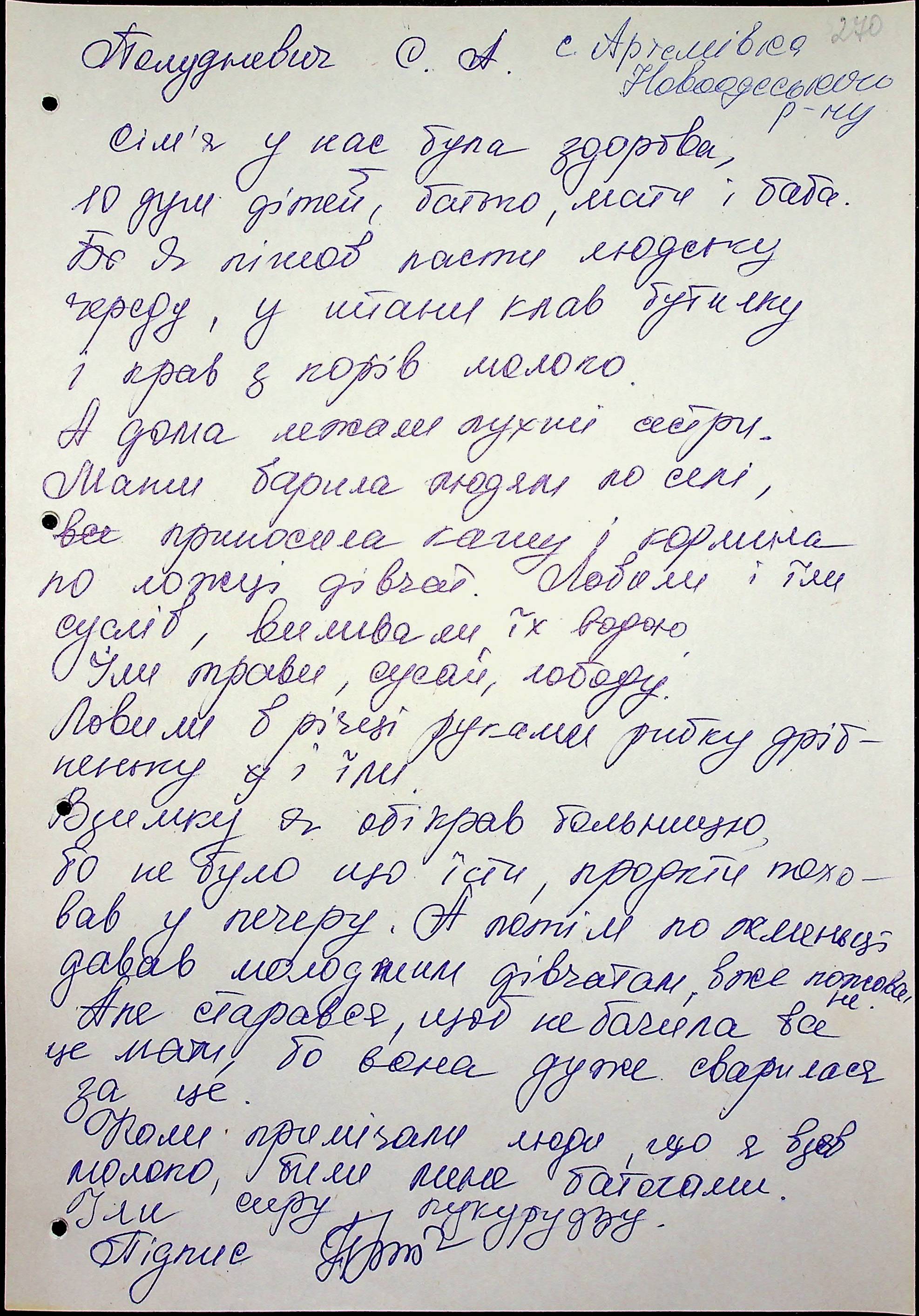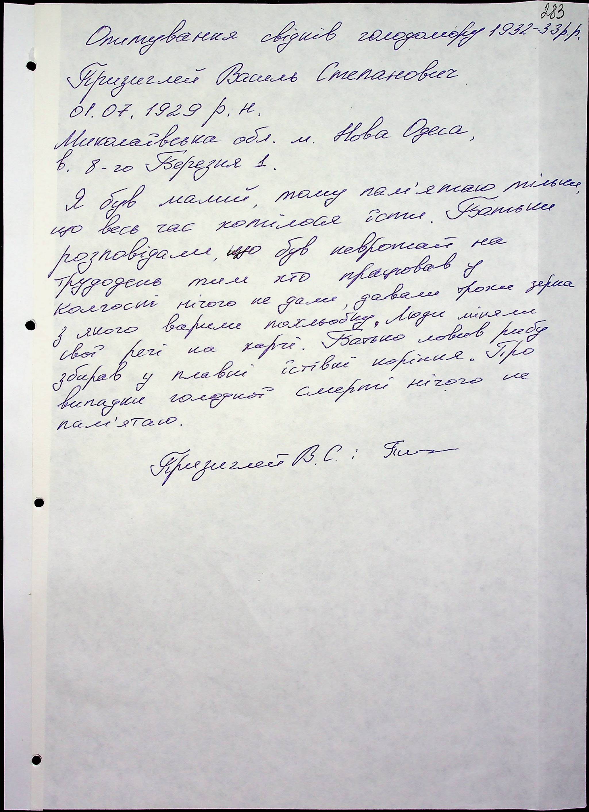 • • • • Справа № 55 “Свідчення очевидців Голодомору 1932-1933 років, які проживають у Новоодеському районі, з прізвищами на літери Л–П”