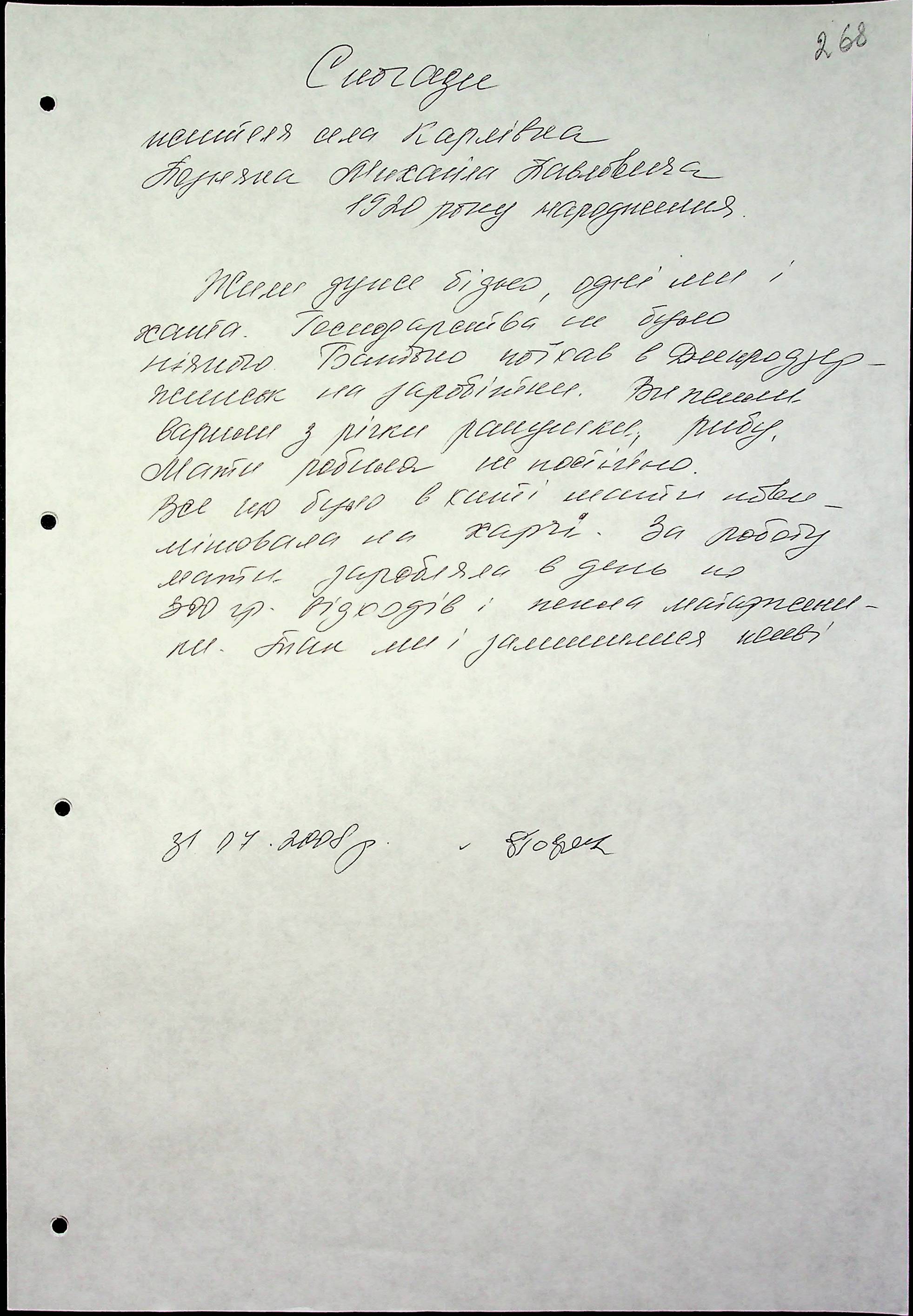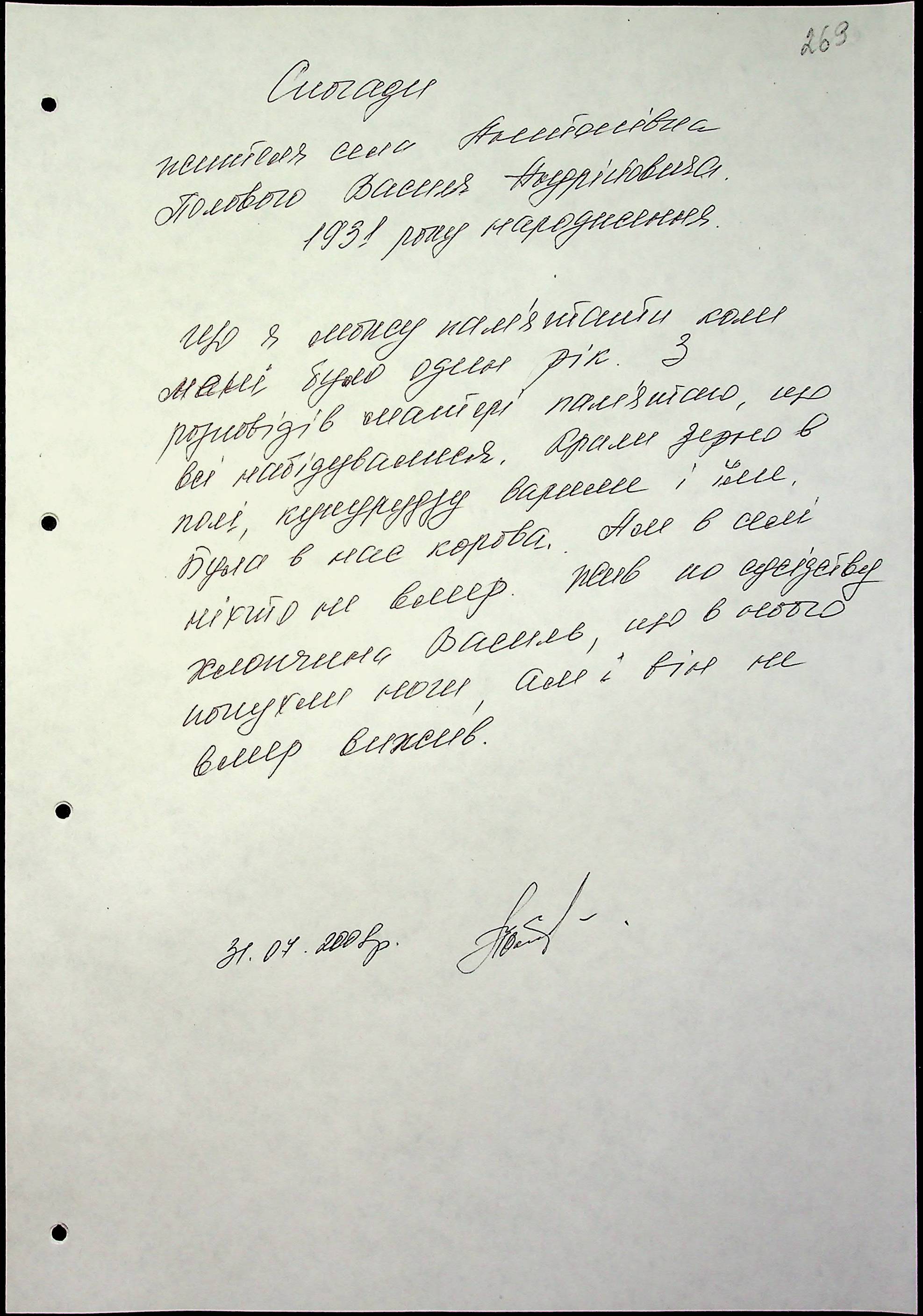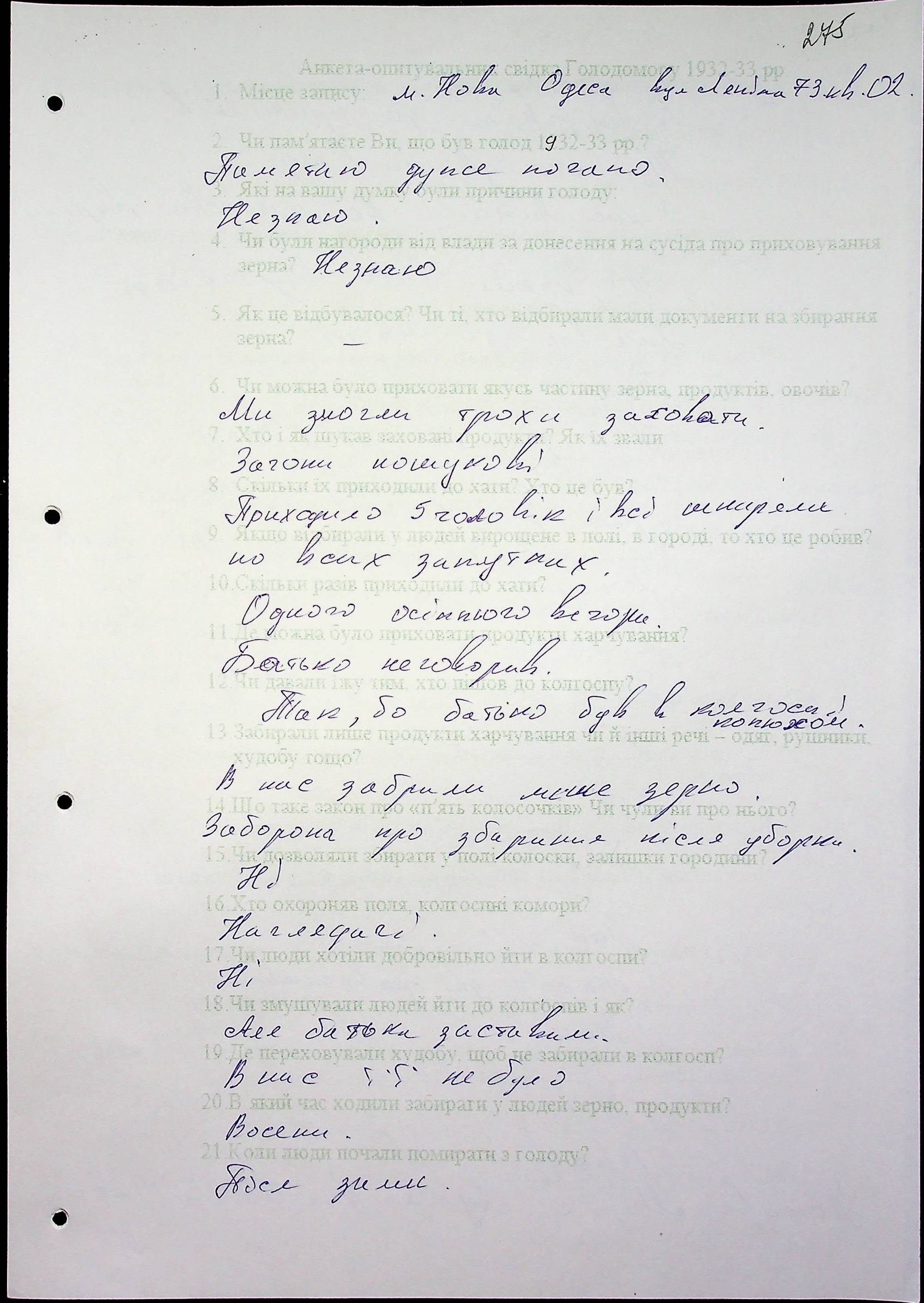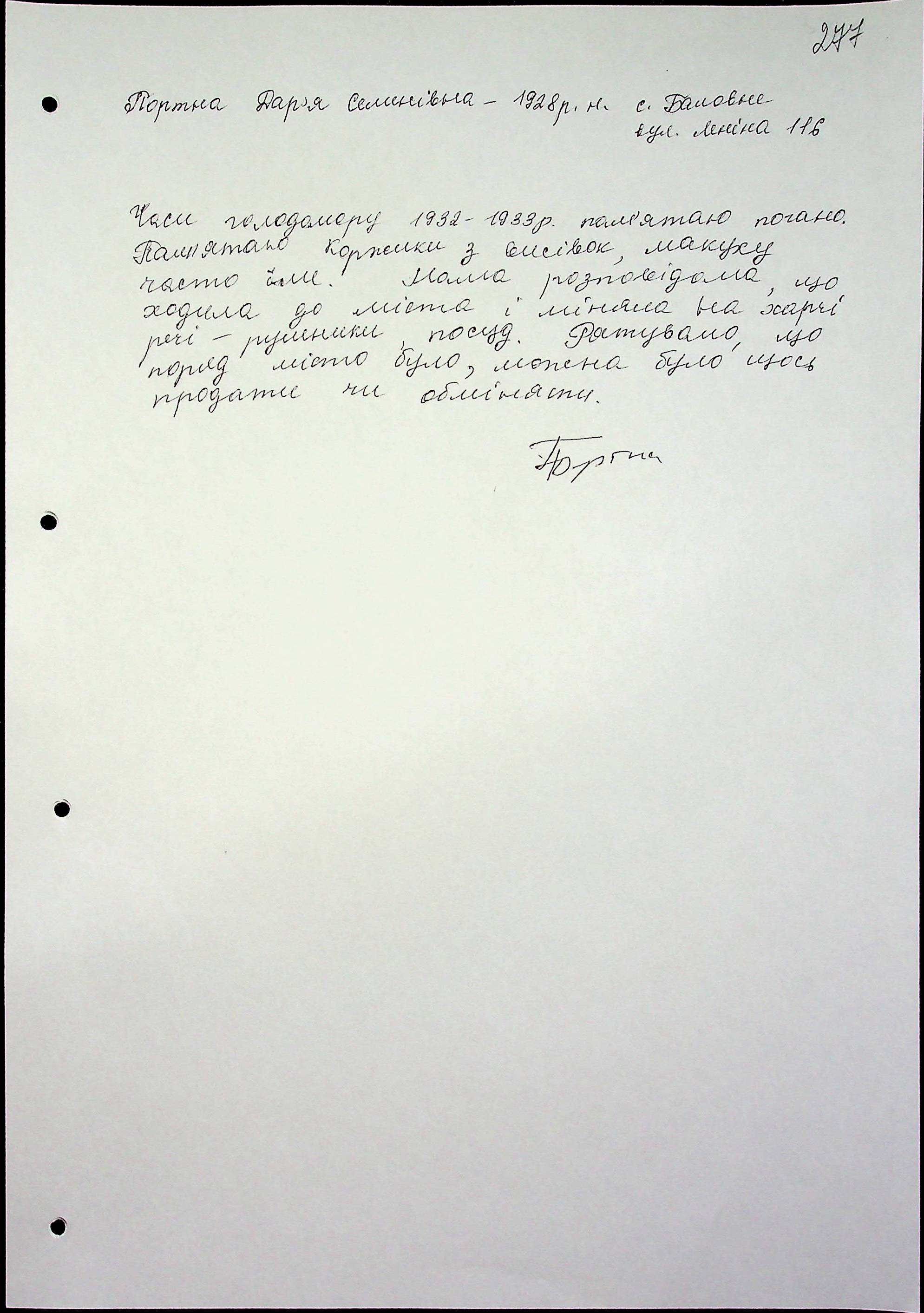 • • • • Справа № 55 “Свідчення очевидців Голодомору 1932-1933 років, які проживають у Новоодеському районі, з прізвищами на літери Л–П”