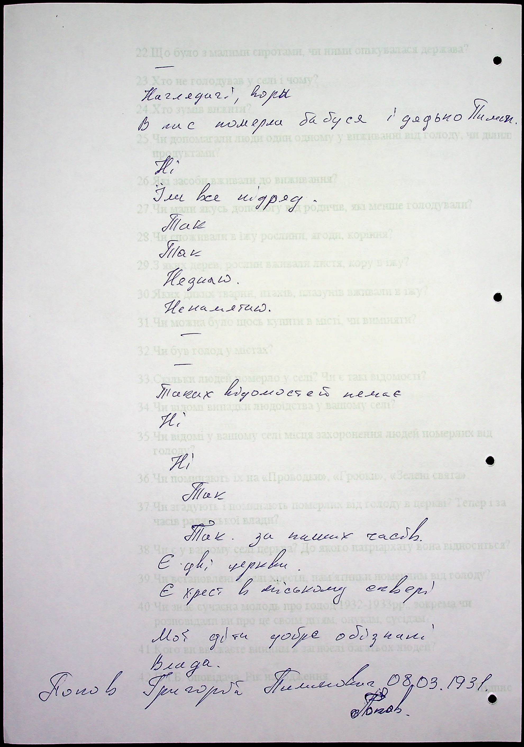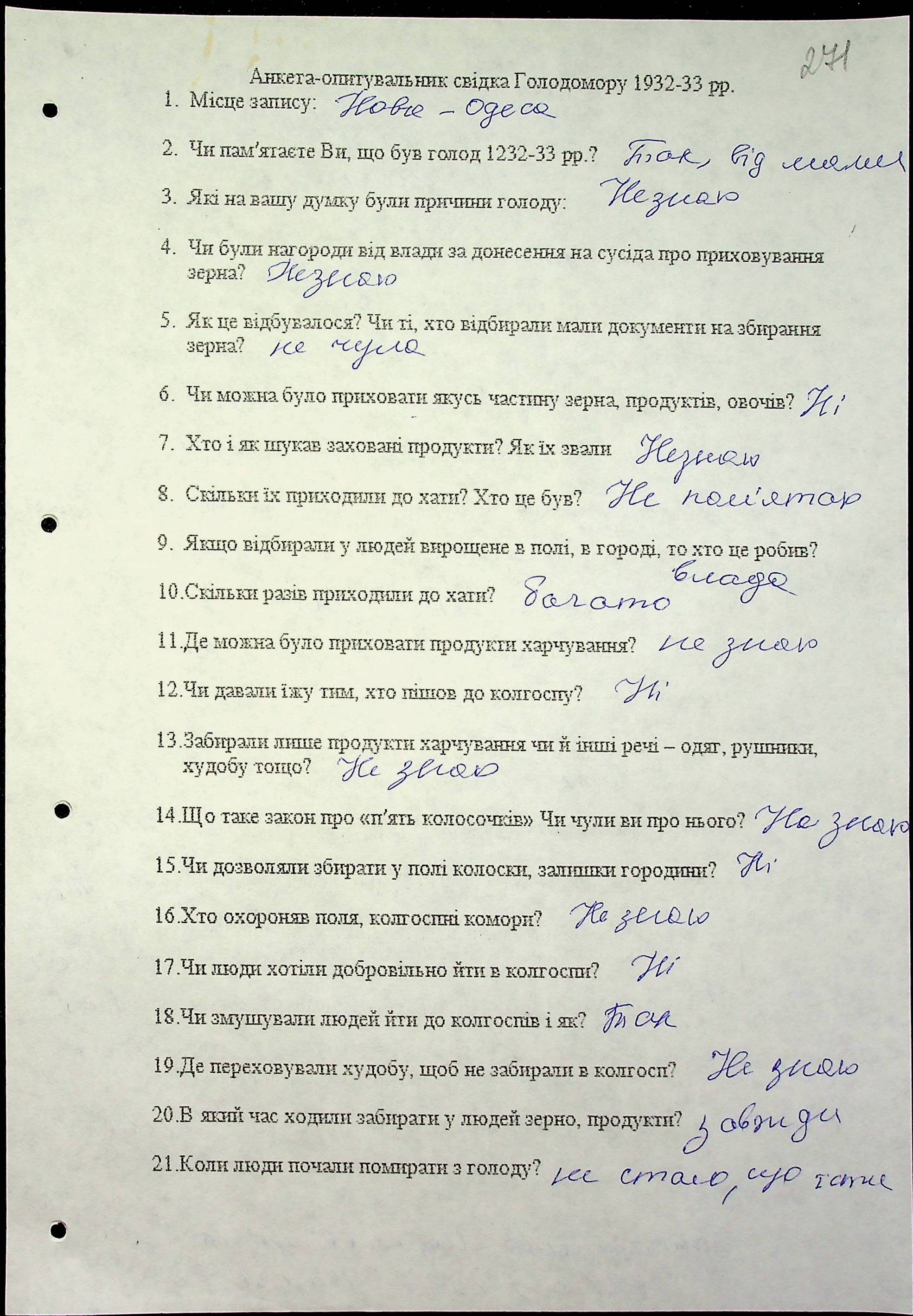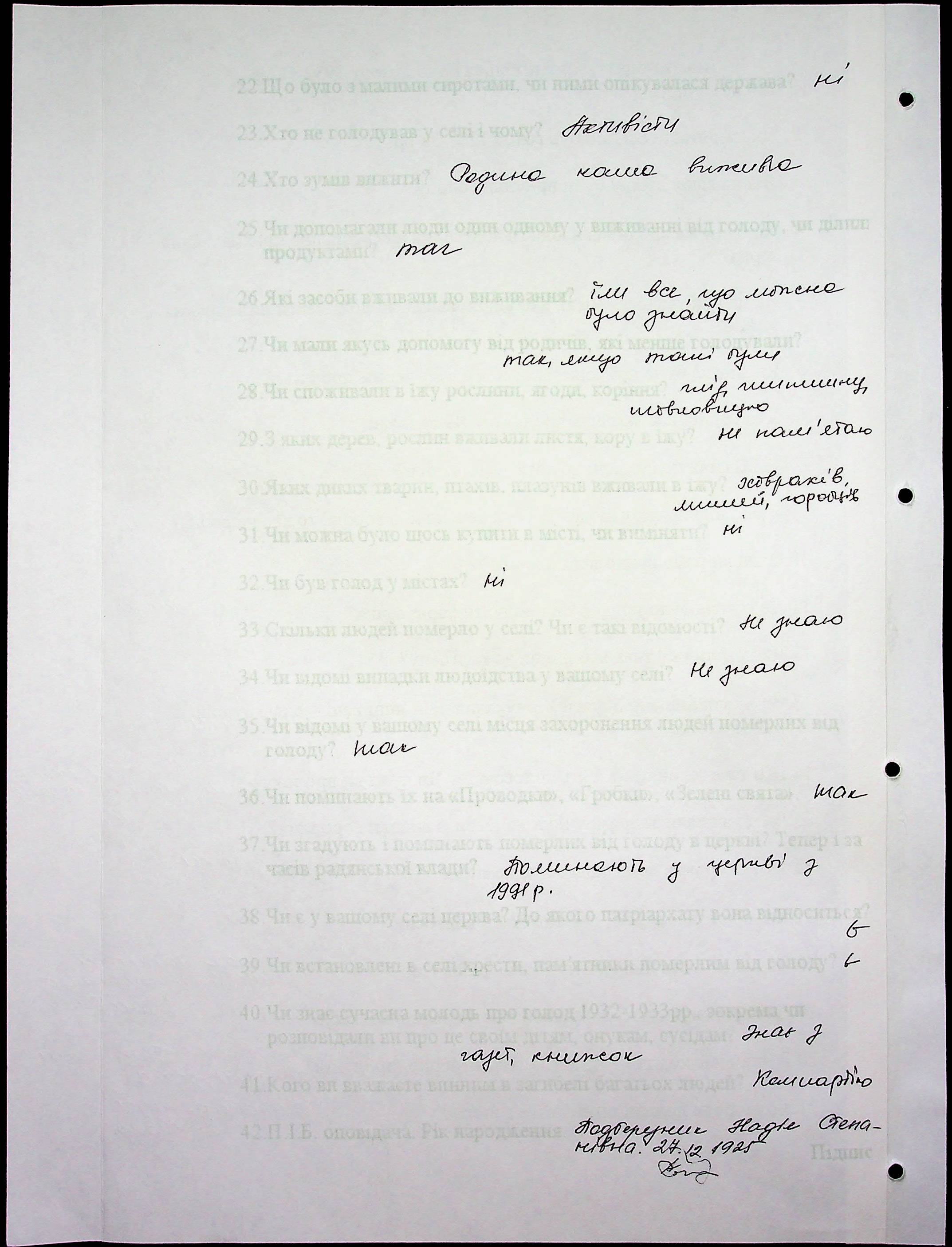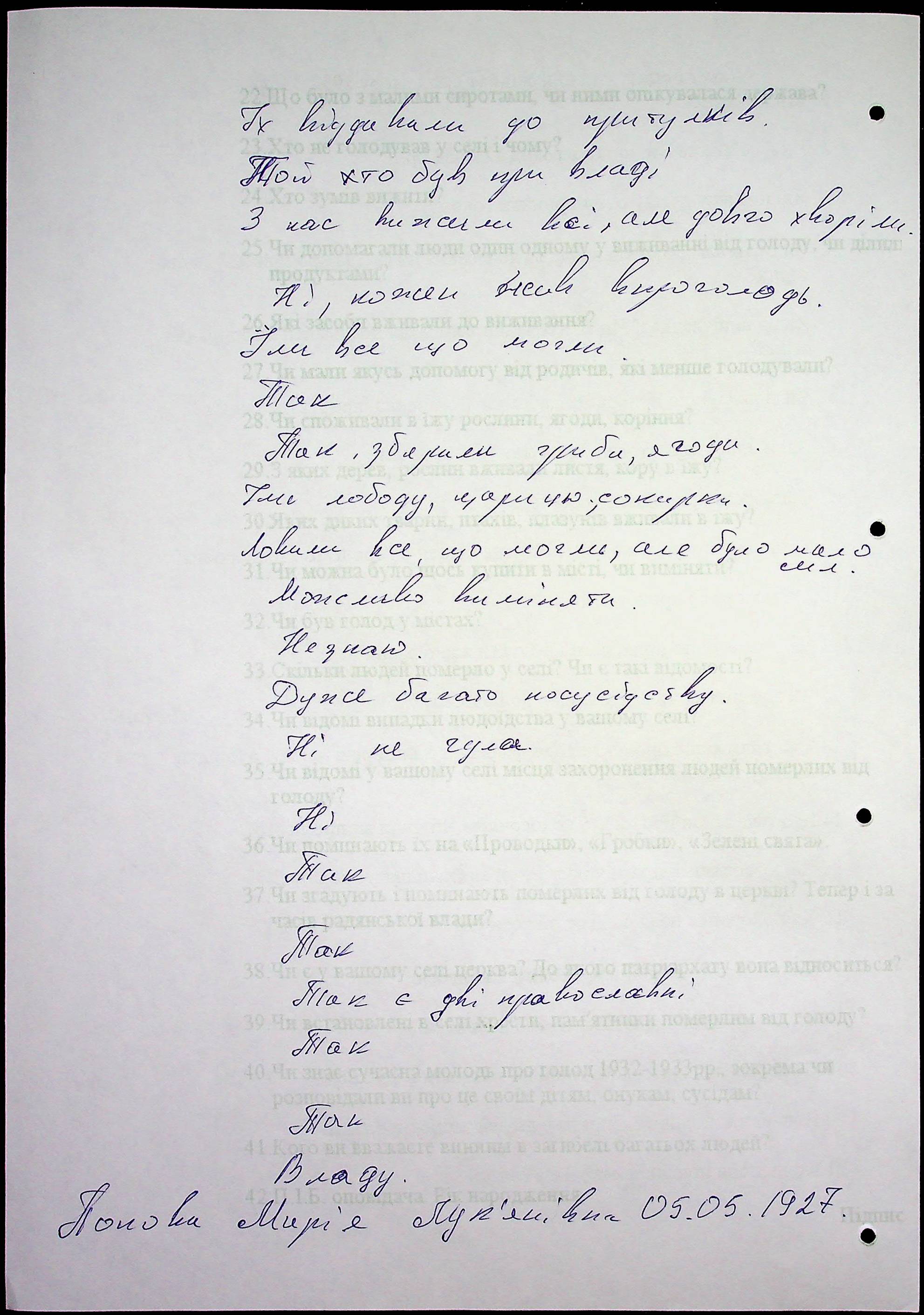 ◦ ◦ Фонд № 6146 “Колекція свідчень очевидців Голодомору 1932-1933 рр., нині проживаючих у Миколаївській області”