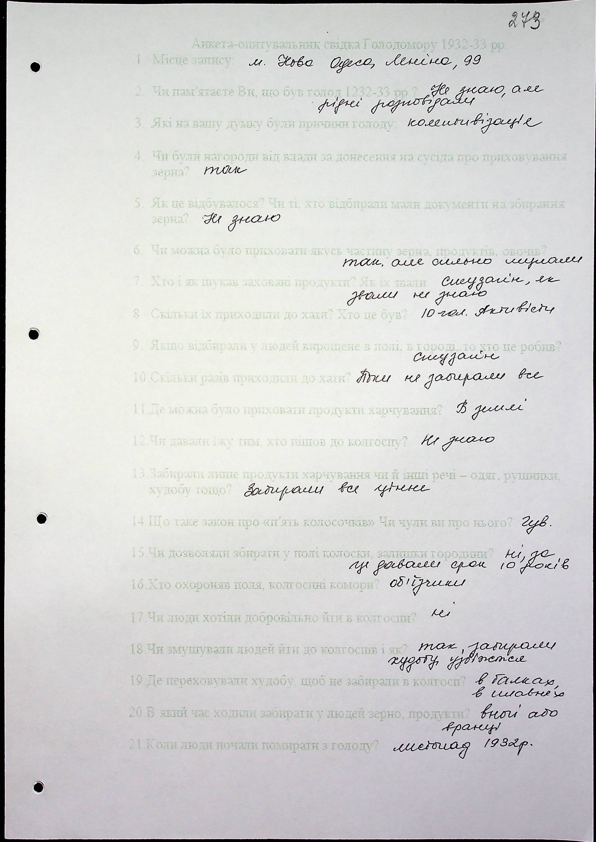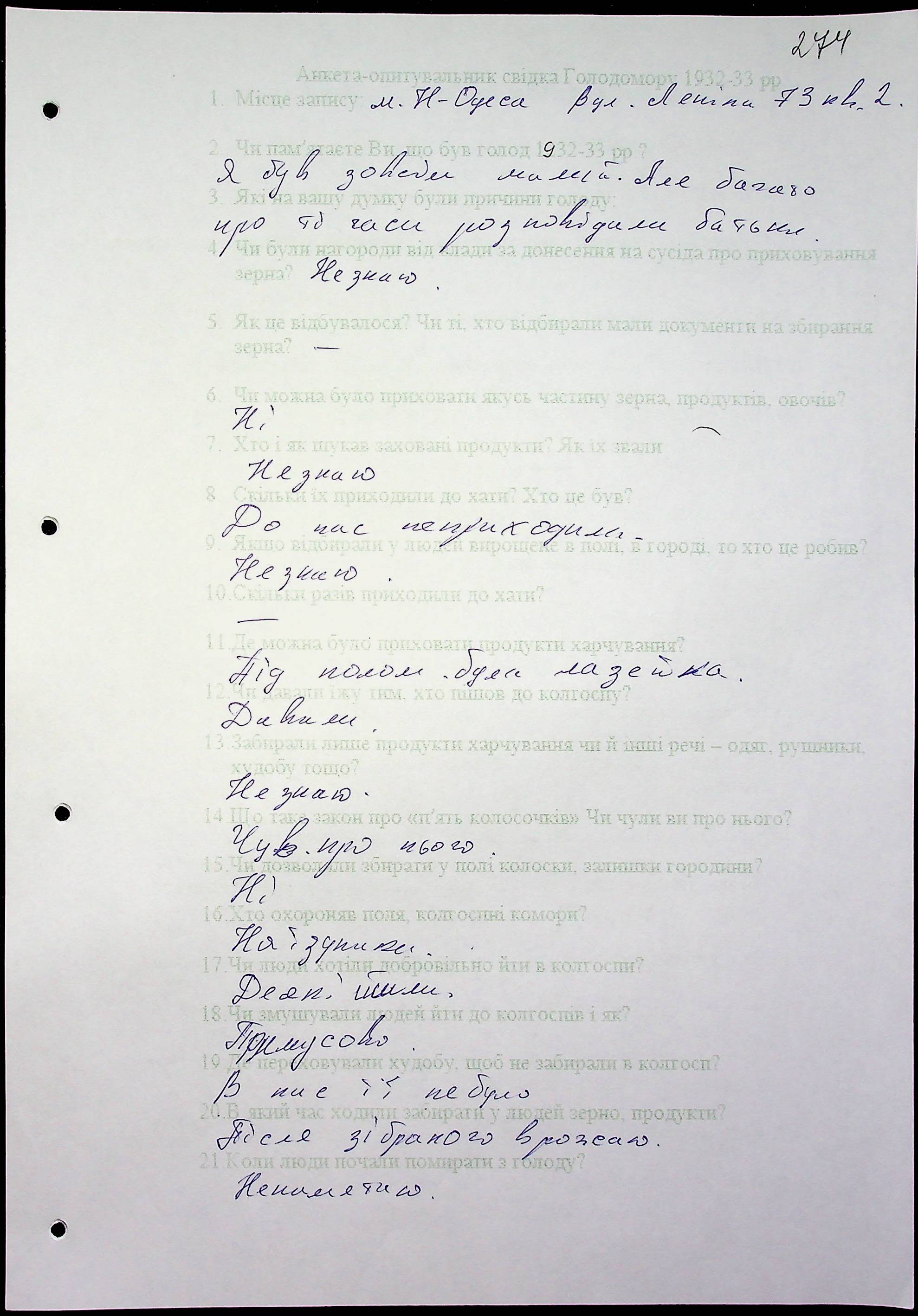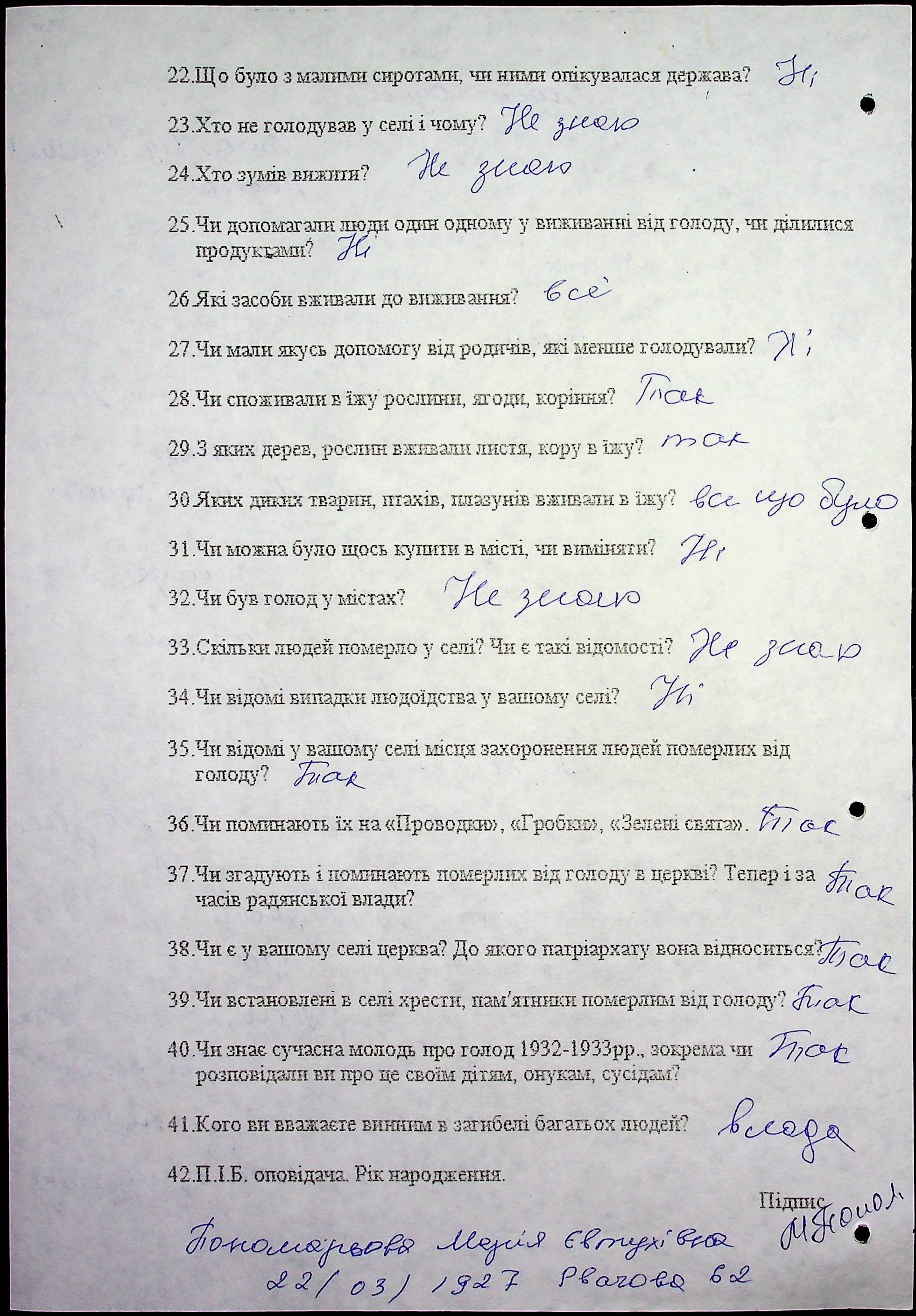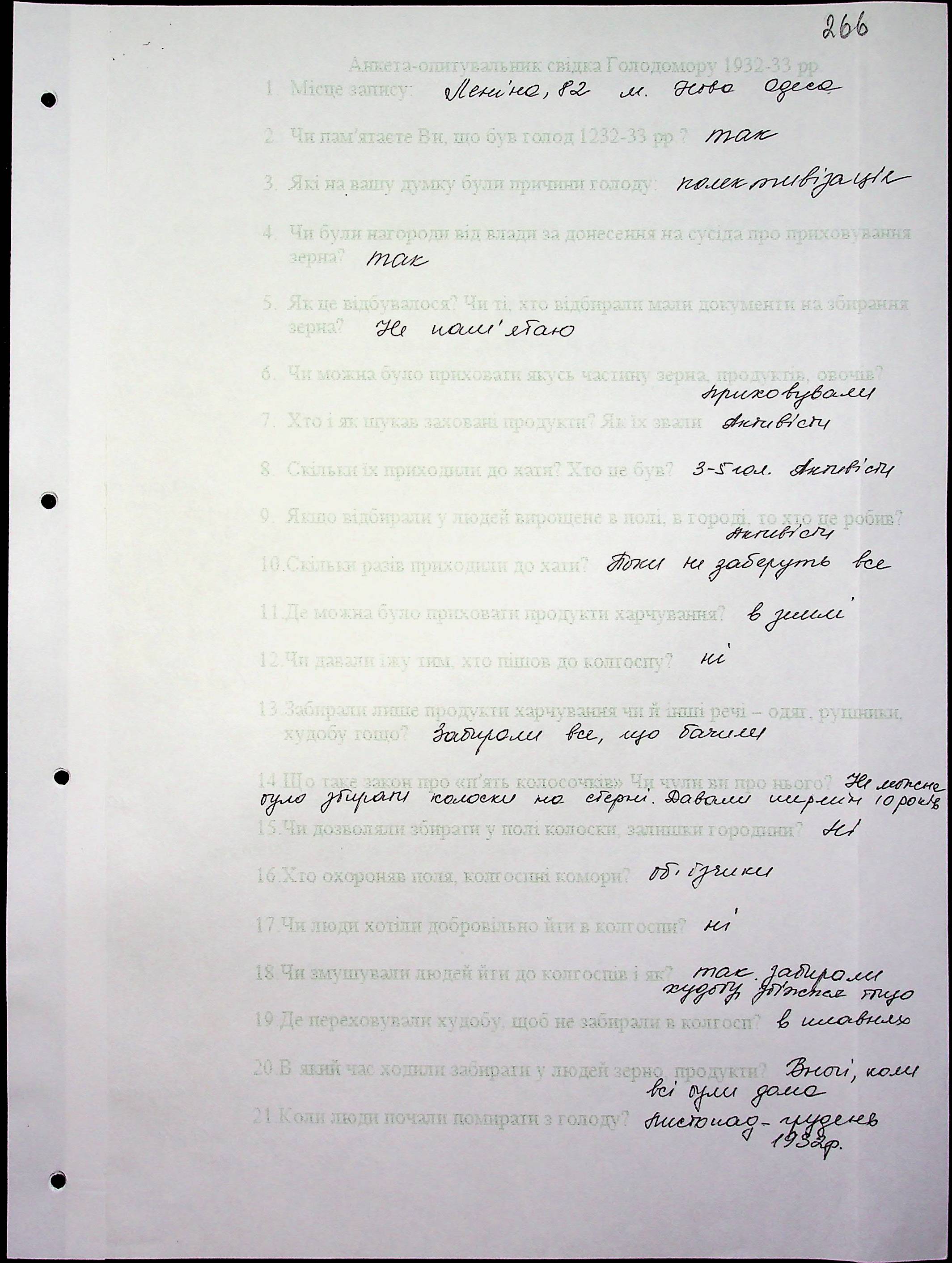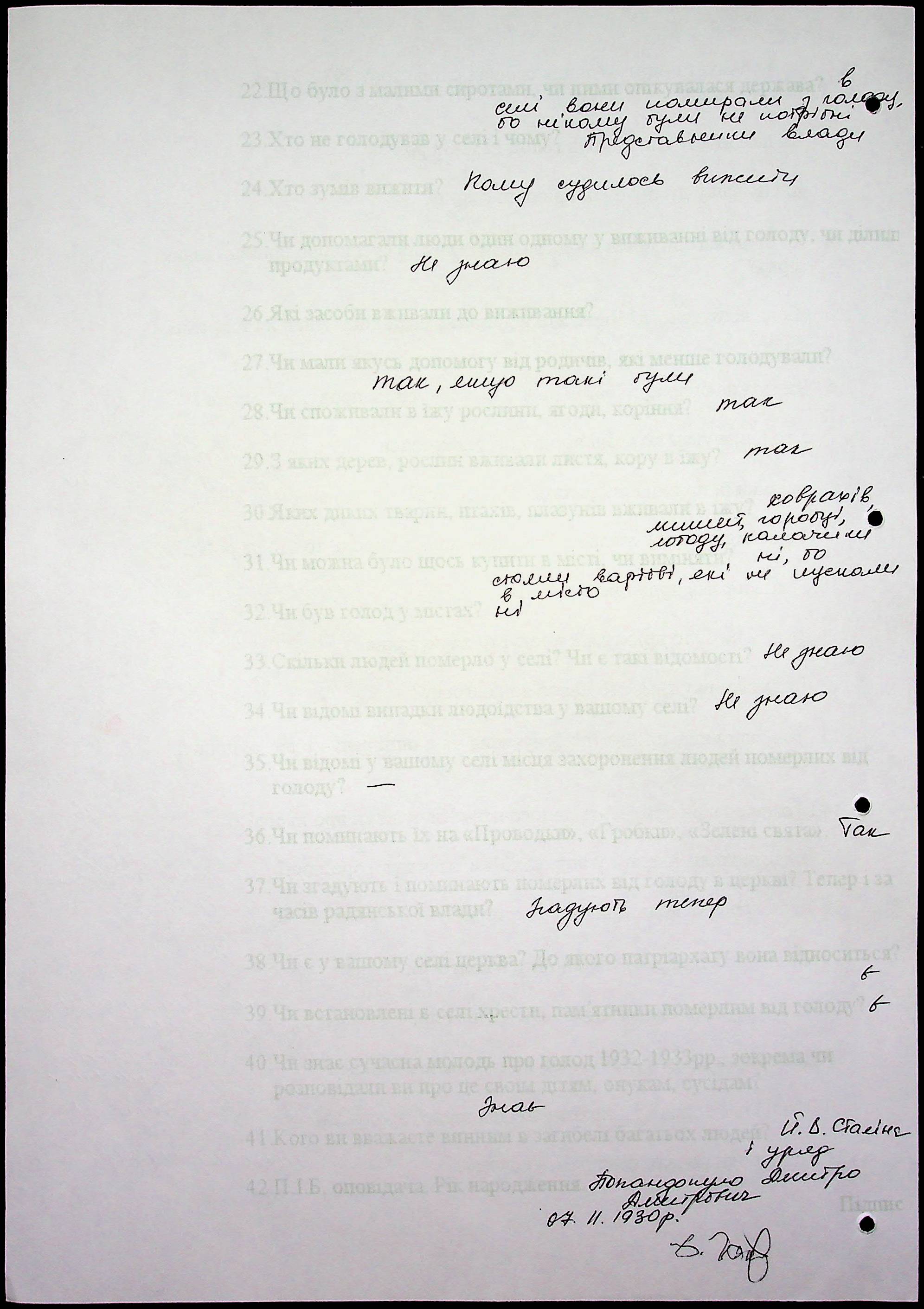 ◦ ◦ Фонд № 6146 “Колекція свідчень очевидців Голодомору 1932-1933 рр., нині проживаючих у Миколаївській області”
