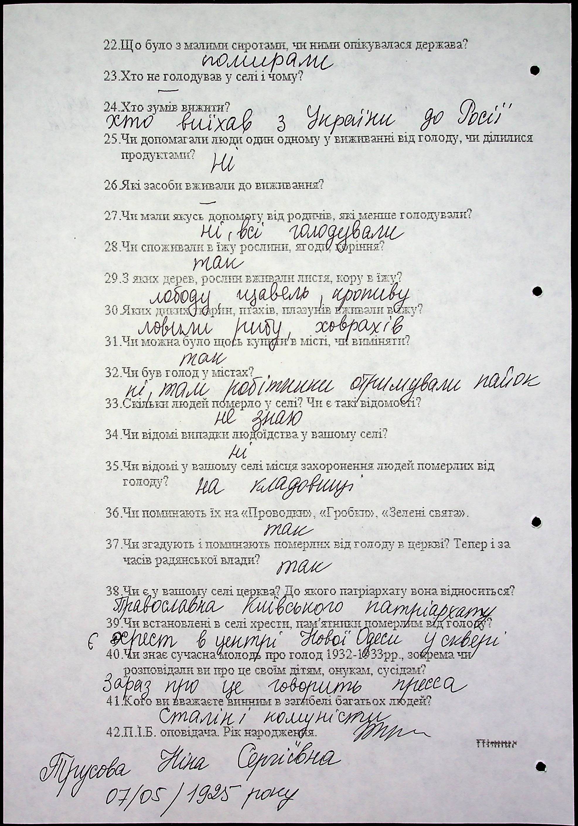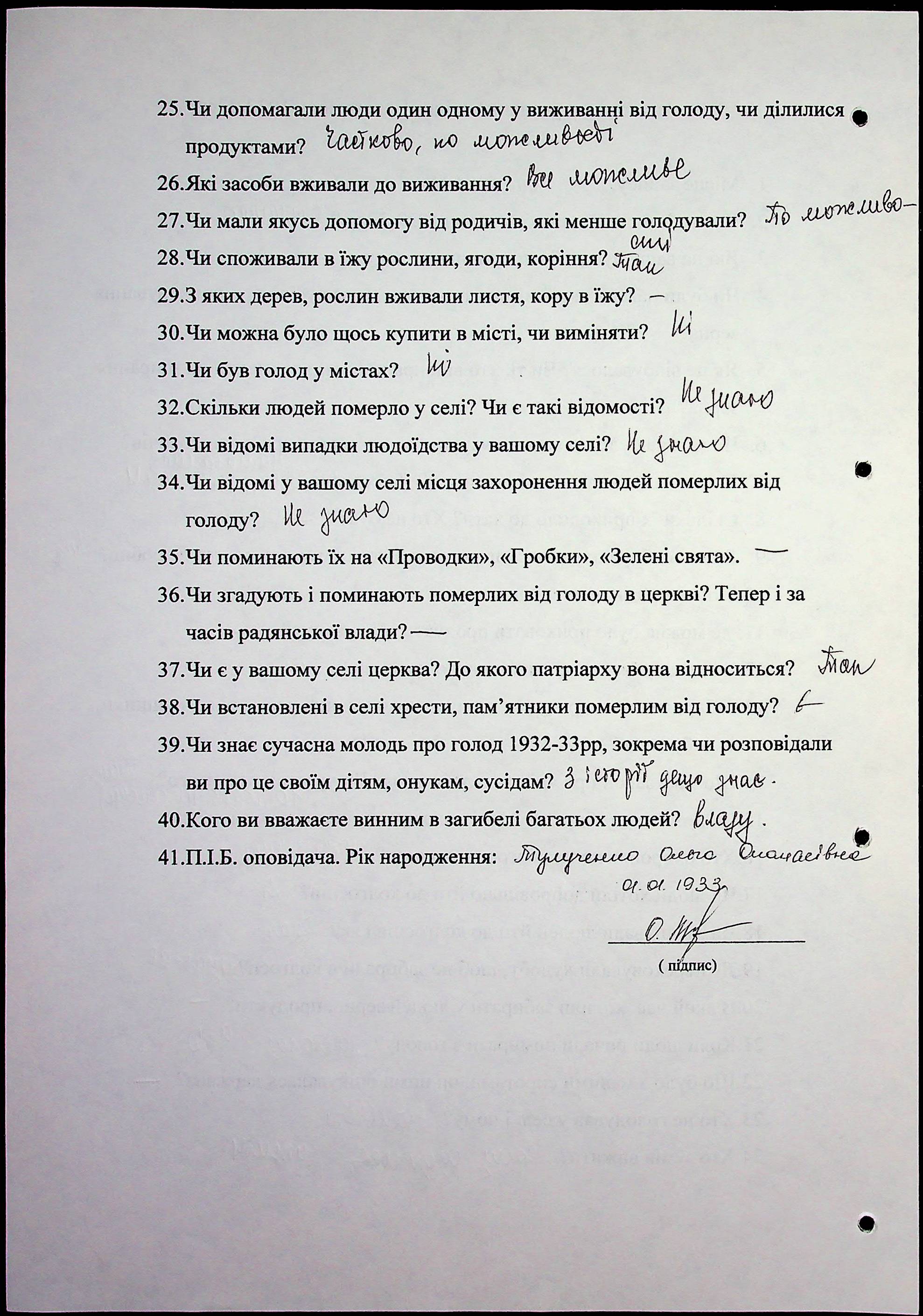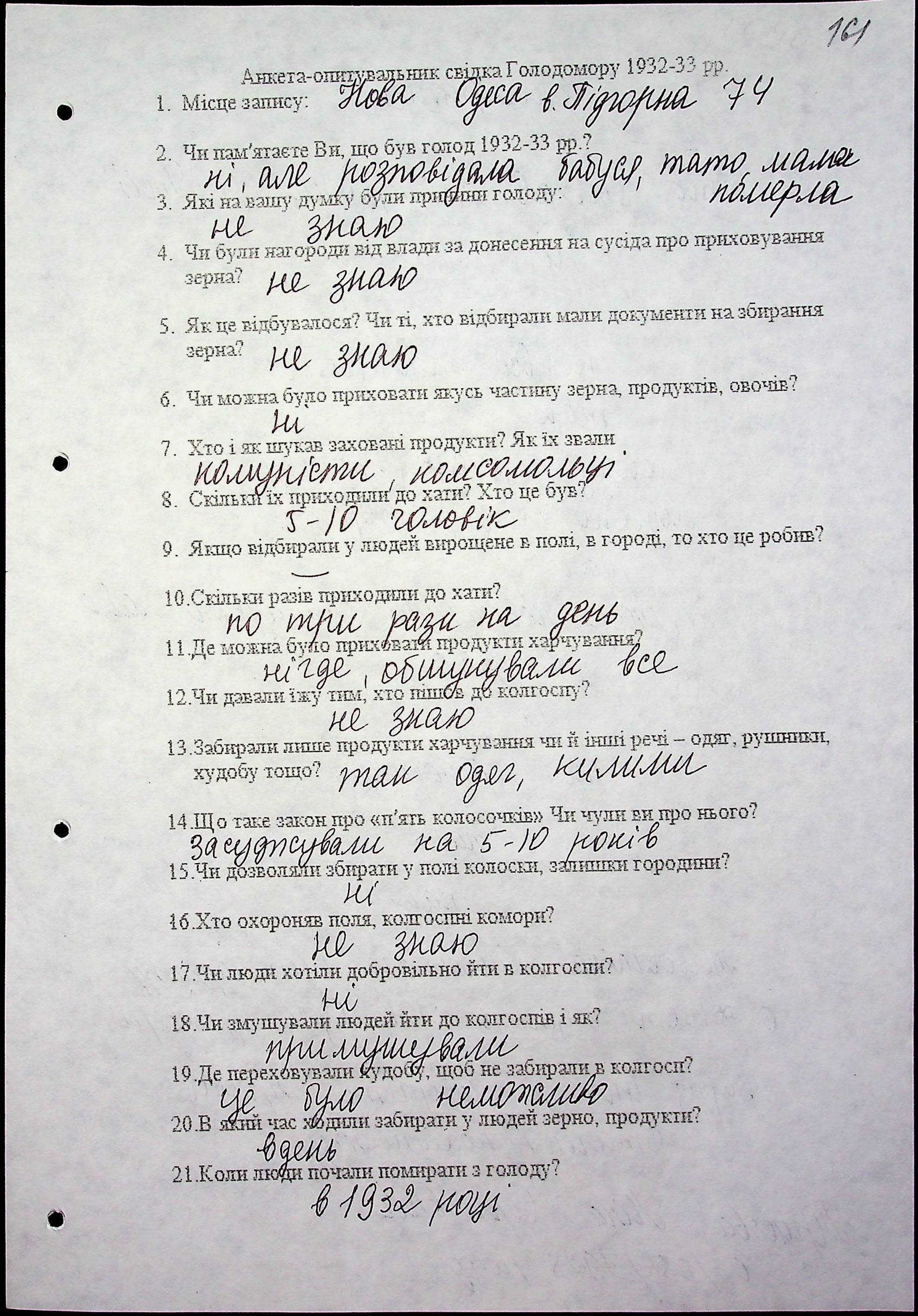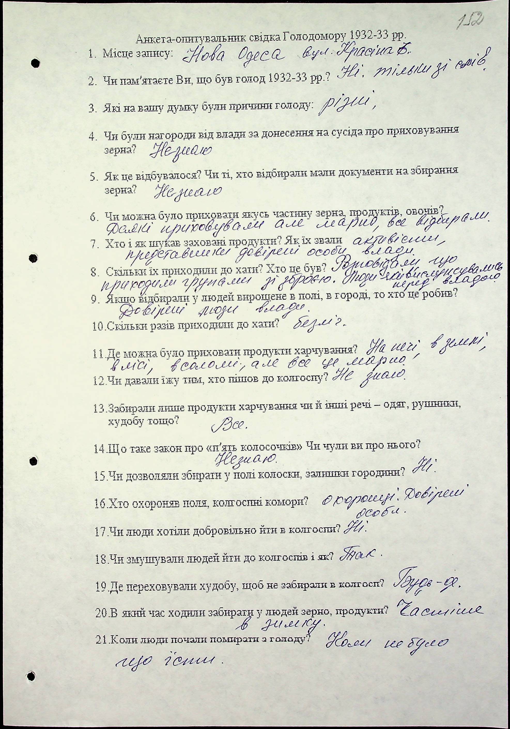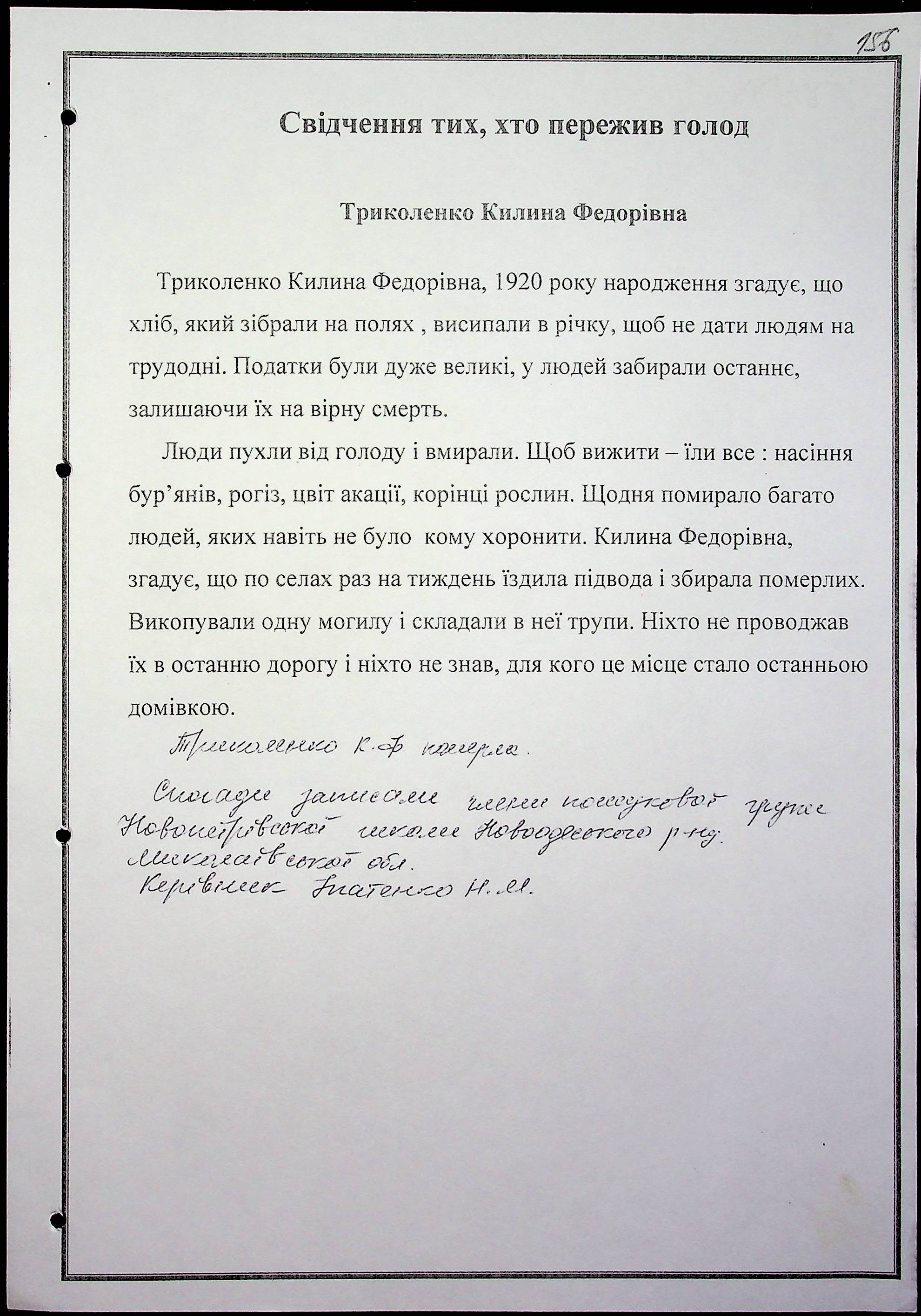 ◦ ◦ Фонд № 6146 “Колекція свідчень очевидців Голодомору 1932-1933 рр., нині проживаючих у Миколаївській області”