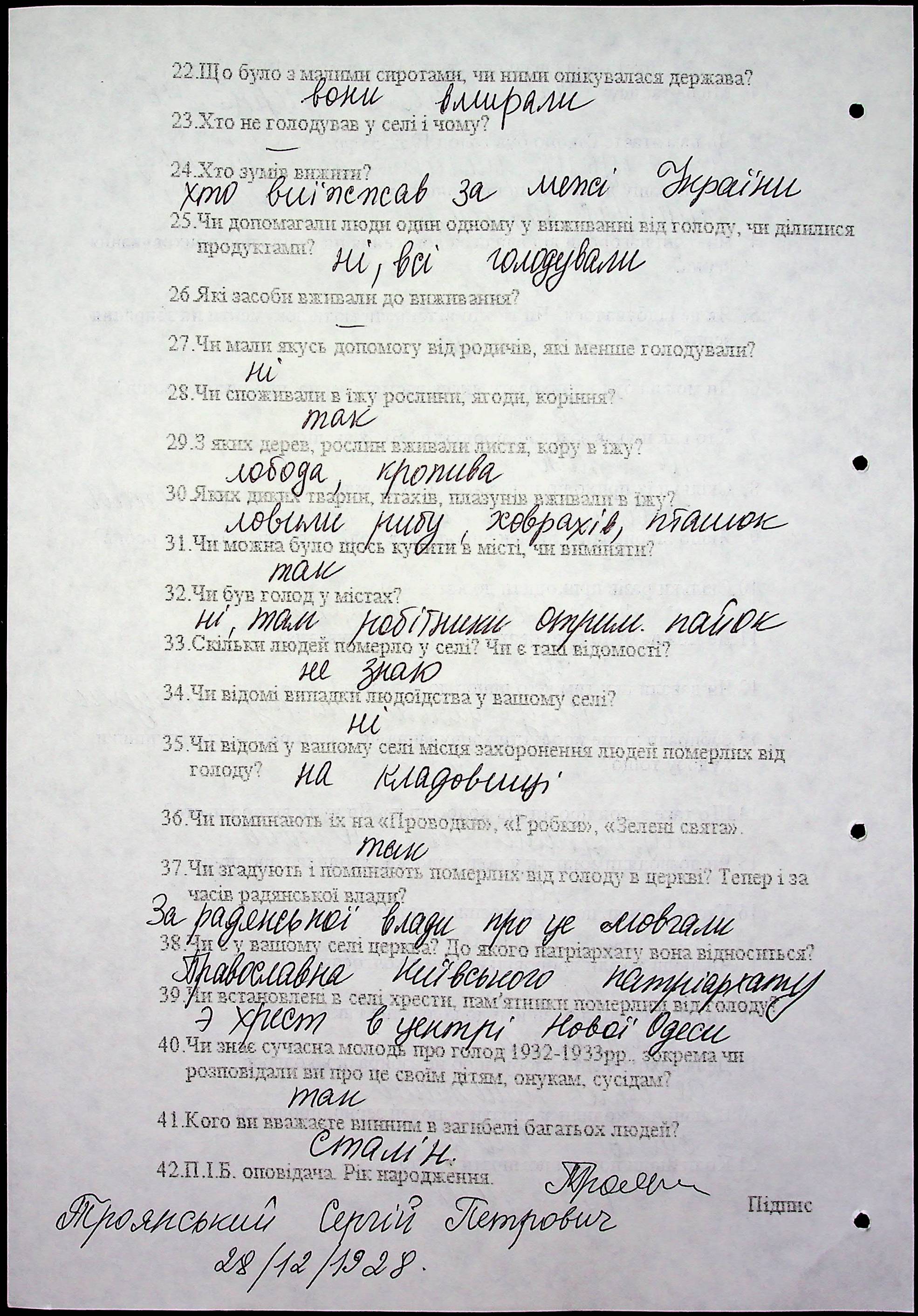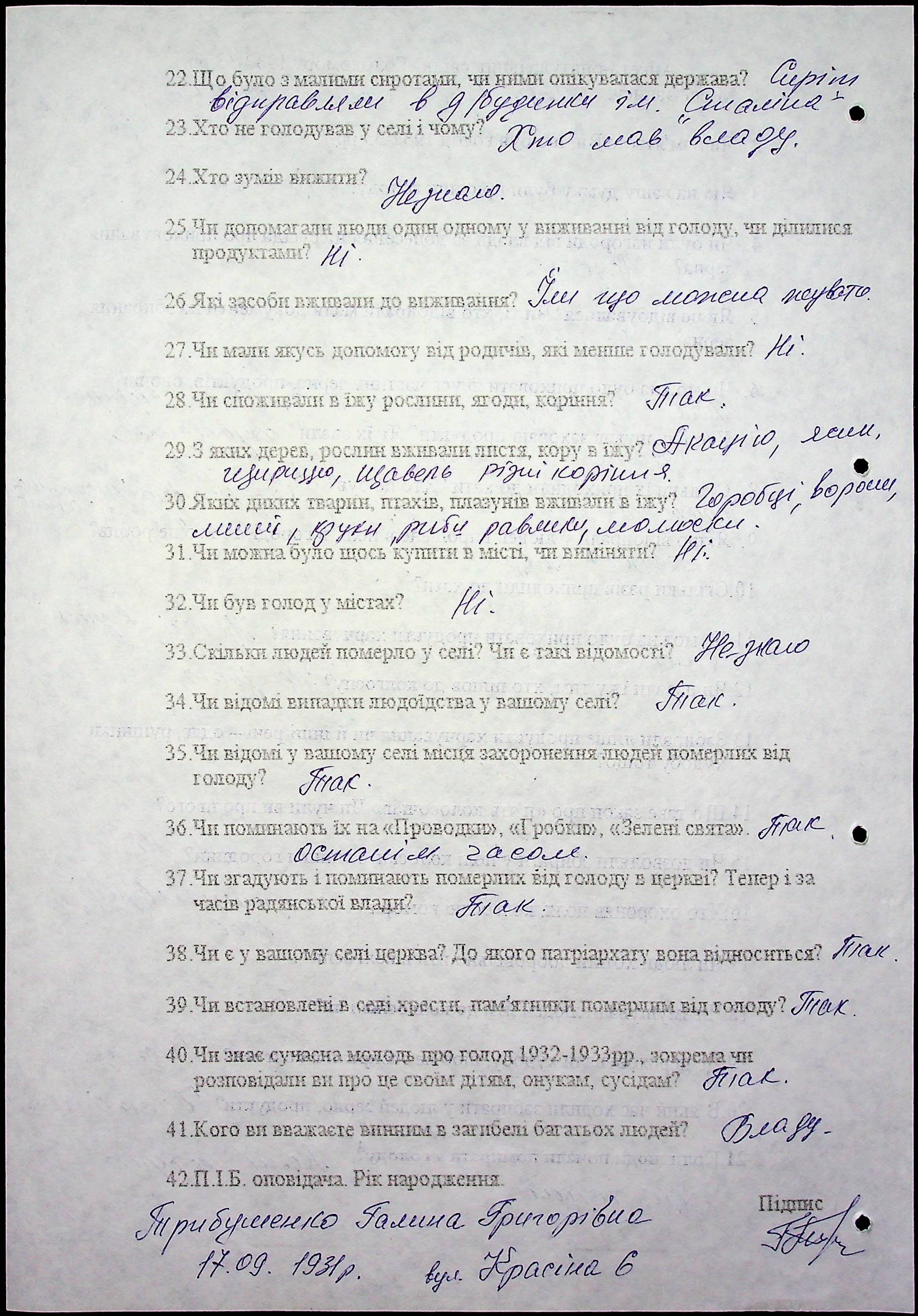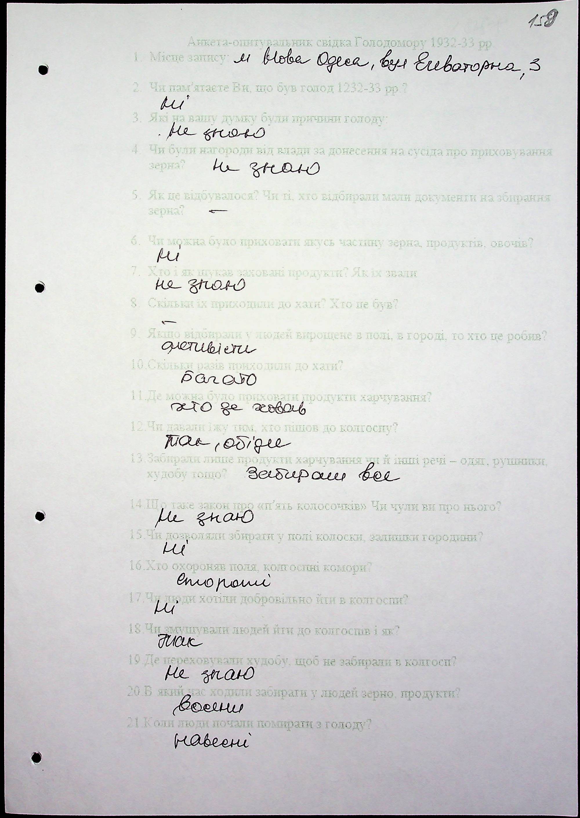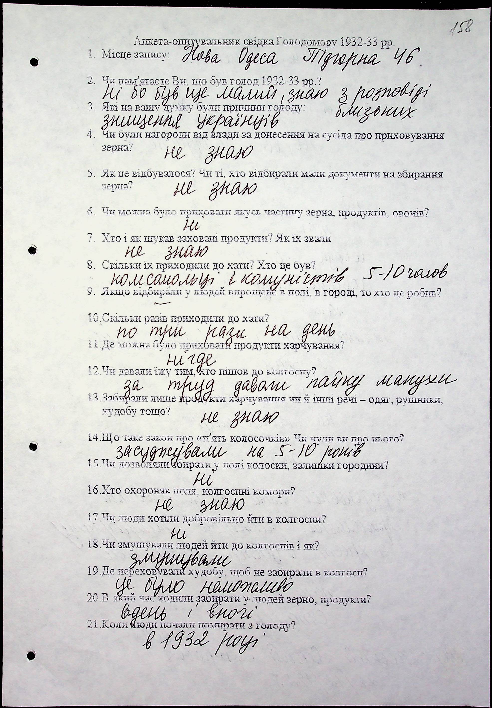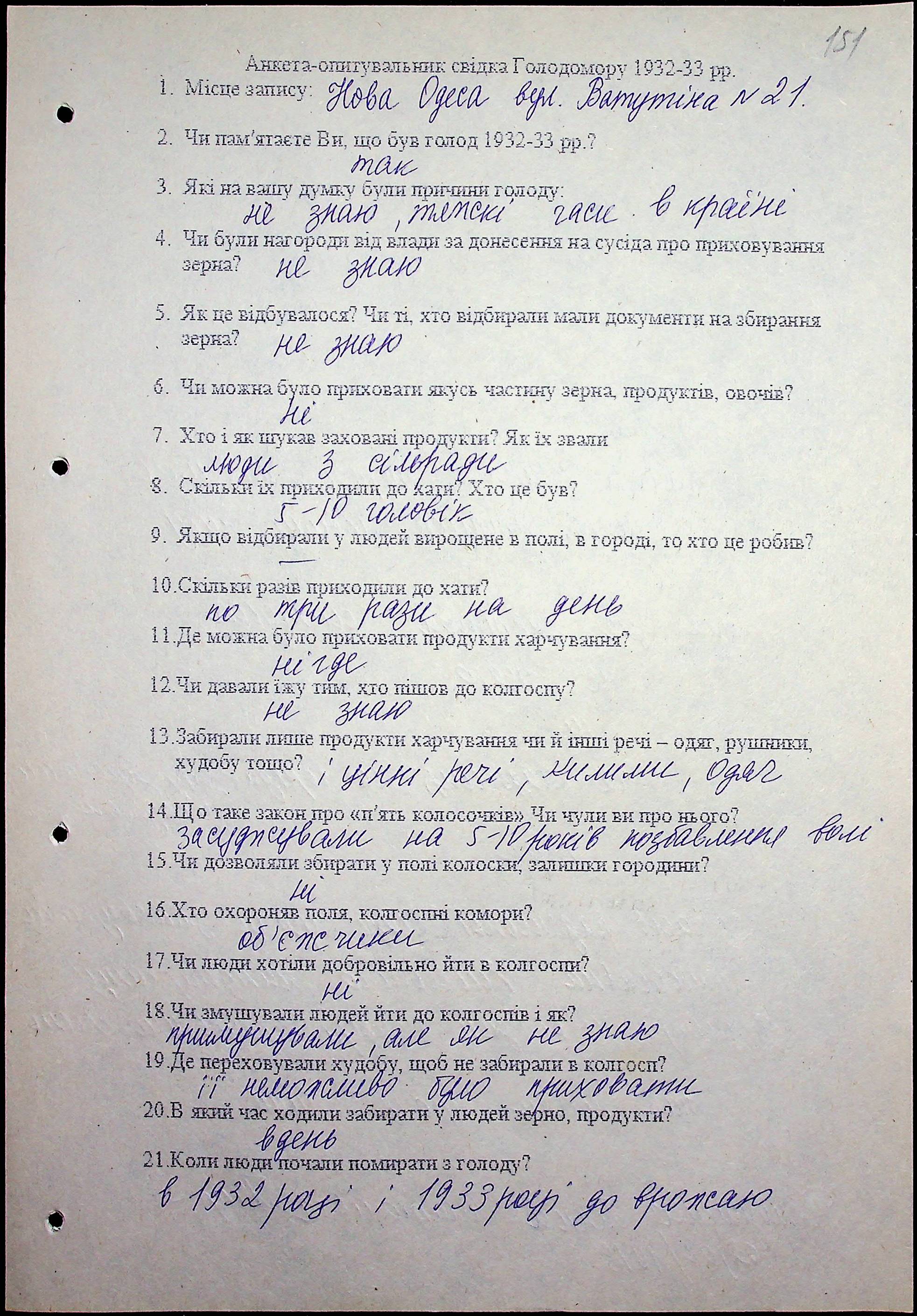 ◦ ◦ Фонд № 6146 “Колекція свідчень очевидців Голодомору 1932-1933 рр., нині проживаючих у Миколаївській області”