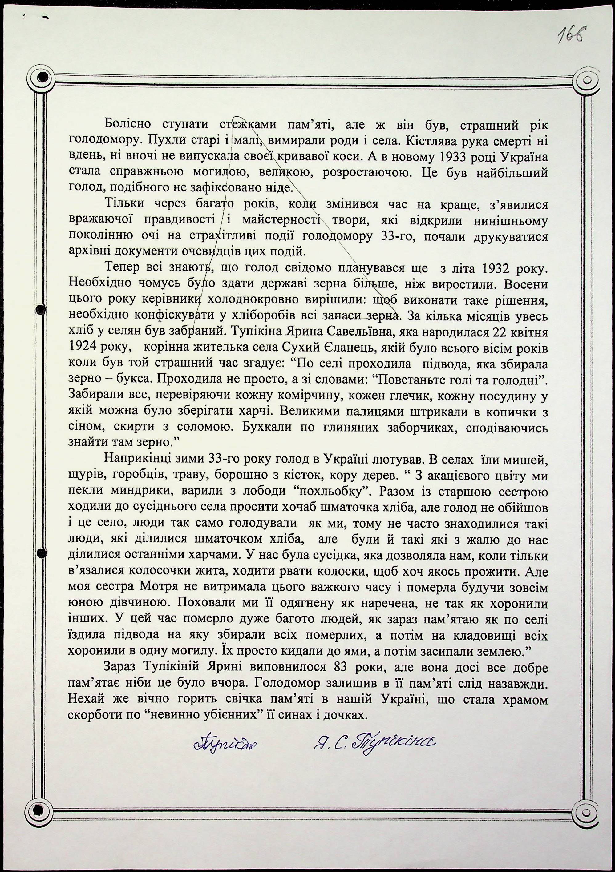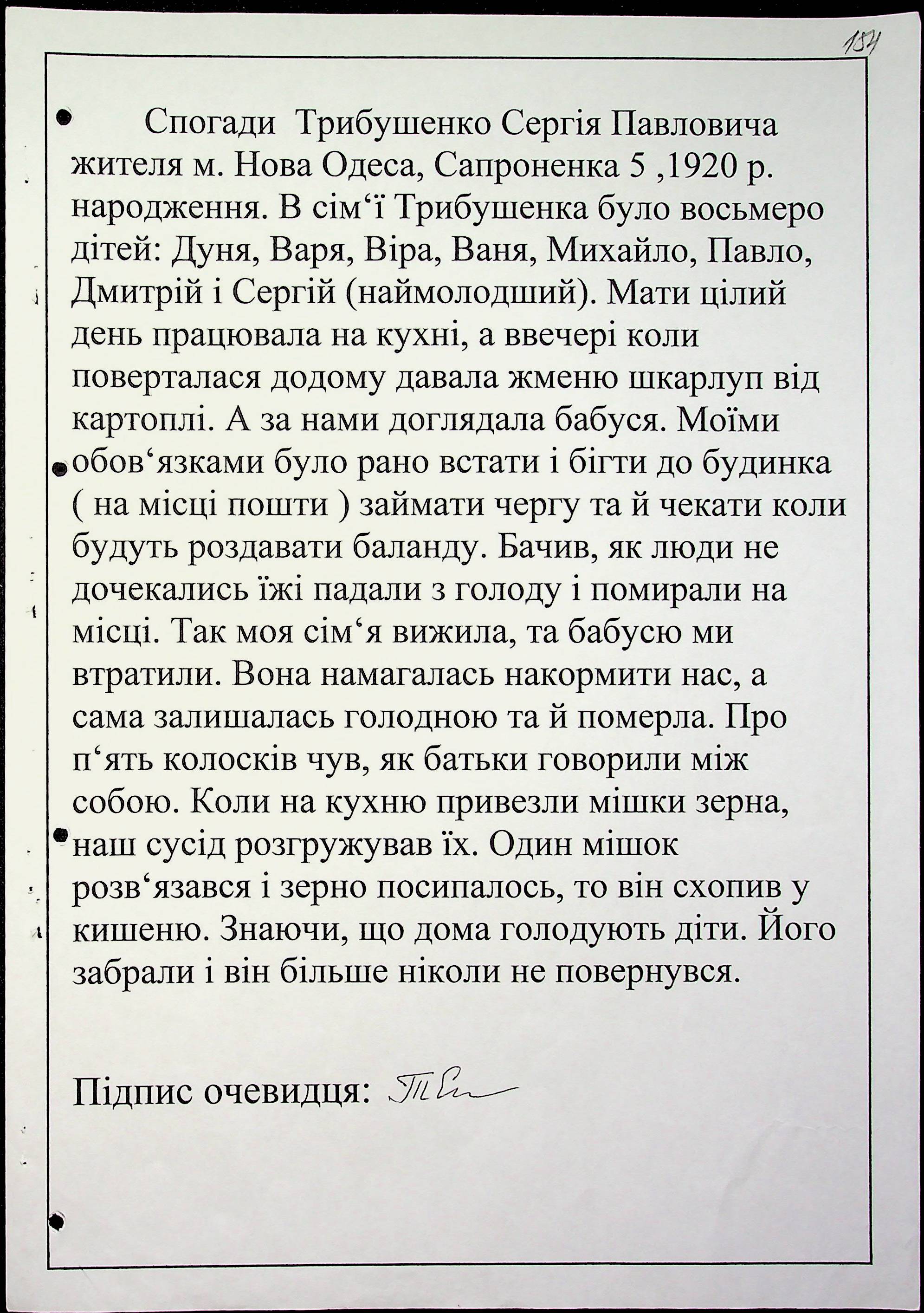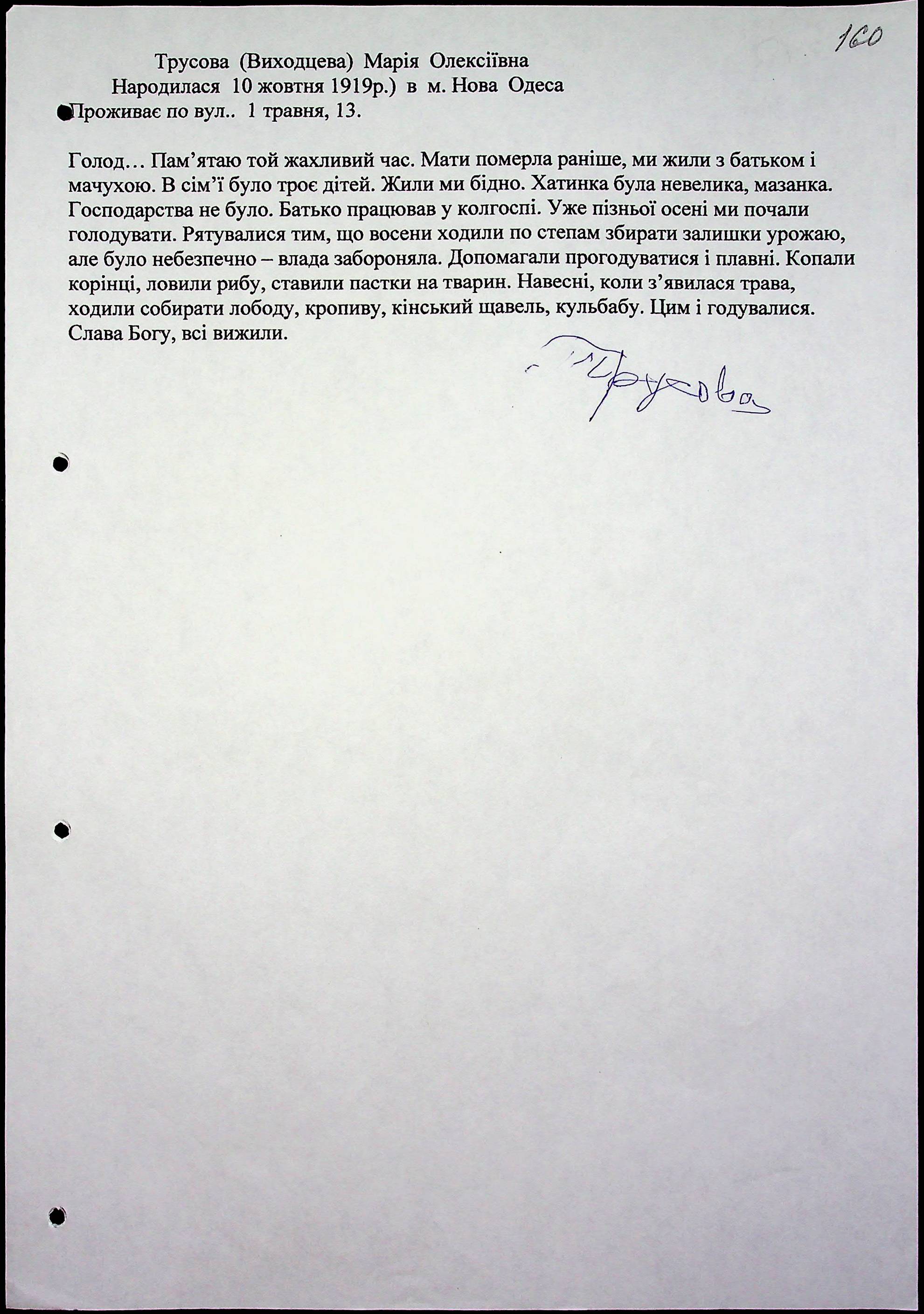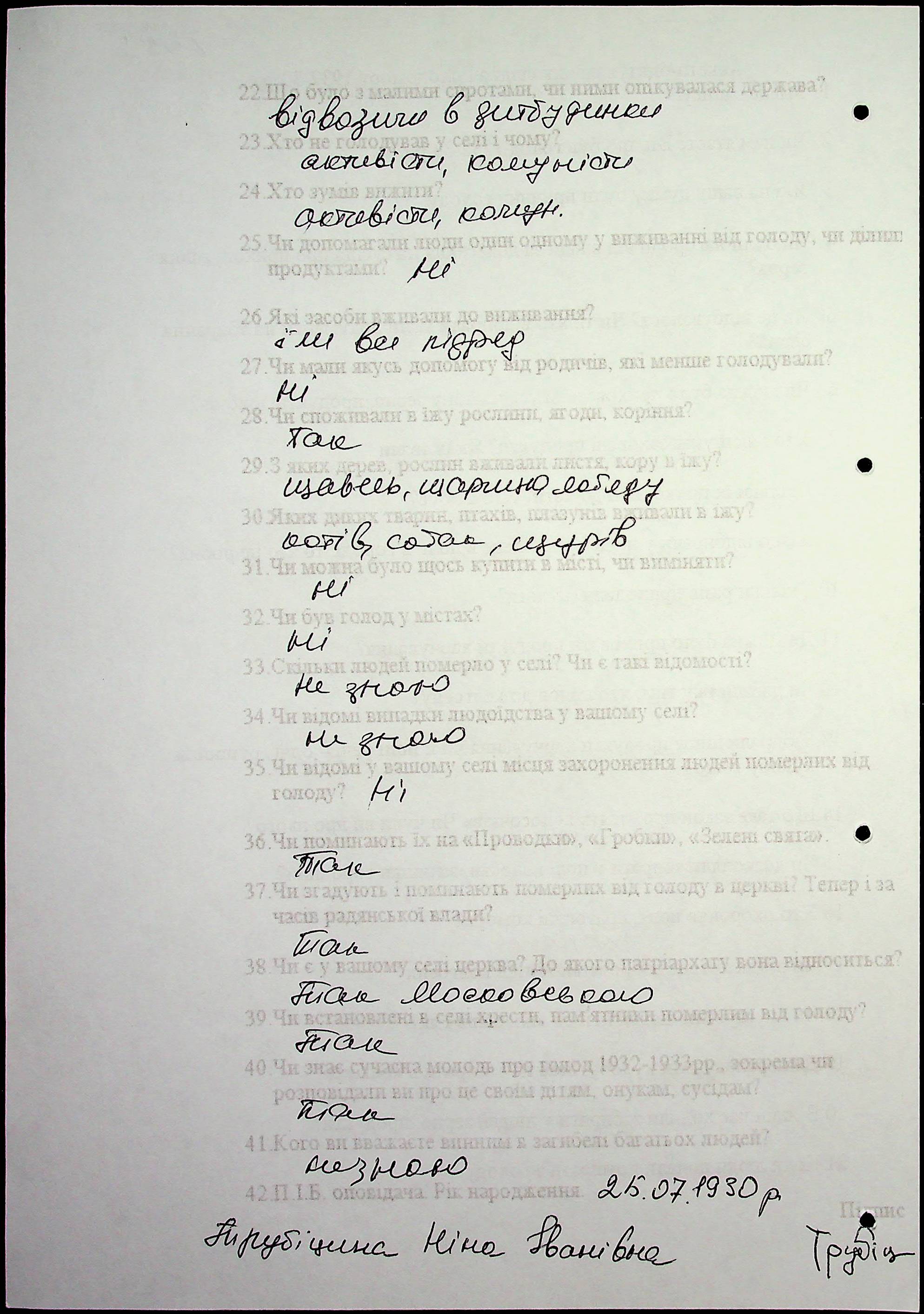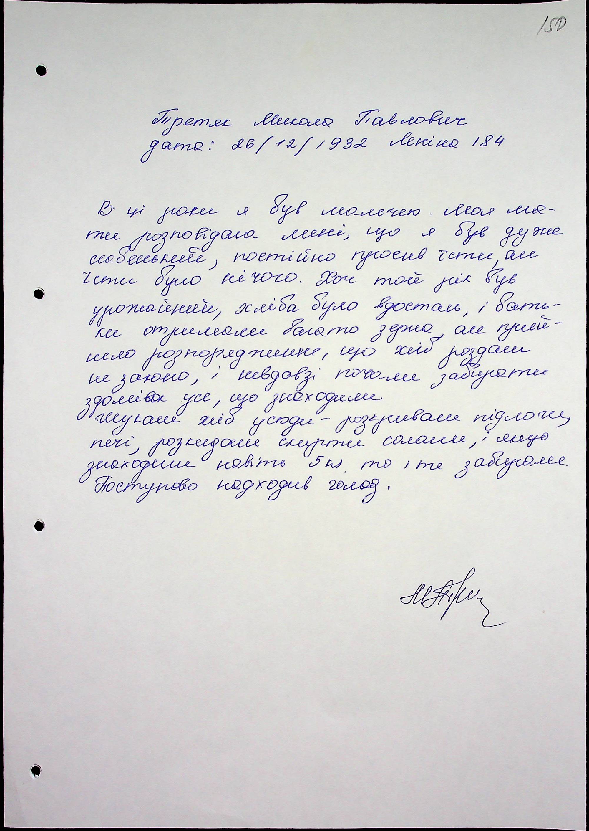 ◦ ◦ Фонд № 6146 “Колекція свідчень очевидців Голодомору 1932-1933 рр., нині проживаючих у Миколаївській області”