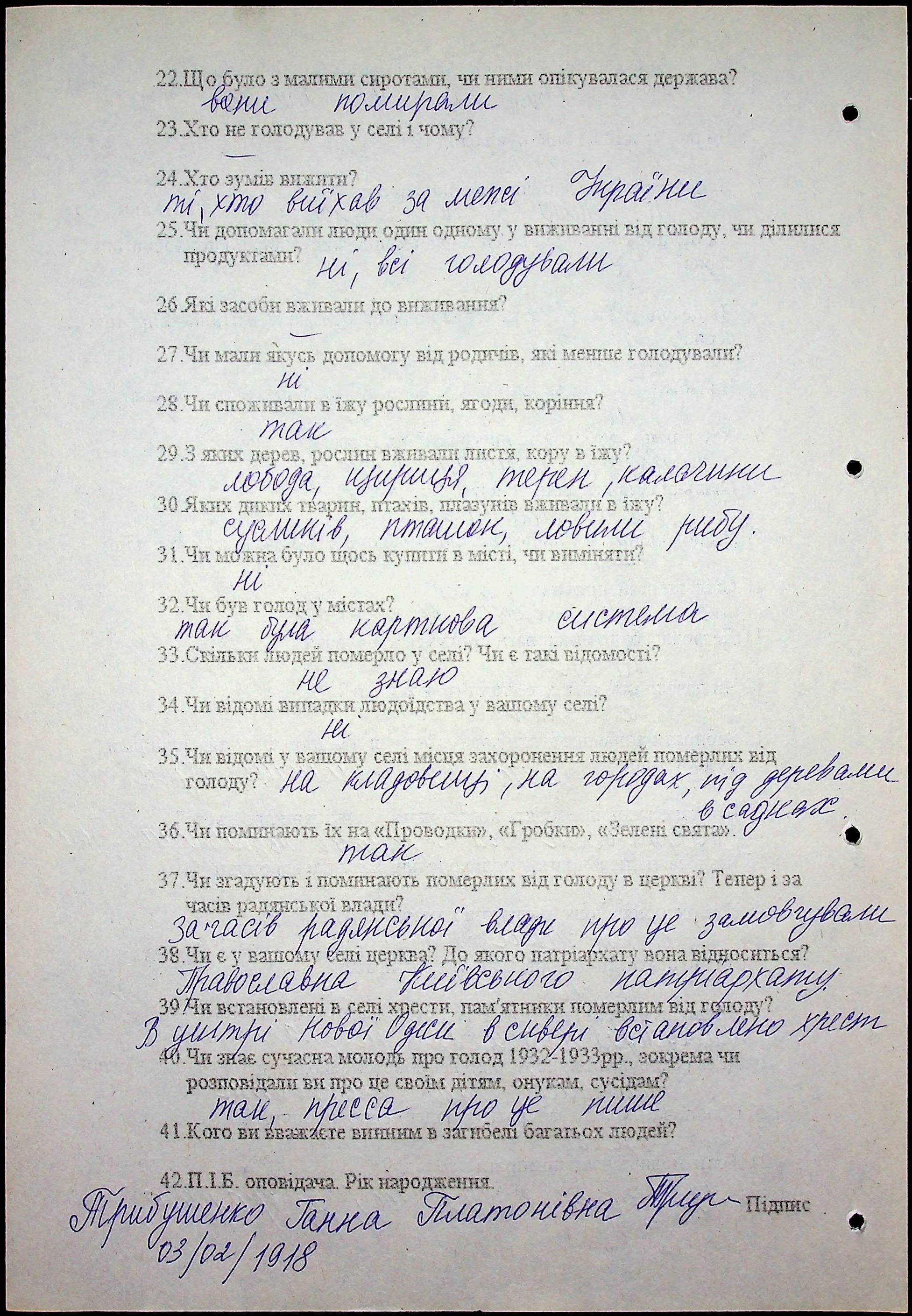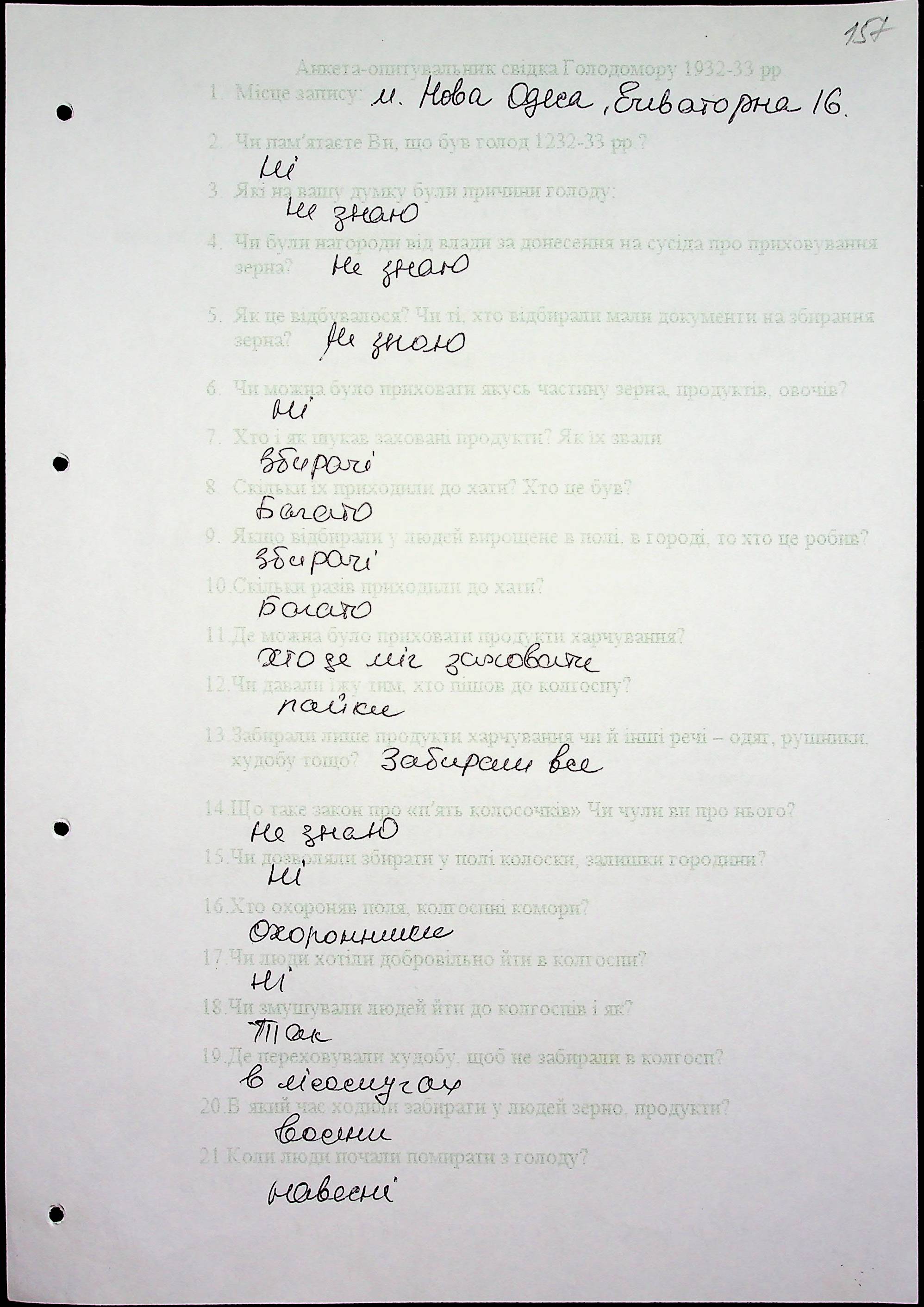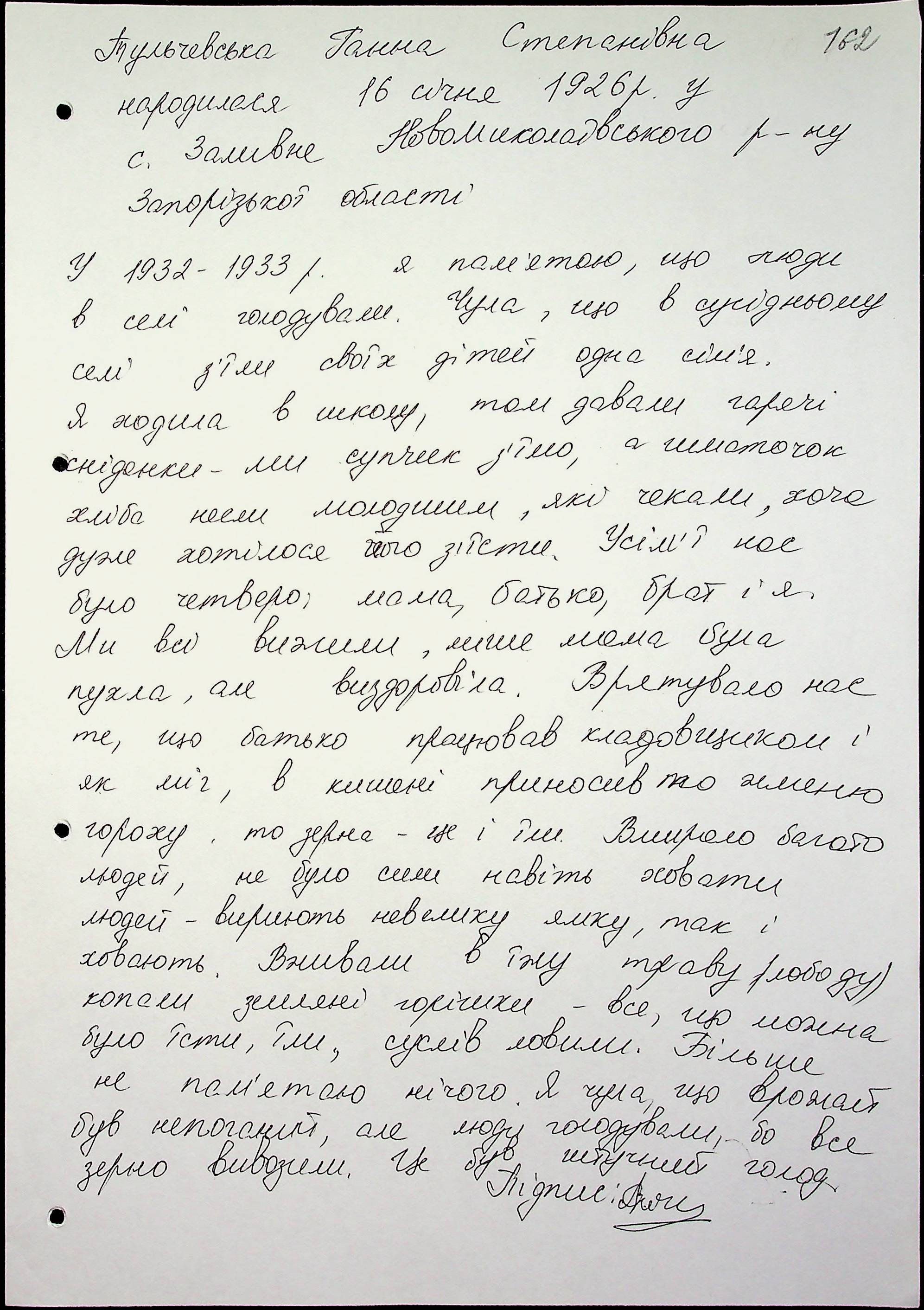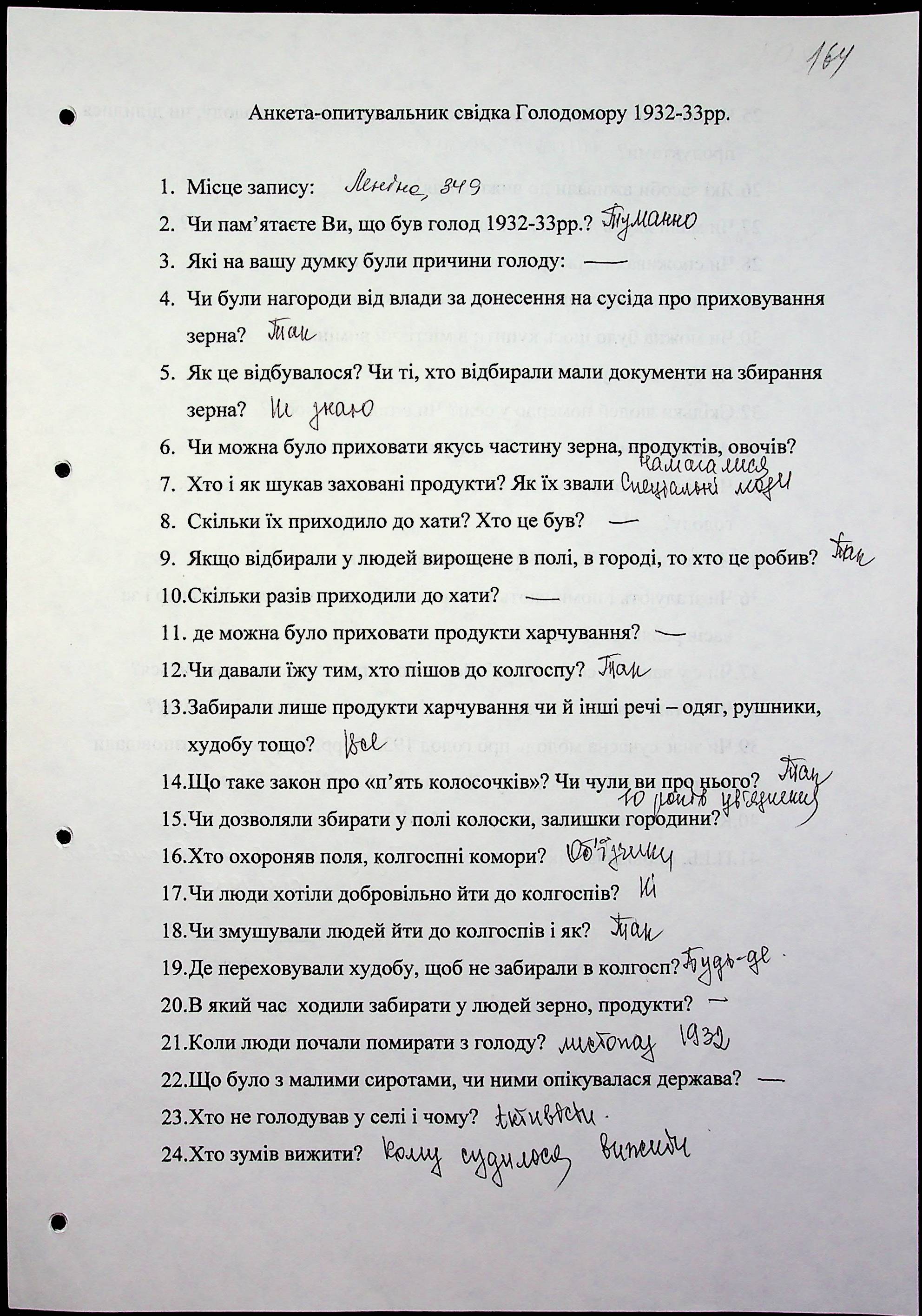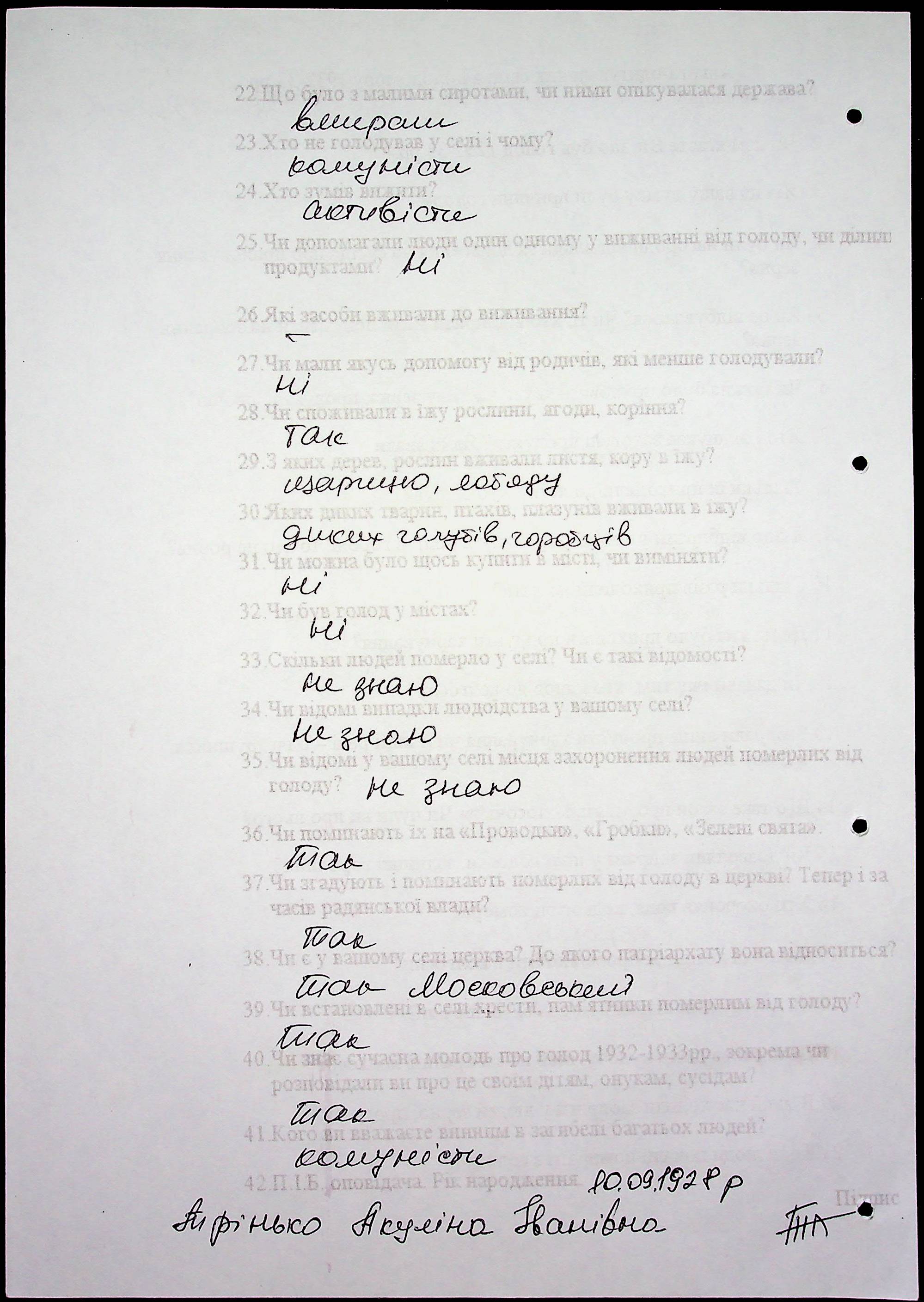 ◦ ◦ Фонд № 6146 “Колекція свідчень очевидців Голодомору 1932-1933 рр., нині проживаючих у Миколаївській області”