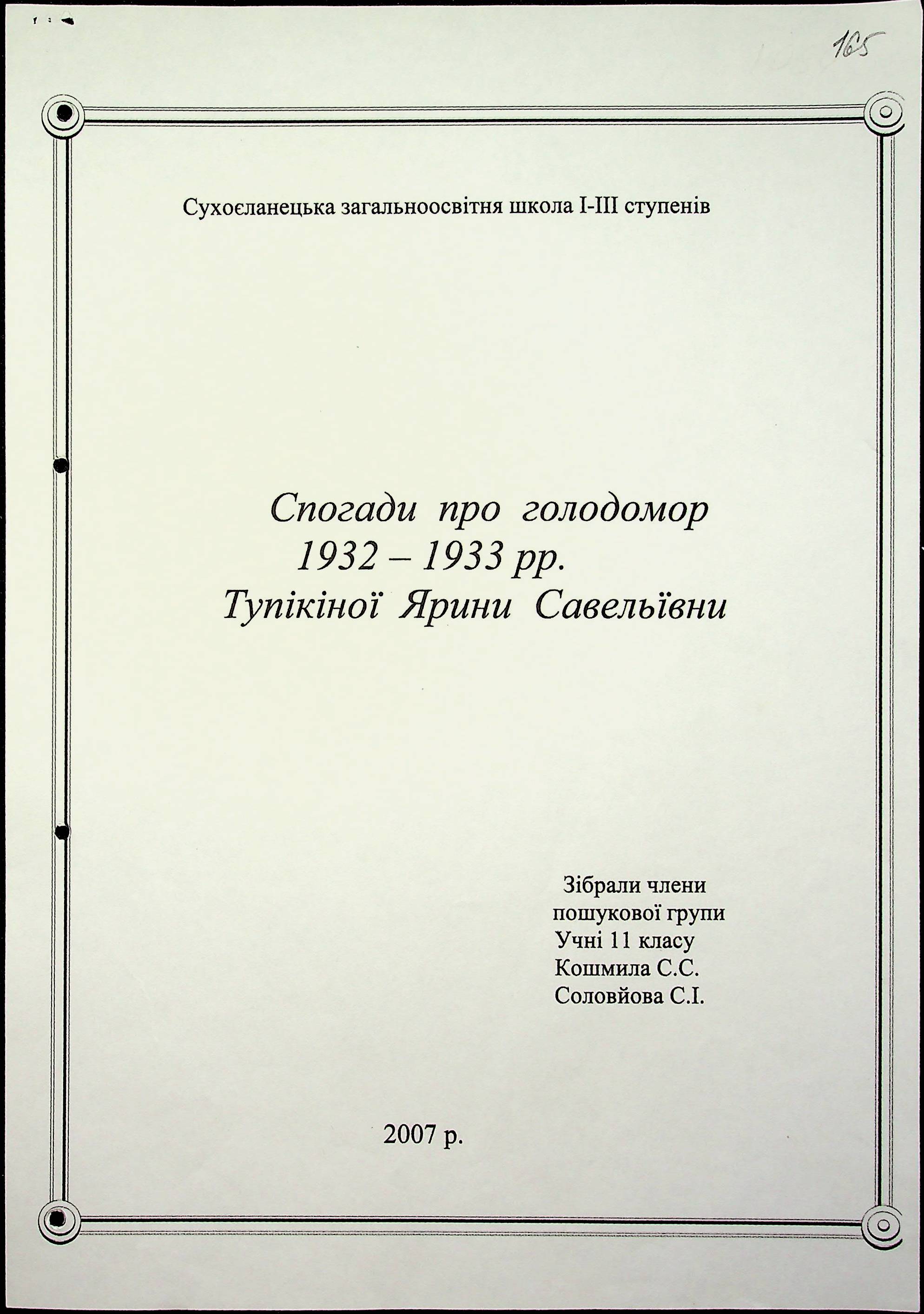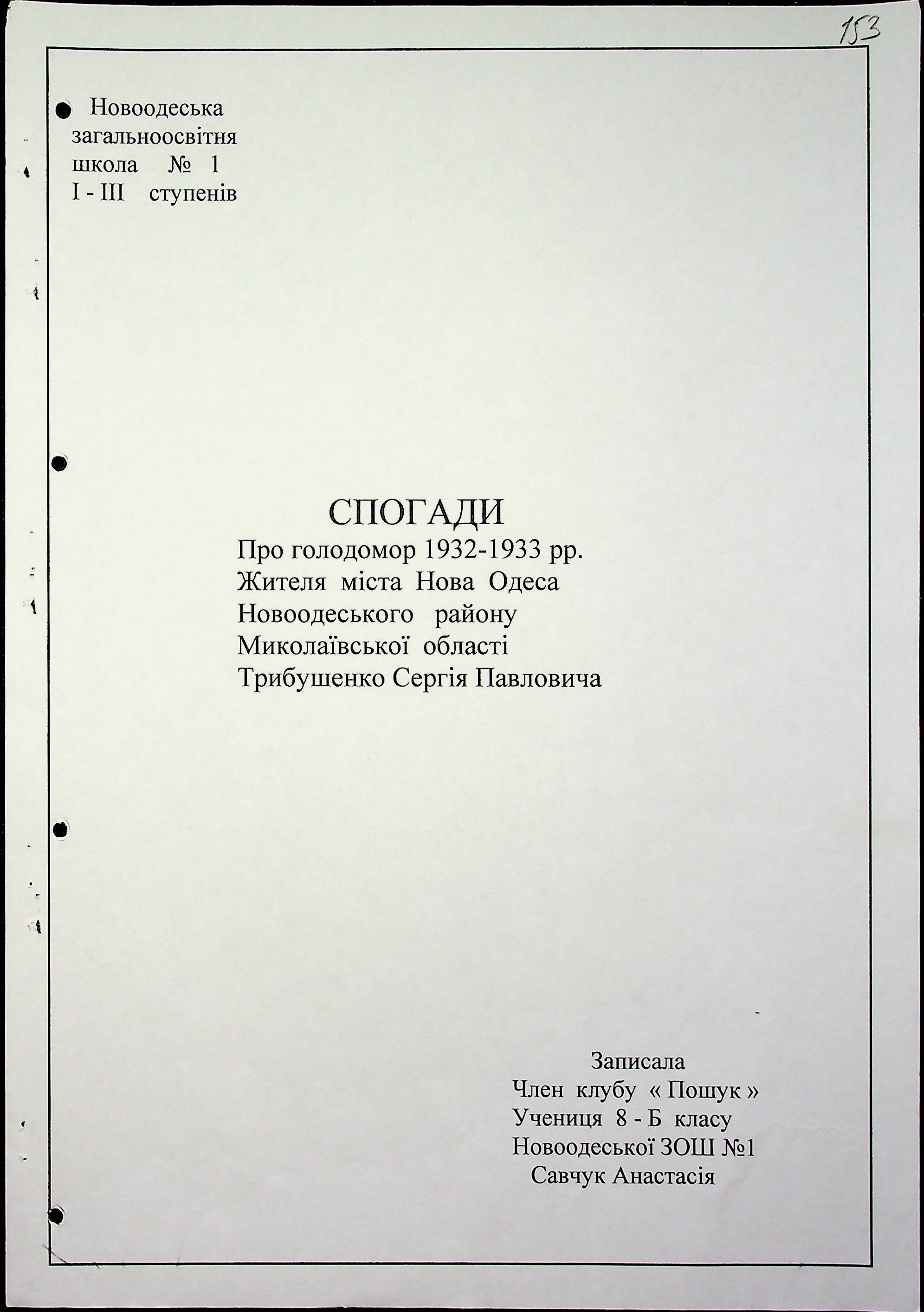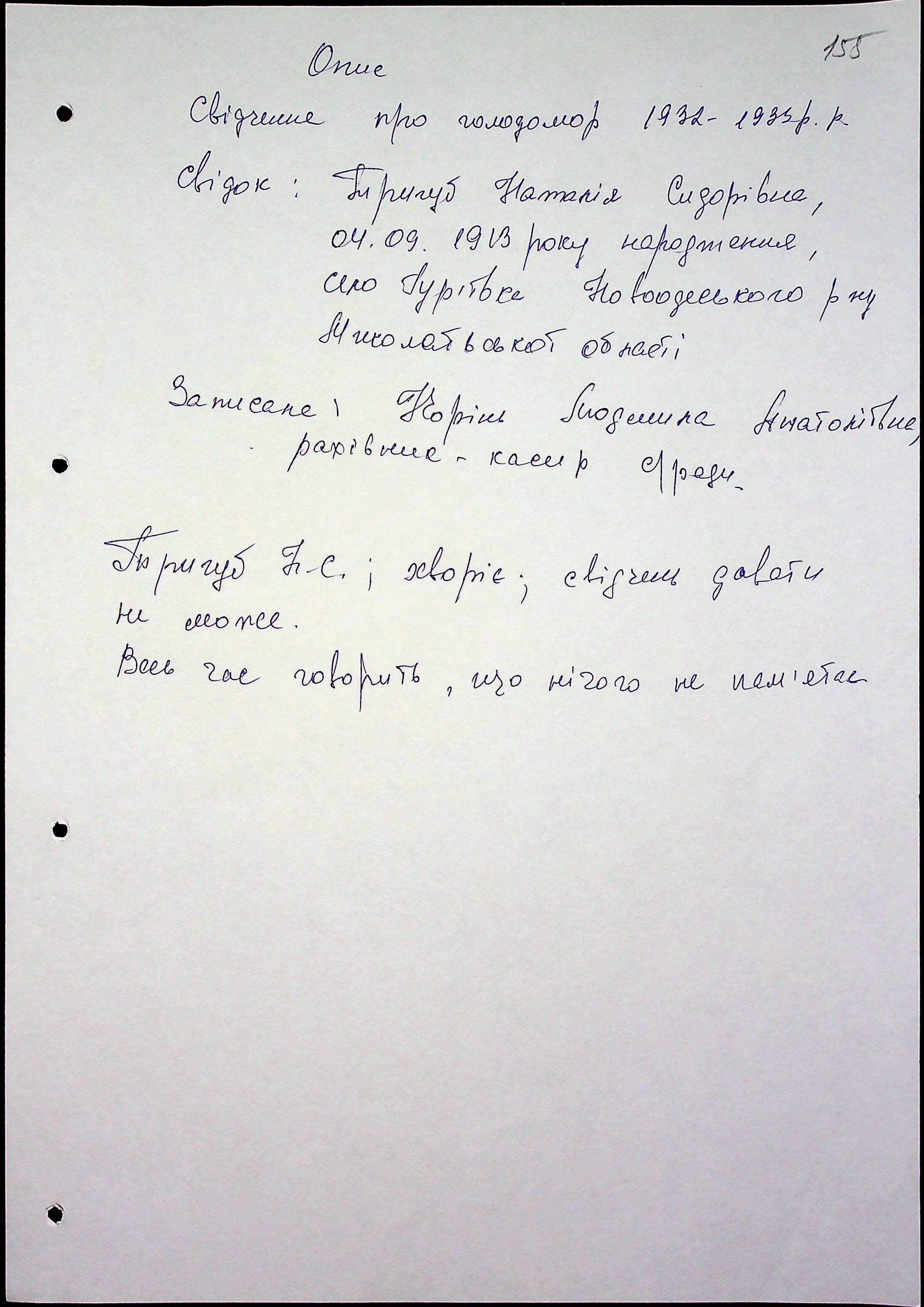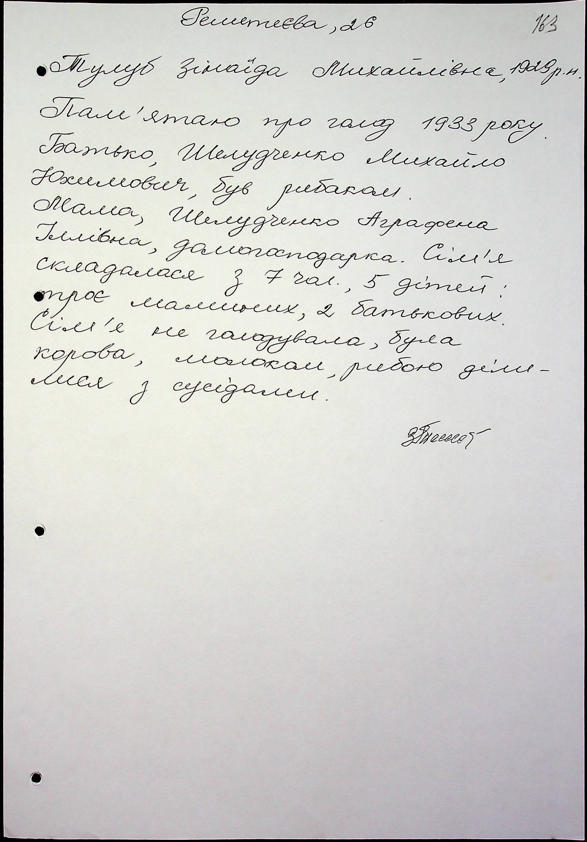 • • • • Справа № 56 “Свідчення очевидців Голодомору 1932-1933 років, які проживають у Новоодеському районі, з прізвищами на літери Р–Я”