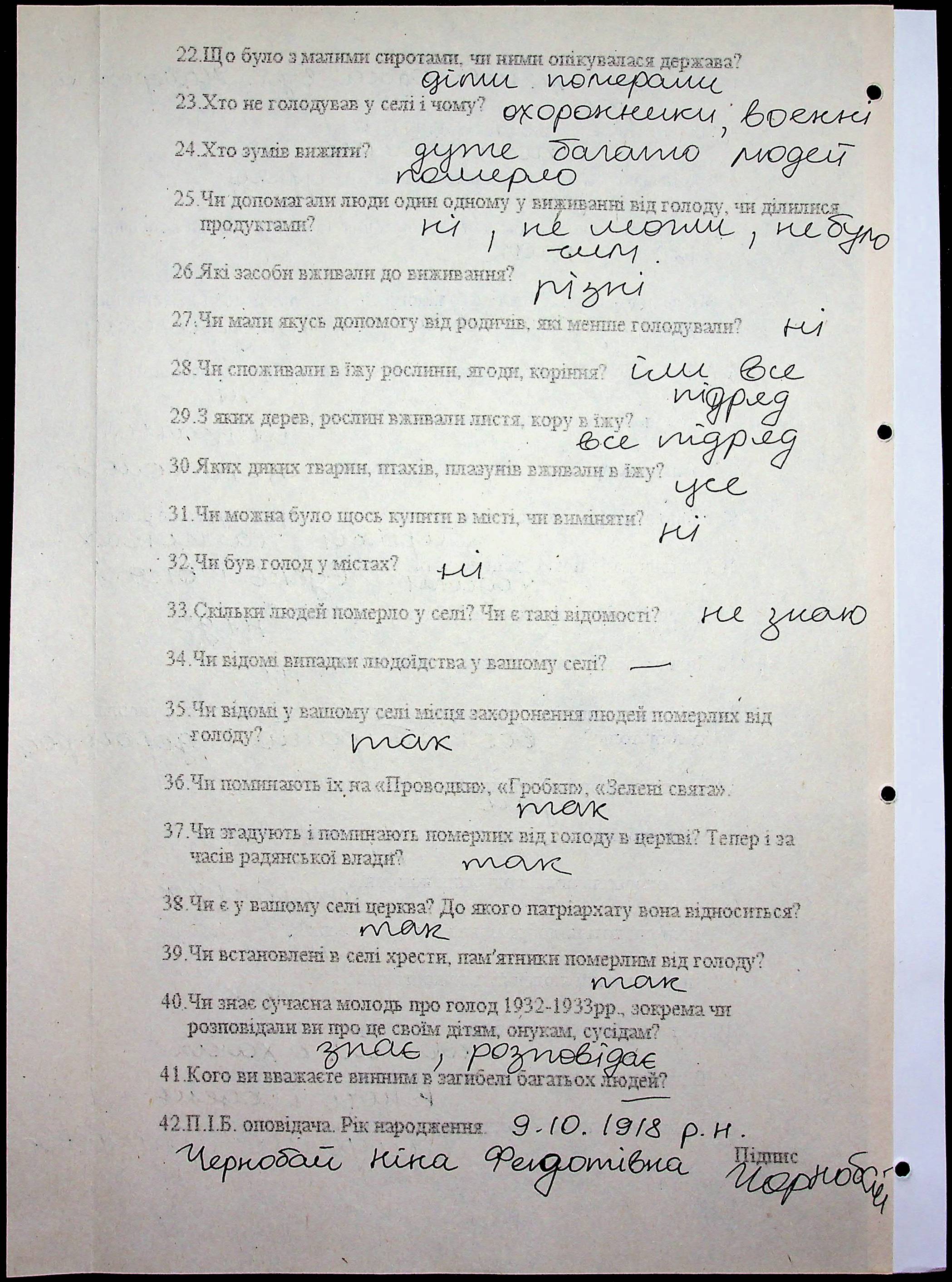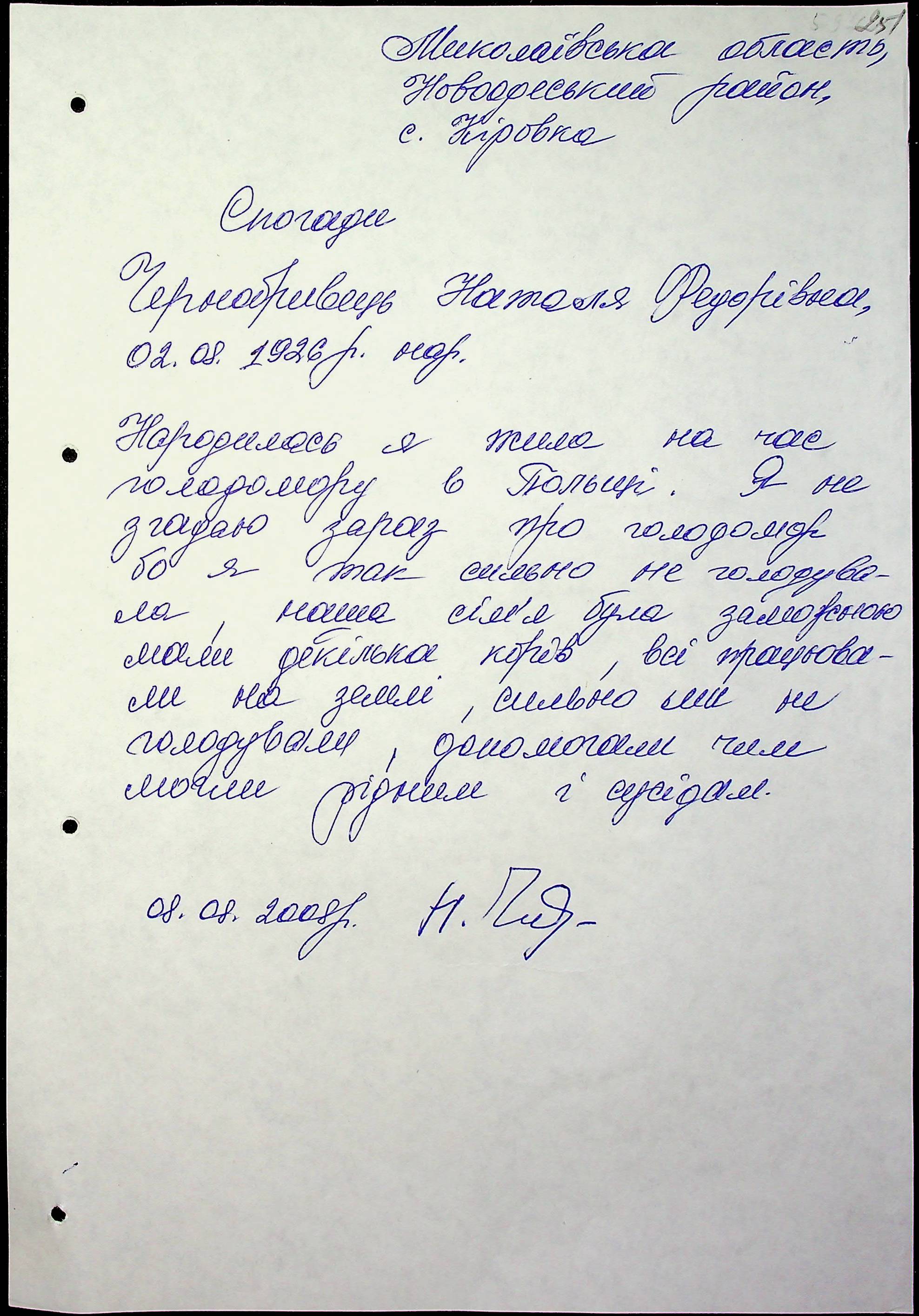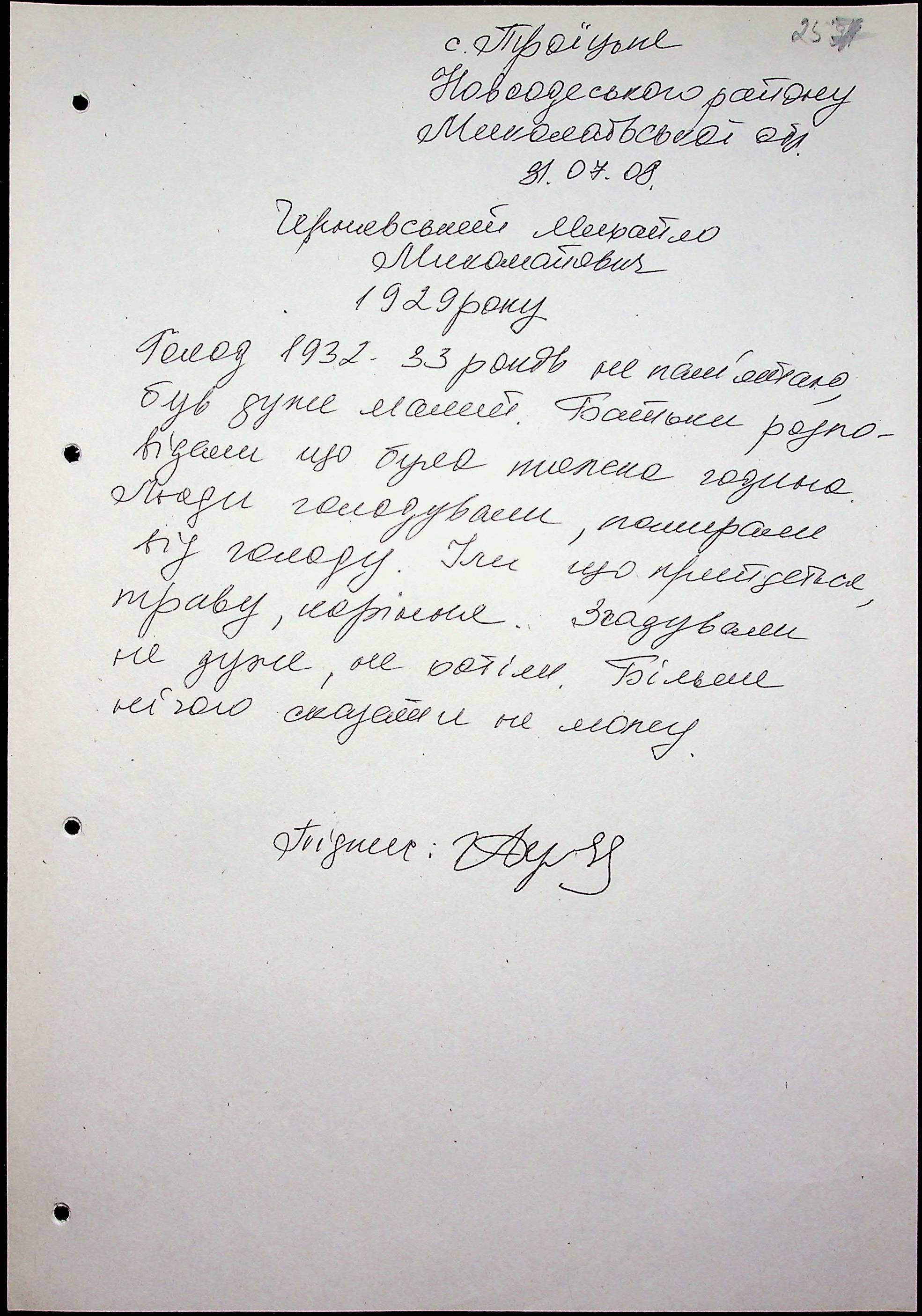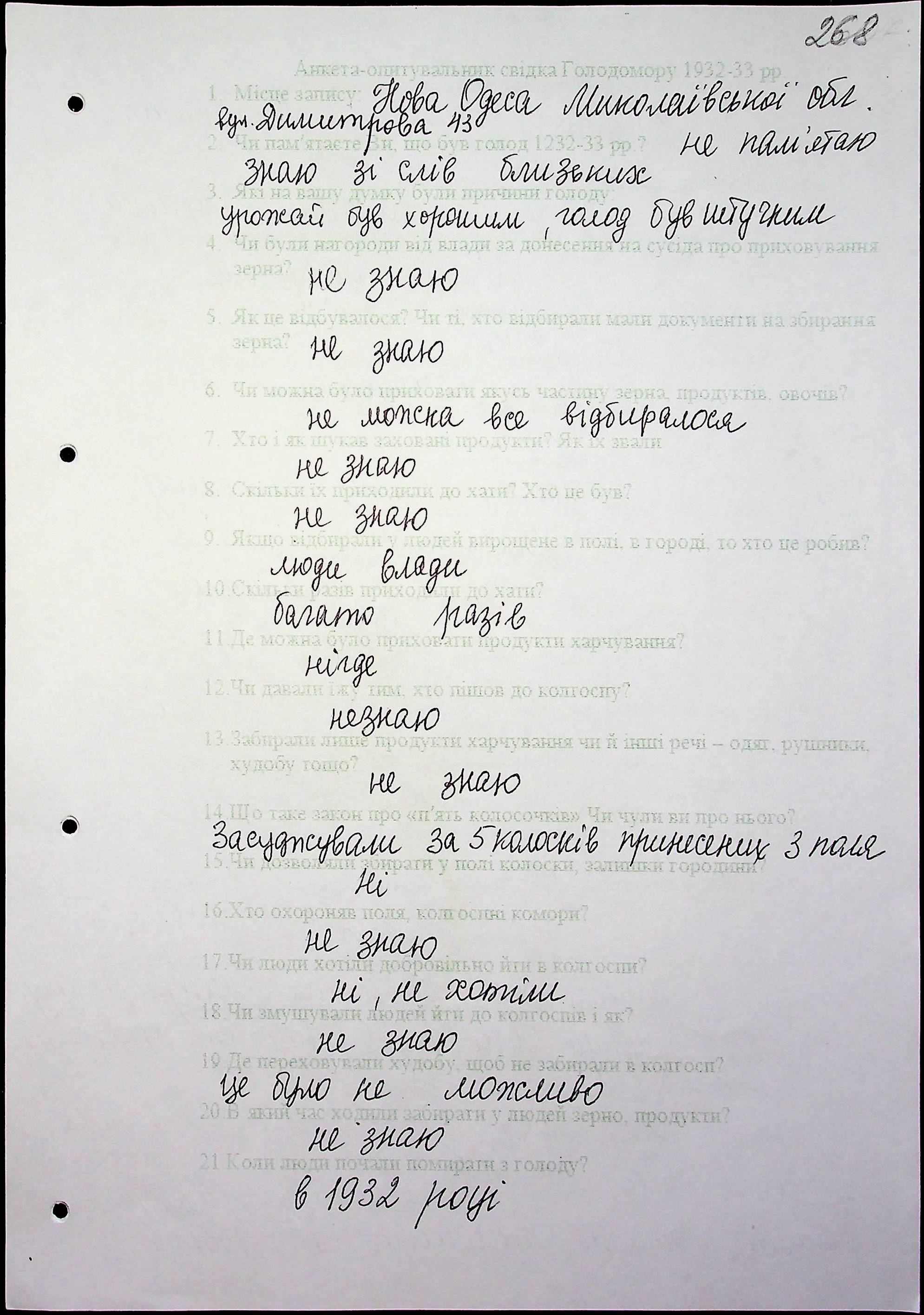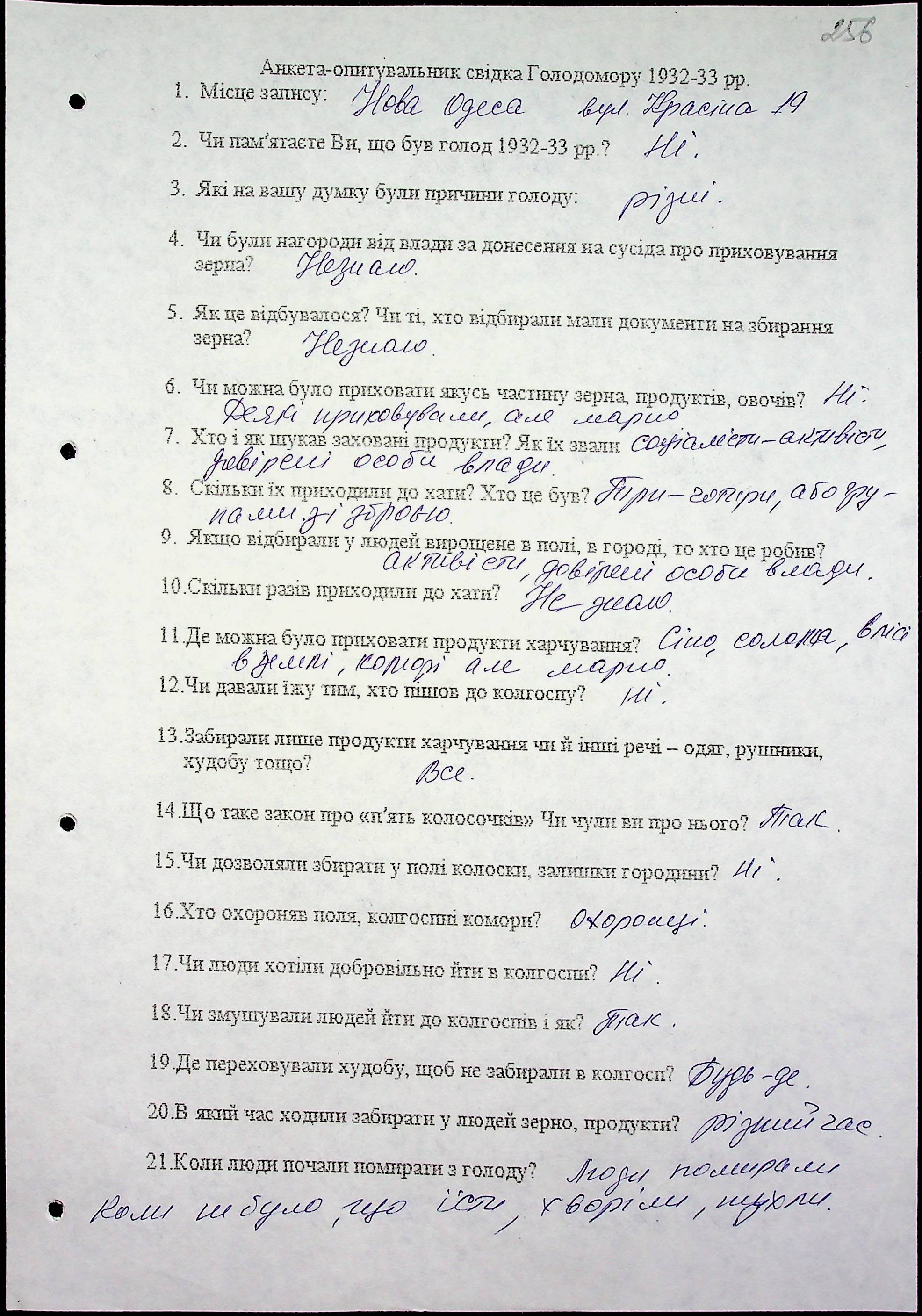 ◦ ◦ Фонд № 6146 “Колекція свідчень очевидців Голодомору 1932-1933 рр., нині проживаючих у Миколаївській області”