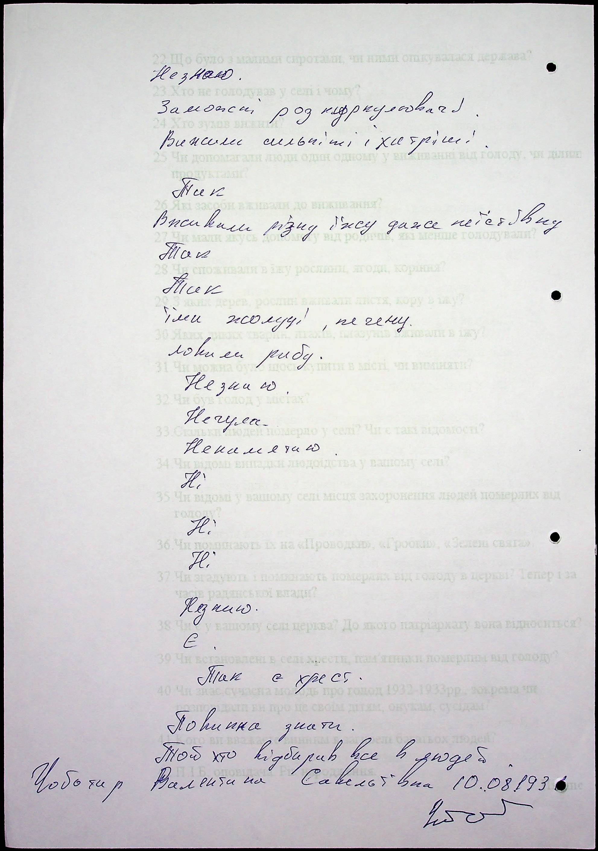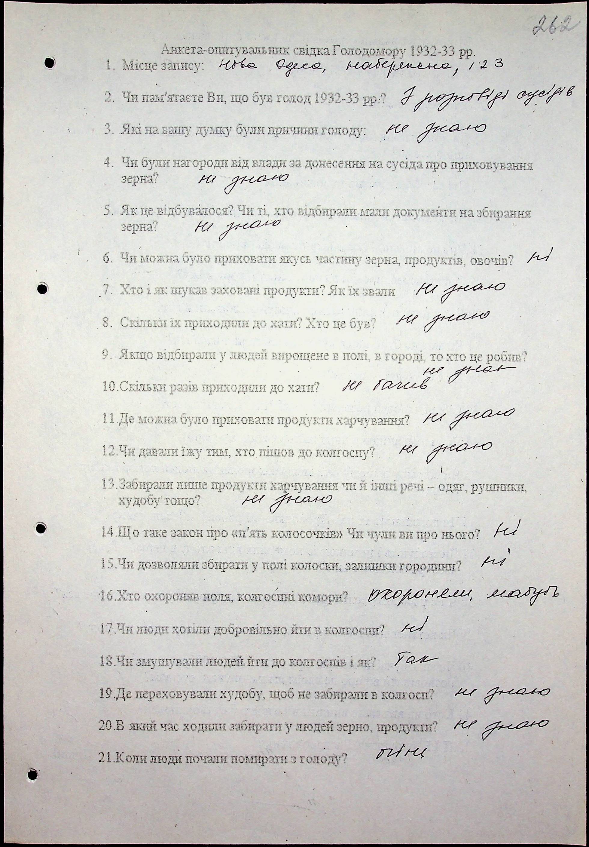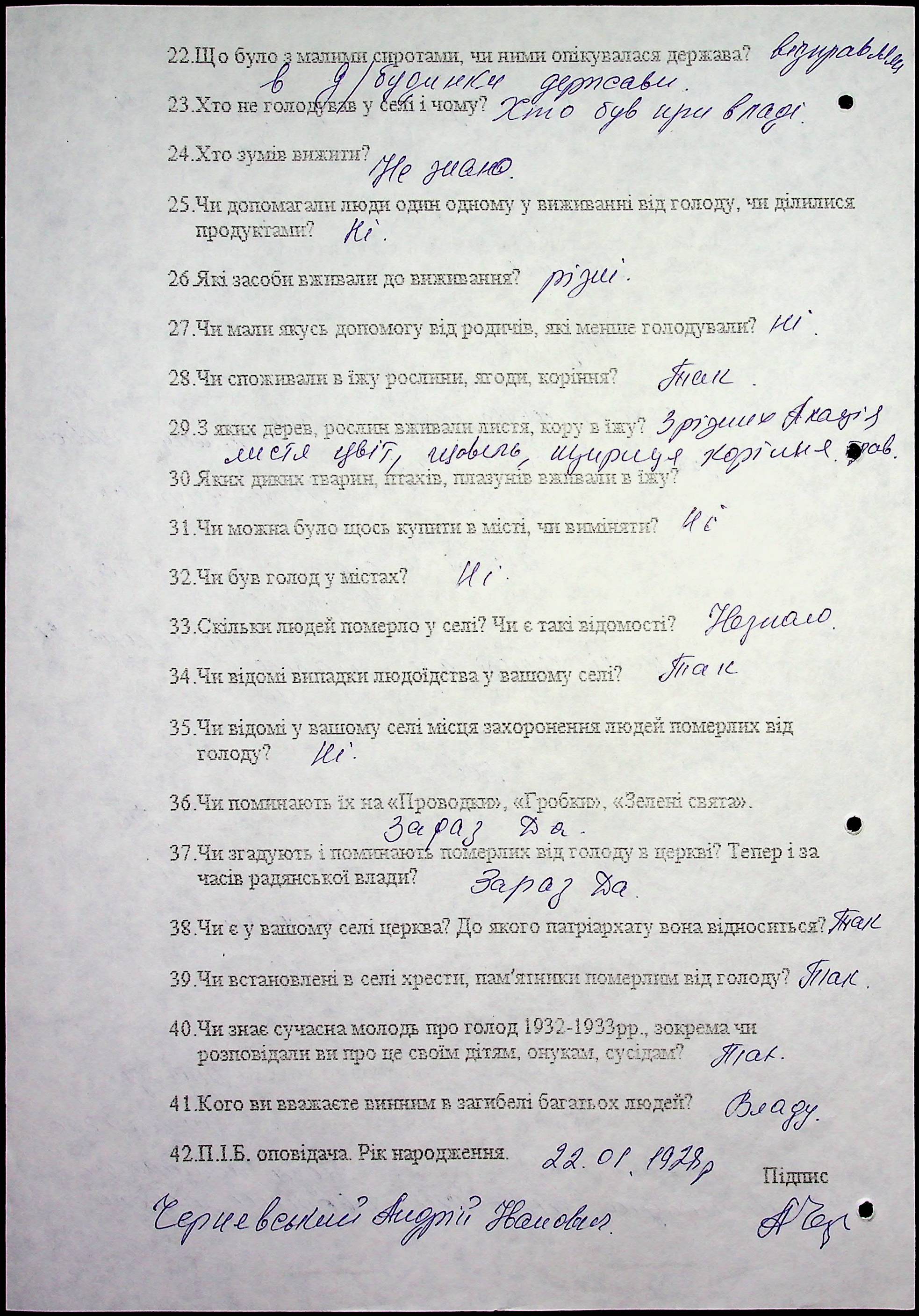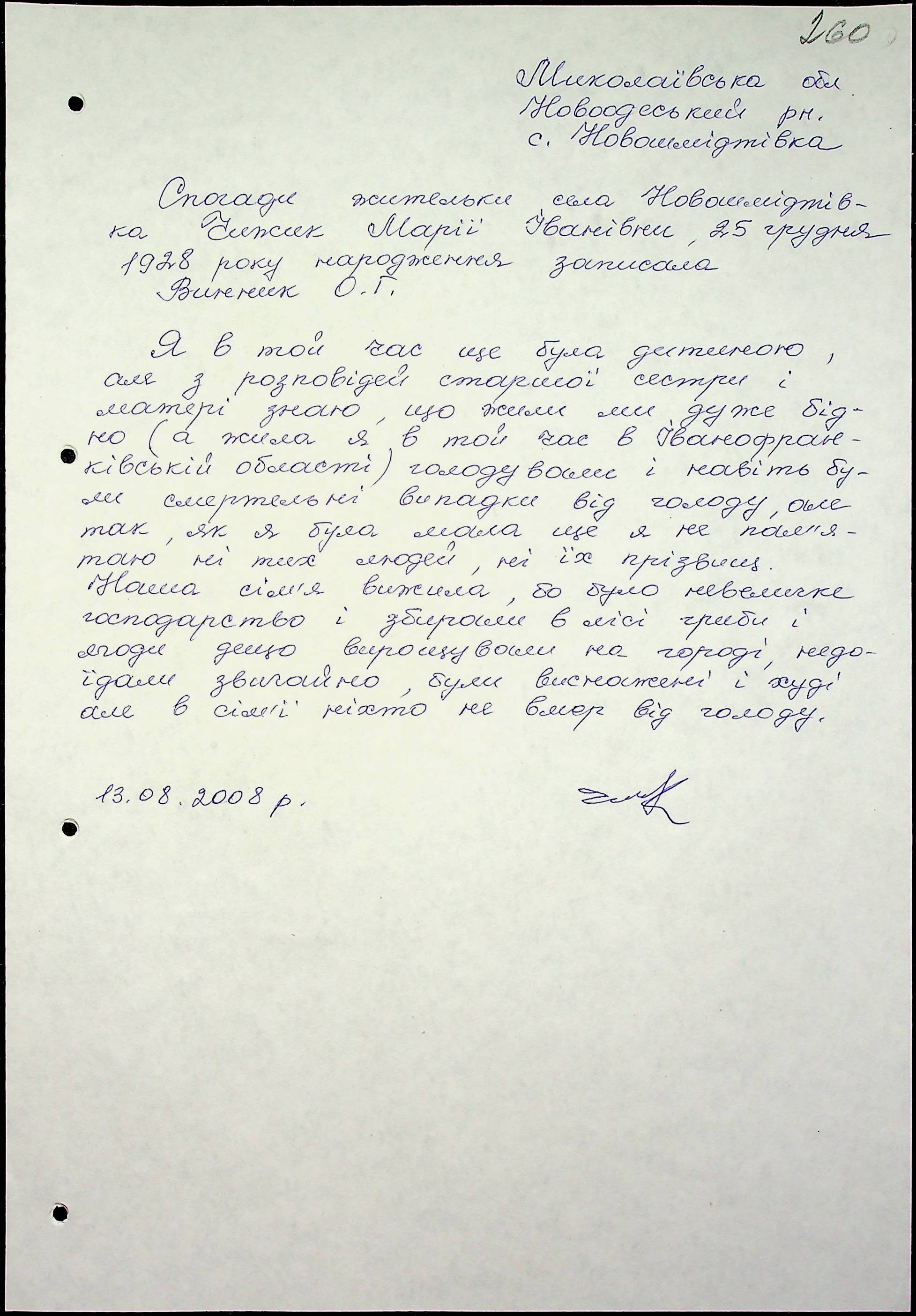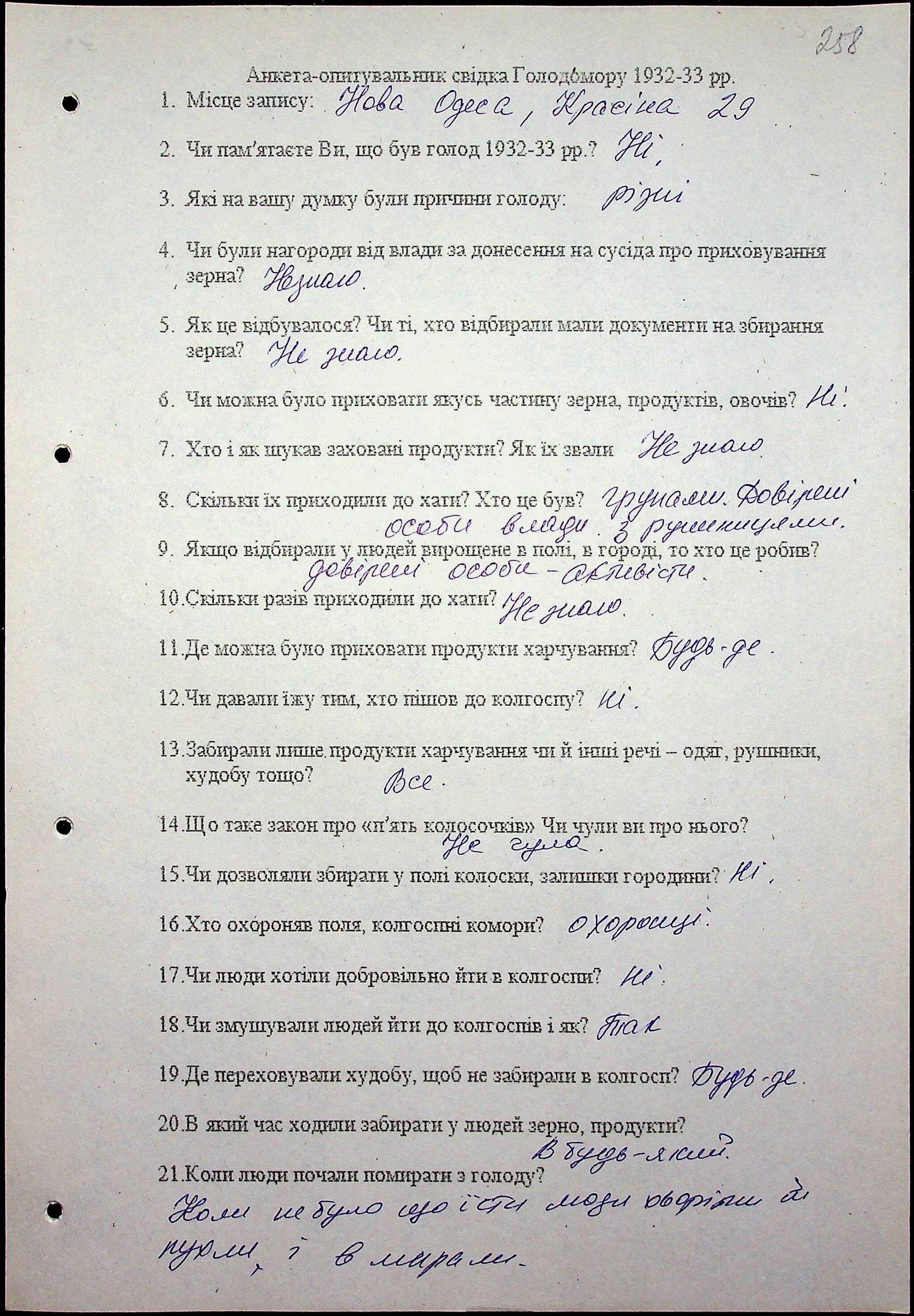 ◦ ◦ Фонд № 6146 “Колекція свідчень очевидців Голодомору 1932-1933 рр., нині проживаючих у Миколаївській області”