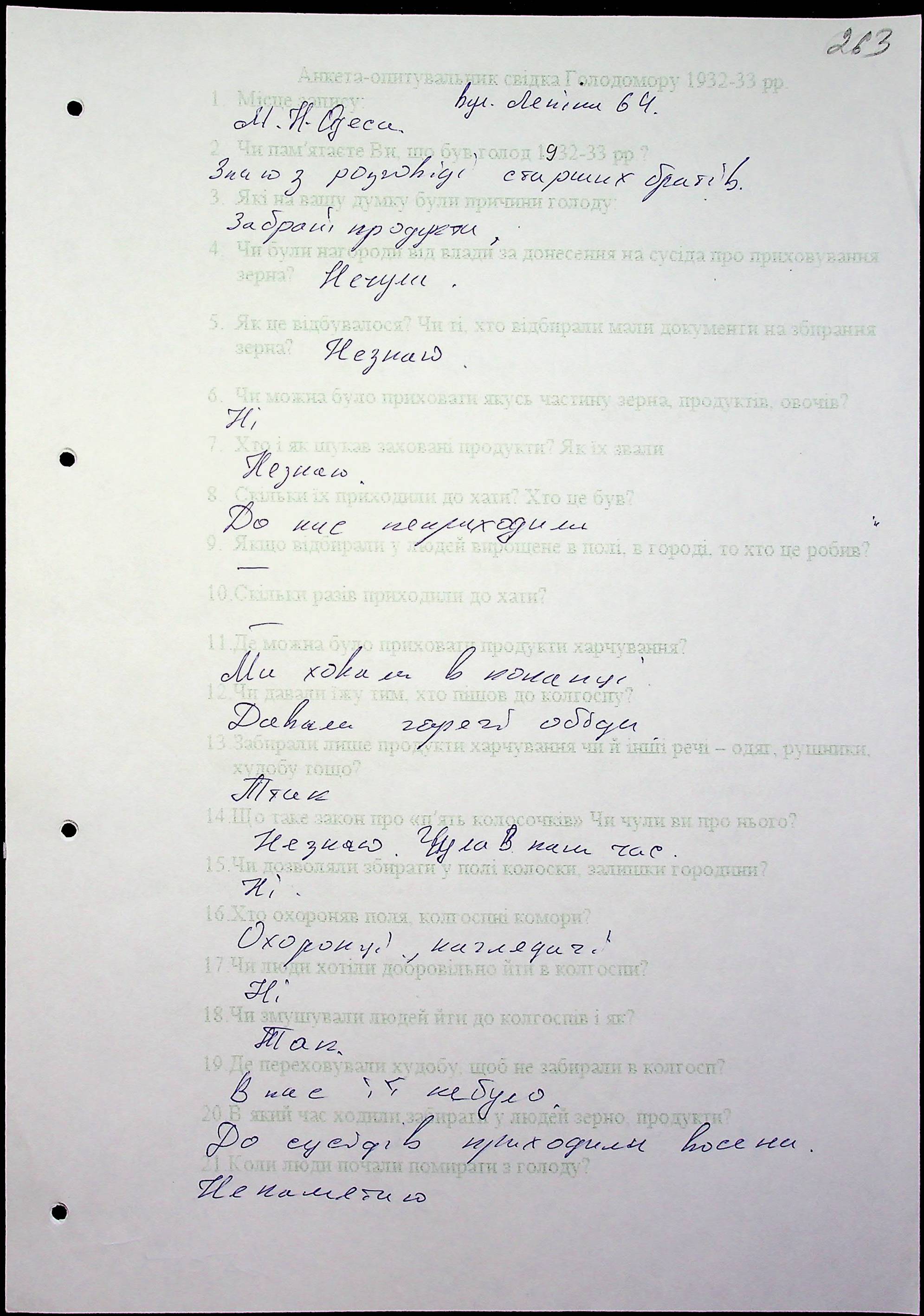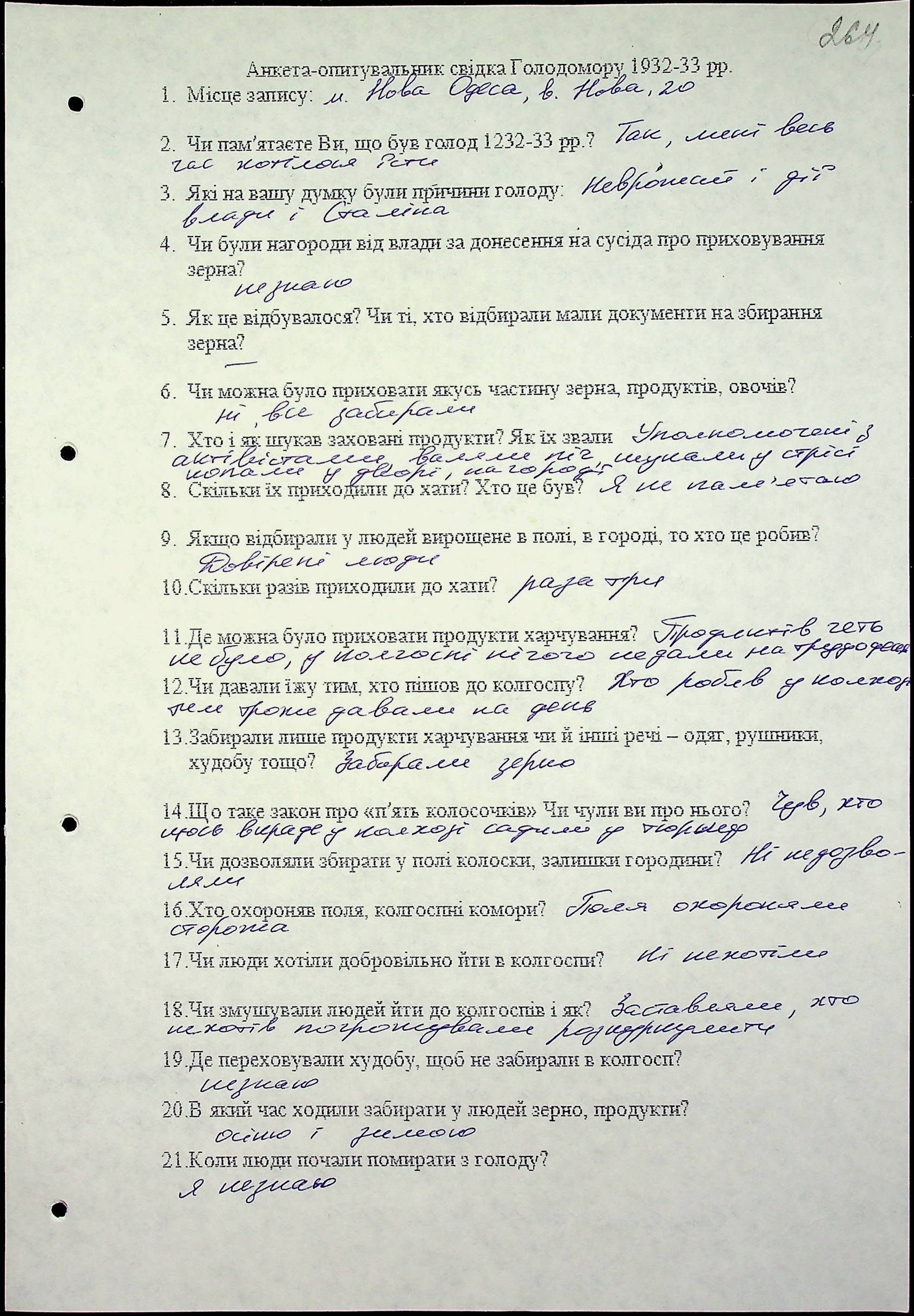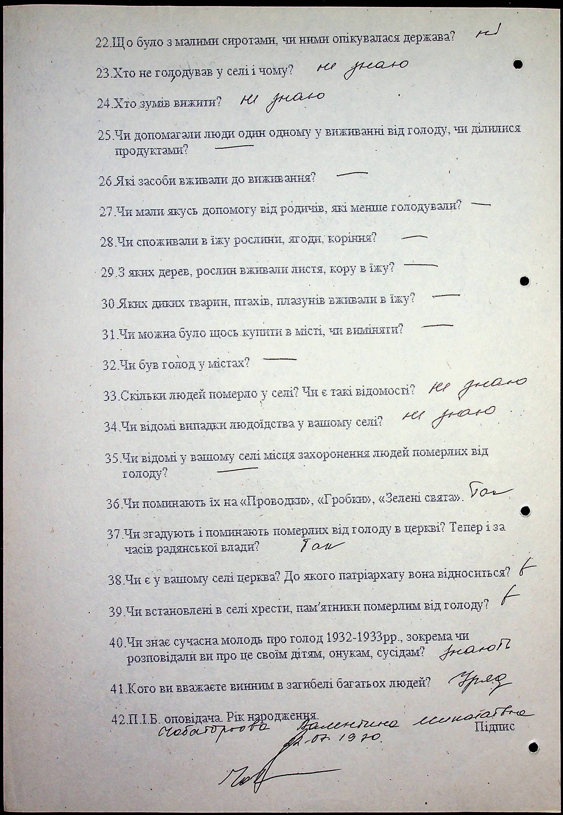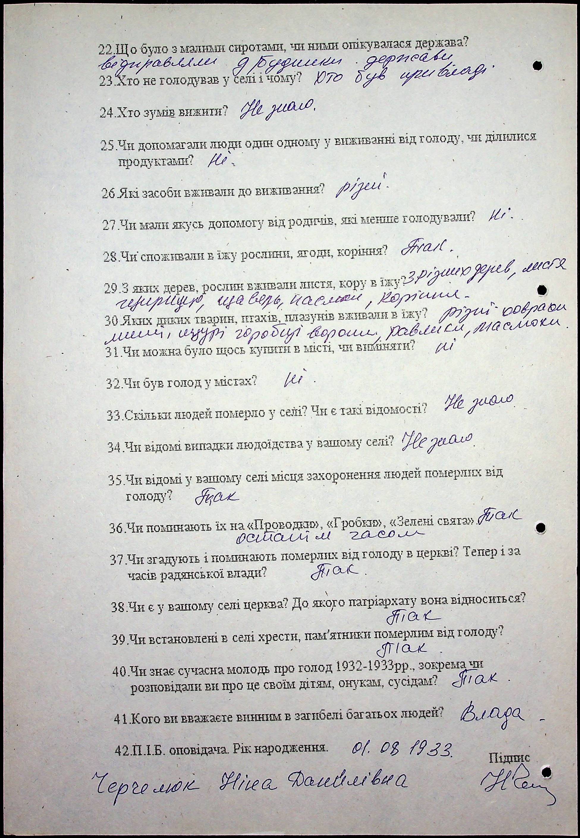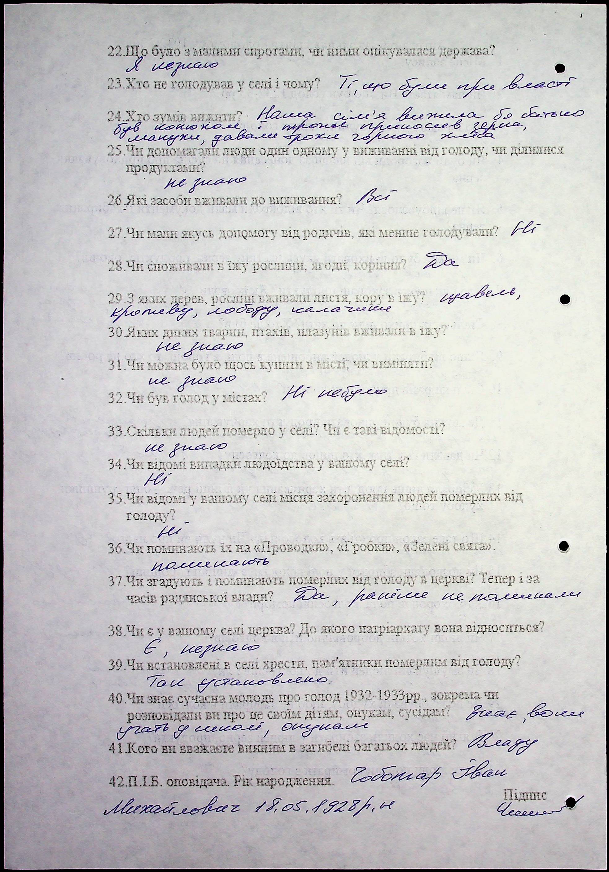 ◦ ◦ Фонд № 6146 “Колекція свідчень очевидців Голодомору 1932-1933 рр., нині проживаючих у Миколаївській області”