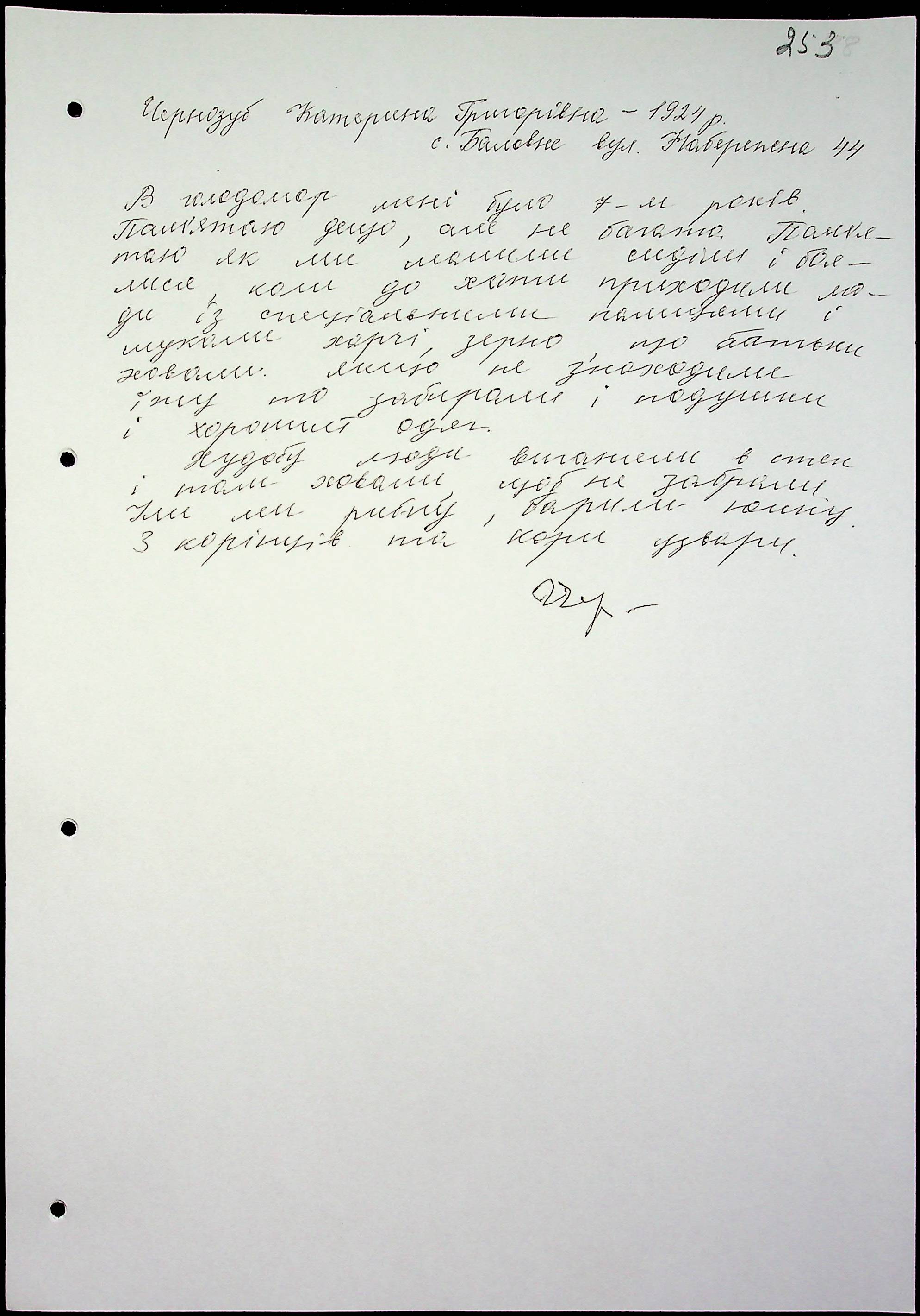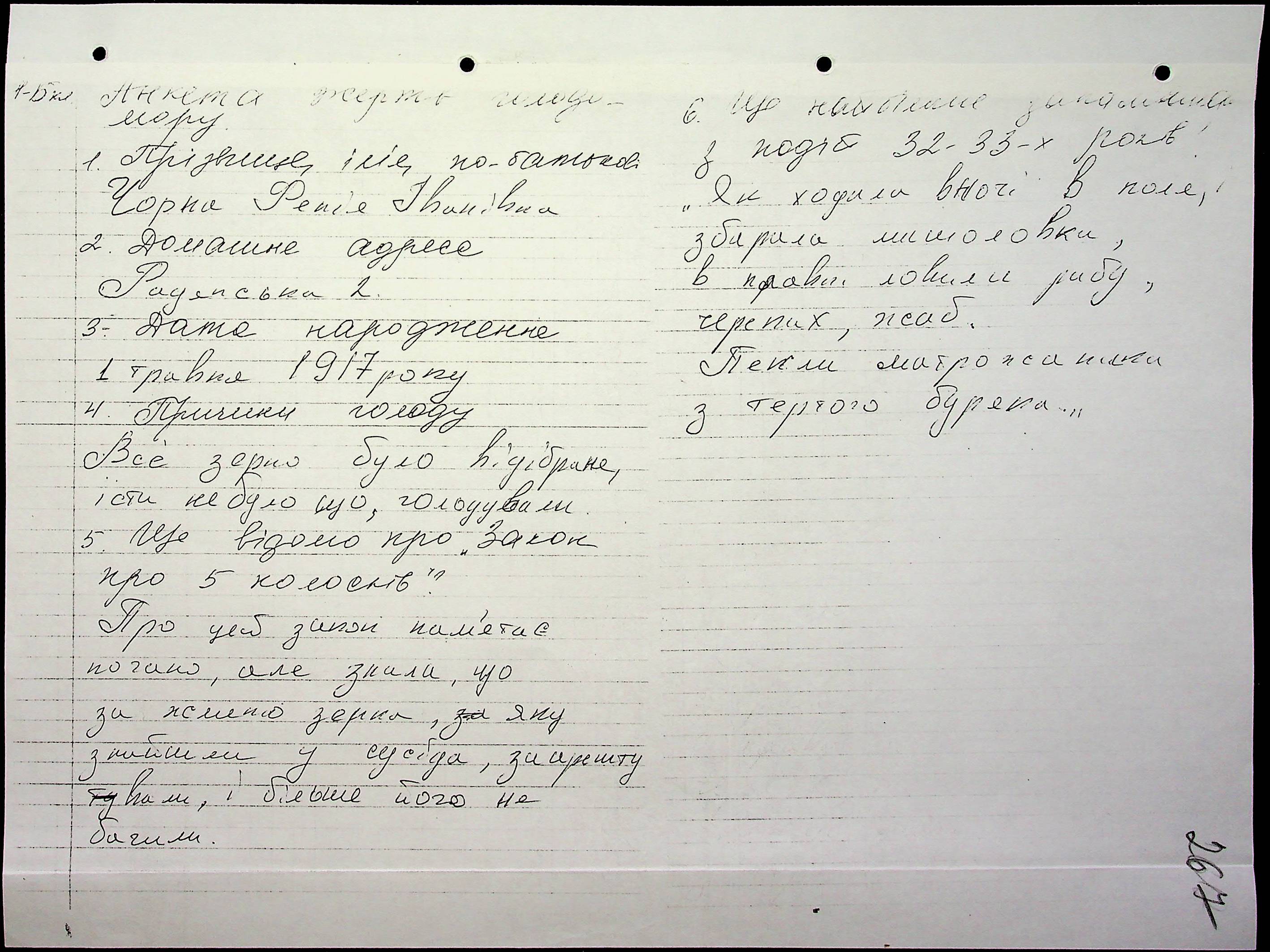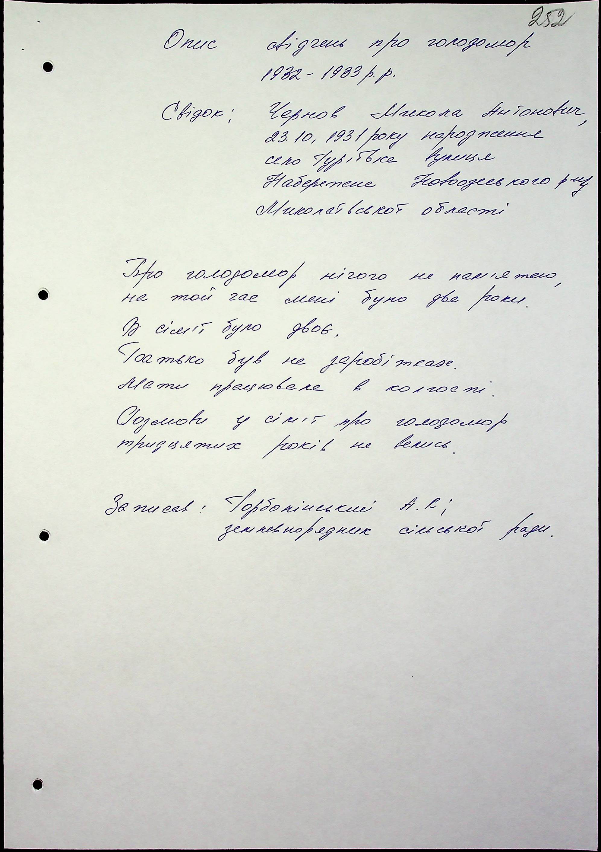 • • • • Справа № 56 “Свідчення очевидців Голодомору 1932-1933 років, які проживають у Новоодеському районі, з прізвищами на літери Р–Я”