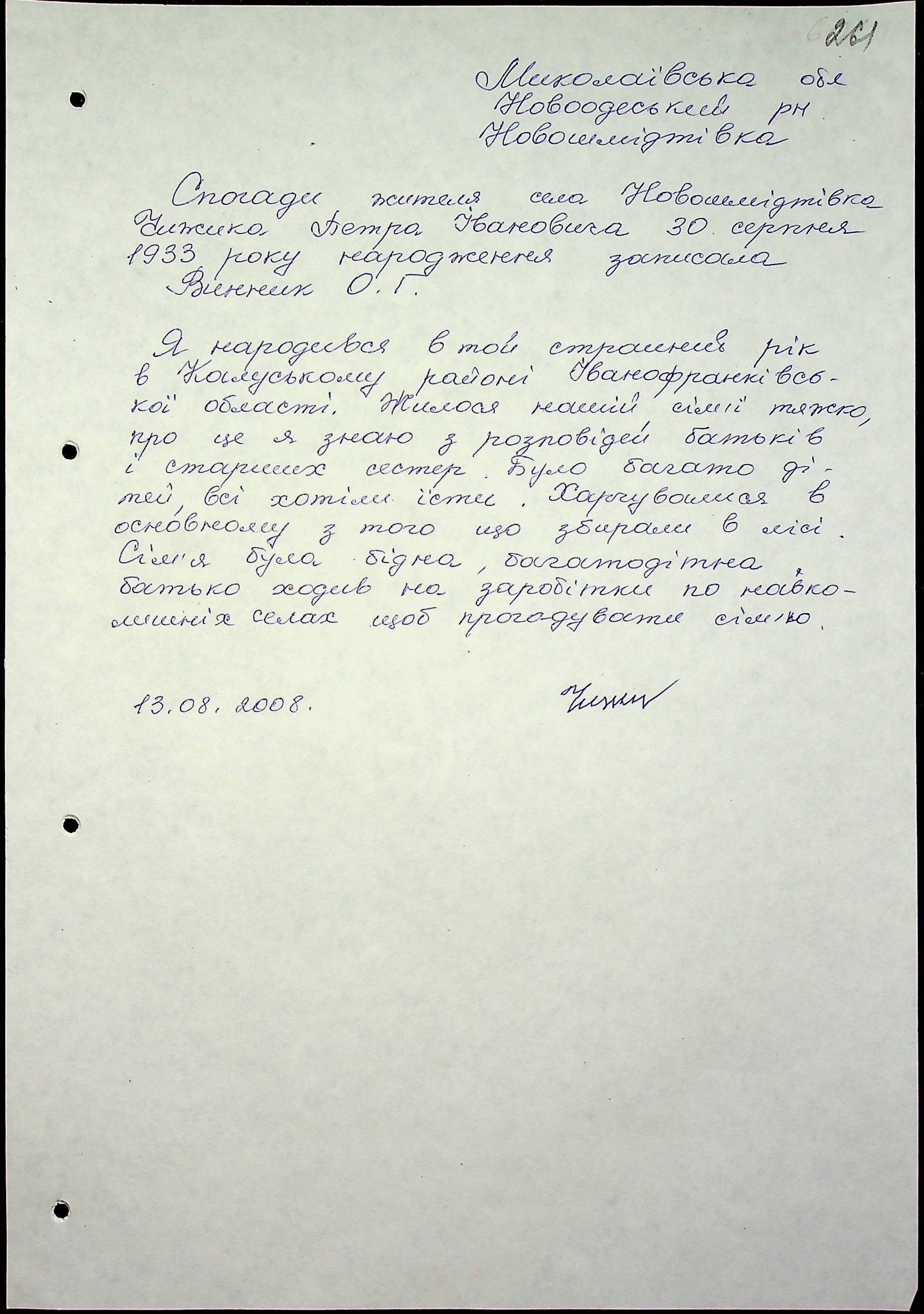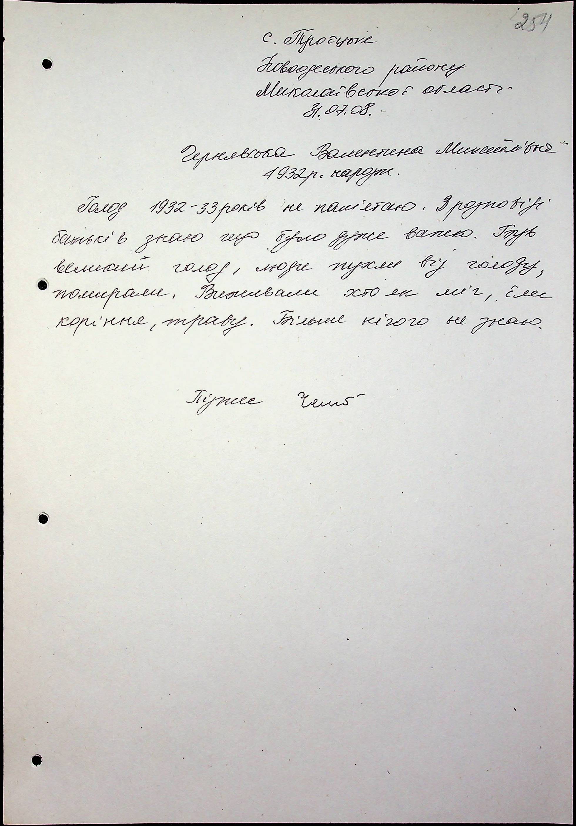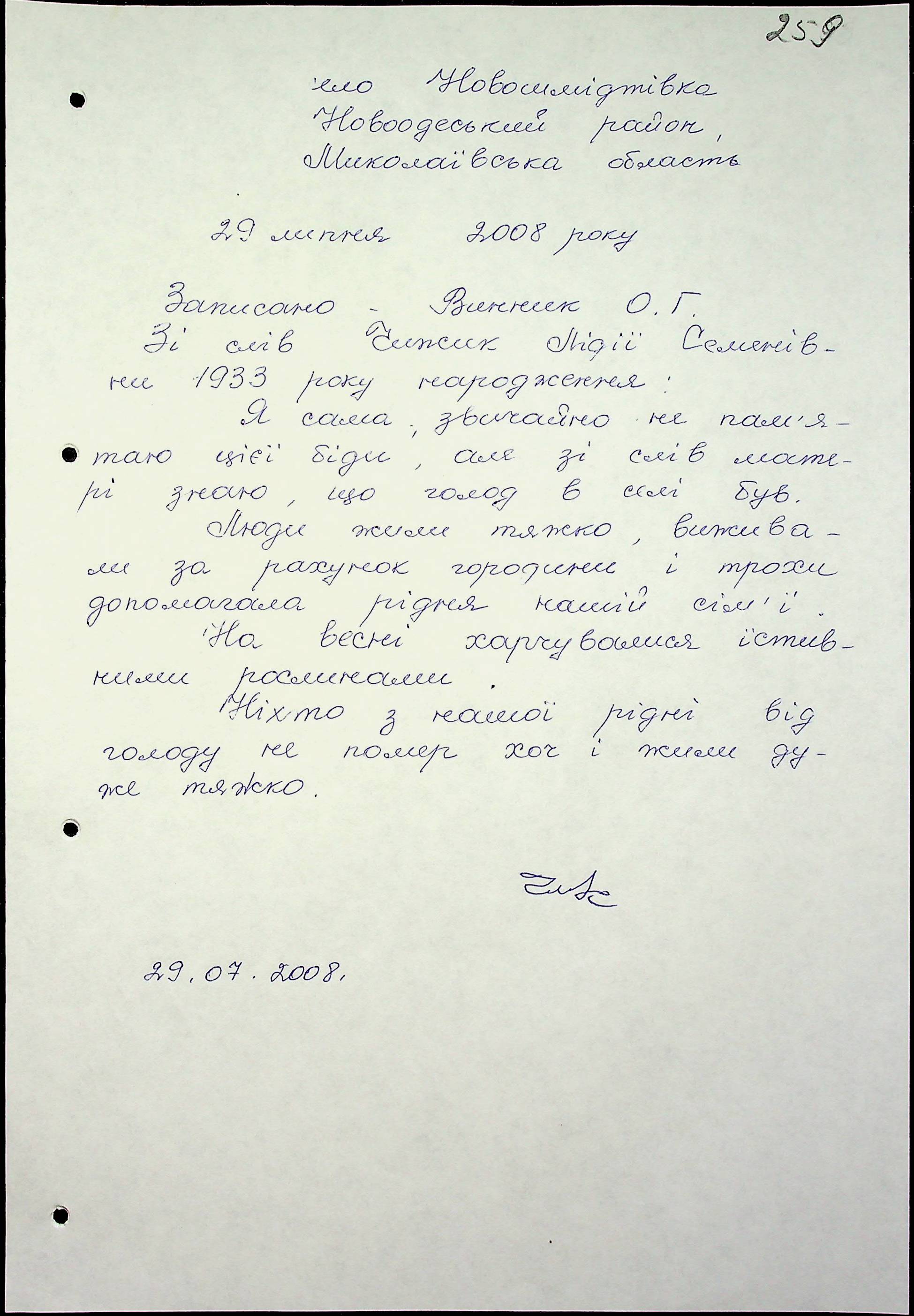 • • • • Справа № 56 “Свідчення очевидців Голодомору 1932-1933 років, які проживають у Новоодеському районі, з прізвищами на літери Р–Я”
