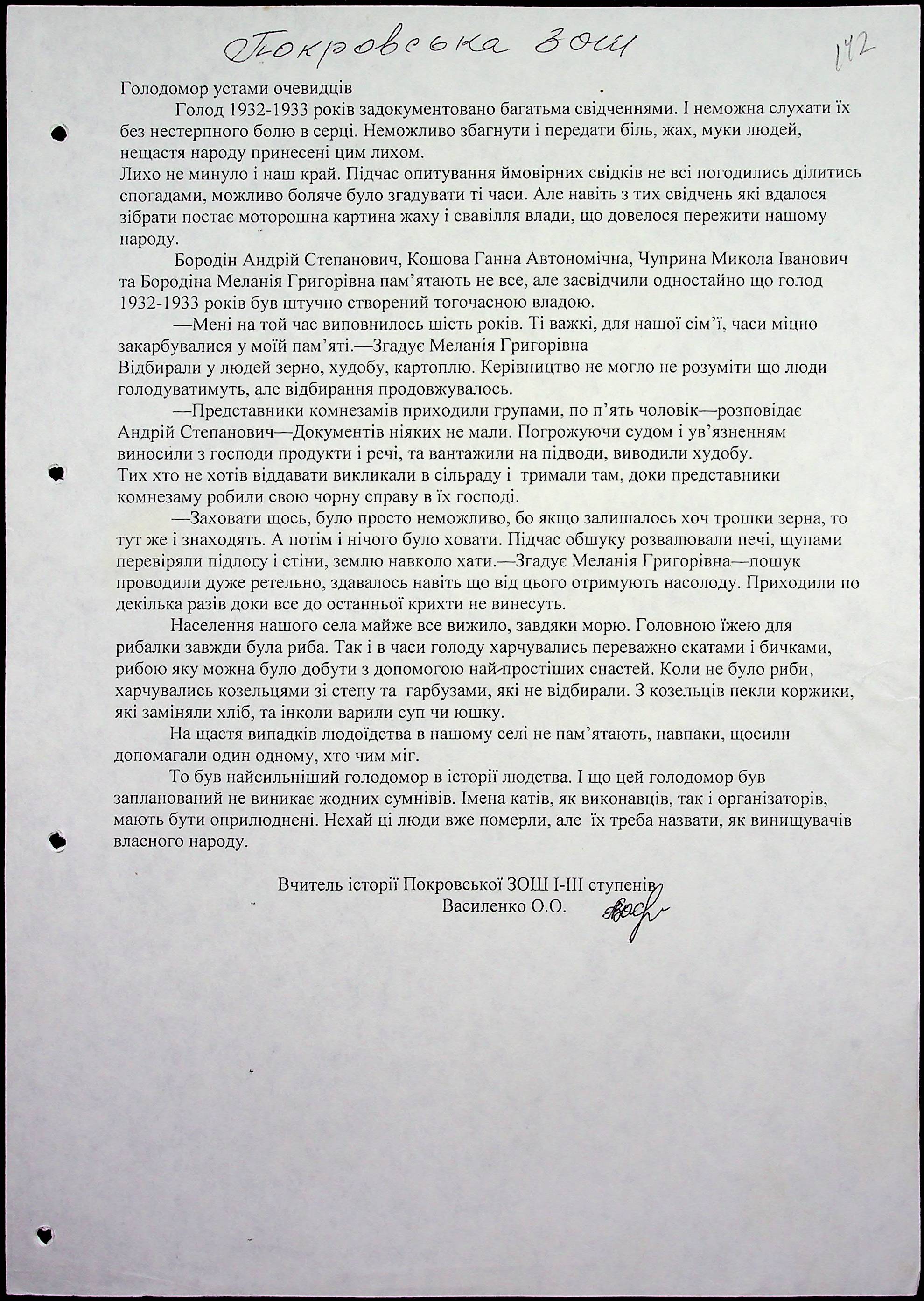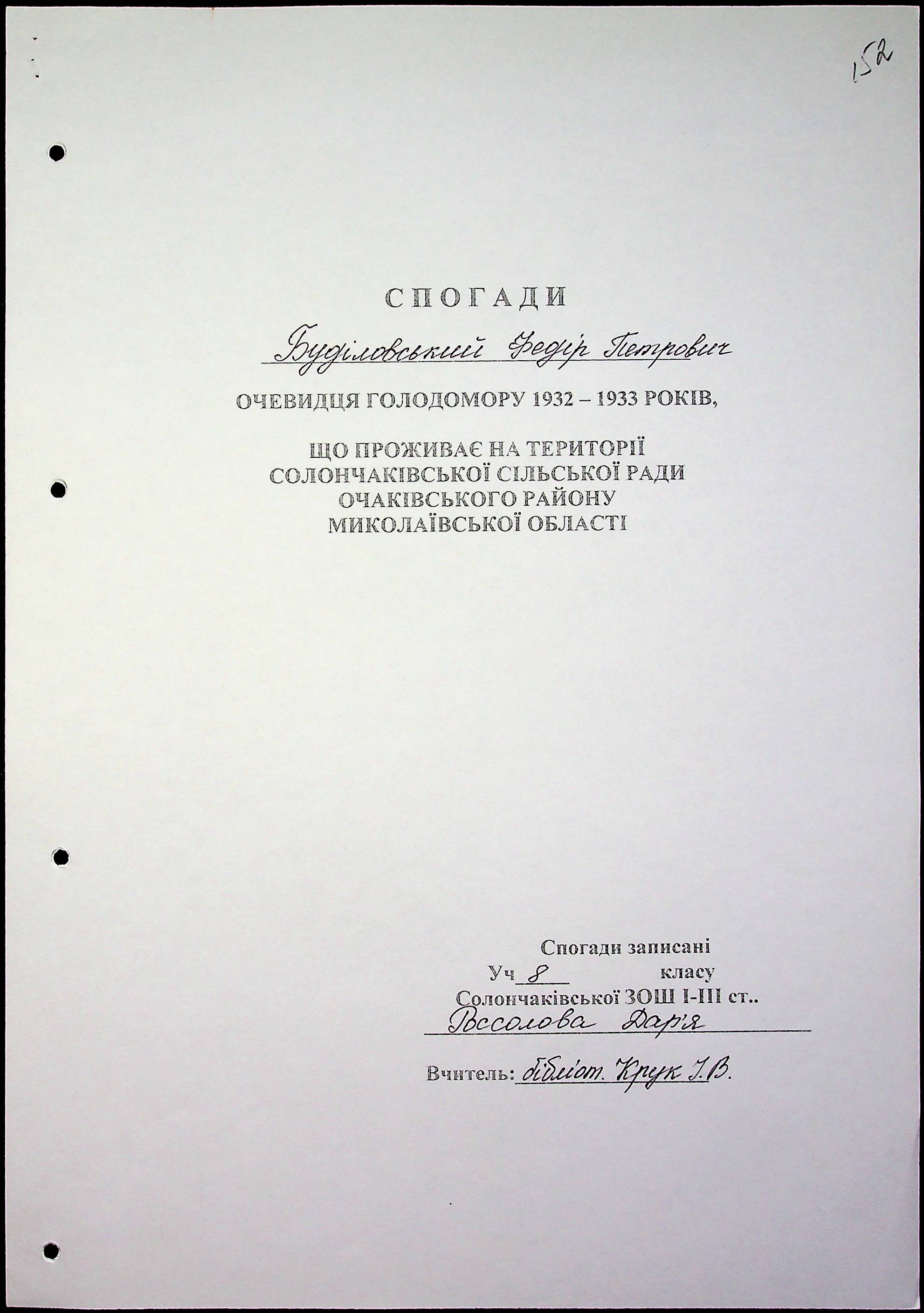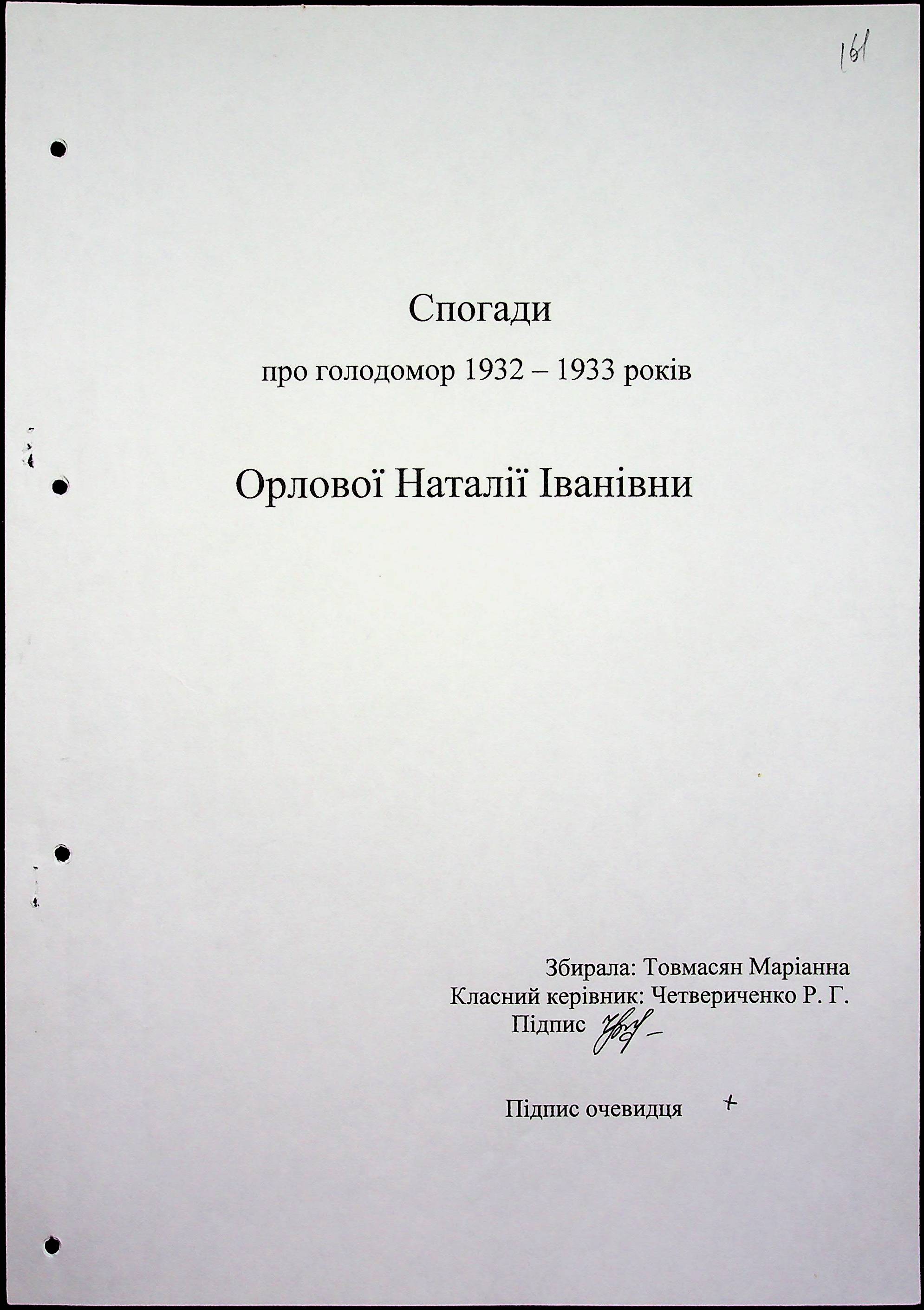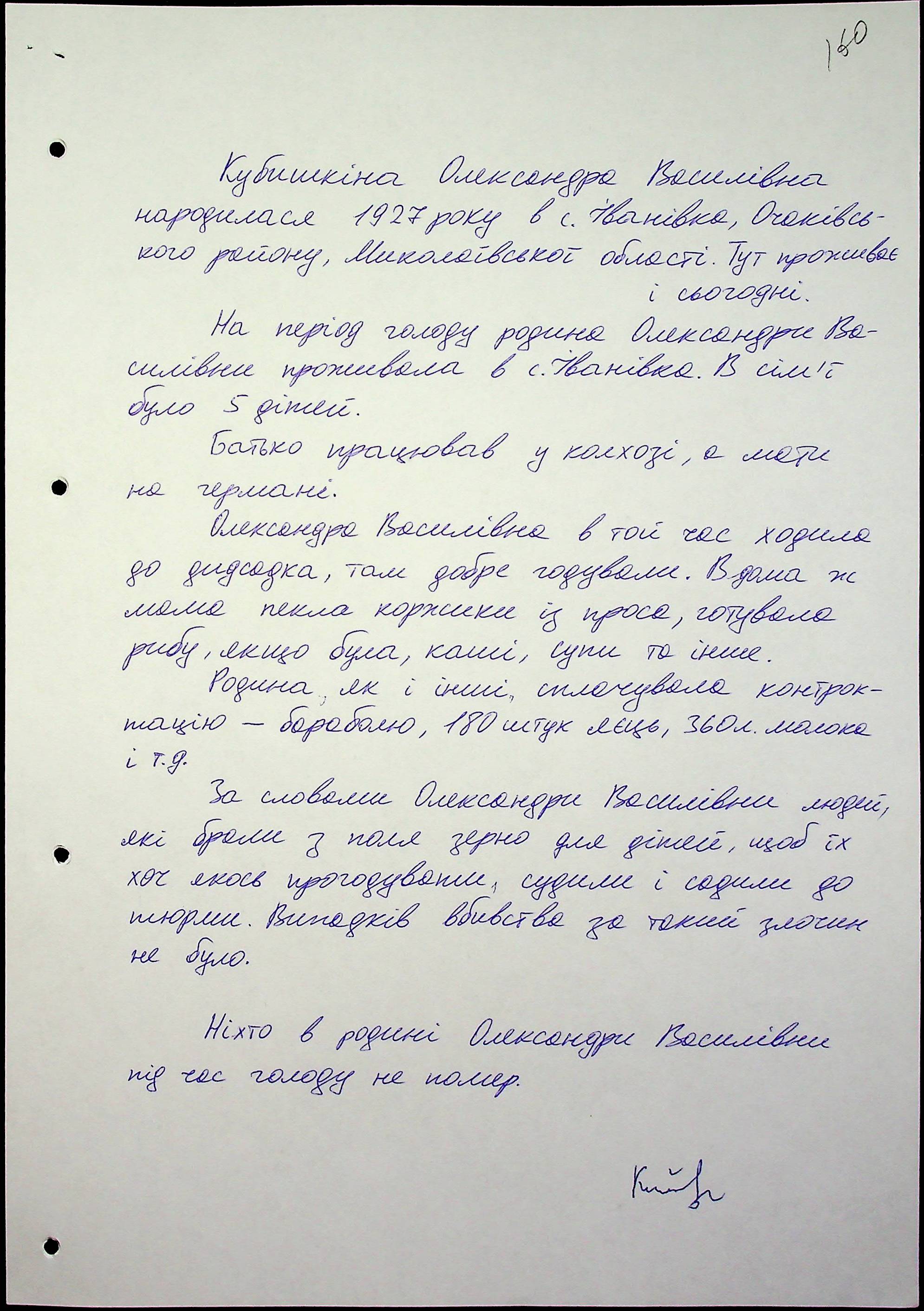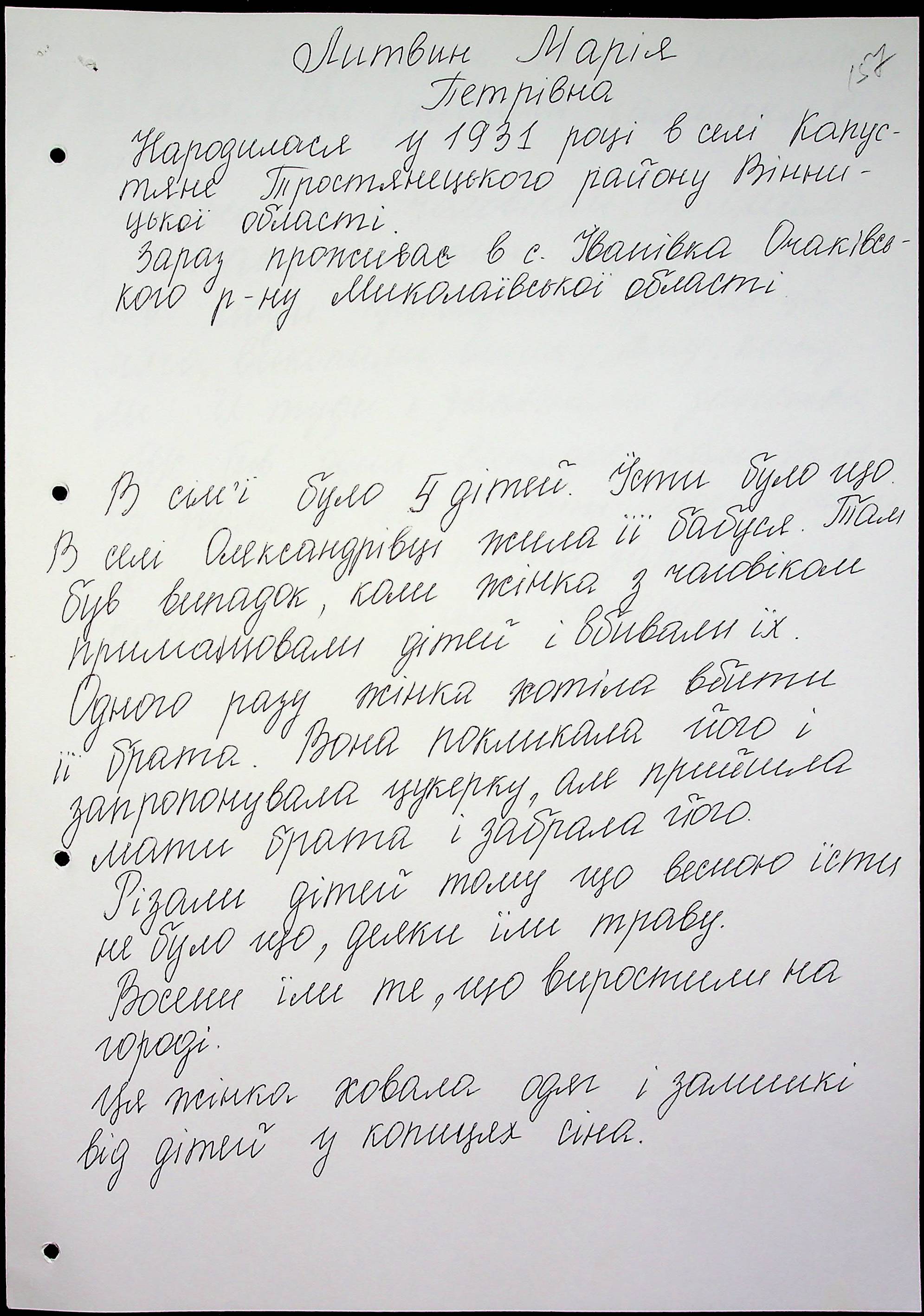 • • • • Справа № 59 “Свідчення очевидців Голодомору 1932-1933 років, які проживають в Очаківському районі. Том 2.”