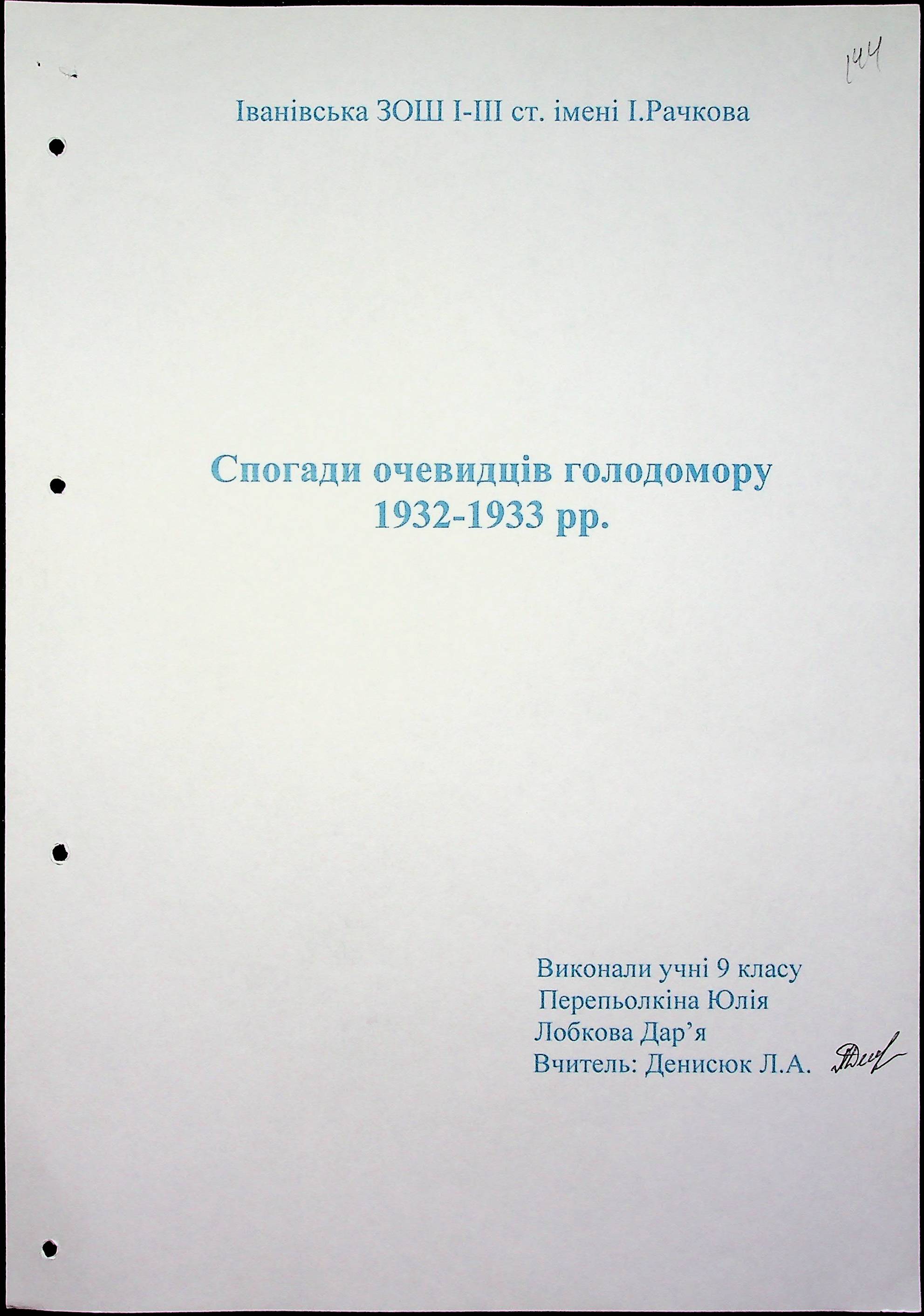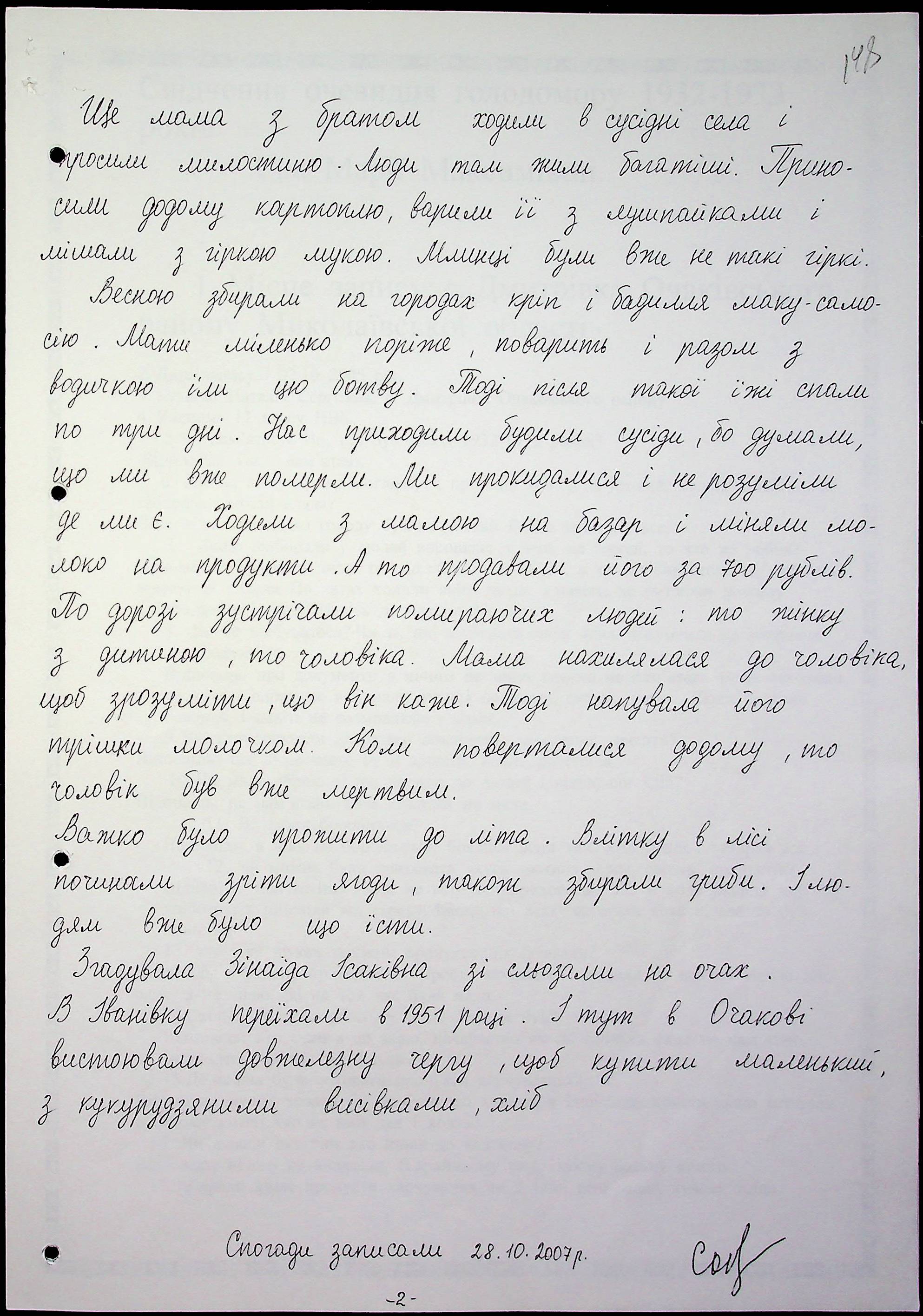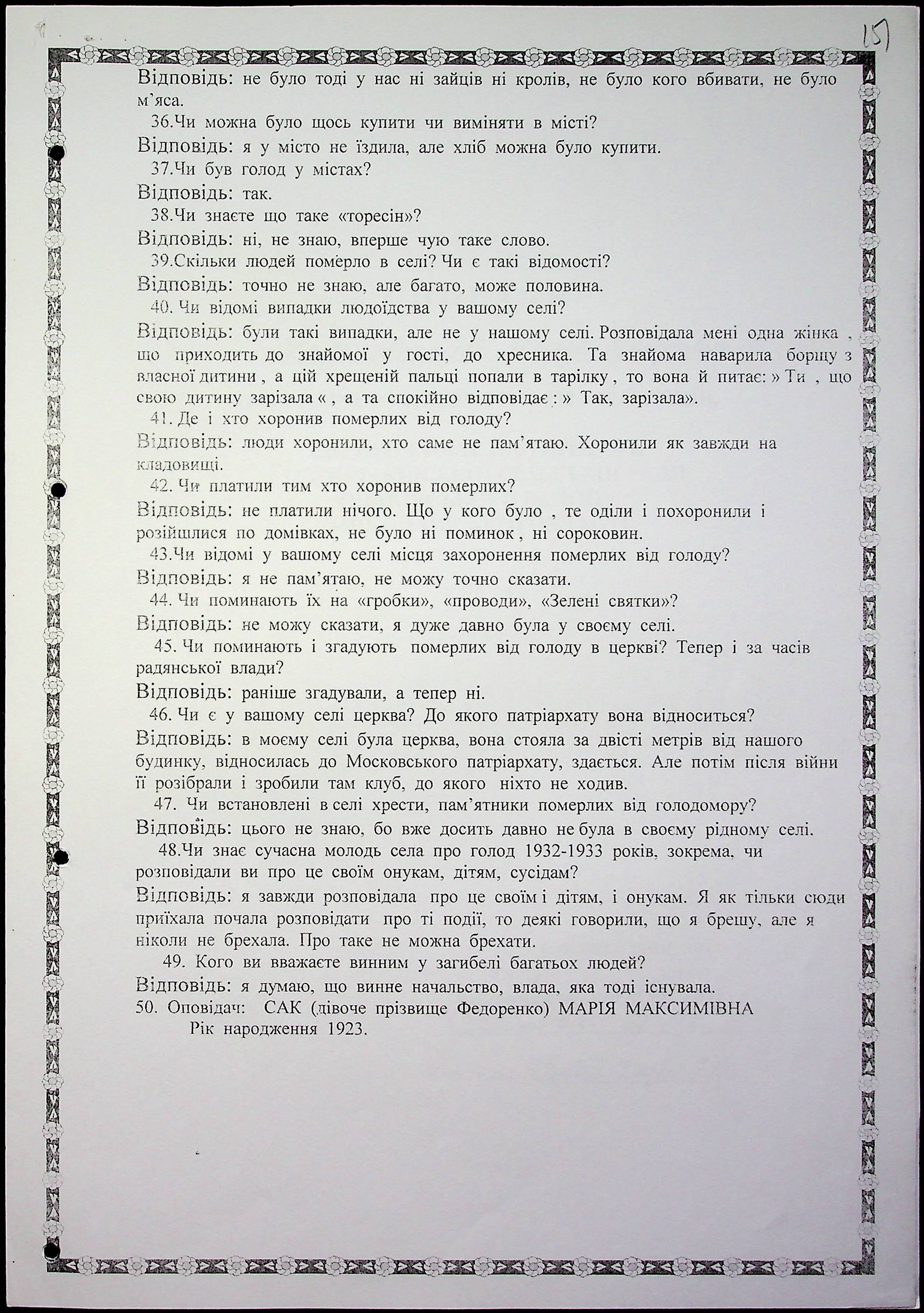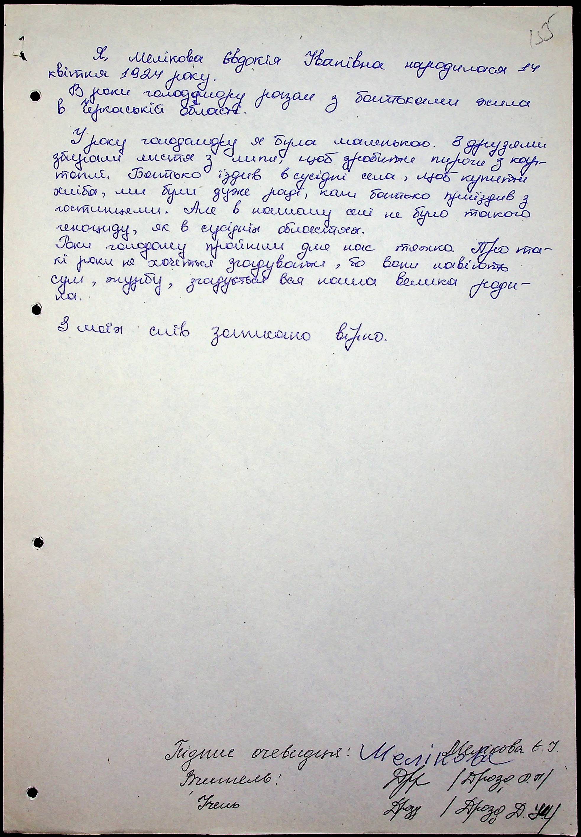 • • • • Справа № 59 “Свідчення очевидців Голодомору 1932-1933 років, які проживають в Очаківському районі. Том 2.”