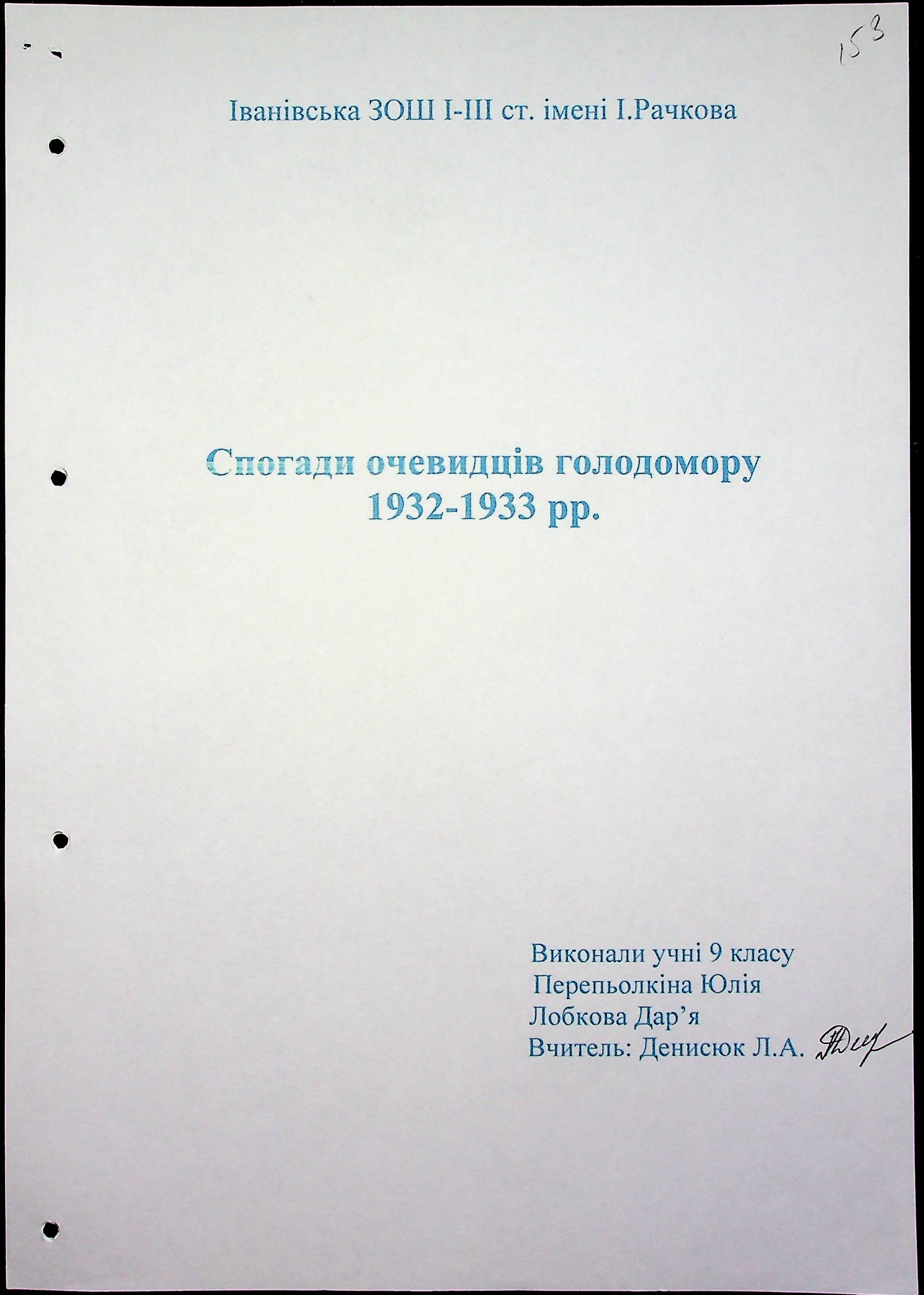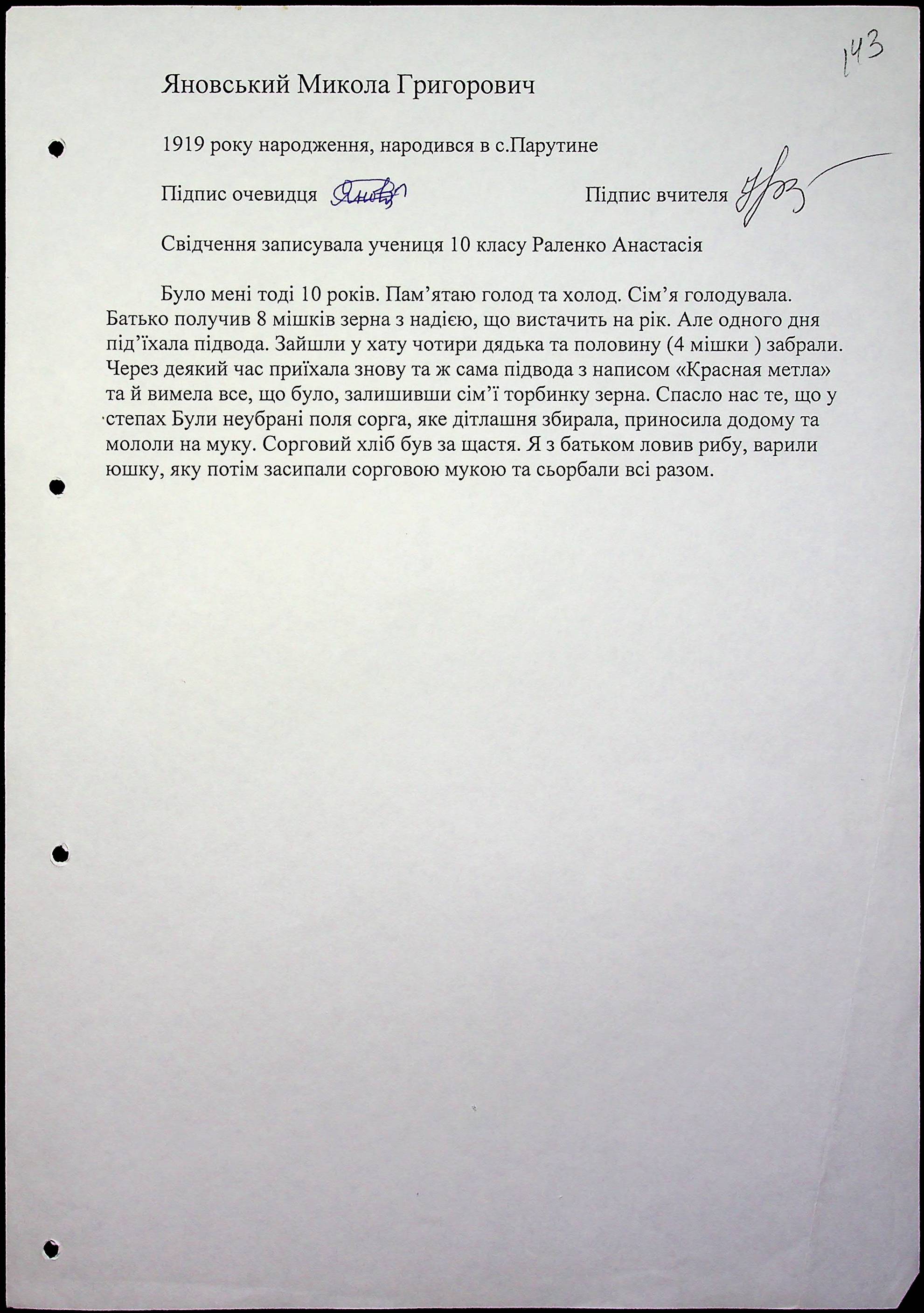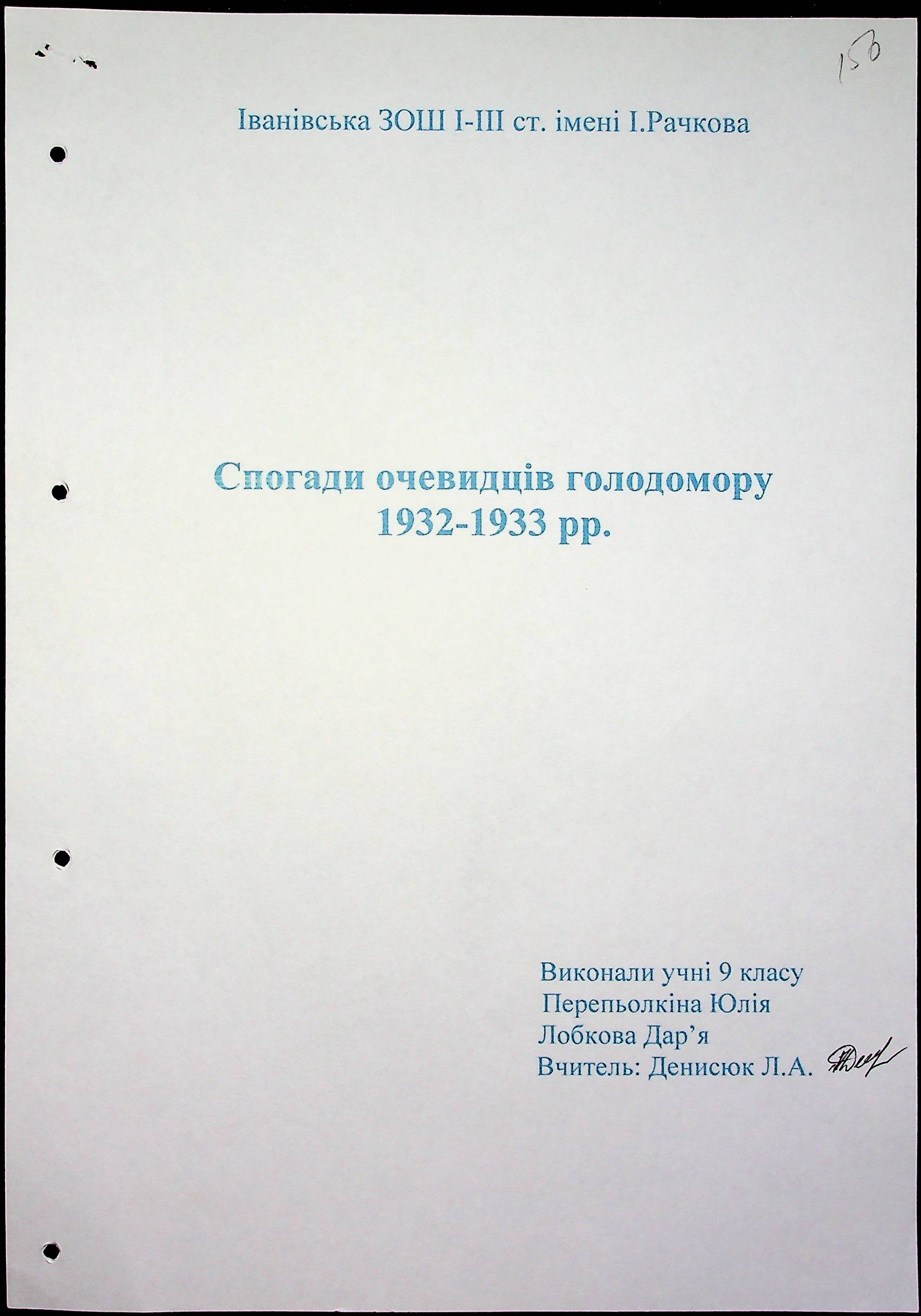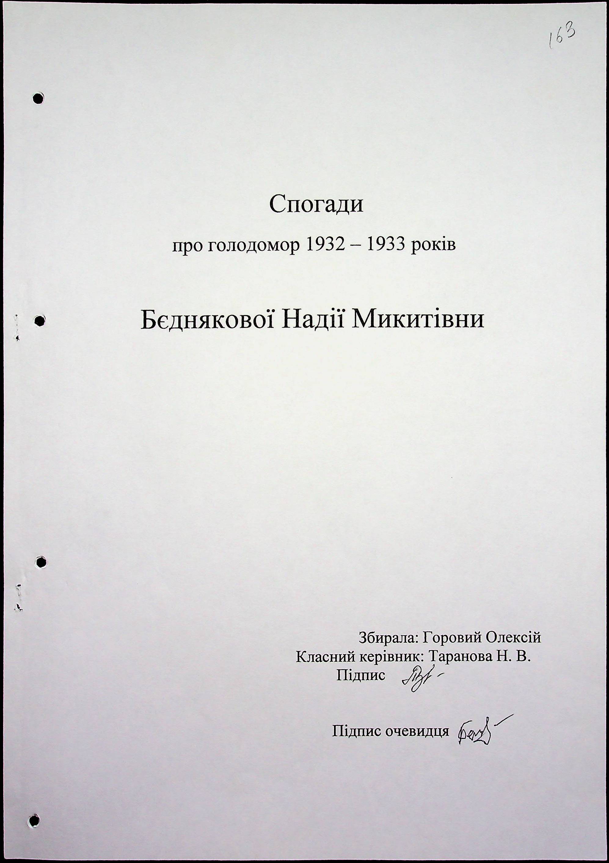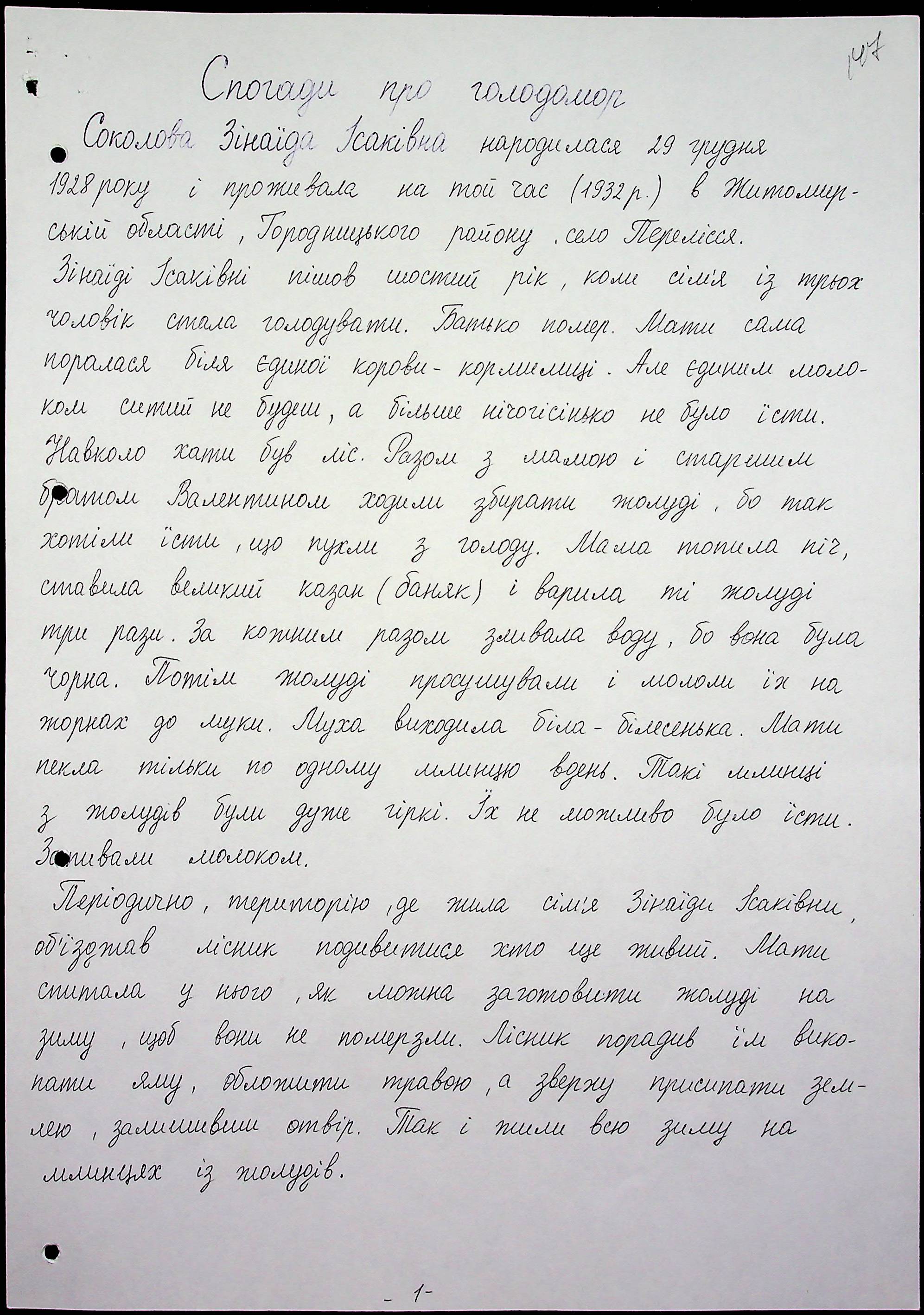 • • • • Справа № 59 “Свідчення очевидців Голодомору 1932-1933 років, які проживають в Очаківському районі. Том 2.”
