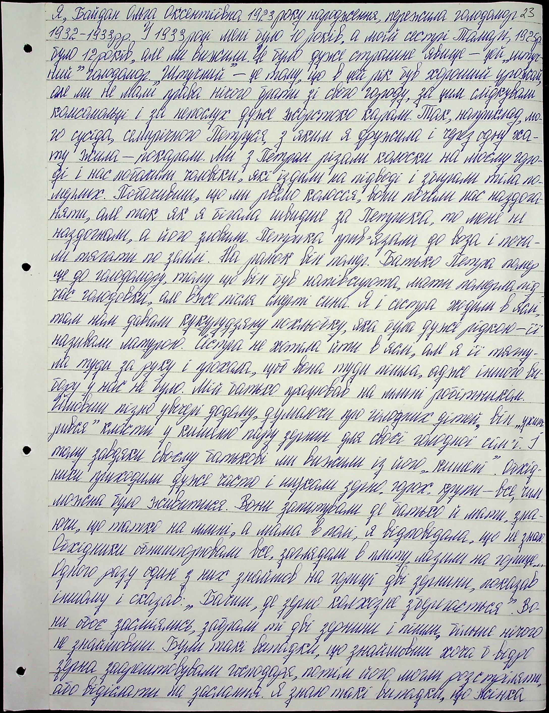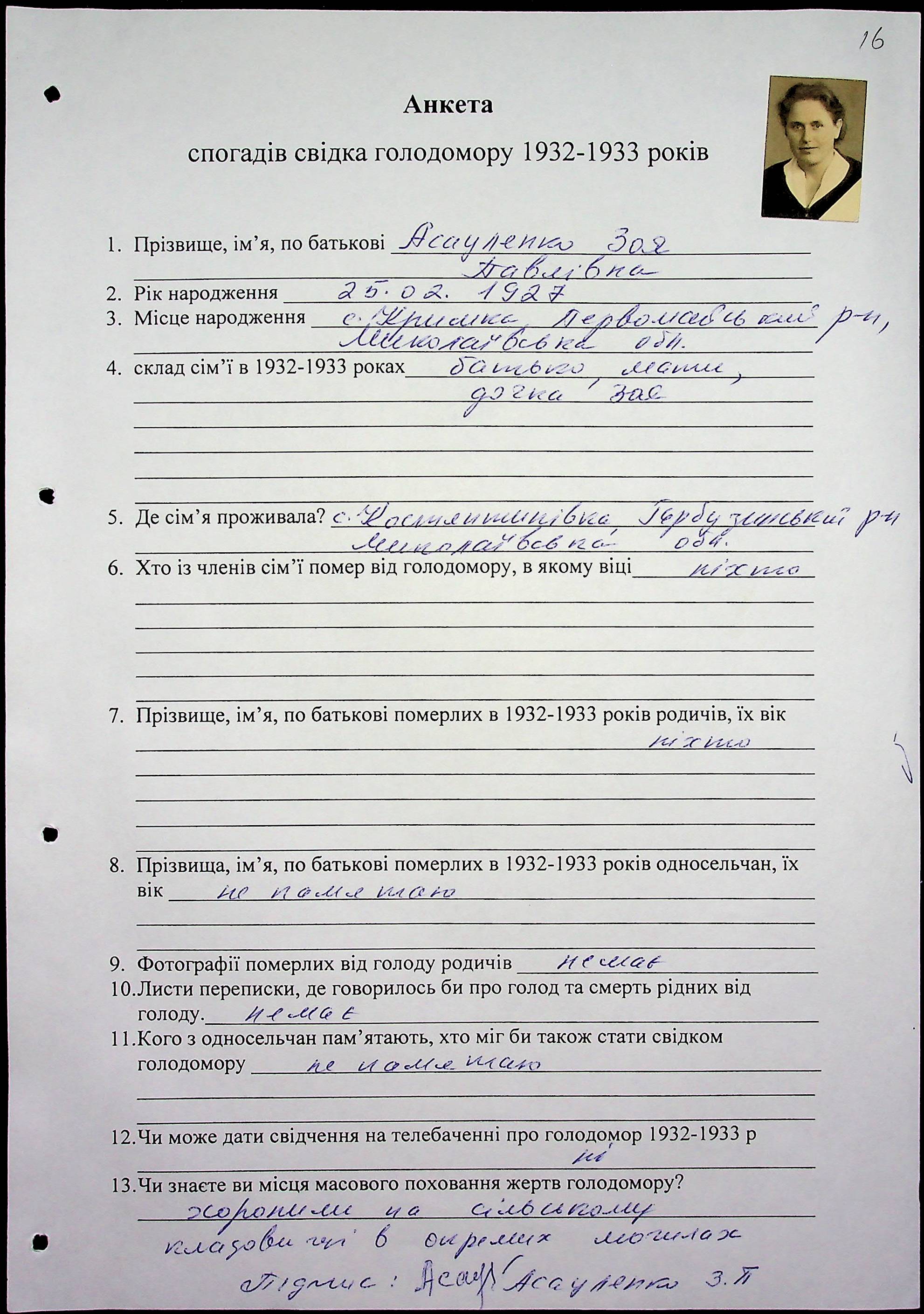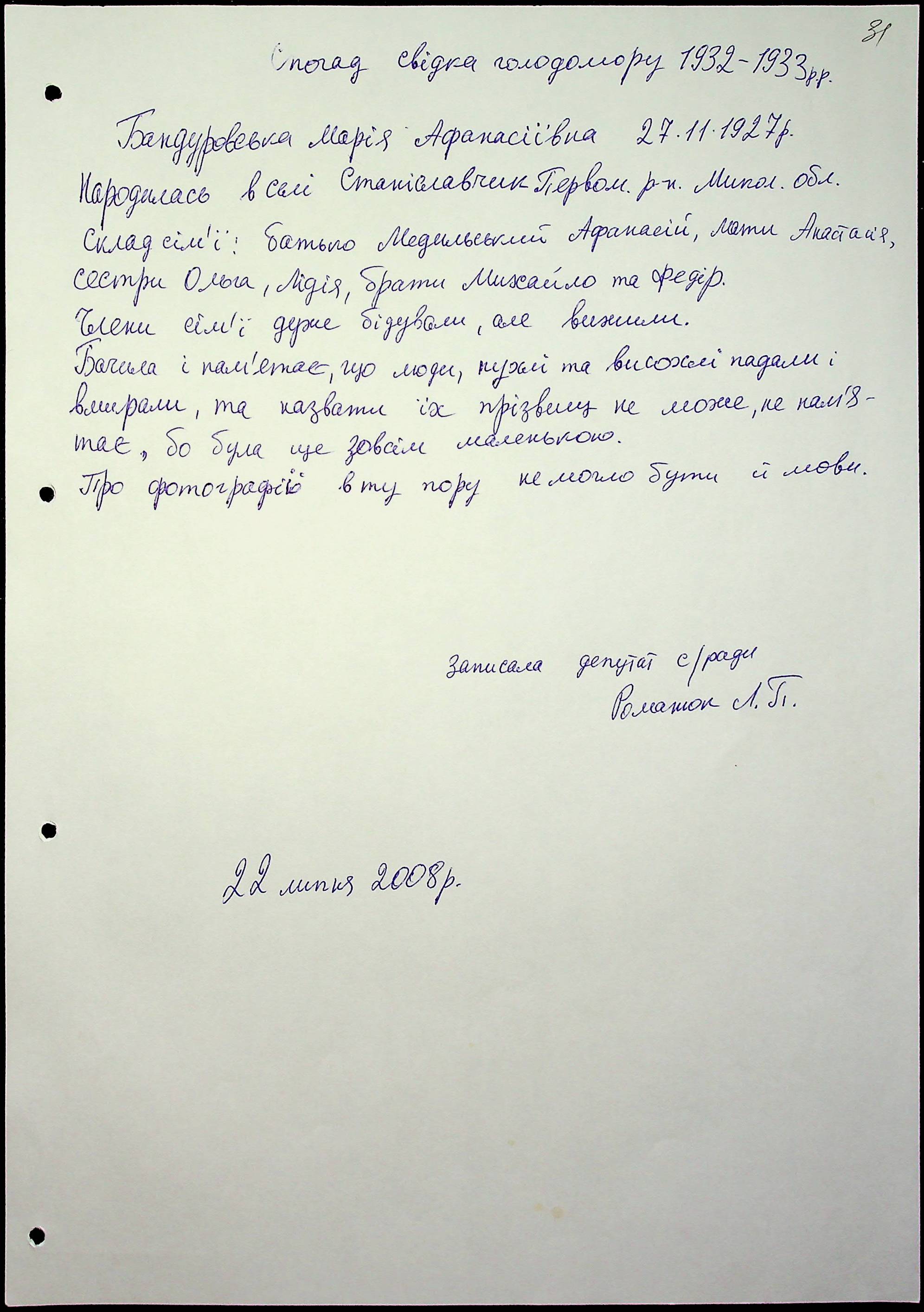◦ ◦ Фонд № 6146 “Колекція свідчень очевидців Голодомору 1932-1933 рр., нині проживаючих у Миколаївській області”