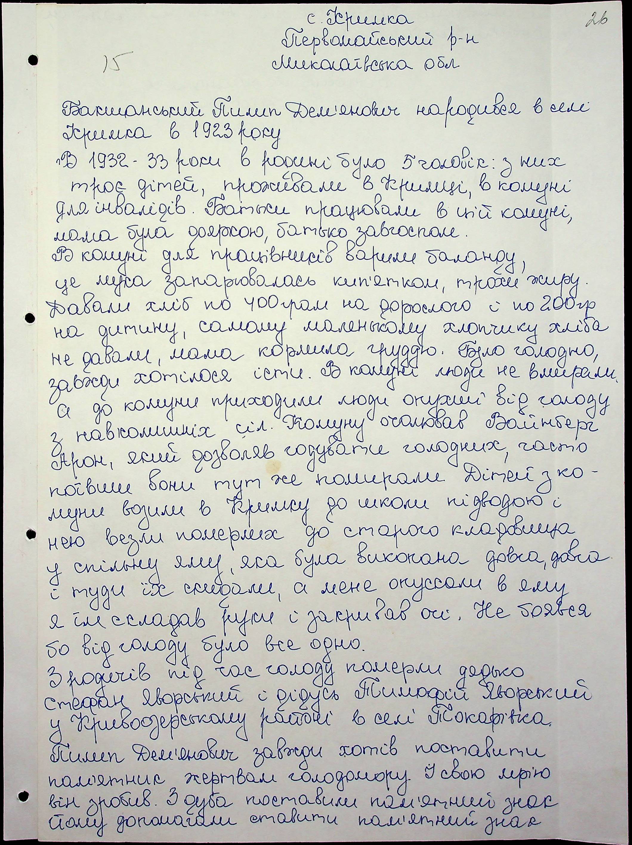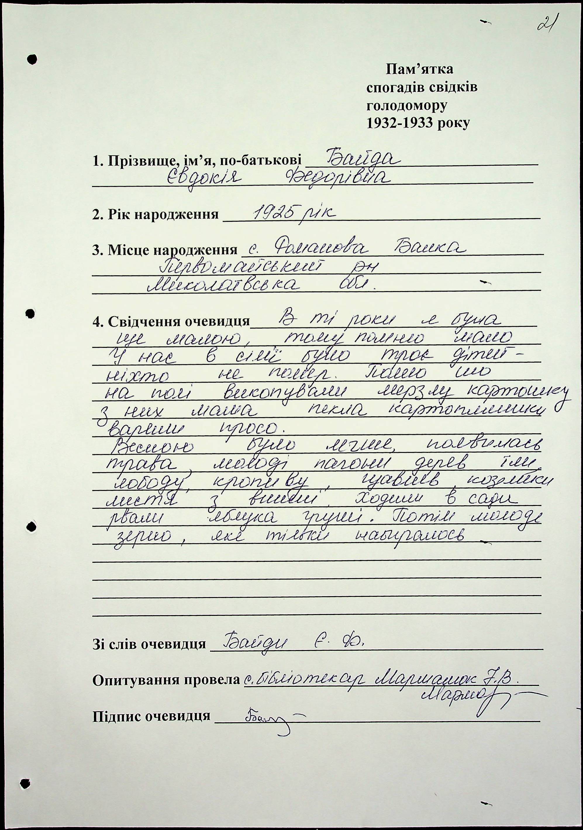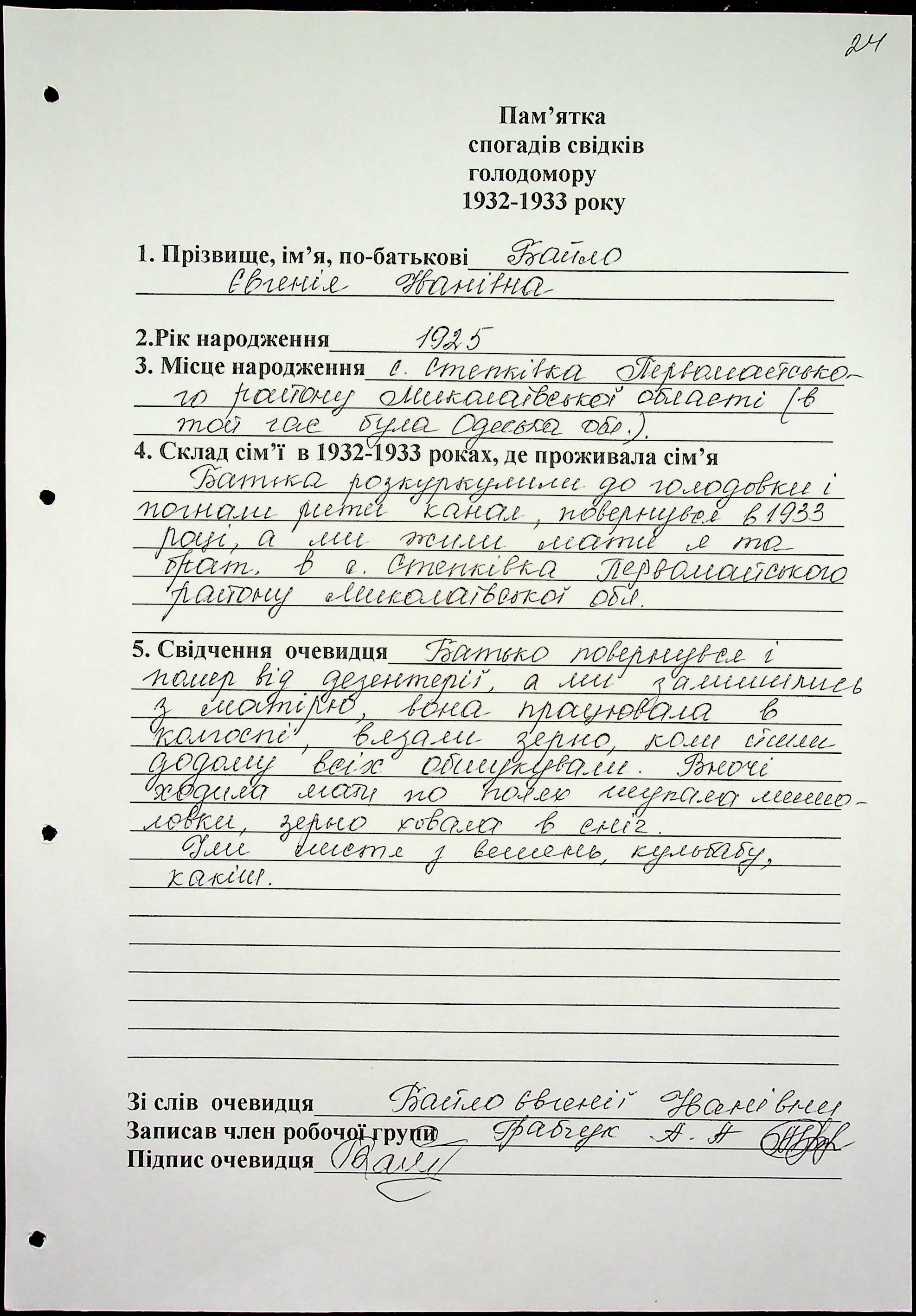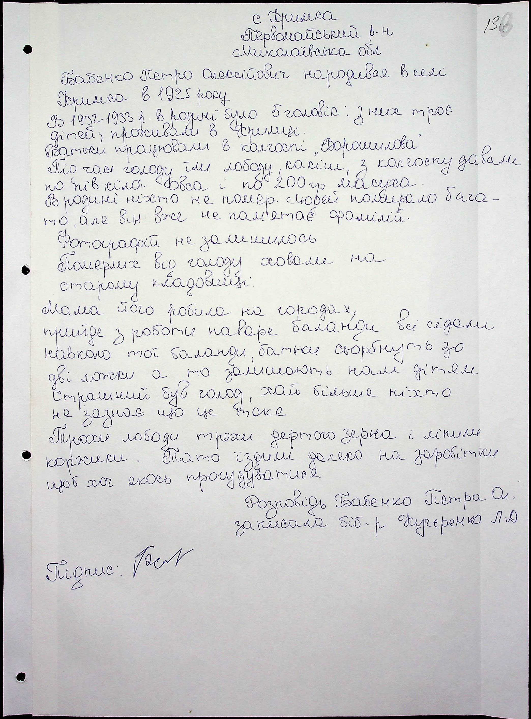 • • • • Справа № 60 “Свідчення очевидців Голодомору 1932-1933 років, які проживають у Первомайському районі, з прізвищами на літери А–І”