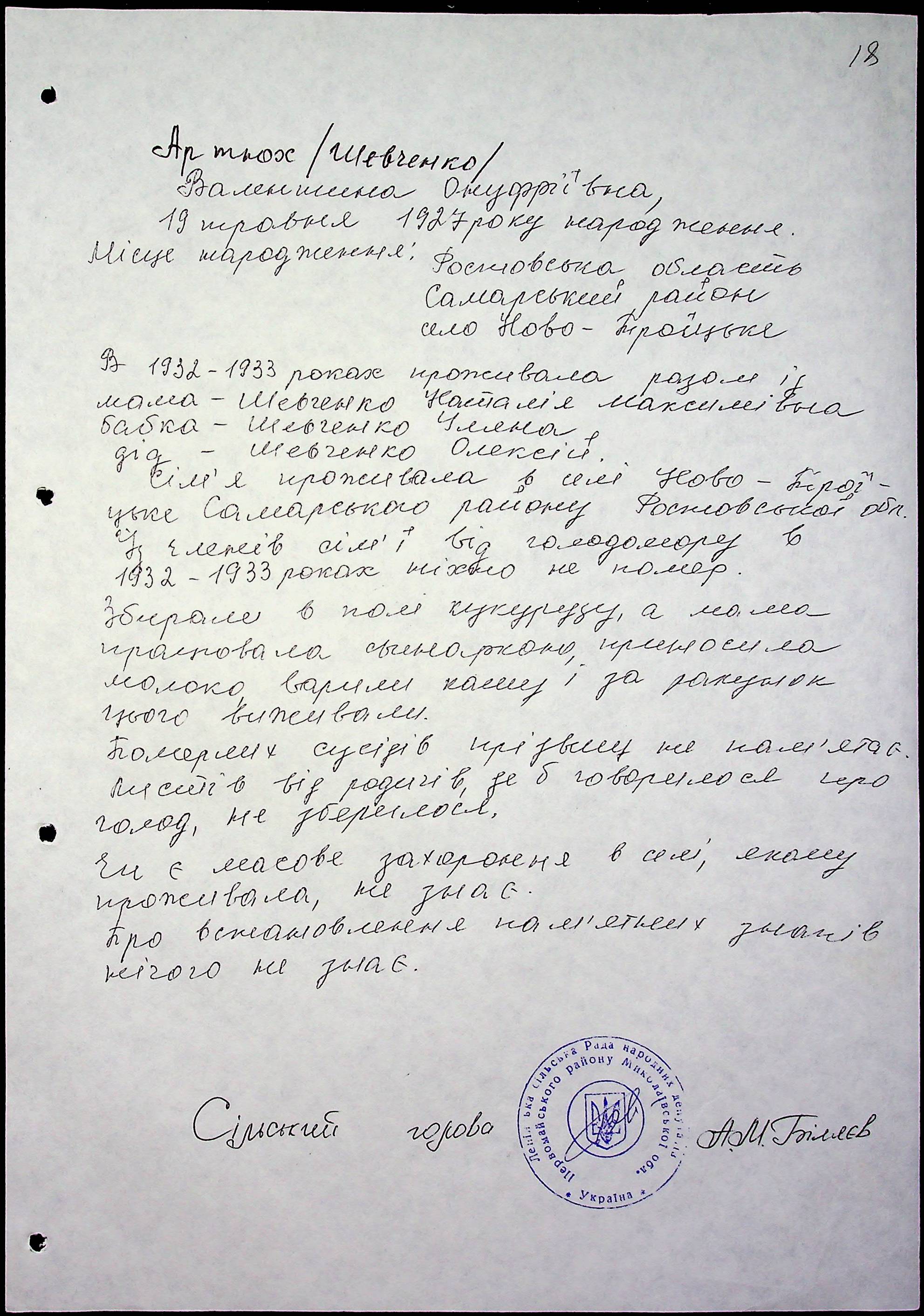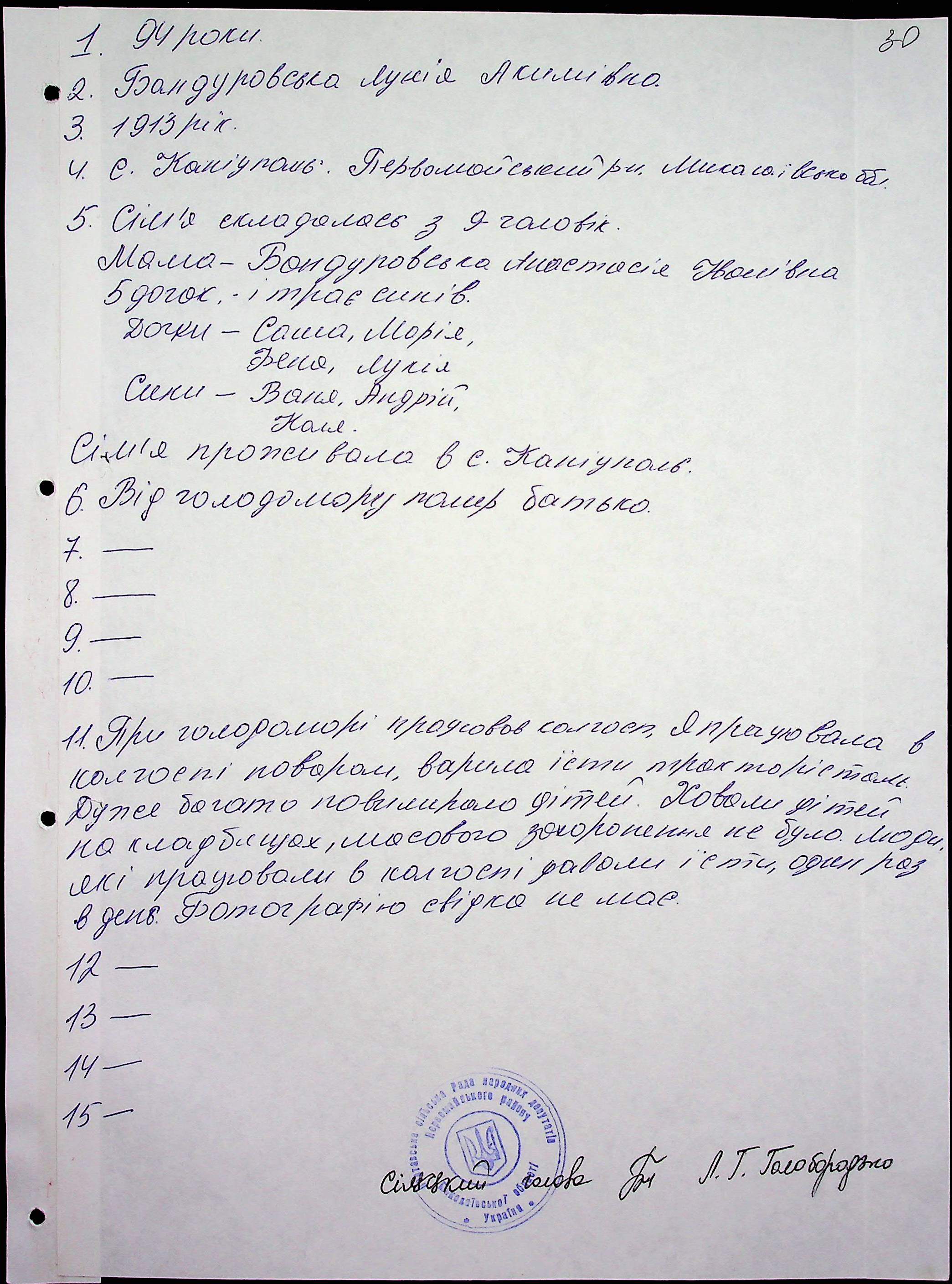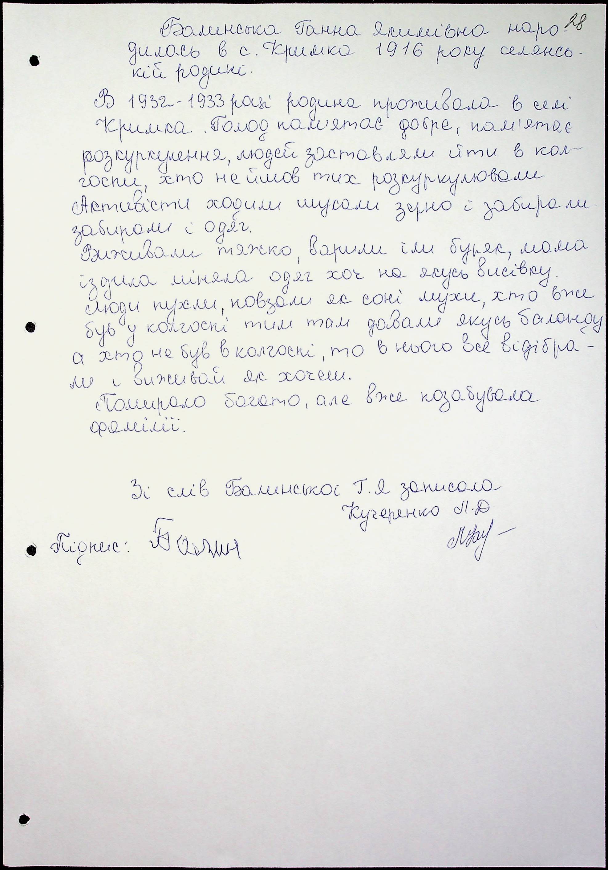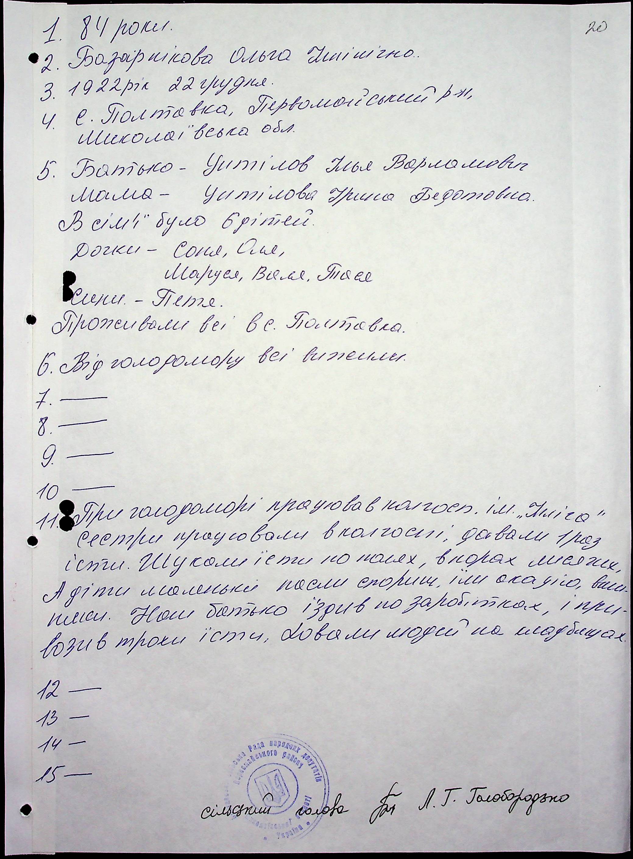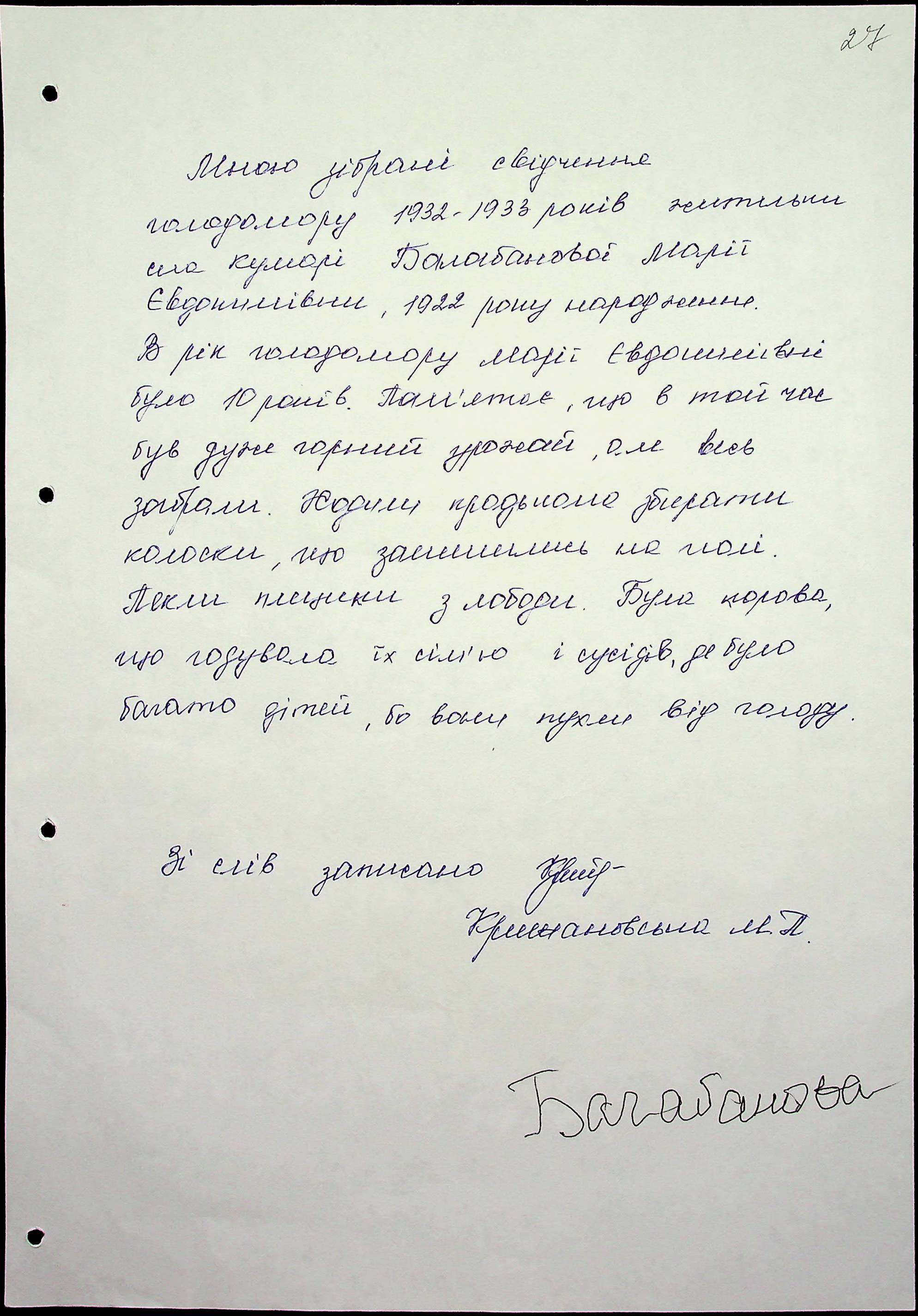 • • • • Справа № 60 “Свідчення очевидців Голодомору 1932-1933 років, які проживають у Первомайському районі, з прізвищами на літери А–І”
