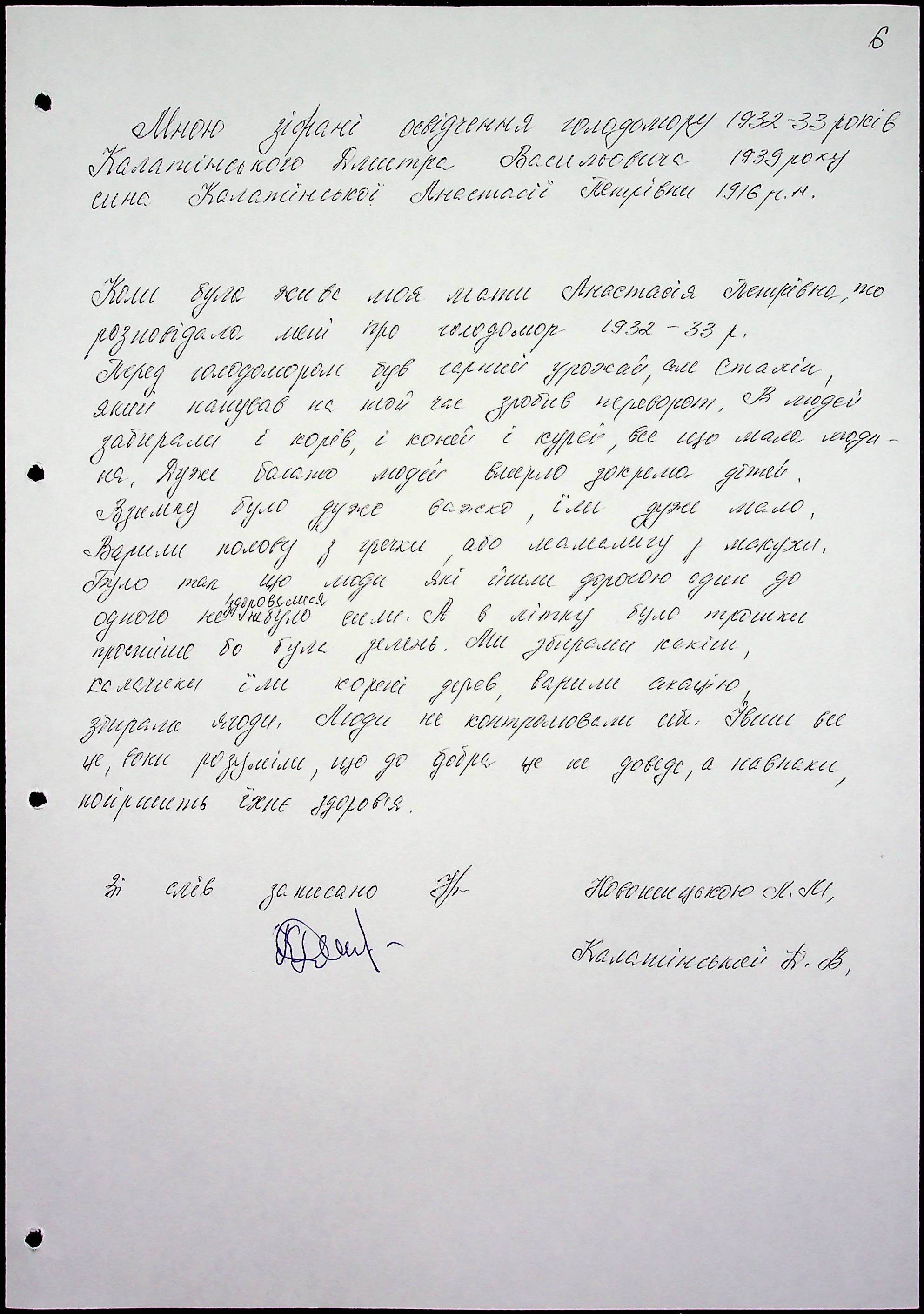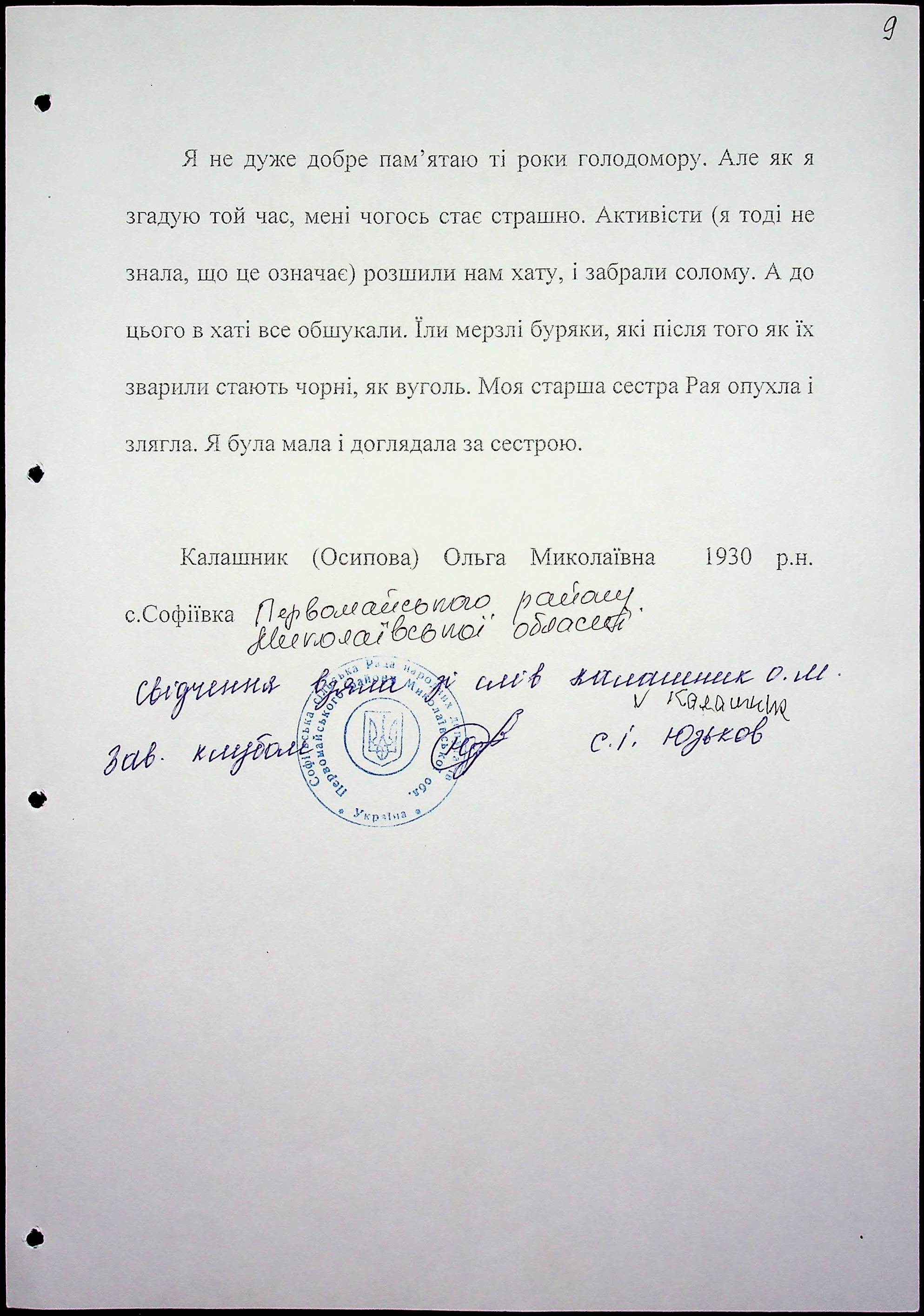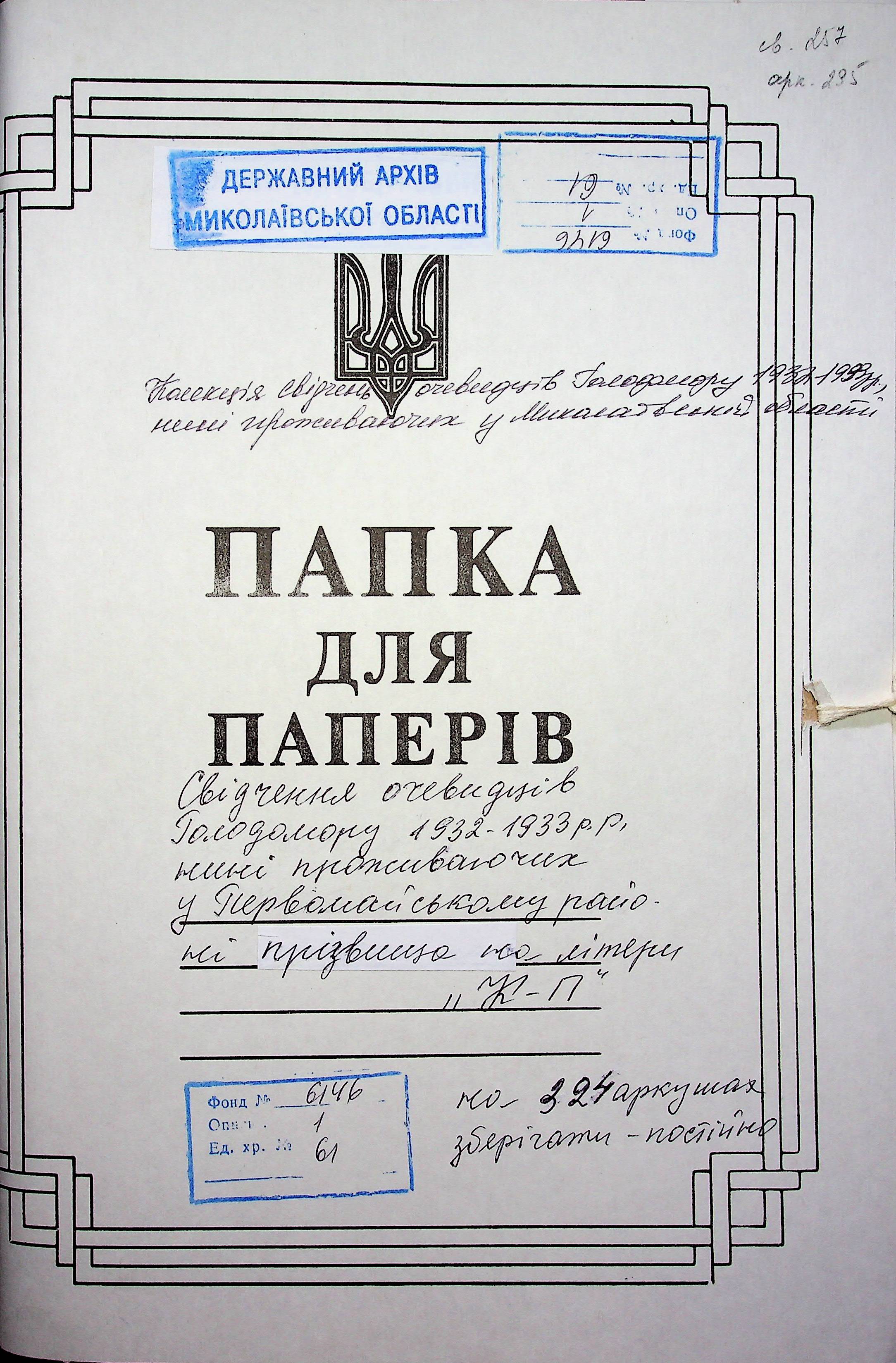 ◦ ◦ Фонд № 6146 “Колекція свідчень очевидців Голодомору 1932-1933 рр., нині проживаючих у Миколаївській області”