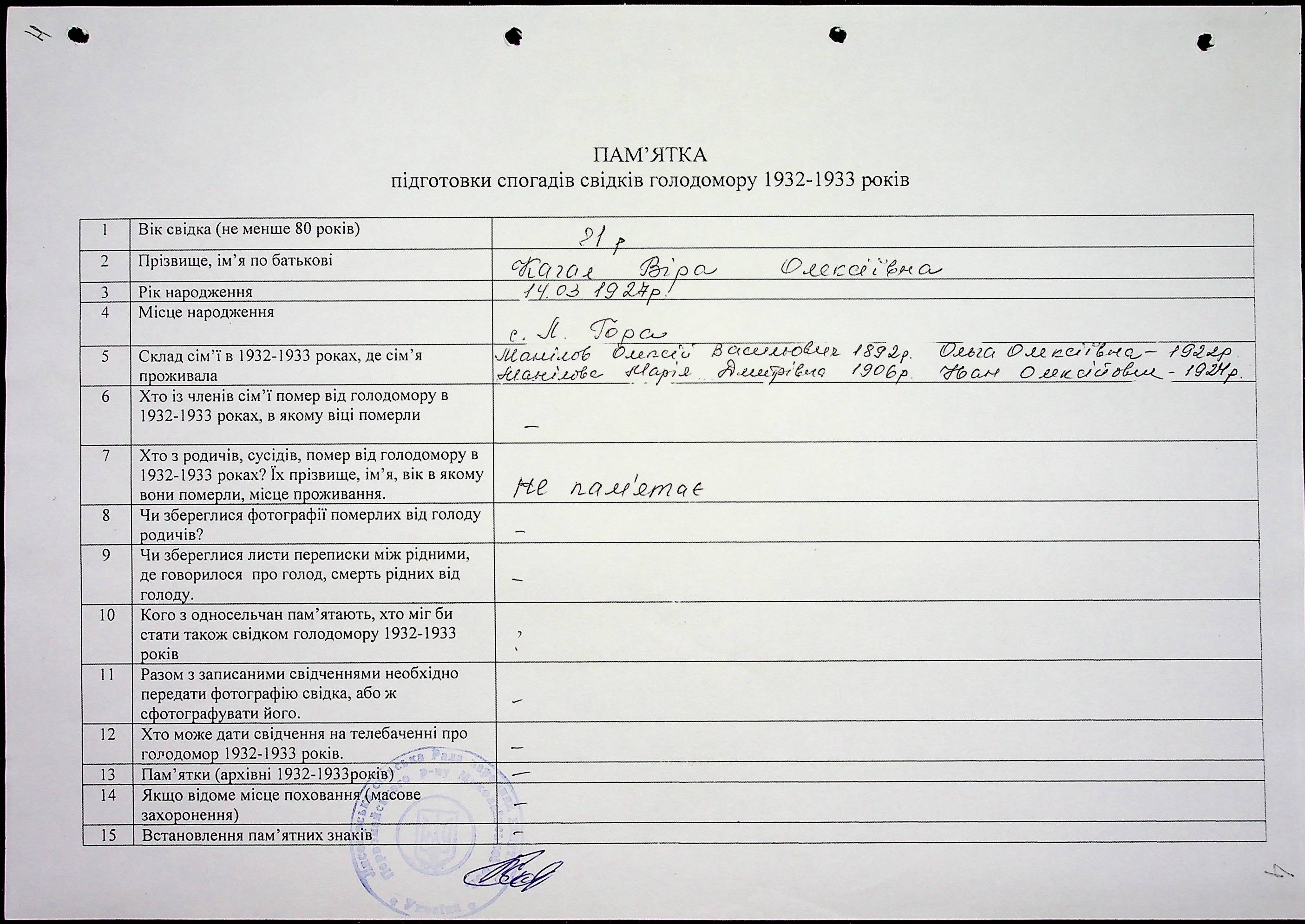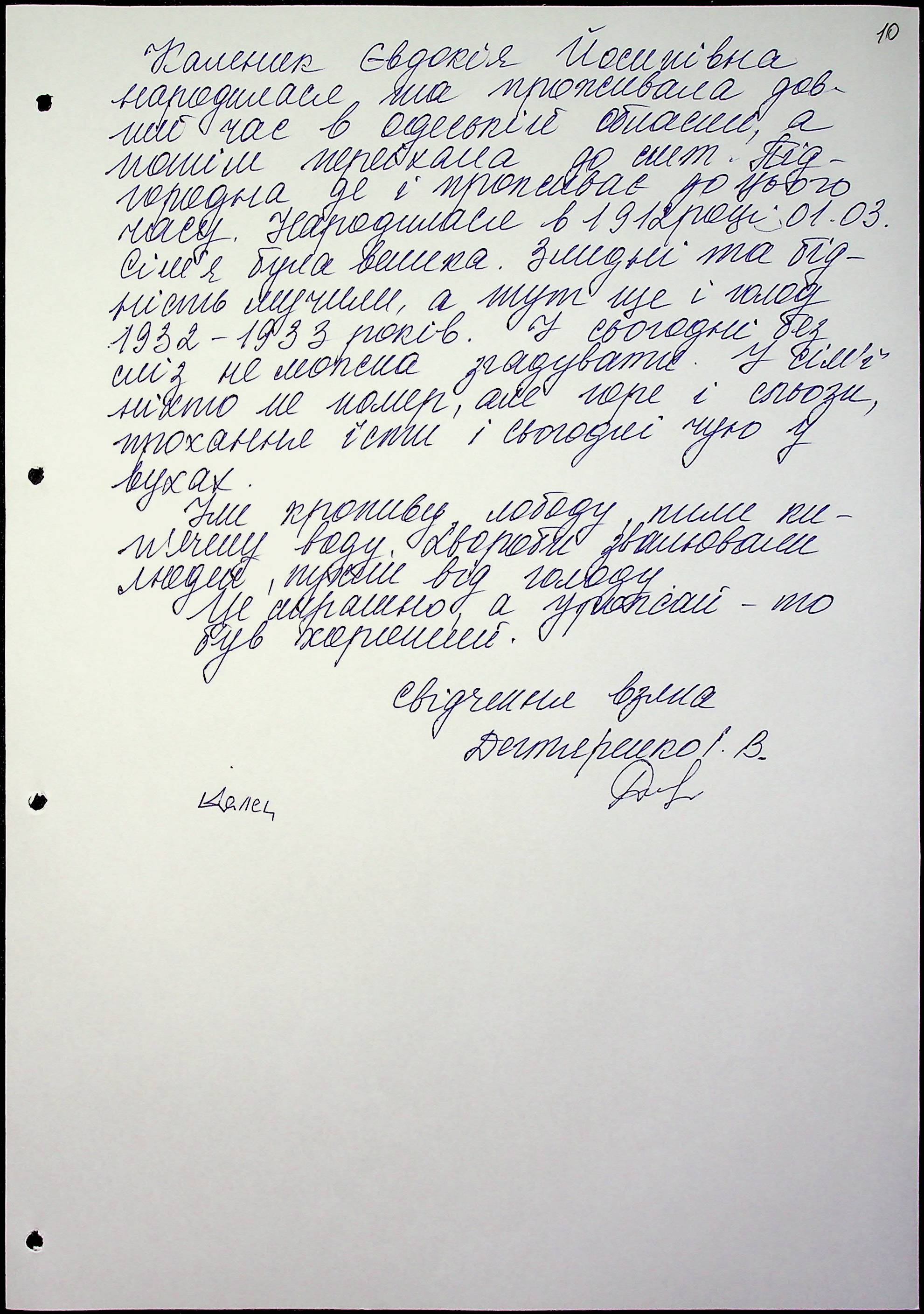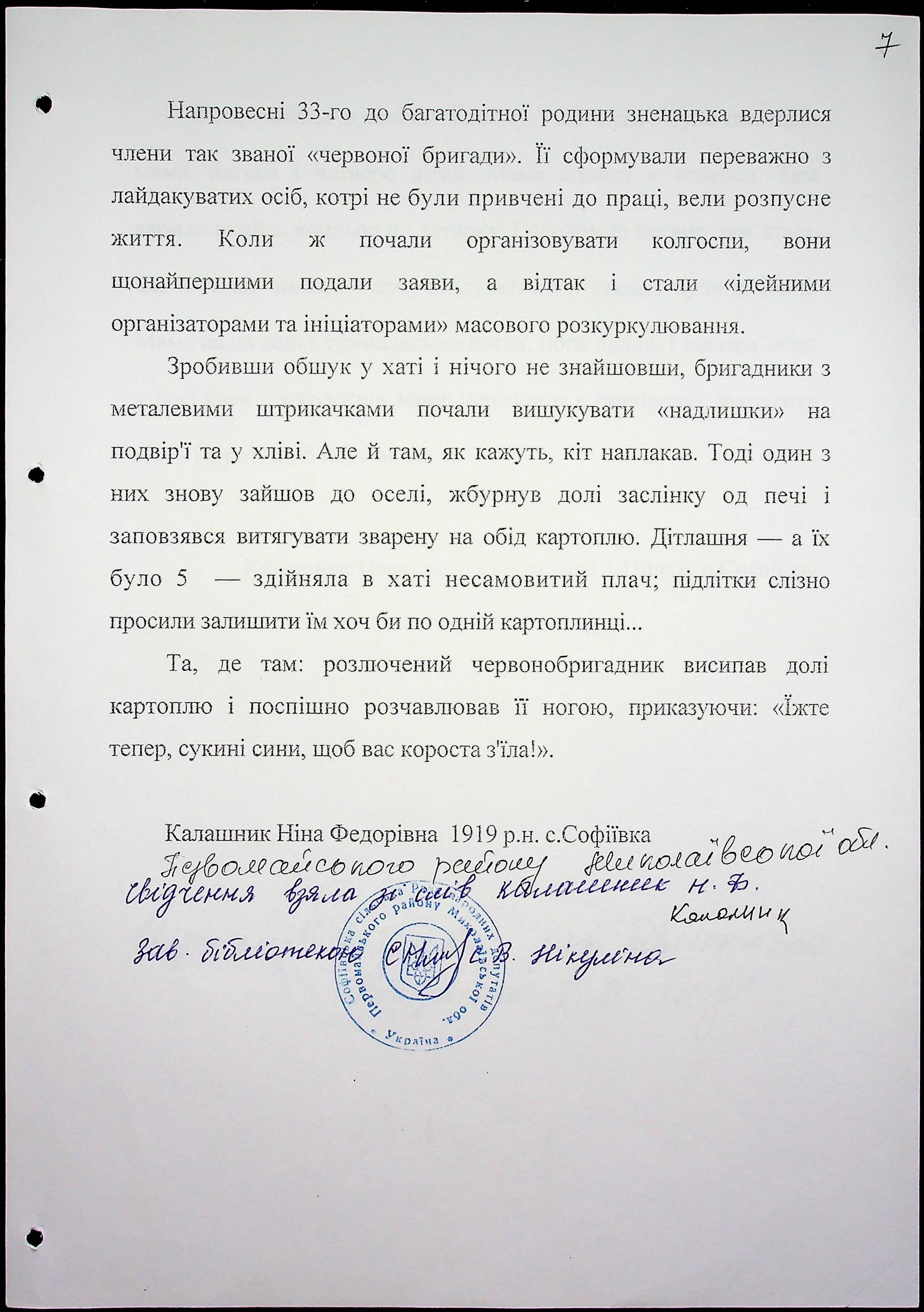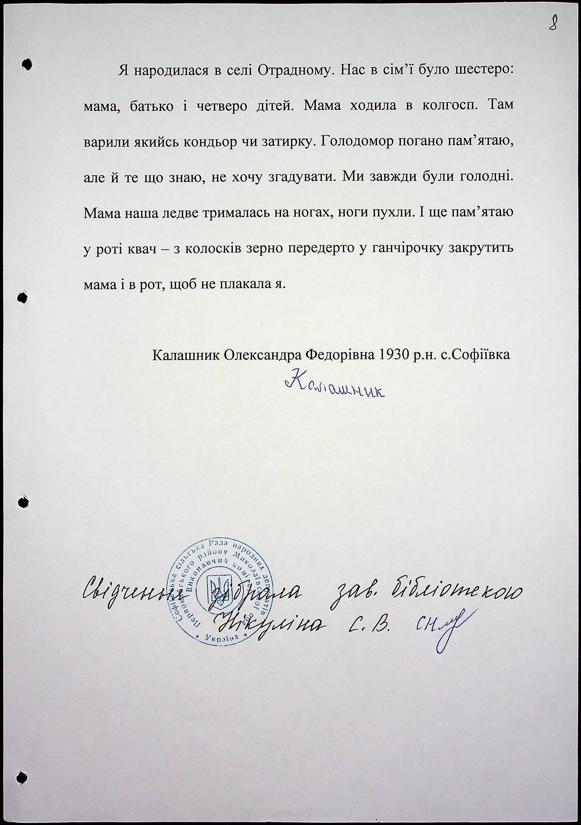 ◦ ◦ Фонд № 6146 “Колекція свідчень очевидців Голодомору 1932-1933 рр., нині проживаючих у Миколаївській області”